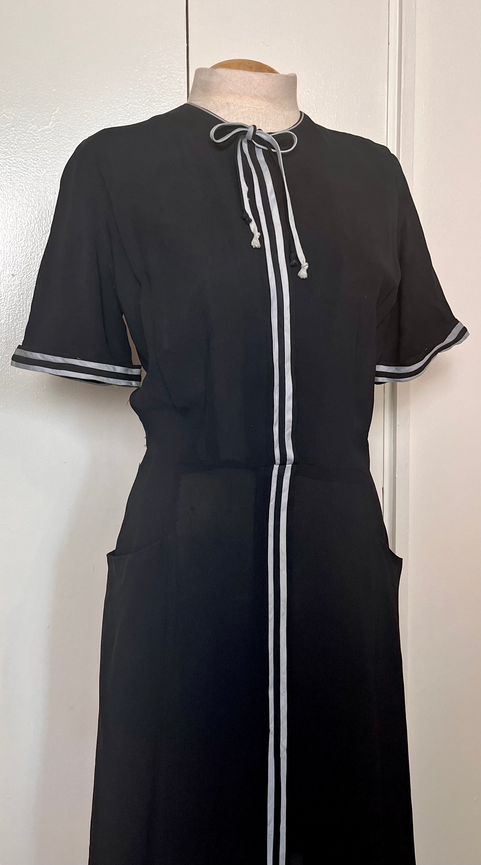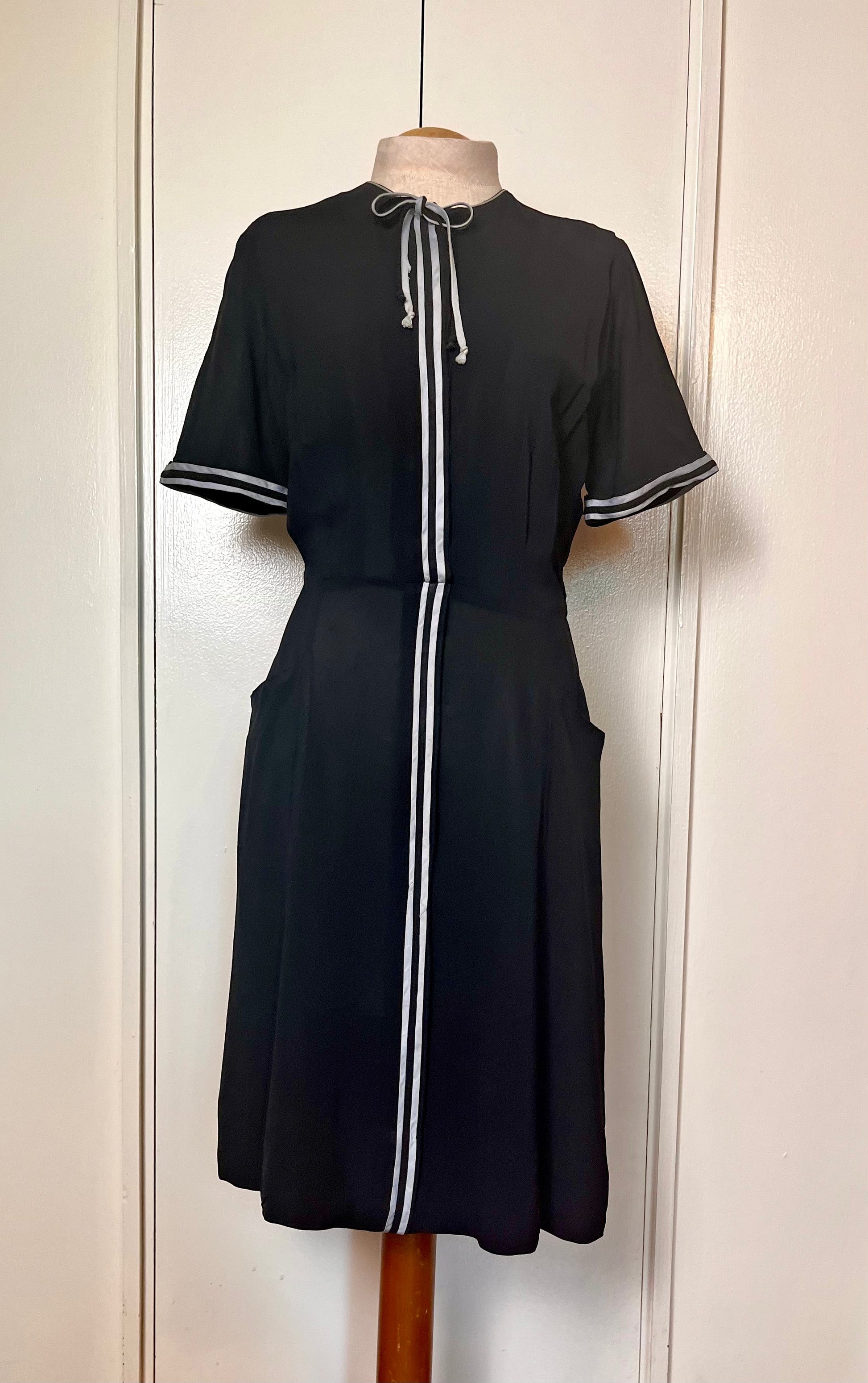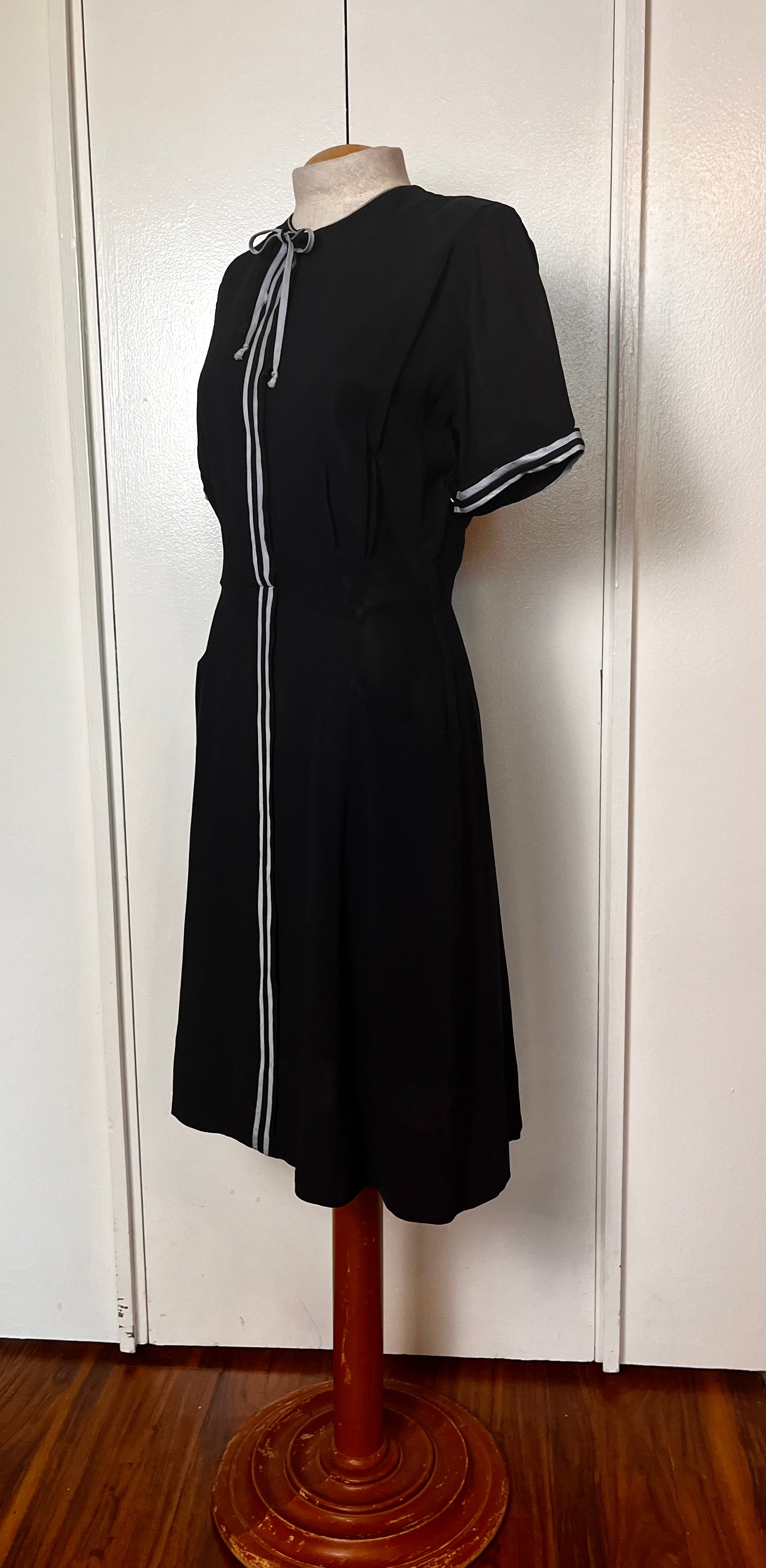 Vintage 1950's "Jane Arden" Black and Blue Rayon Midi Dress