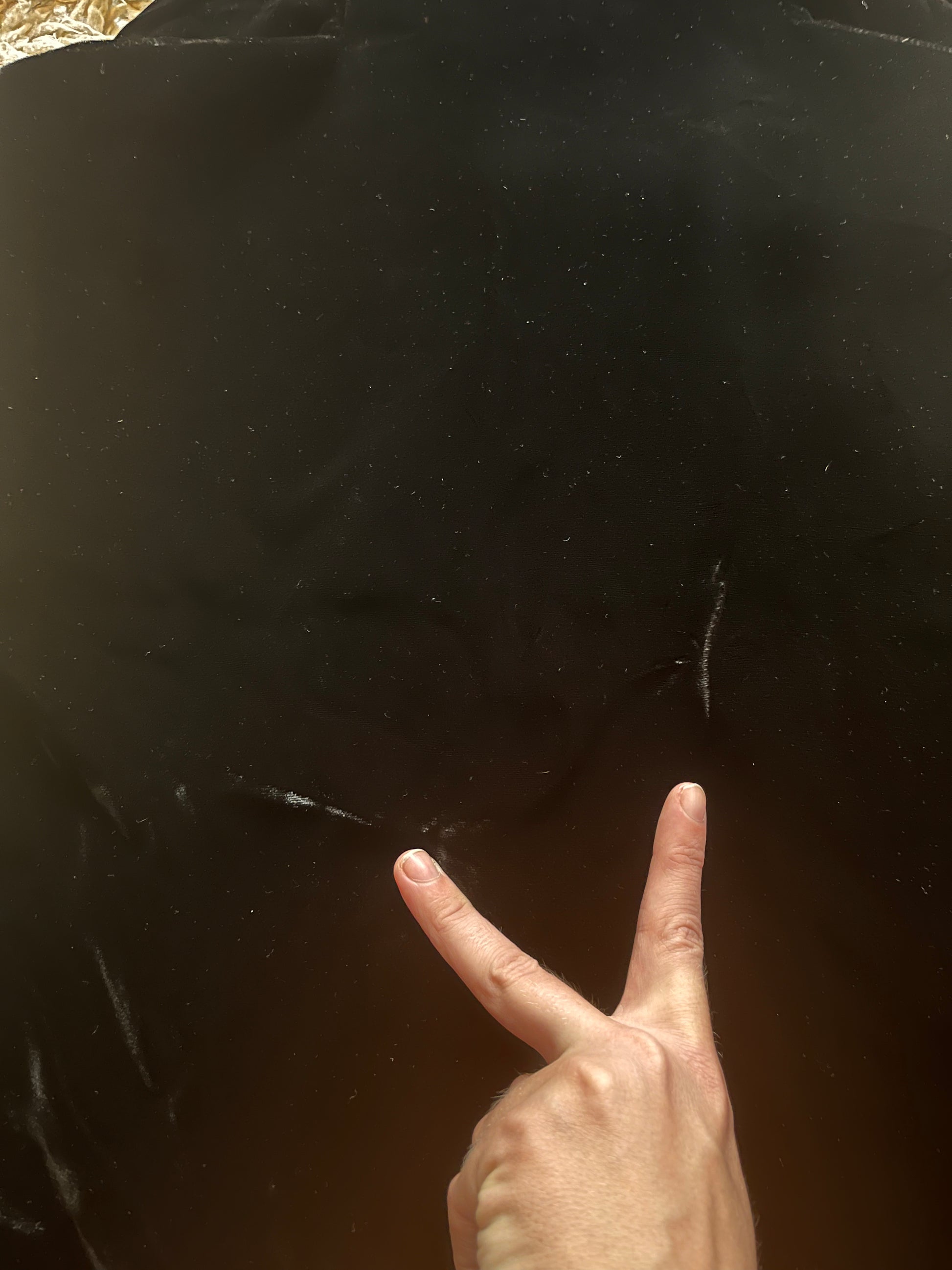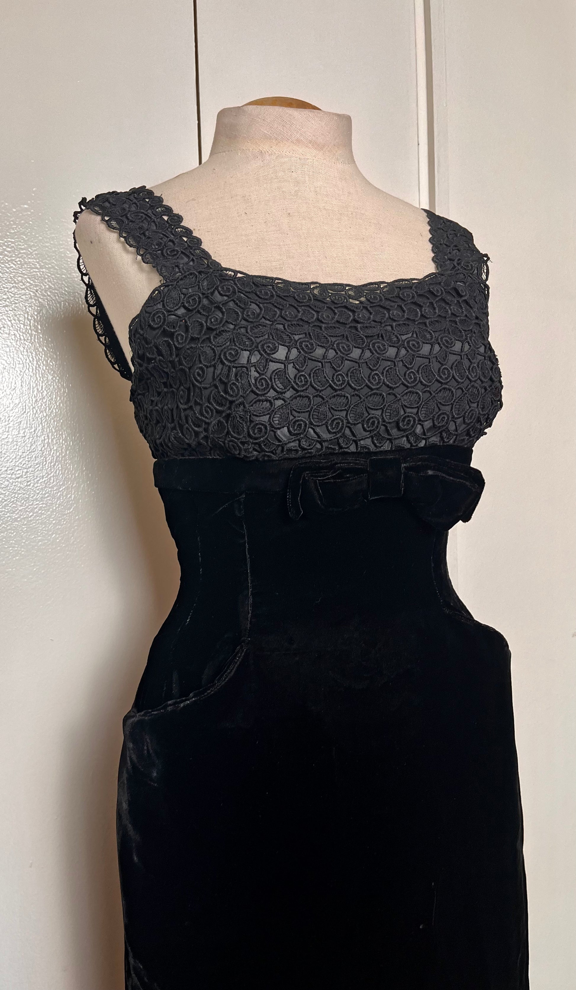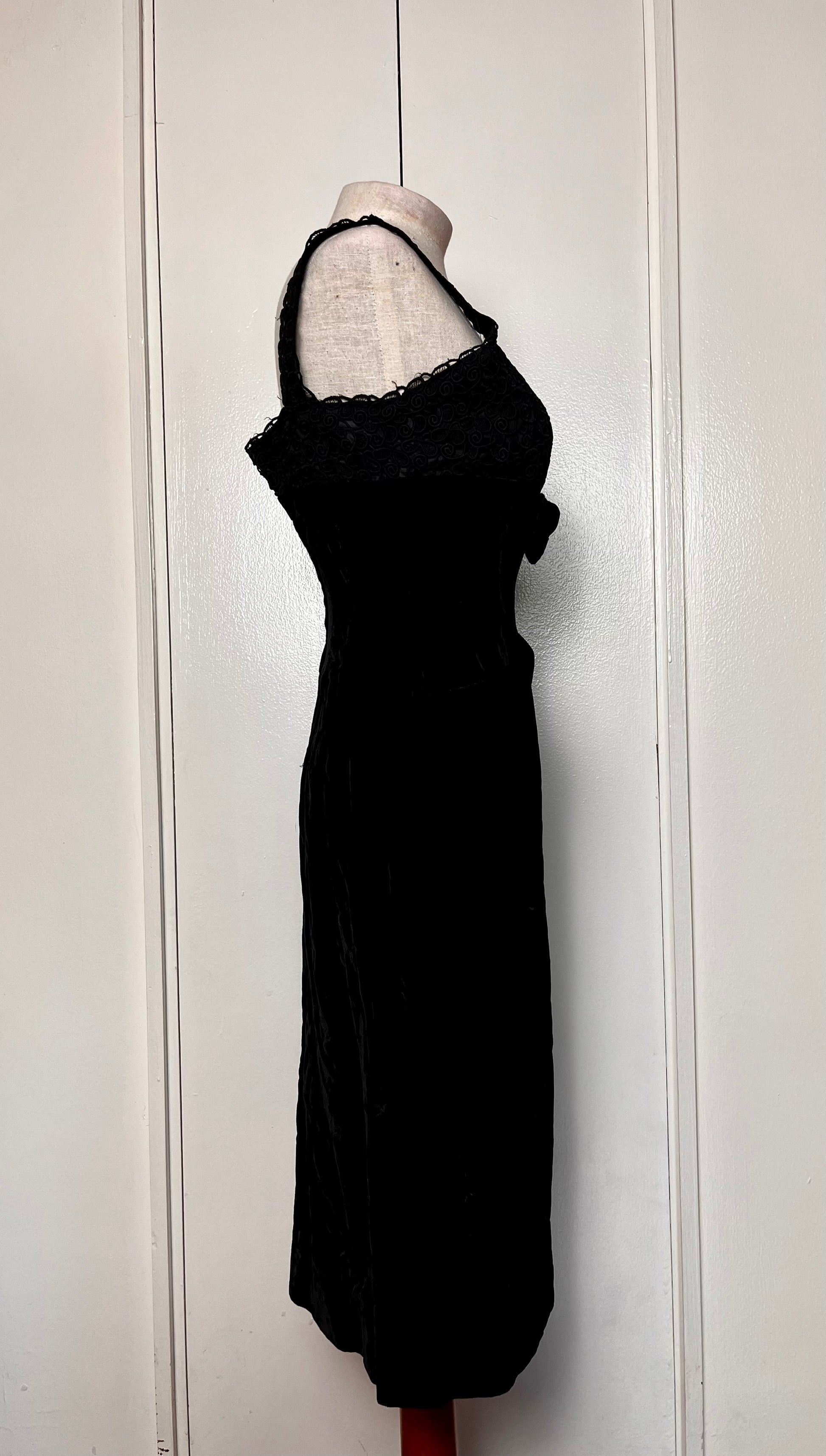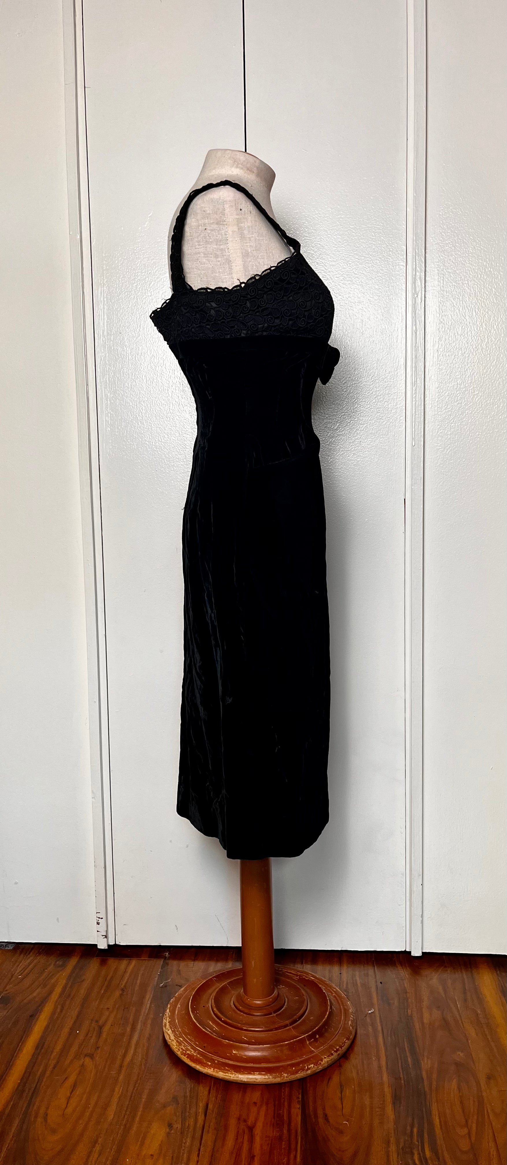 Good condition. Please see the last photo to view two areas on the front of the skirt where the pile of the velvet shows minor wear.
