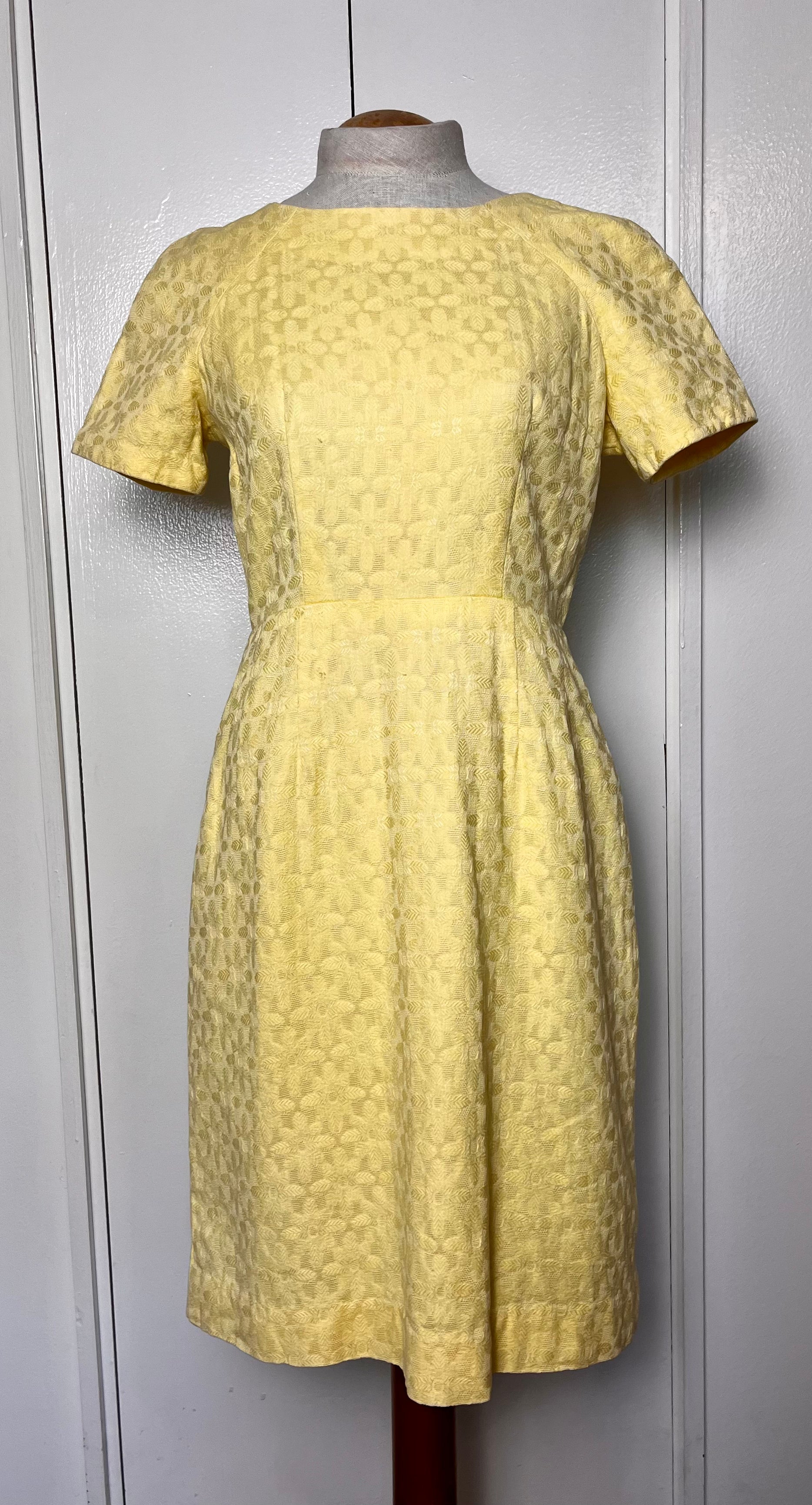 Vintage 1960’s Light Yellow Daisy Flower Short Sleeve Sheath Dress