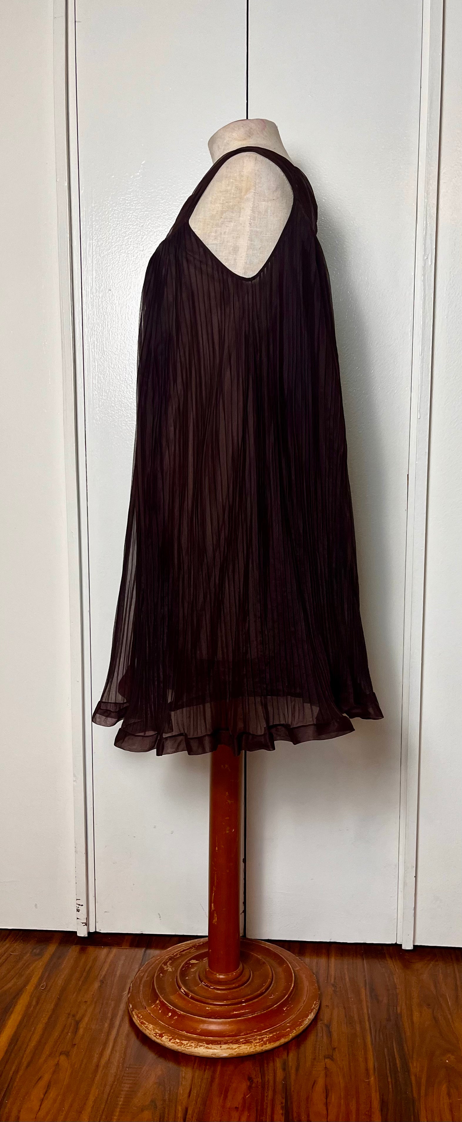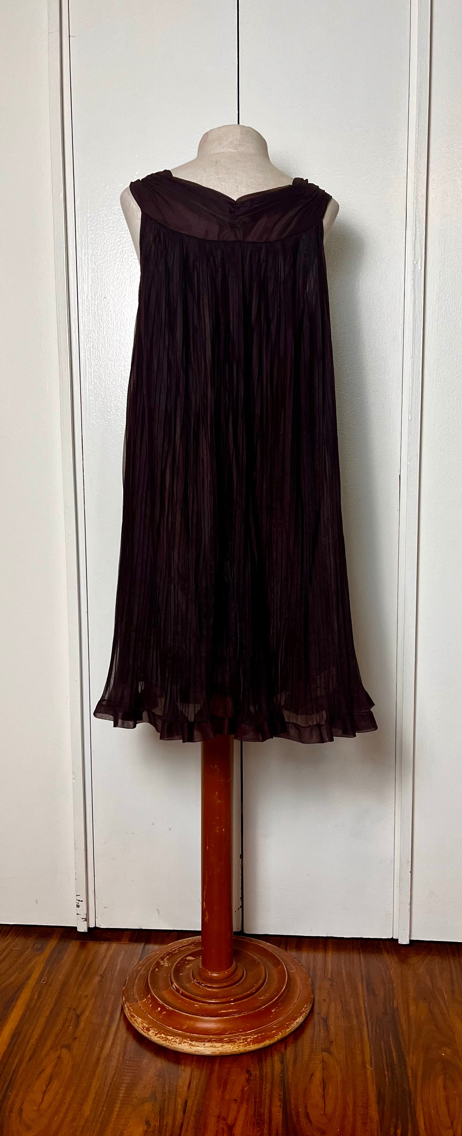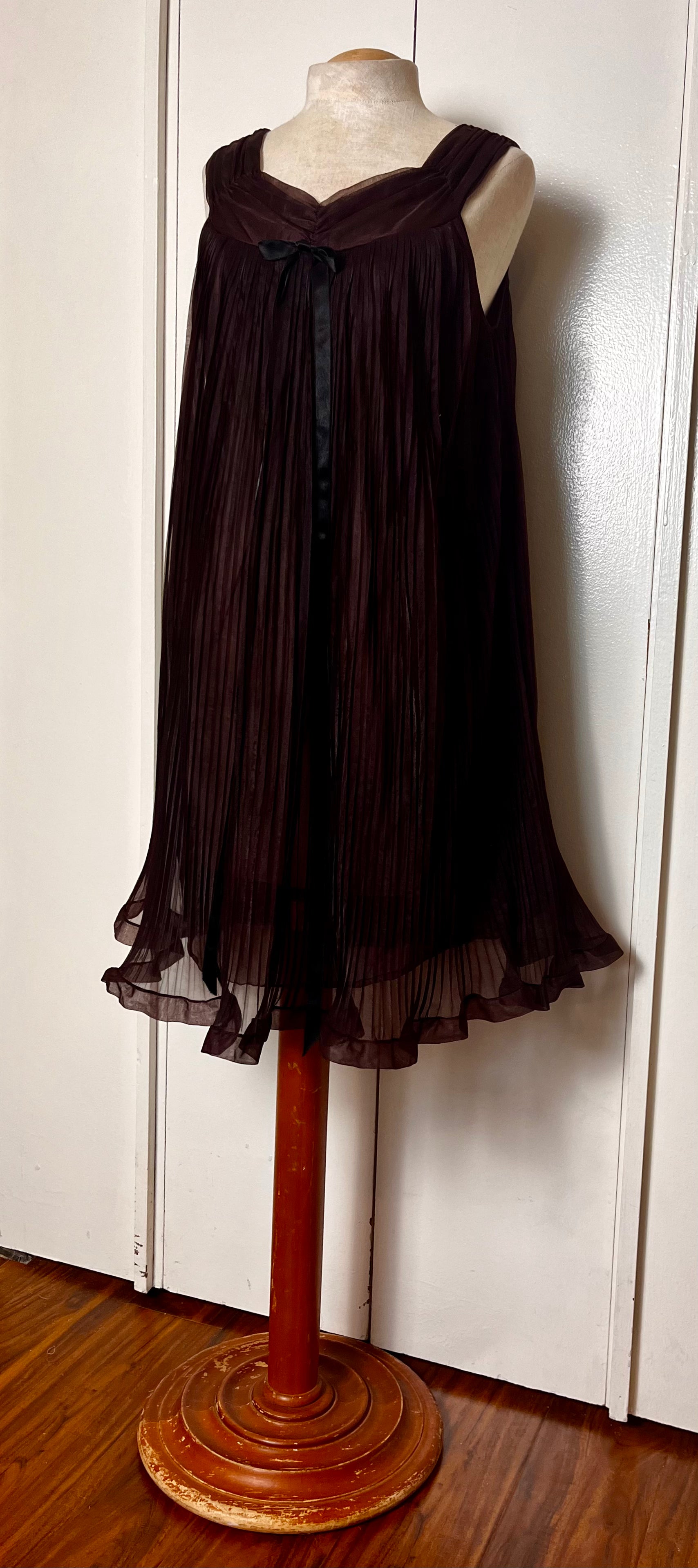 Vintage 1960's Chocolate Brown Pleated Chiffon Lingerie Dress