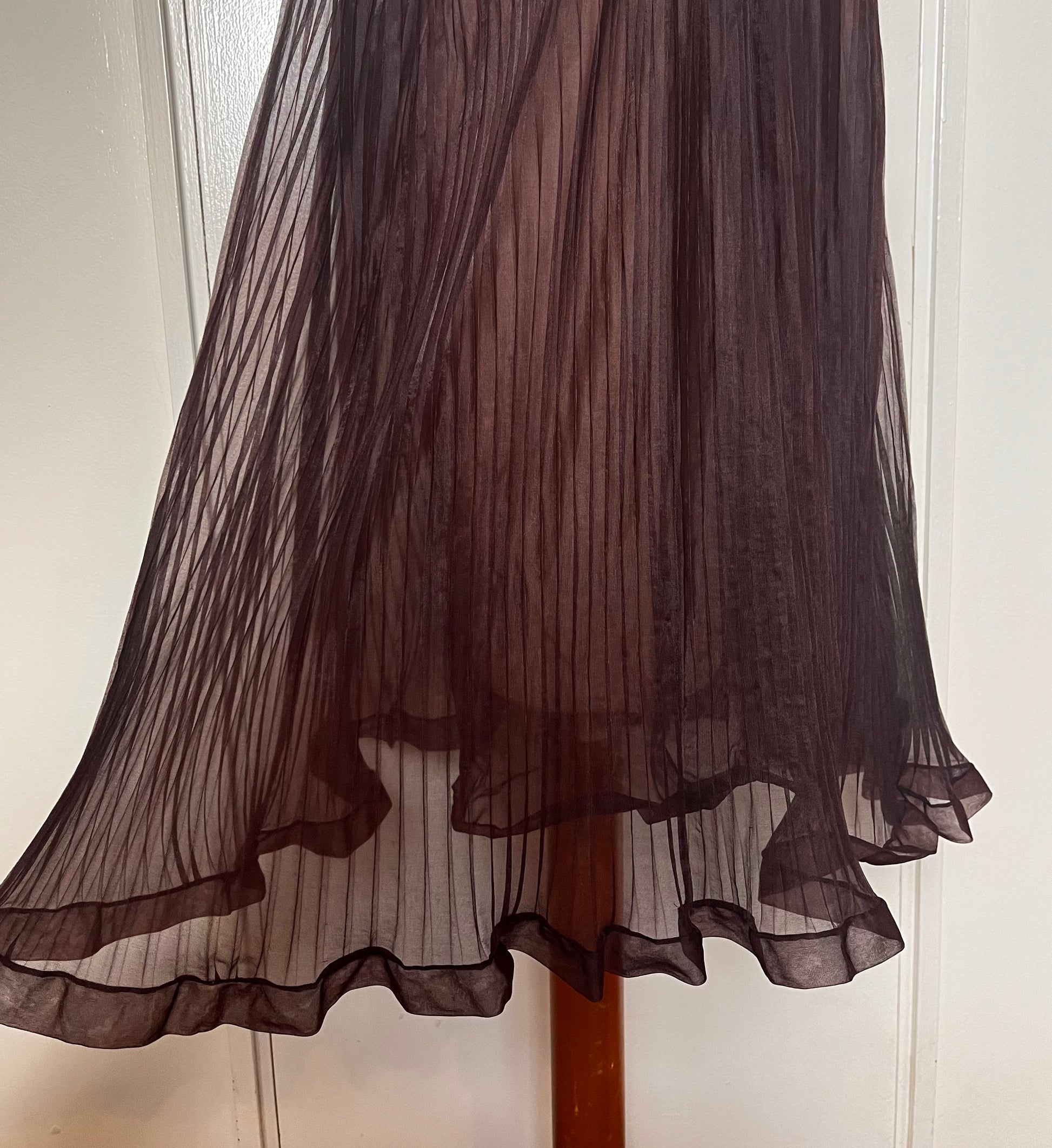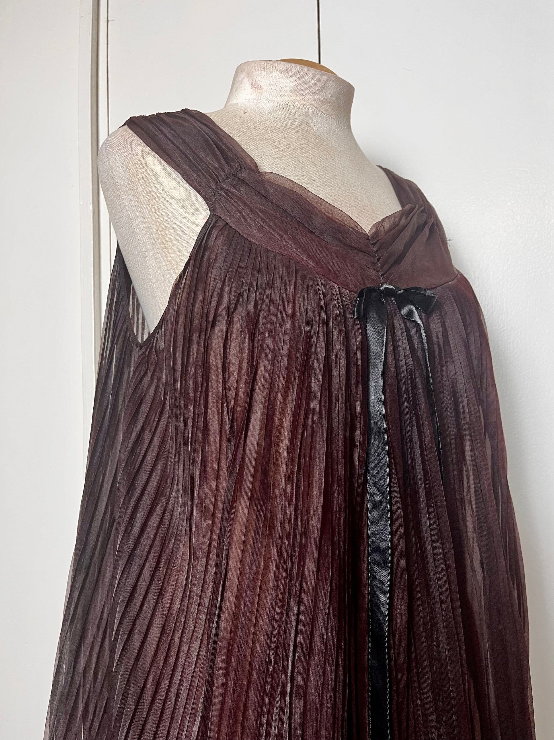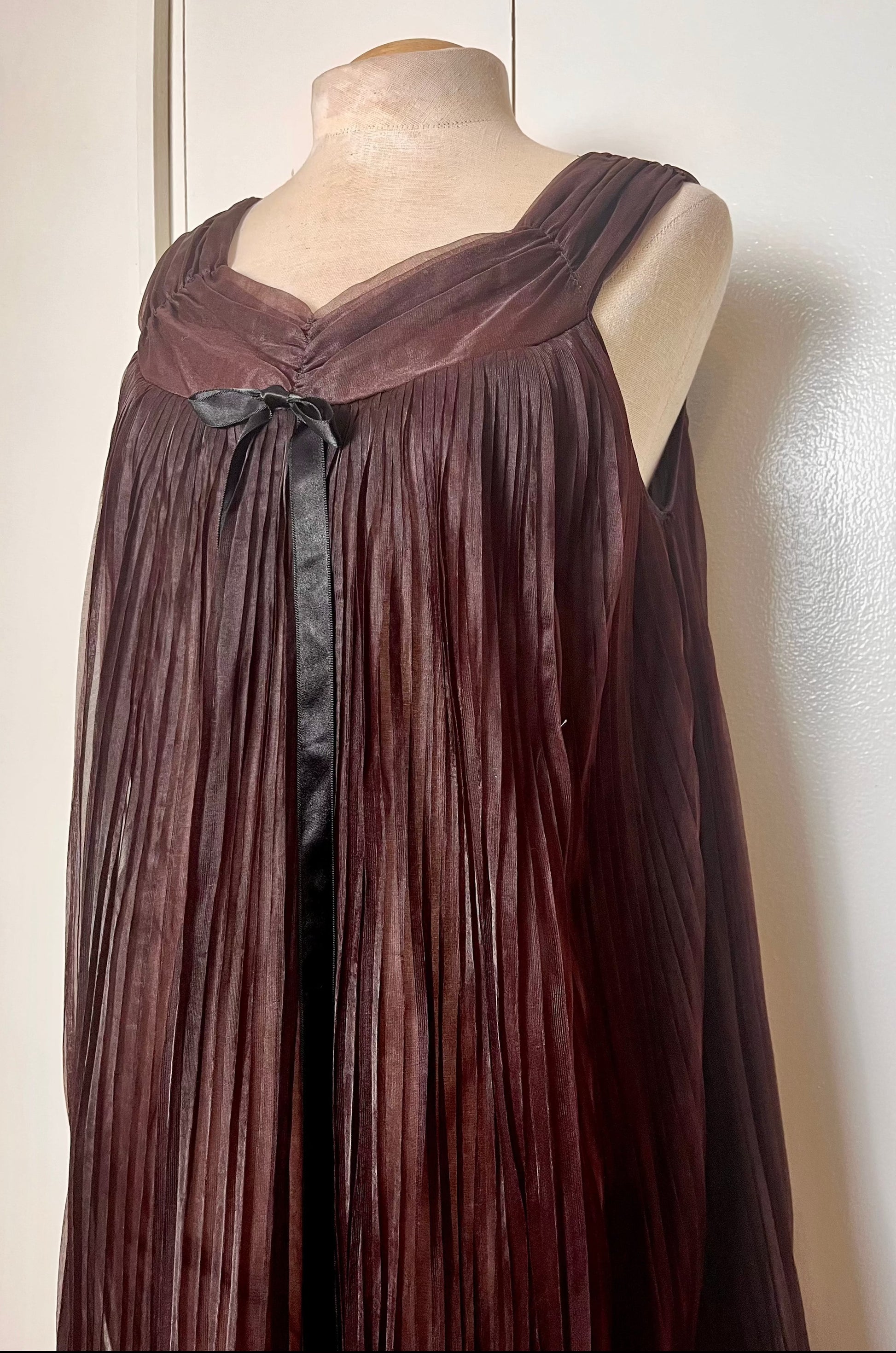 Vintage 1960's Chocolate Brown Pleated Chiffon Lingerie Dress