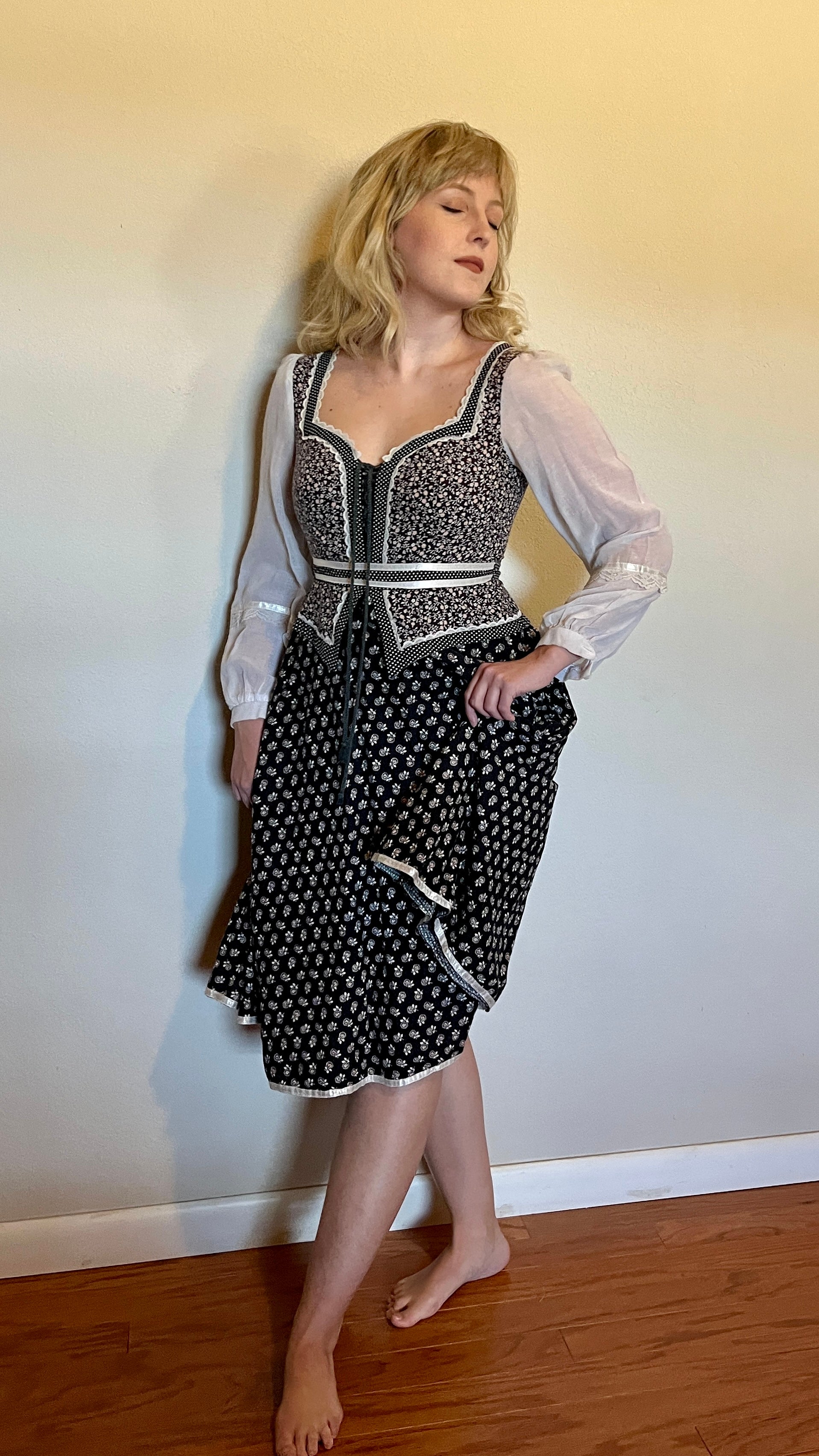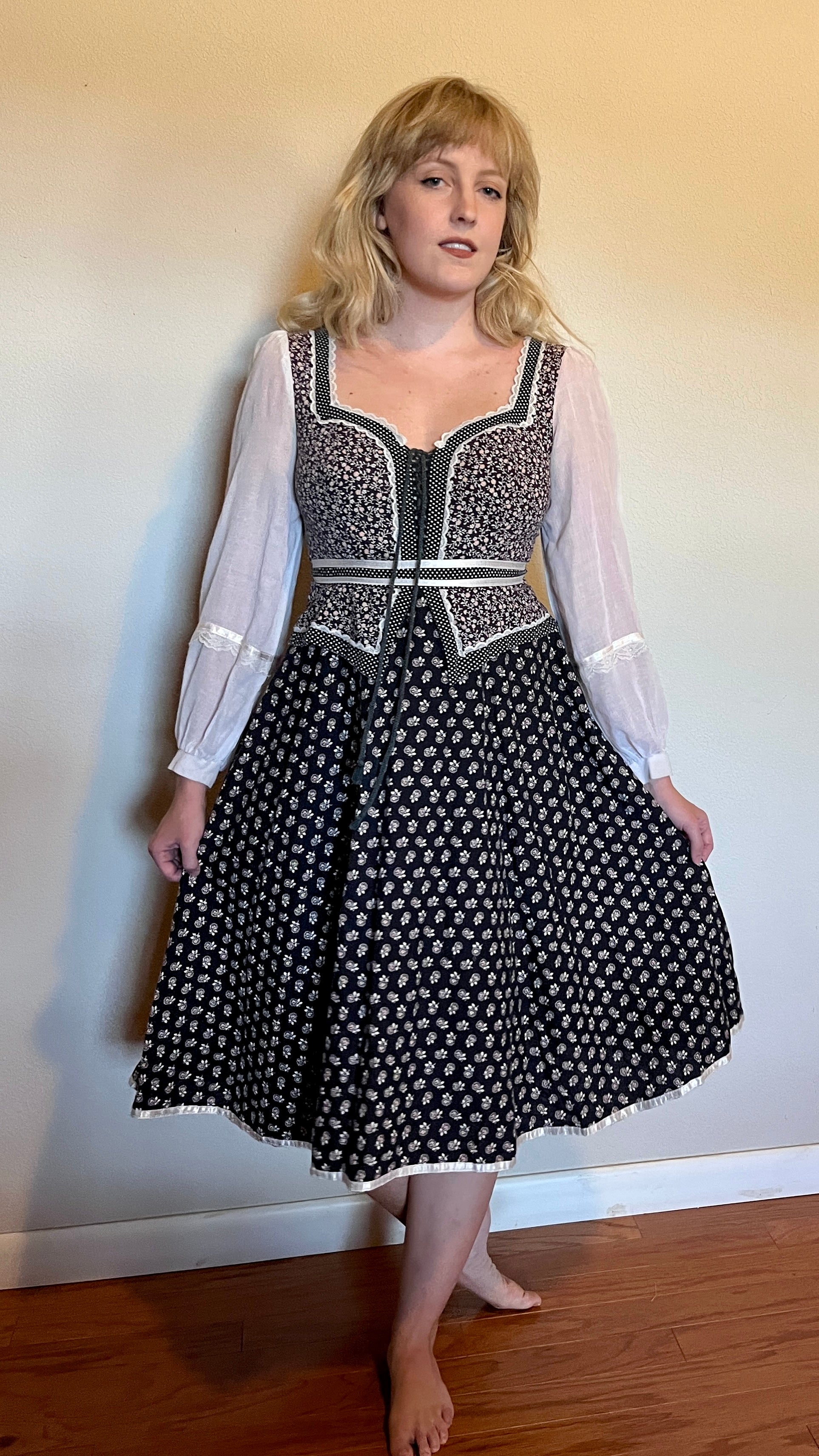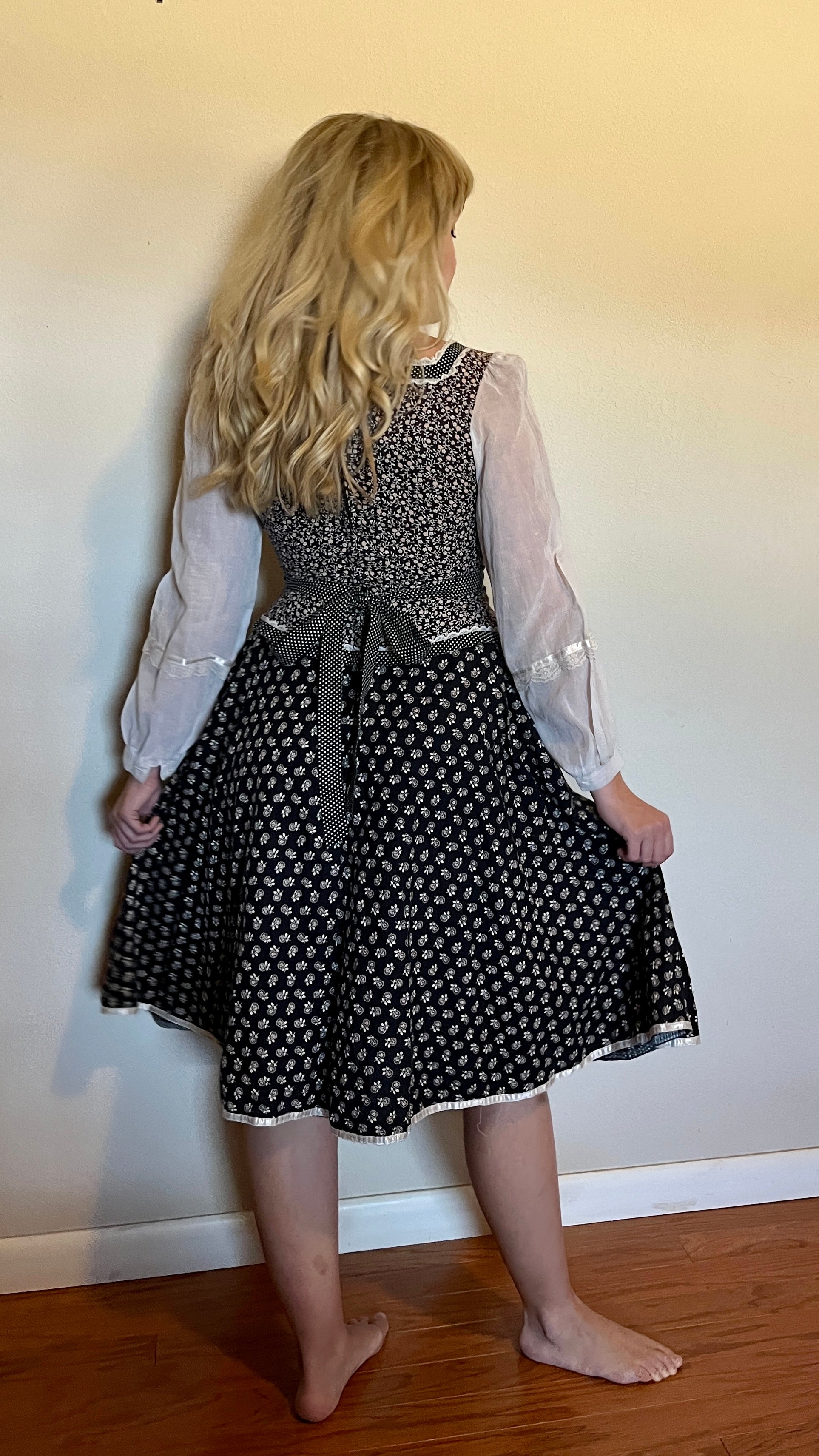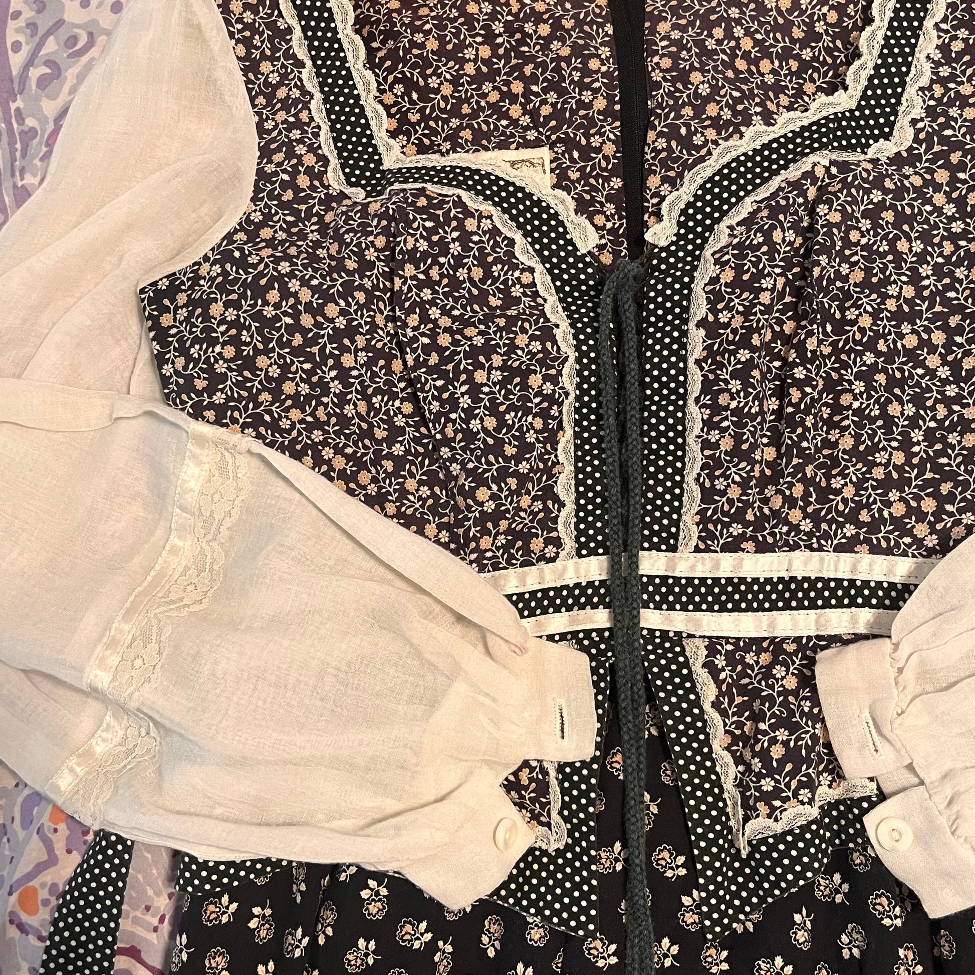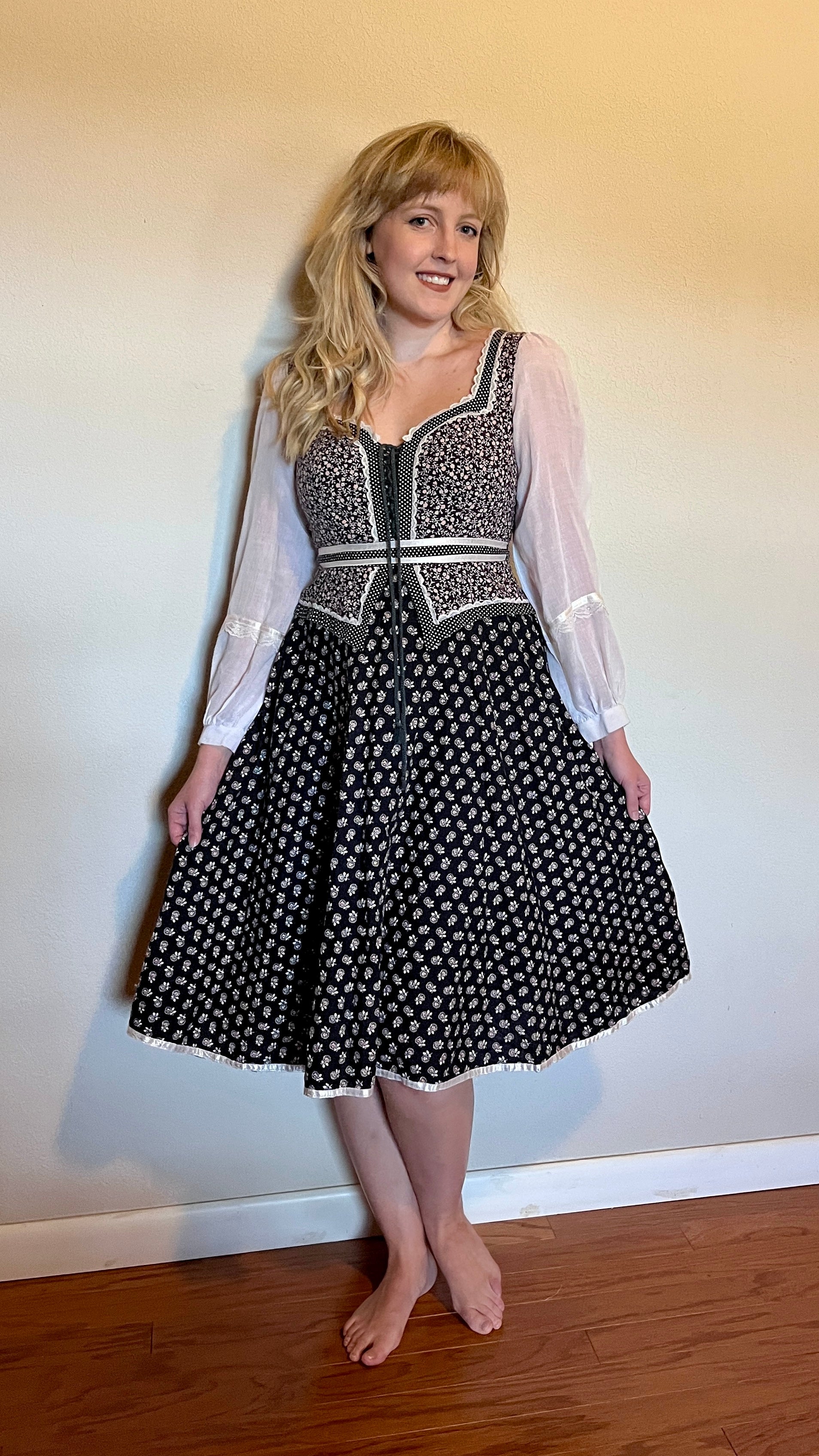 Vintage 1970’s "Gunne Sax by Jessica McClintock" Black & Purple Peplum Midi Dress (Altered)