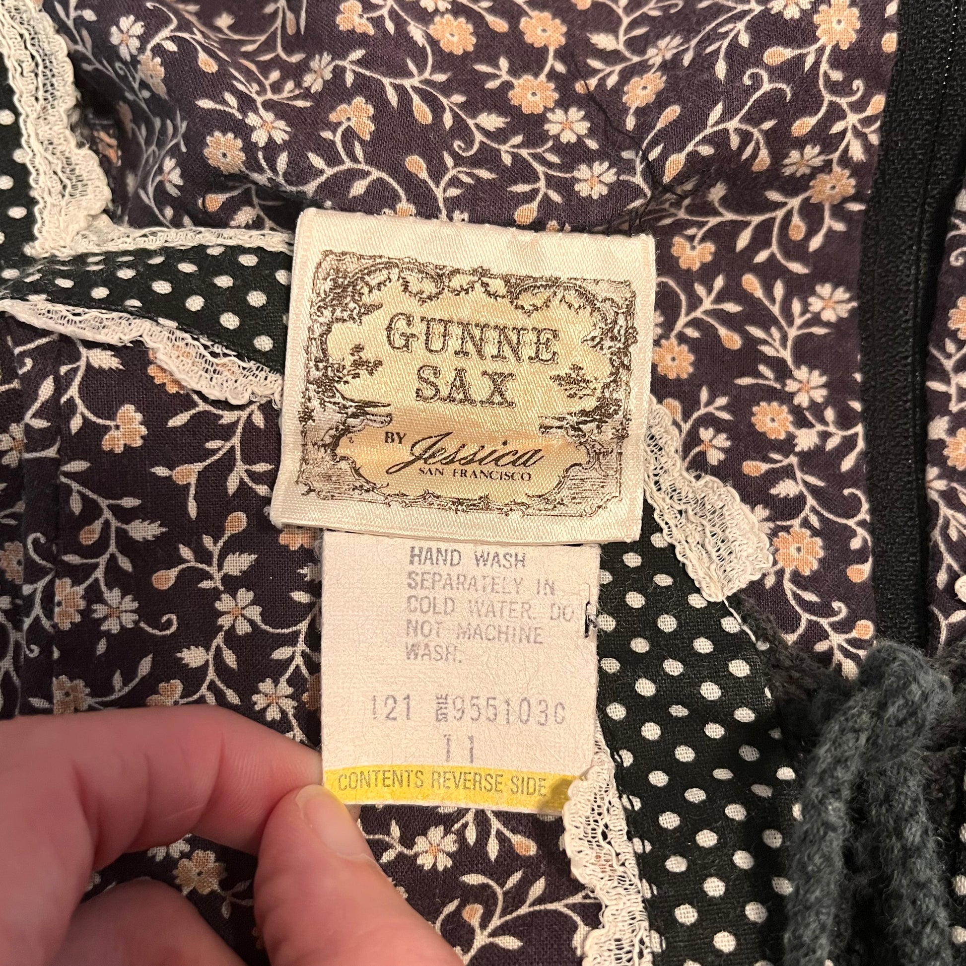 1970’s Gunne Sax Black/Purple Peplum Midi Dress