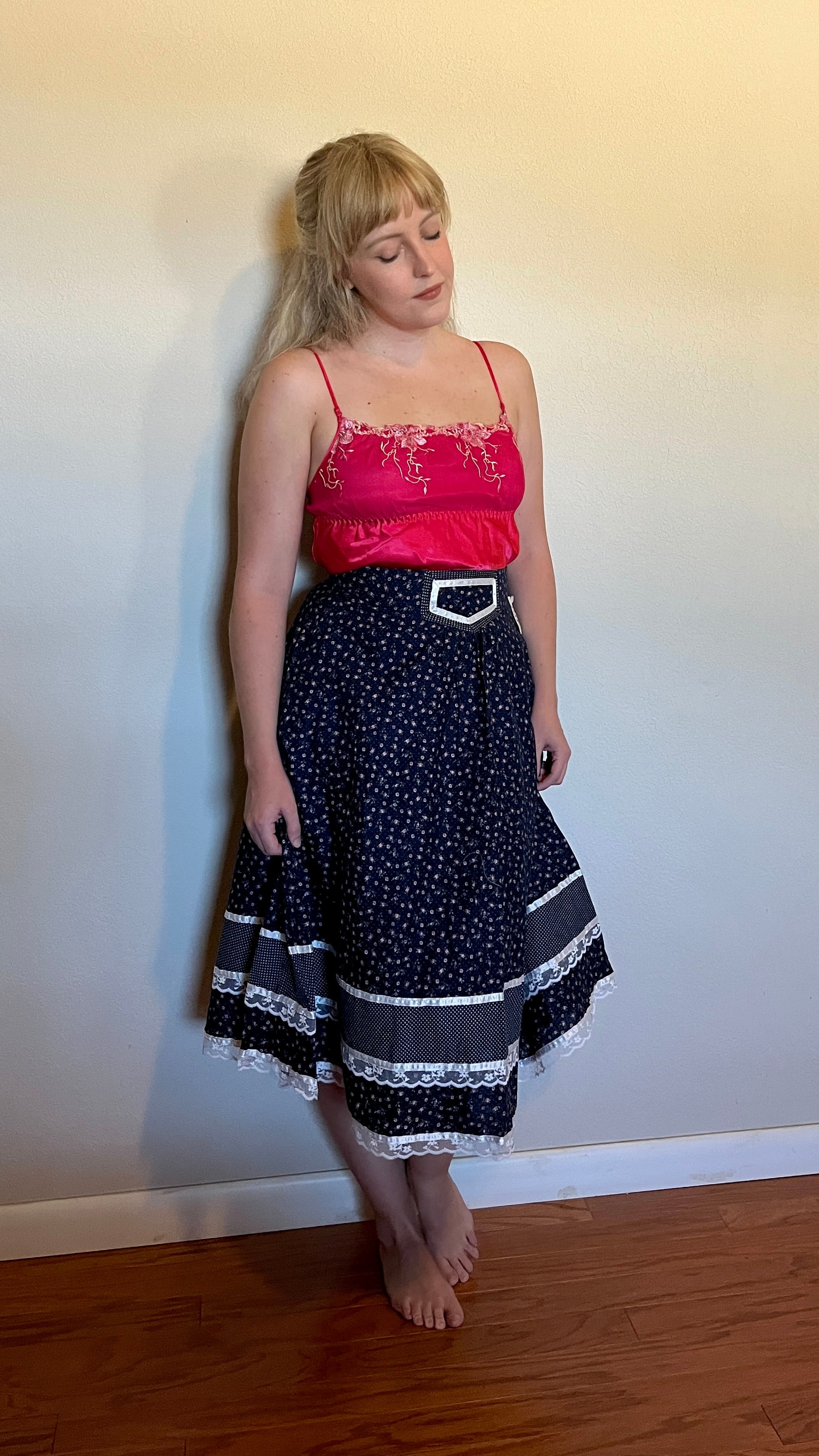 Vintage 1970’s "Gunne Sax by Jessica McClintock" Blue Calico Midi Skirt