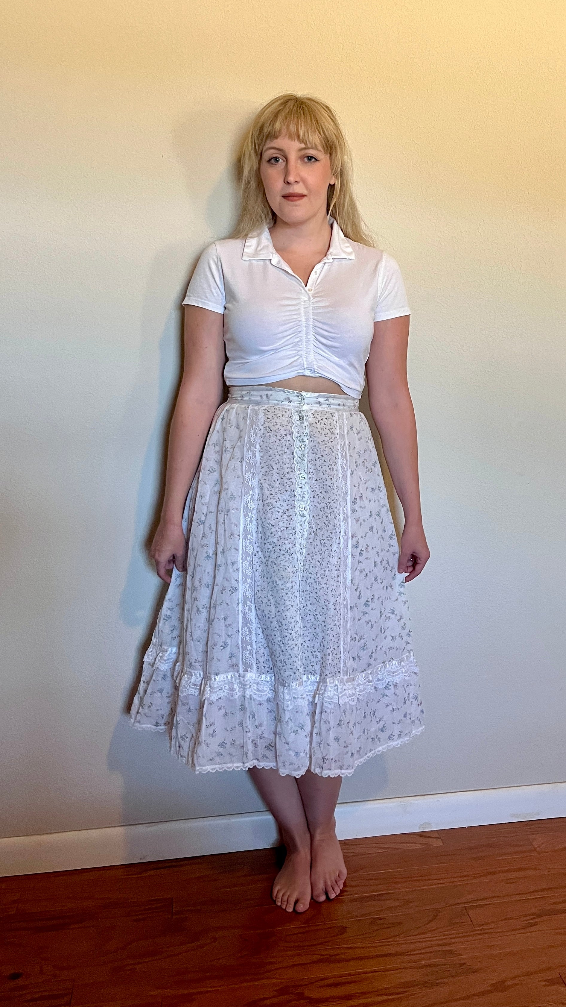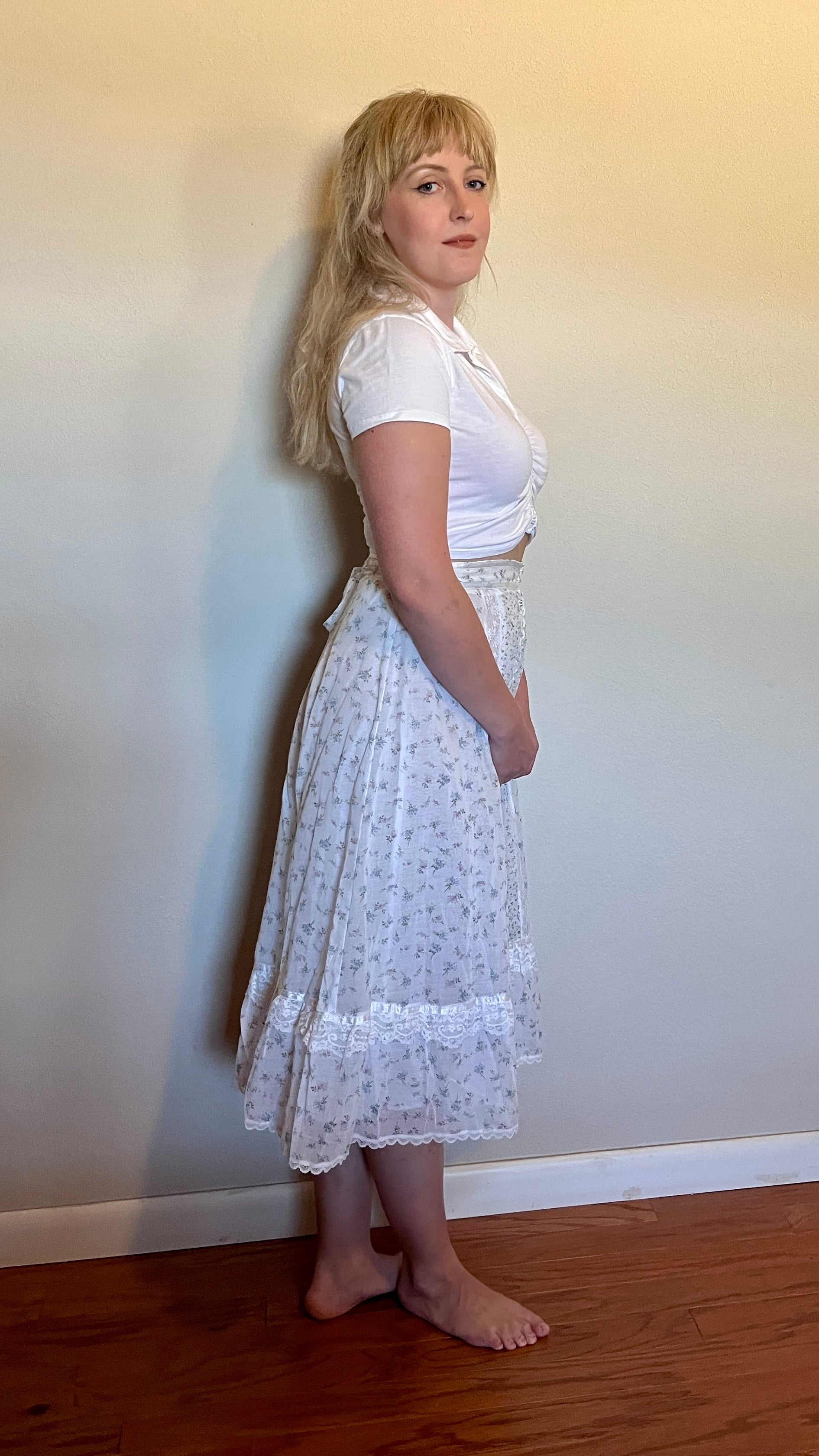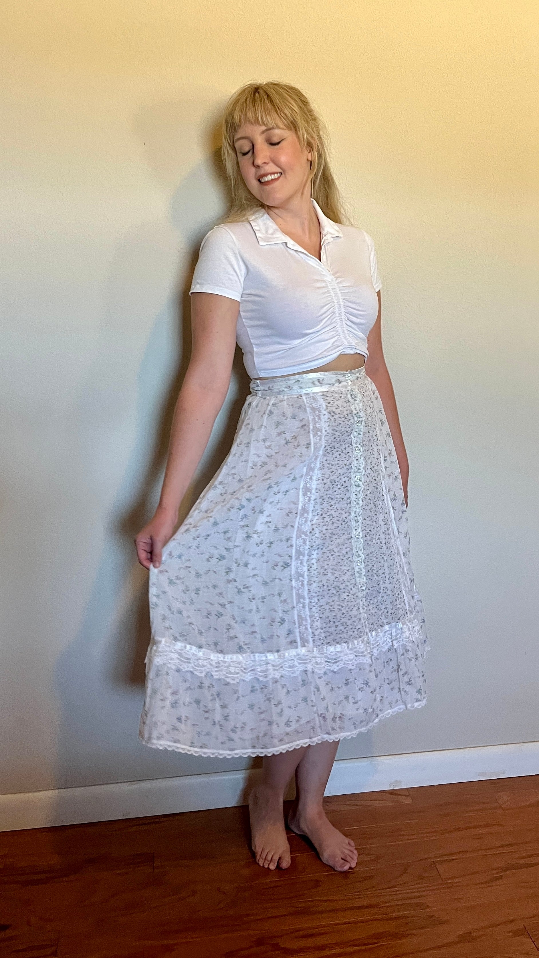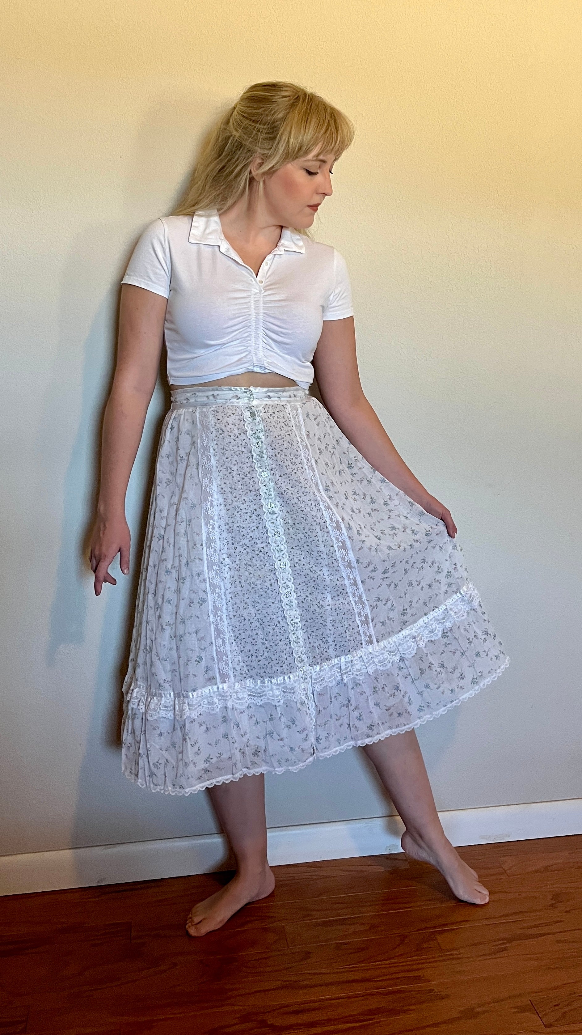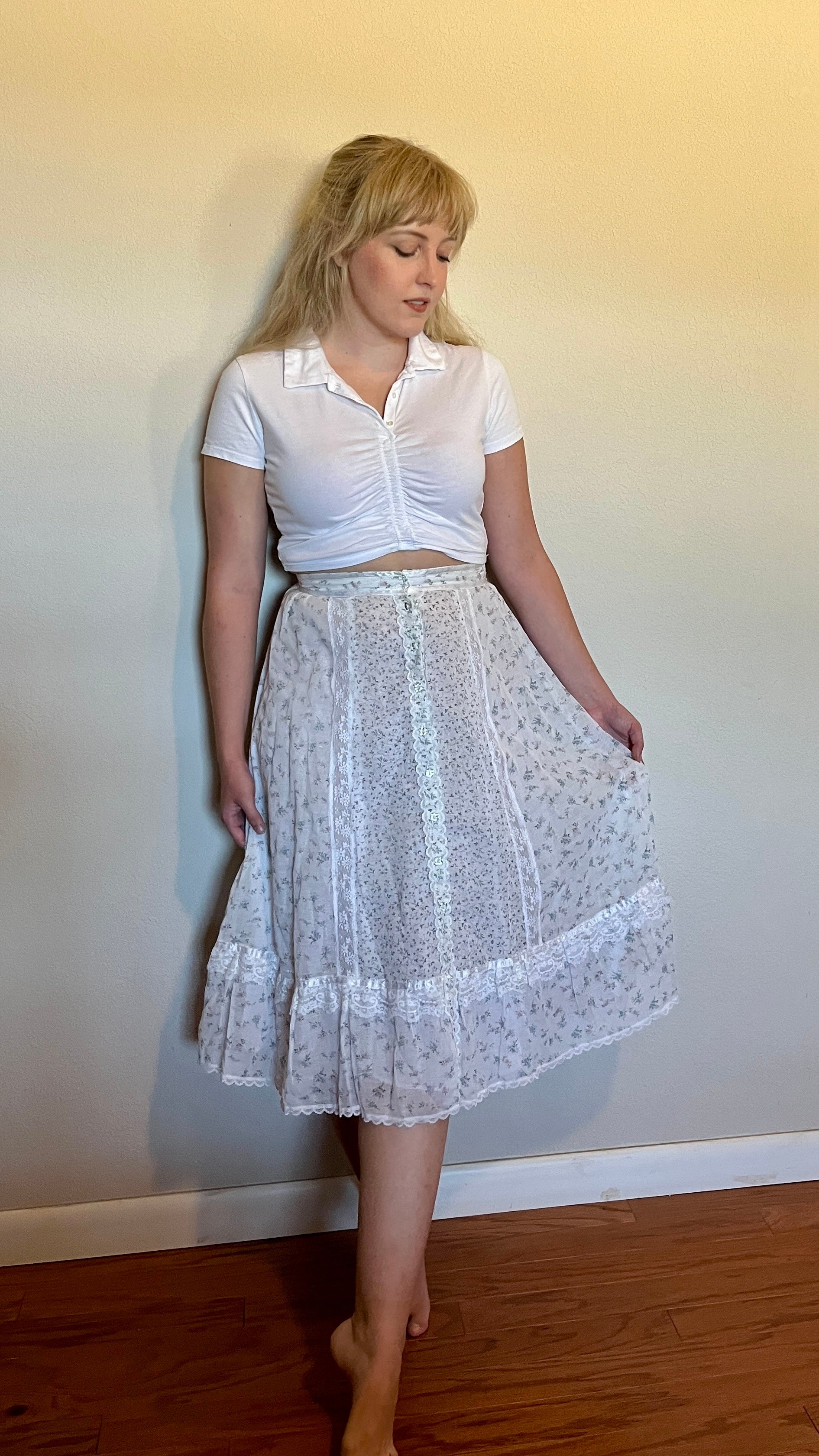 Vintage 1970’s "Gunne Sax by Jessica McClintock" White Floral Midi Skirt