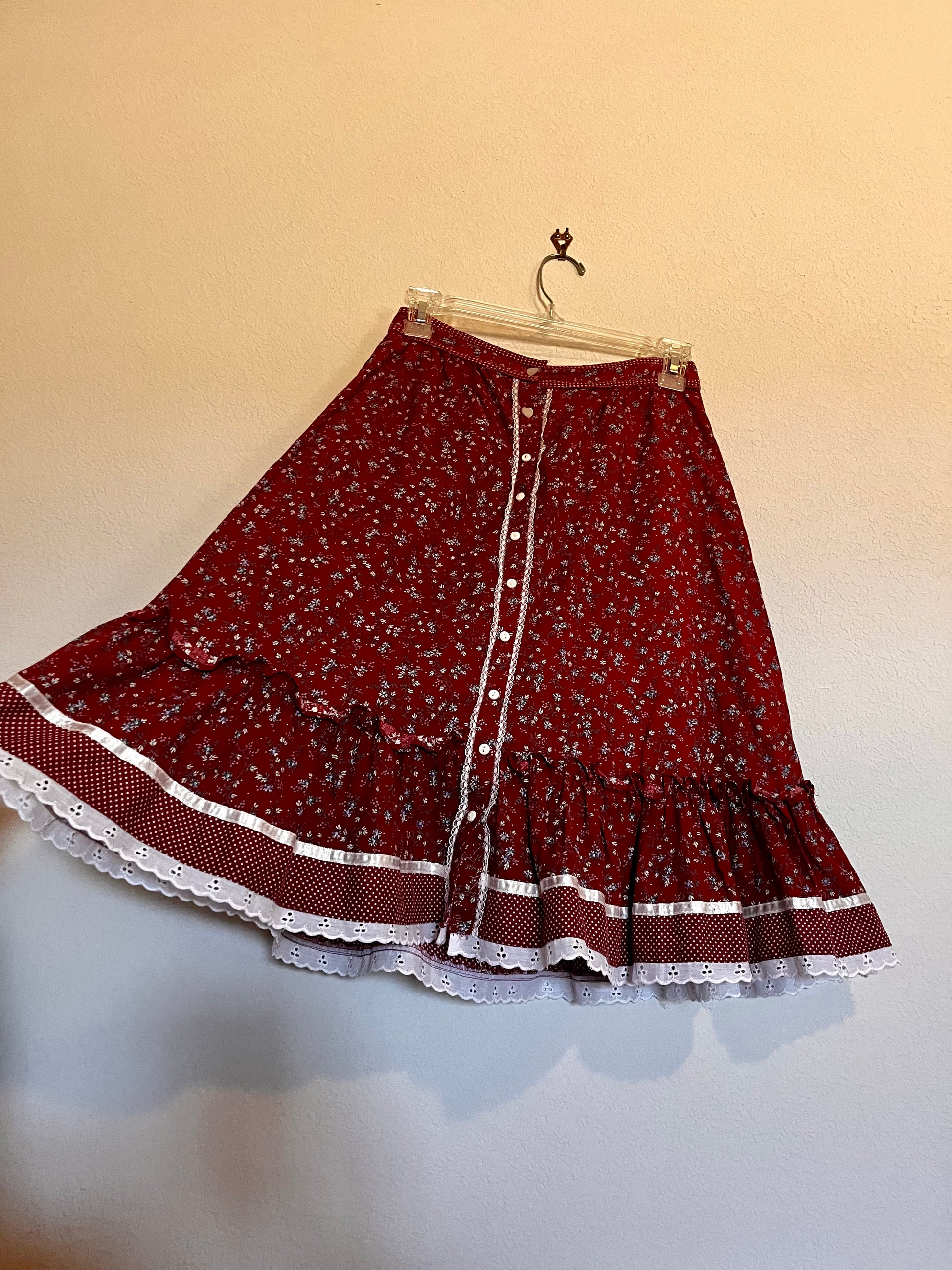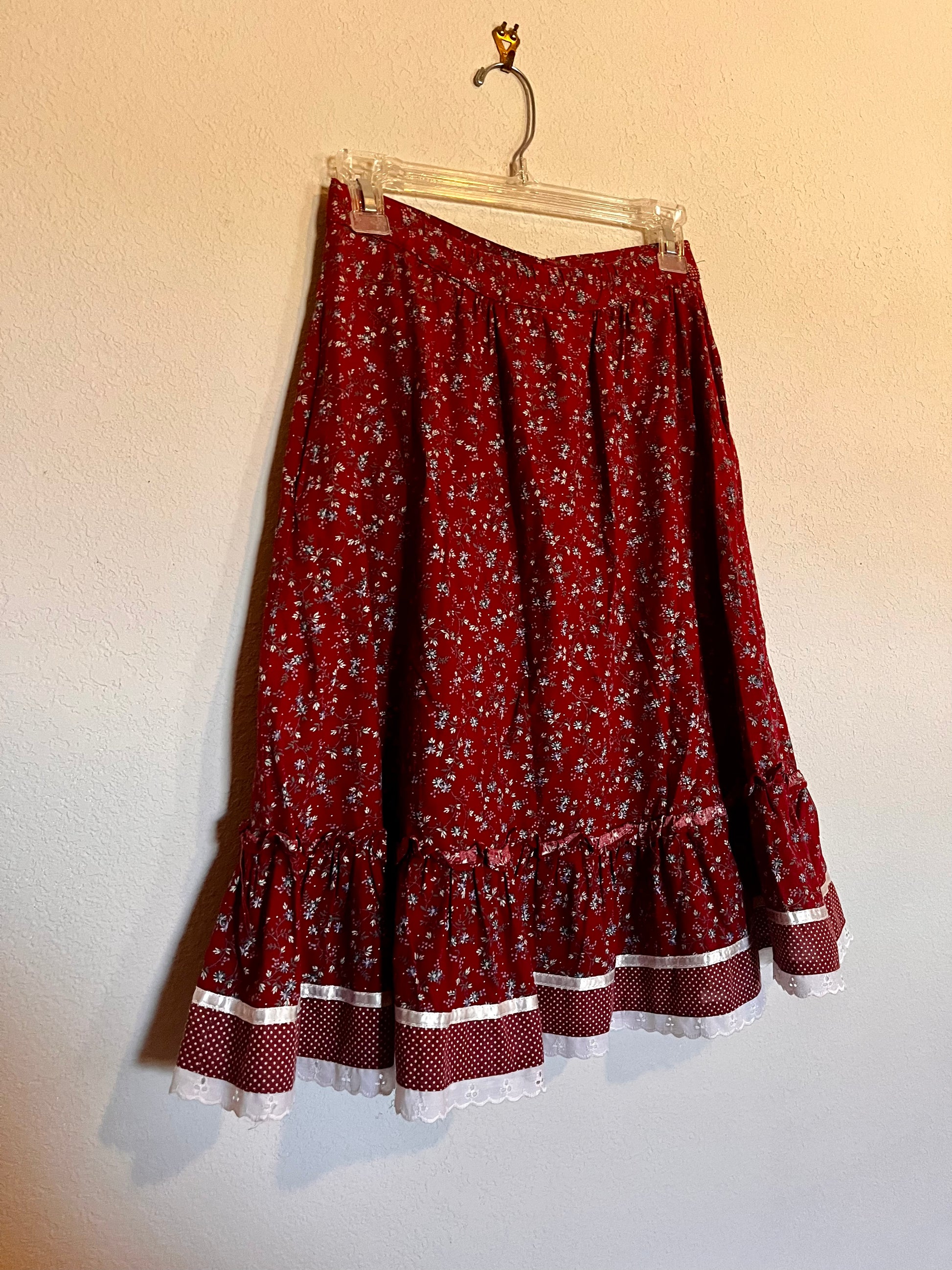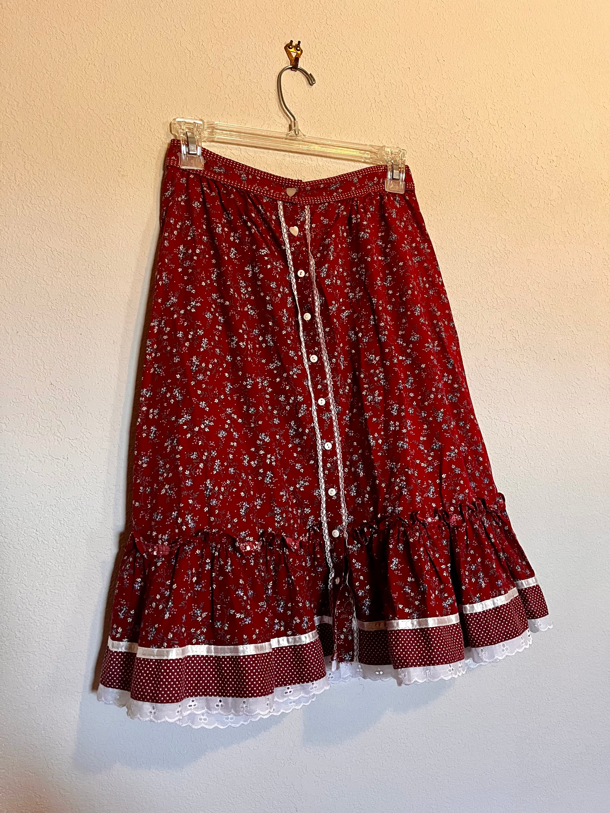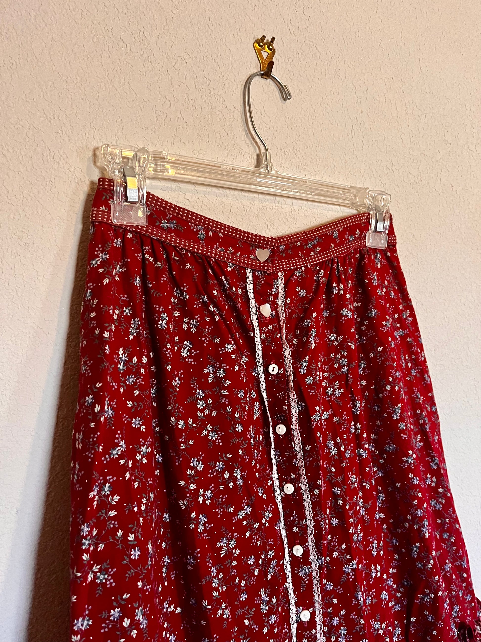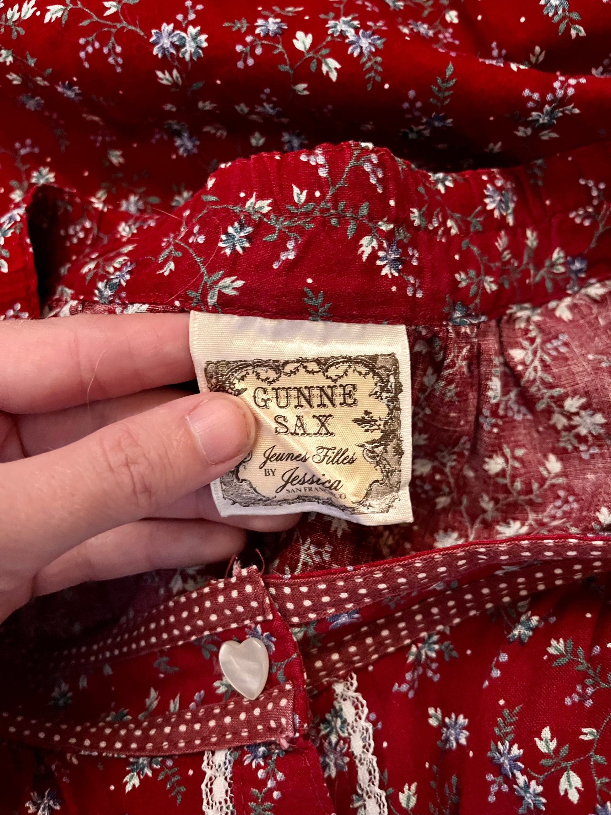 Vintage 1970’s "Gunne Sax by Jessica McClintock" (Jeunes filles) Red Calico Skirt