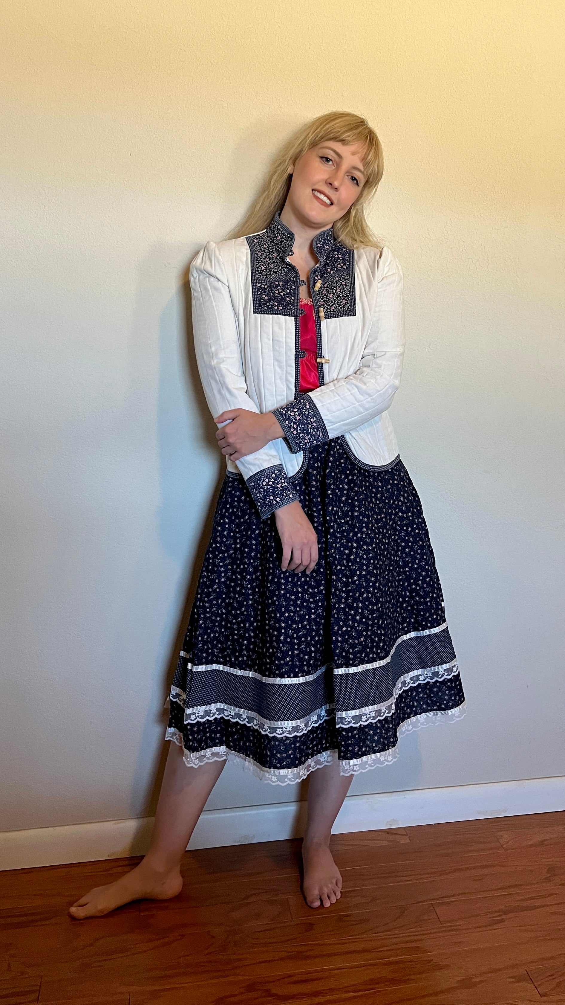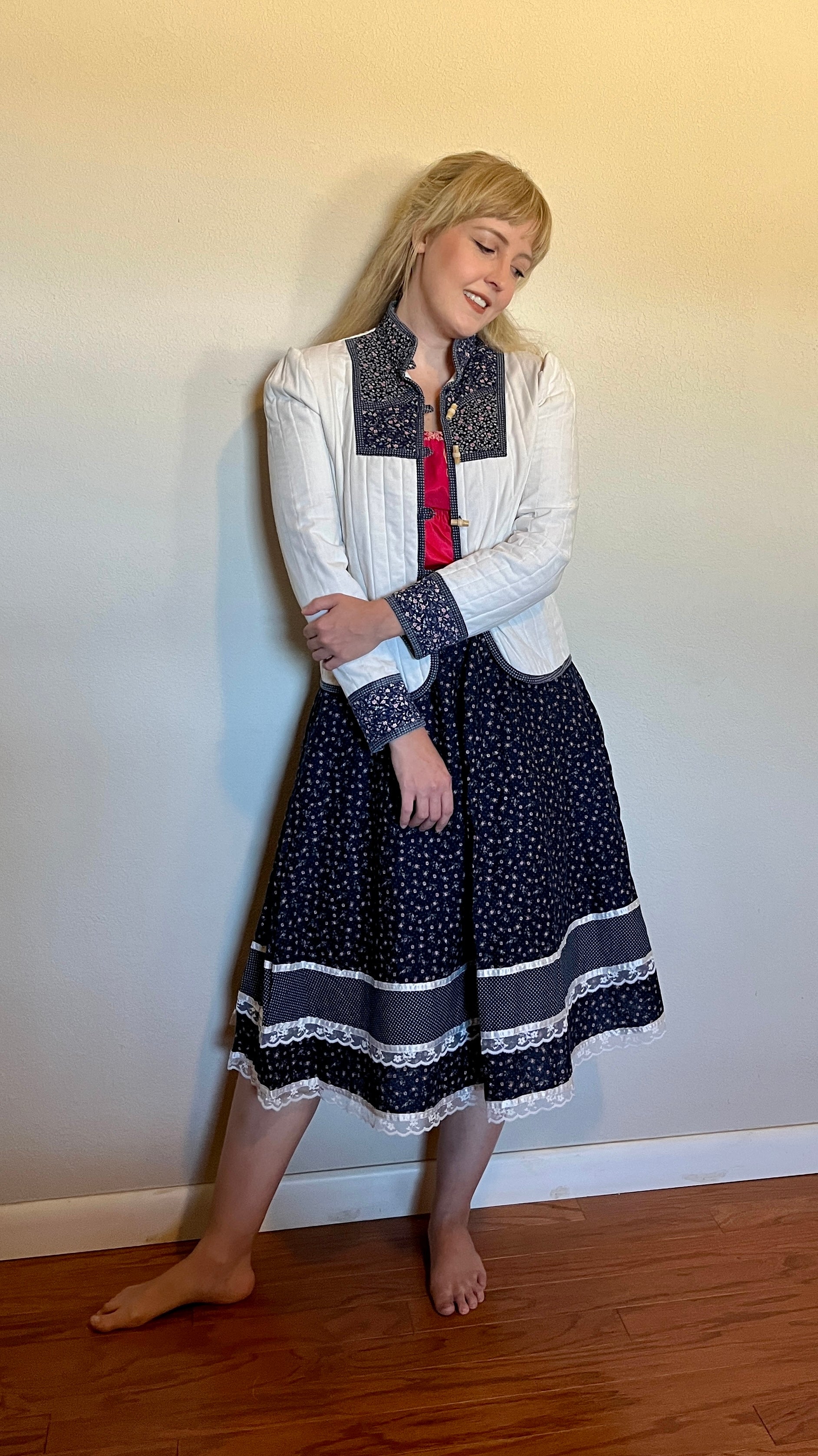 Vintage 1970’s Gunne Sax by Jessica McClintock Toggle-Front White & Blue Calico Jacket