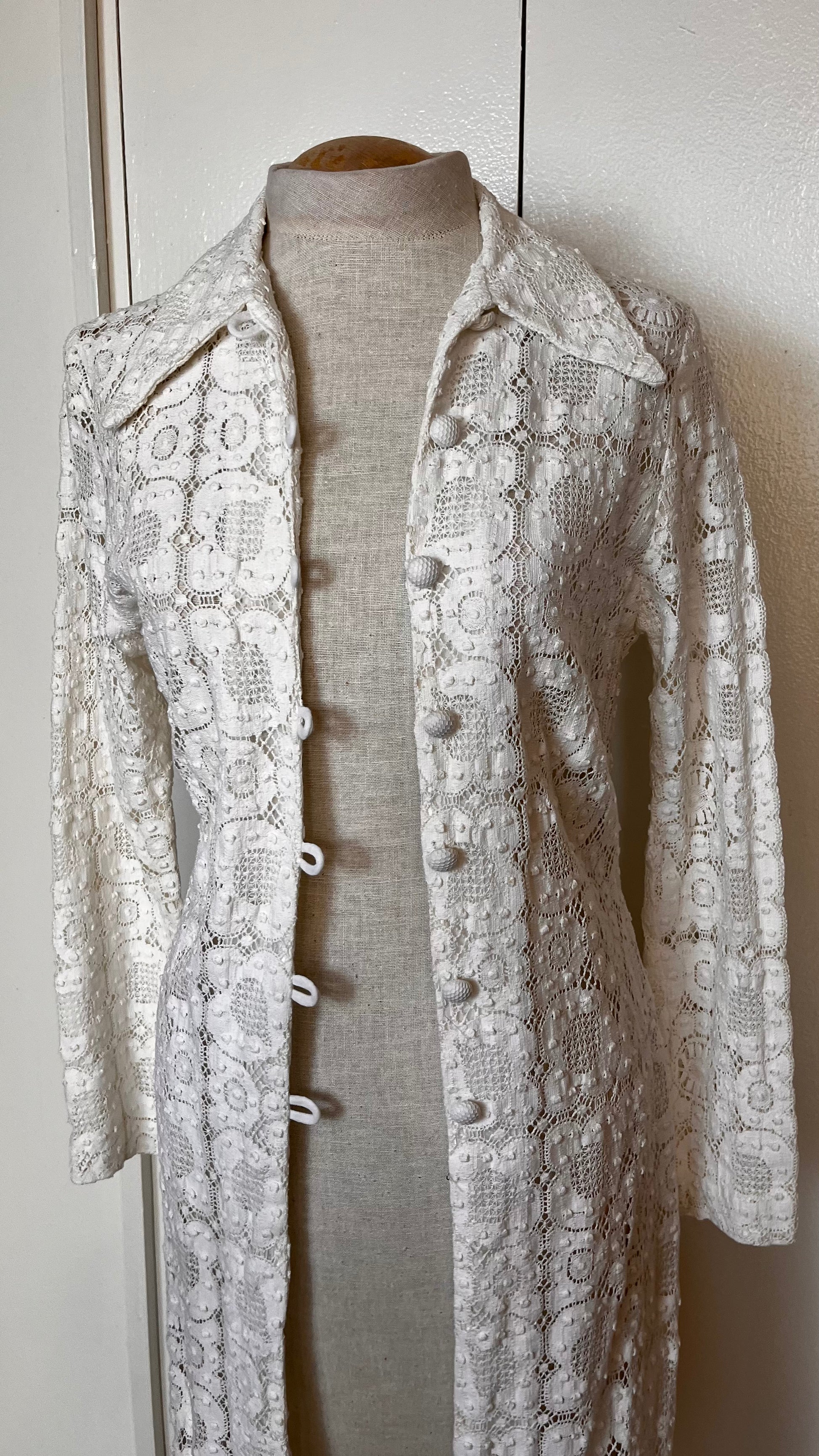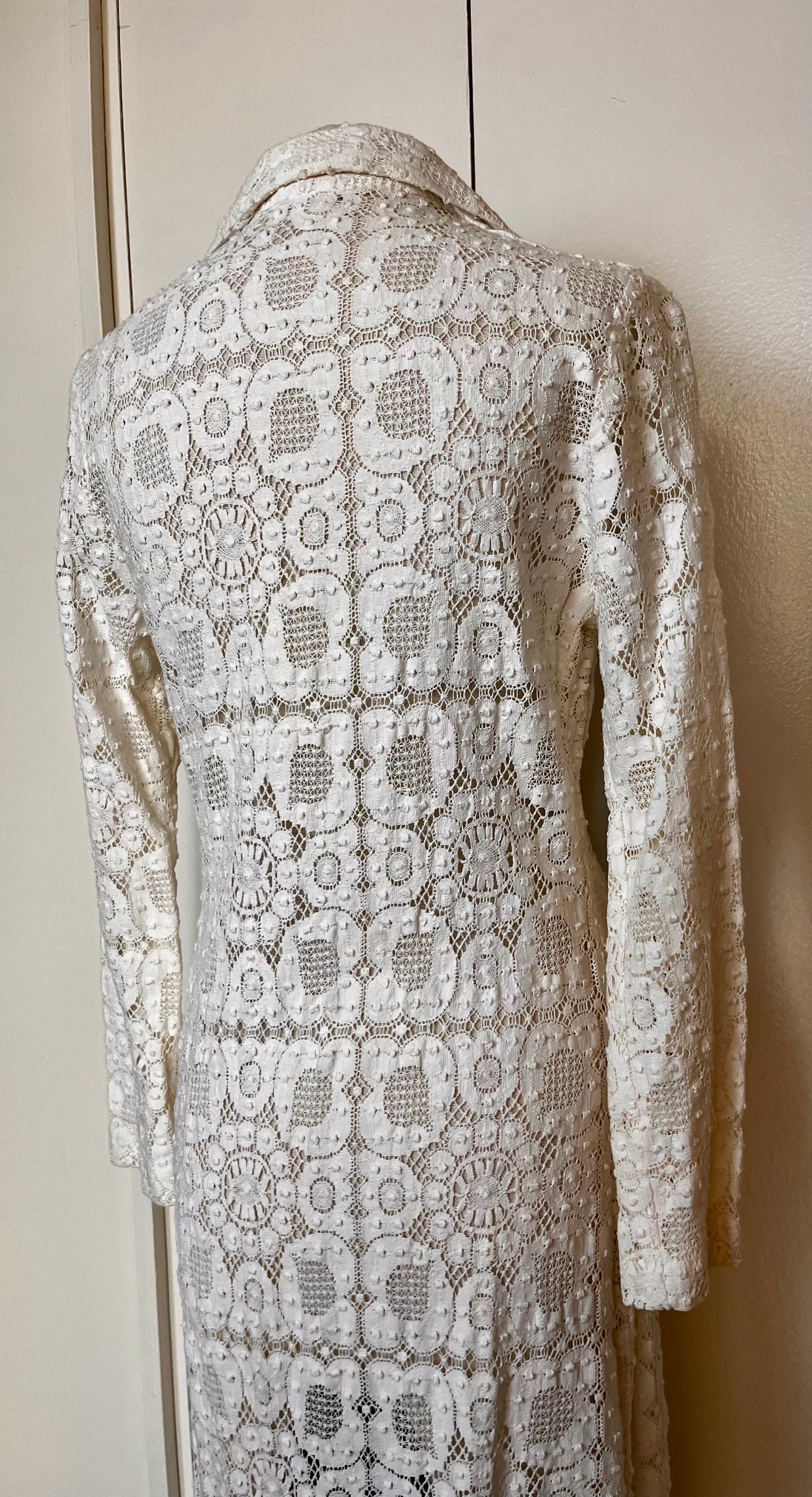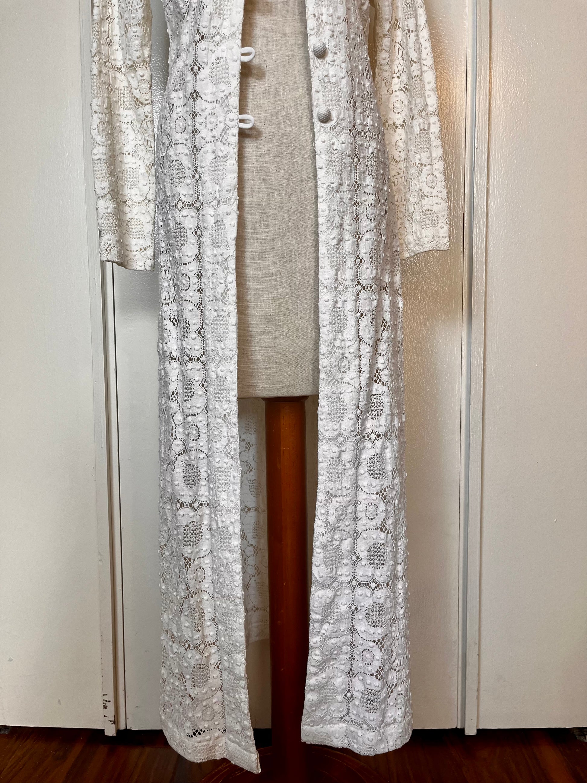 Vintage 1970’s "Young Dimensions" Crochet Lace Long Sleeve Duster