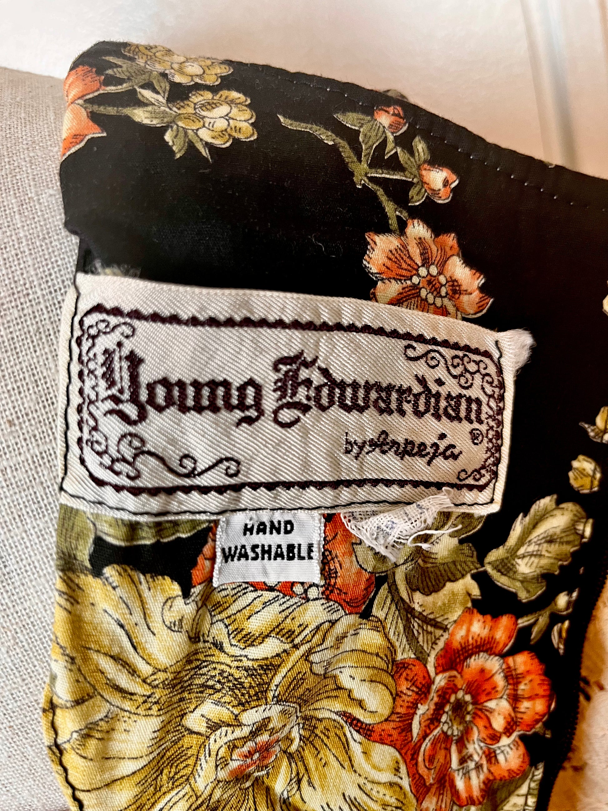 Vintage 1970’s "Young Edwardian by Arpeja" Black Floral Long Sleeve Maxi Dress