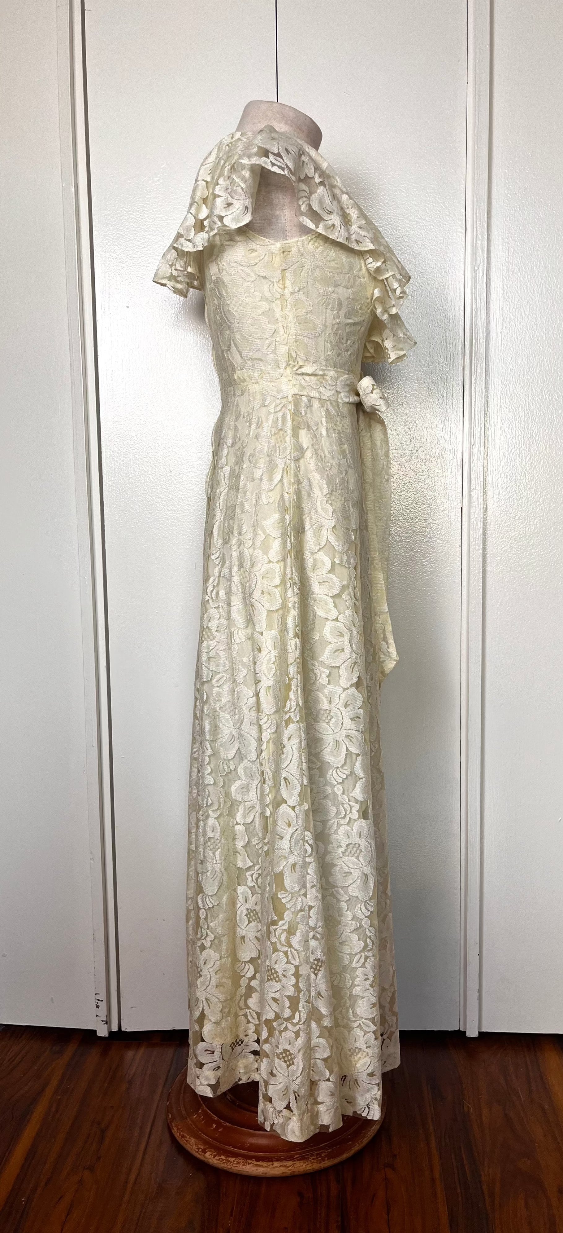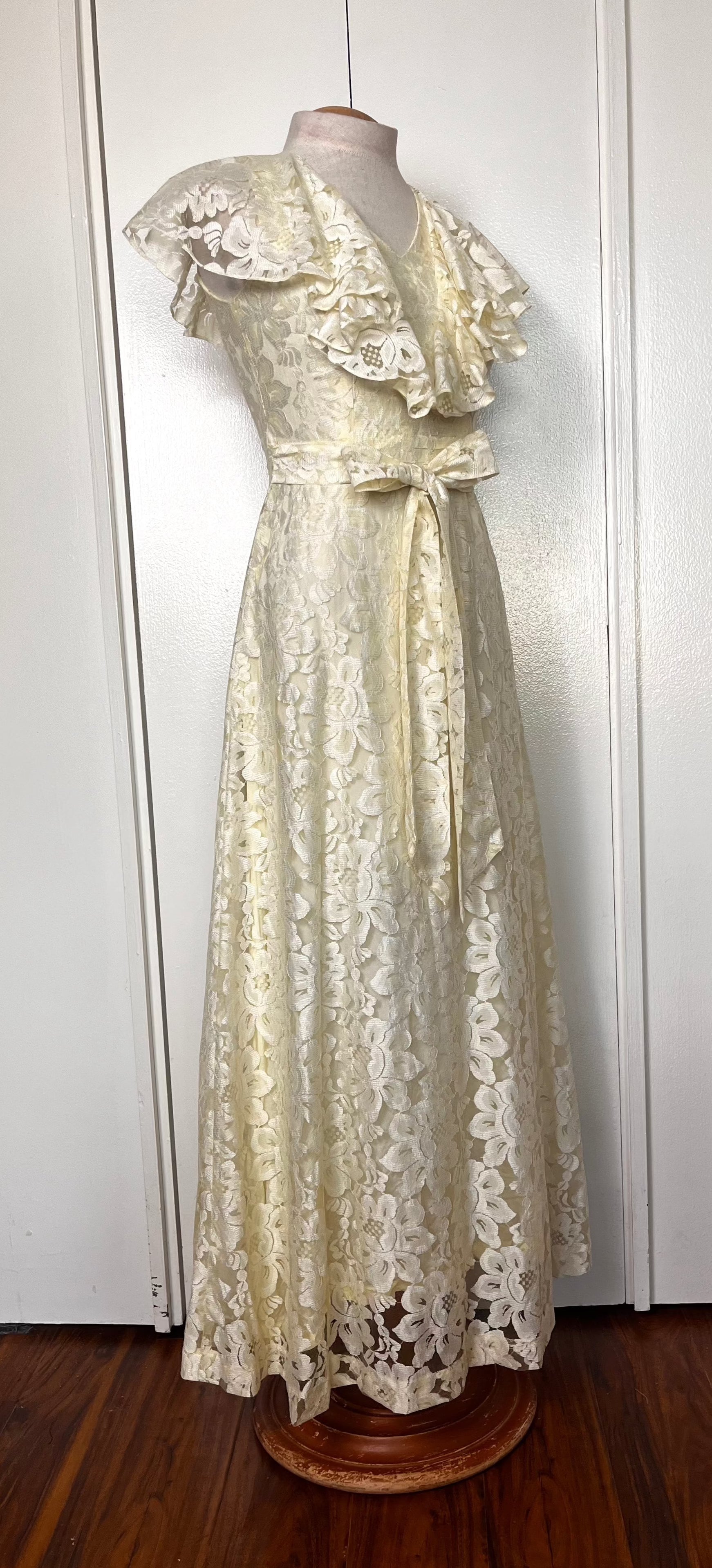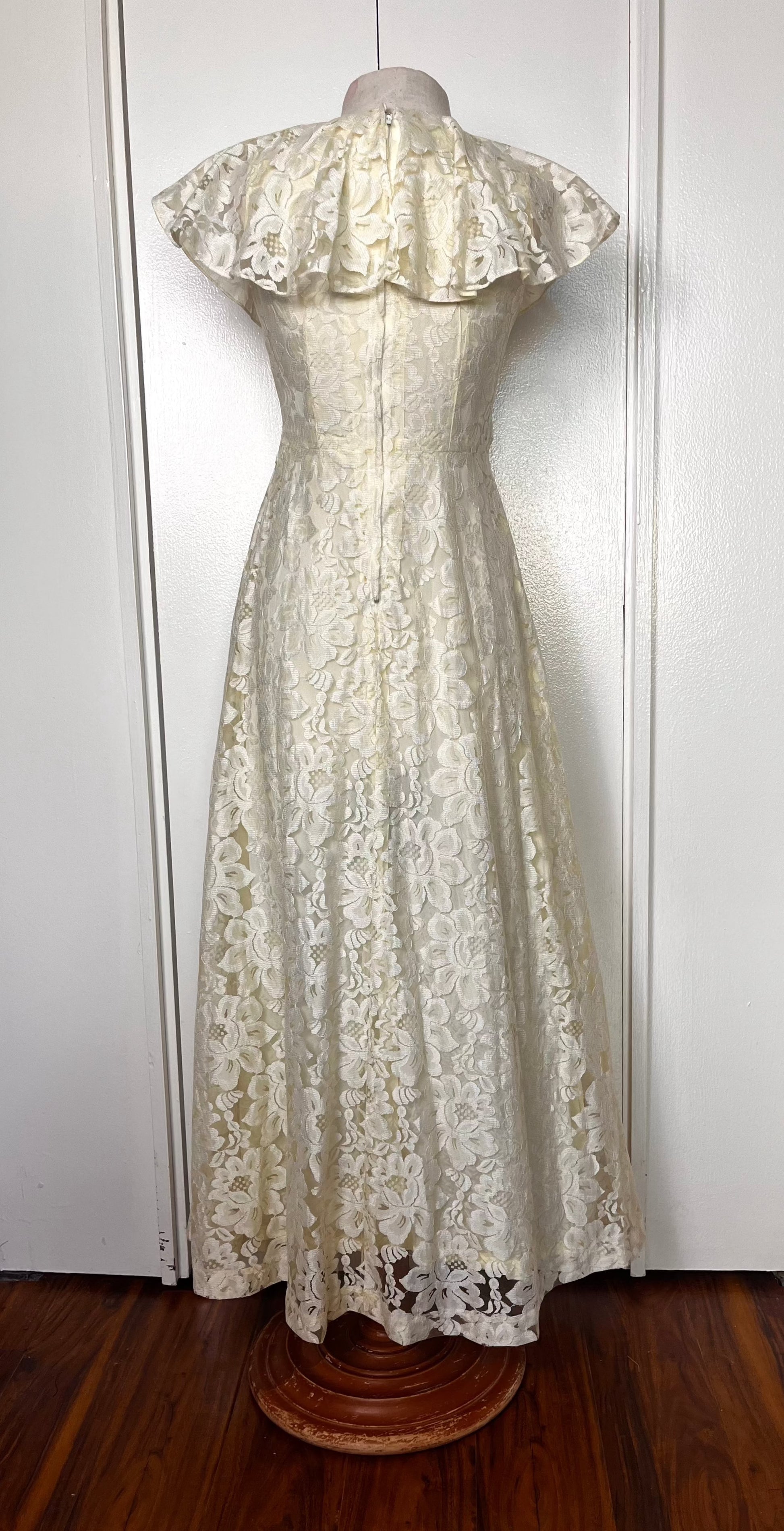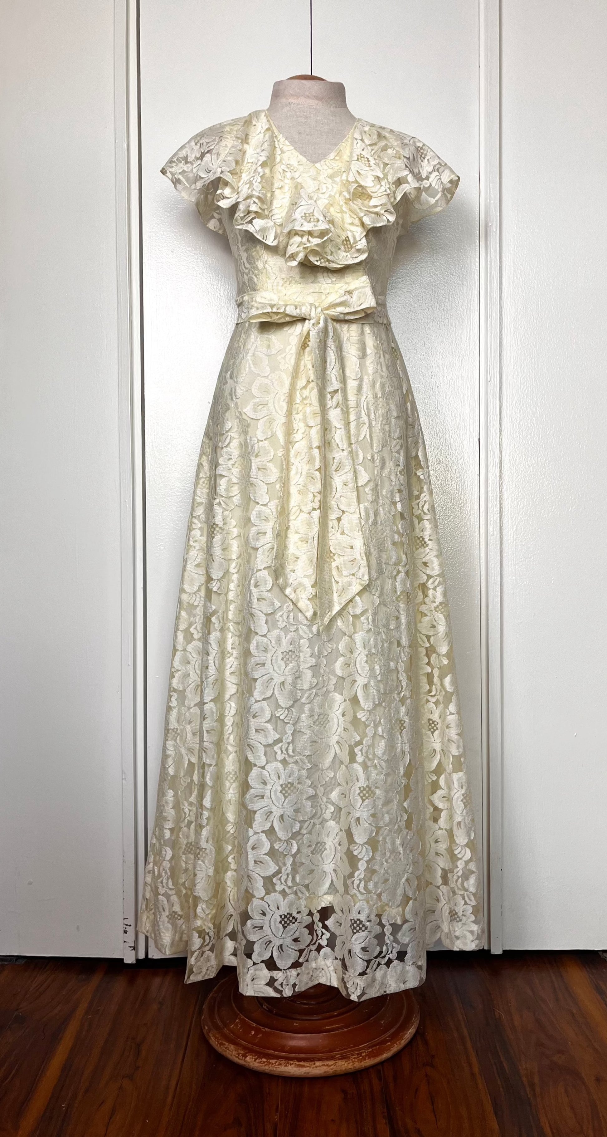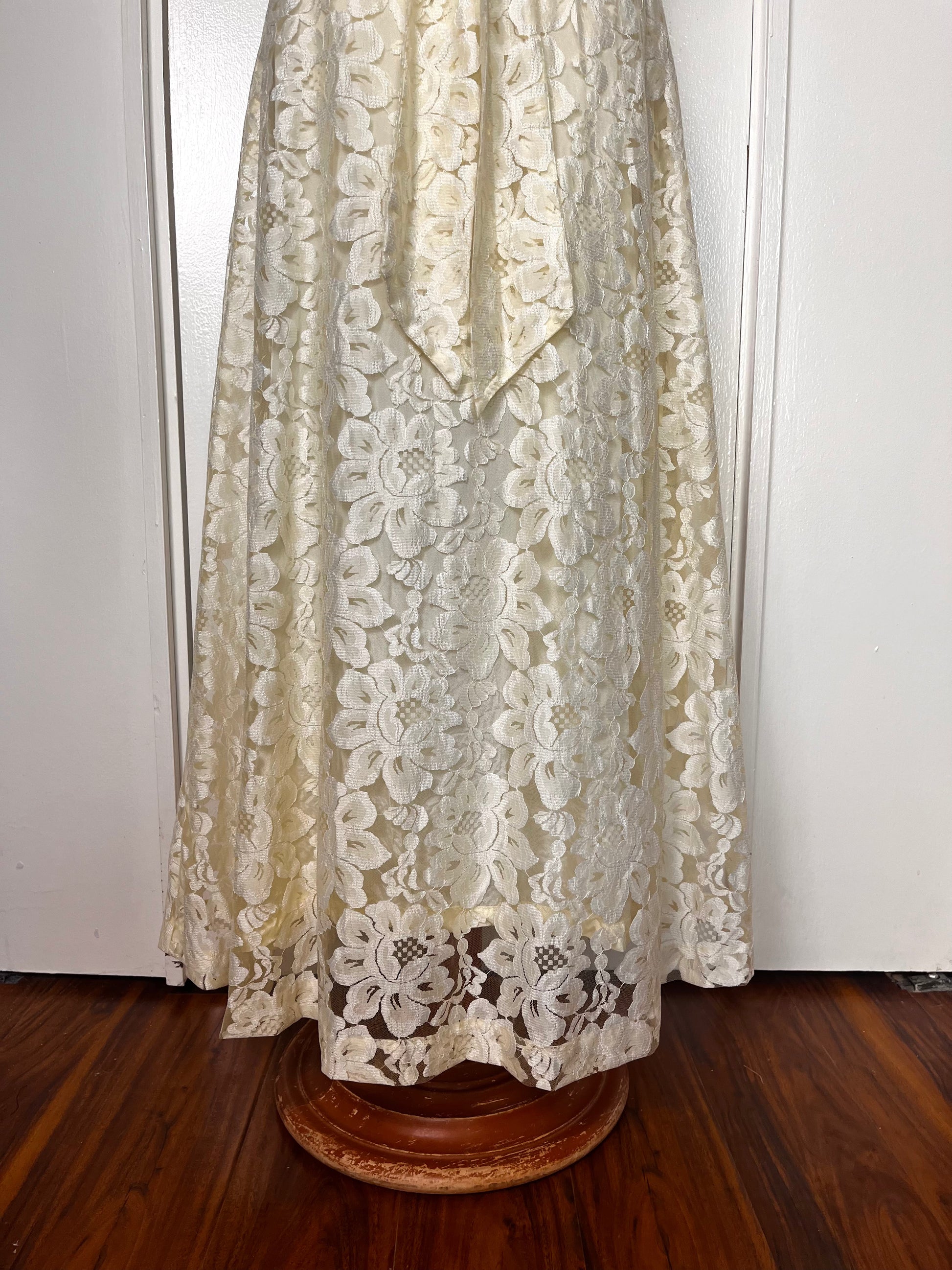 Vintage 1970's Buttercream Lace Hawaiian-Prairie Maxi Dress