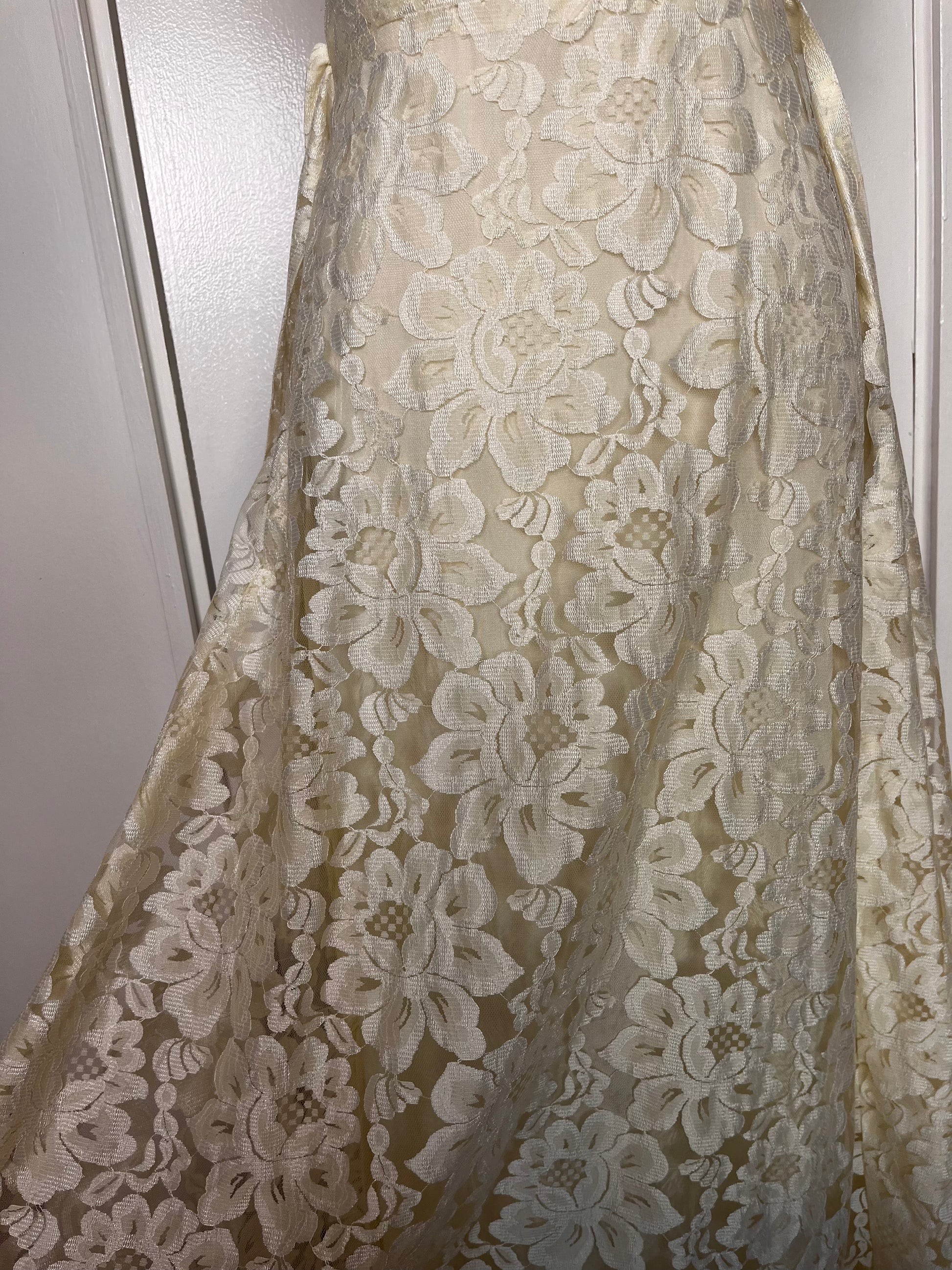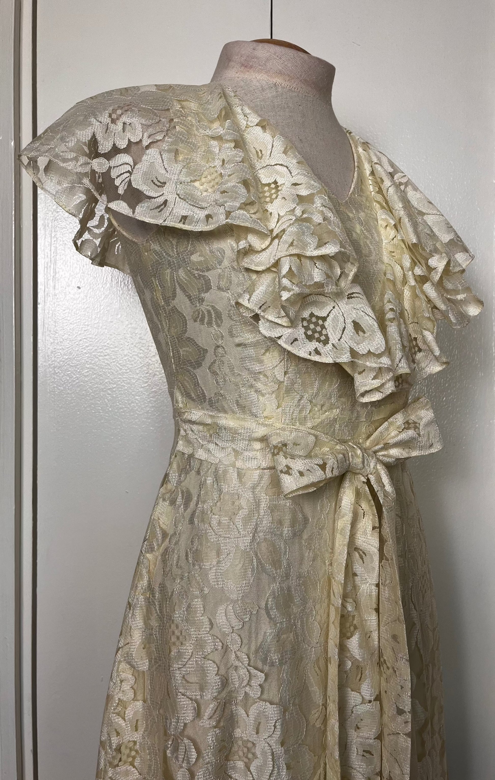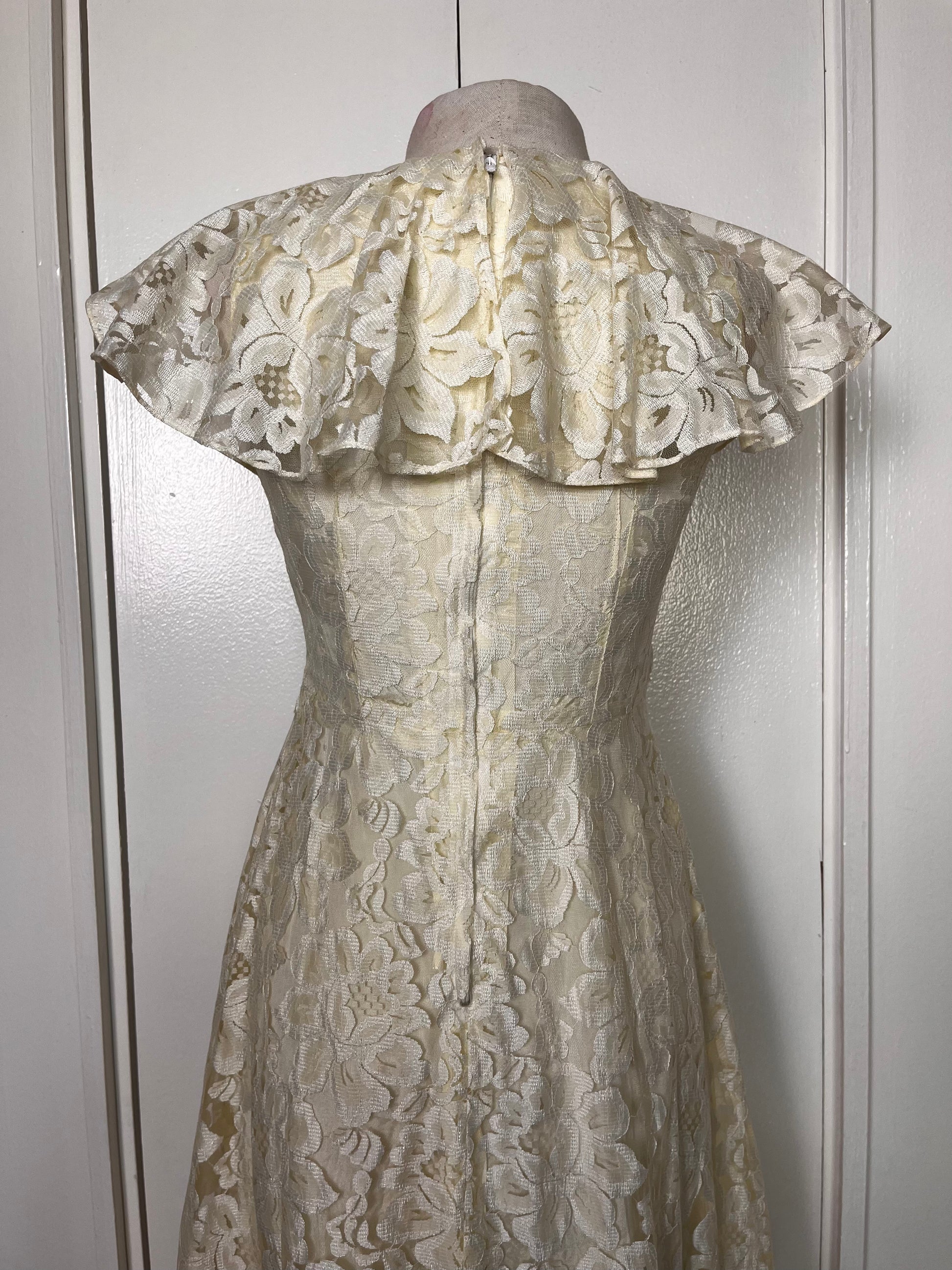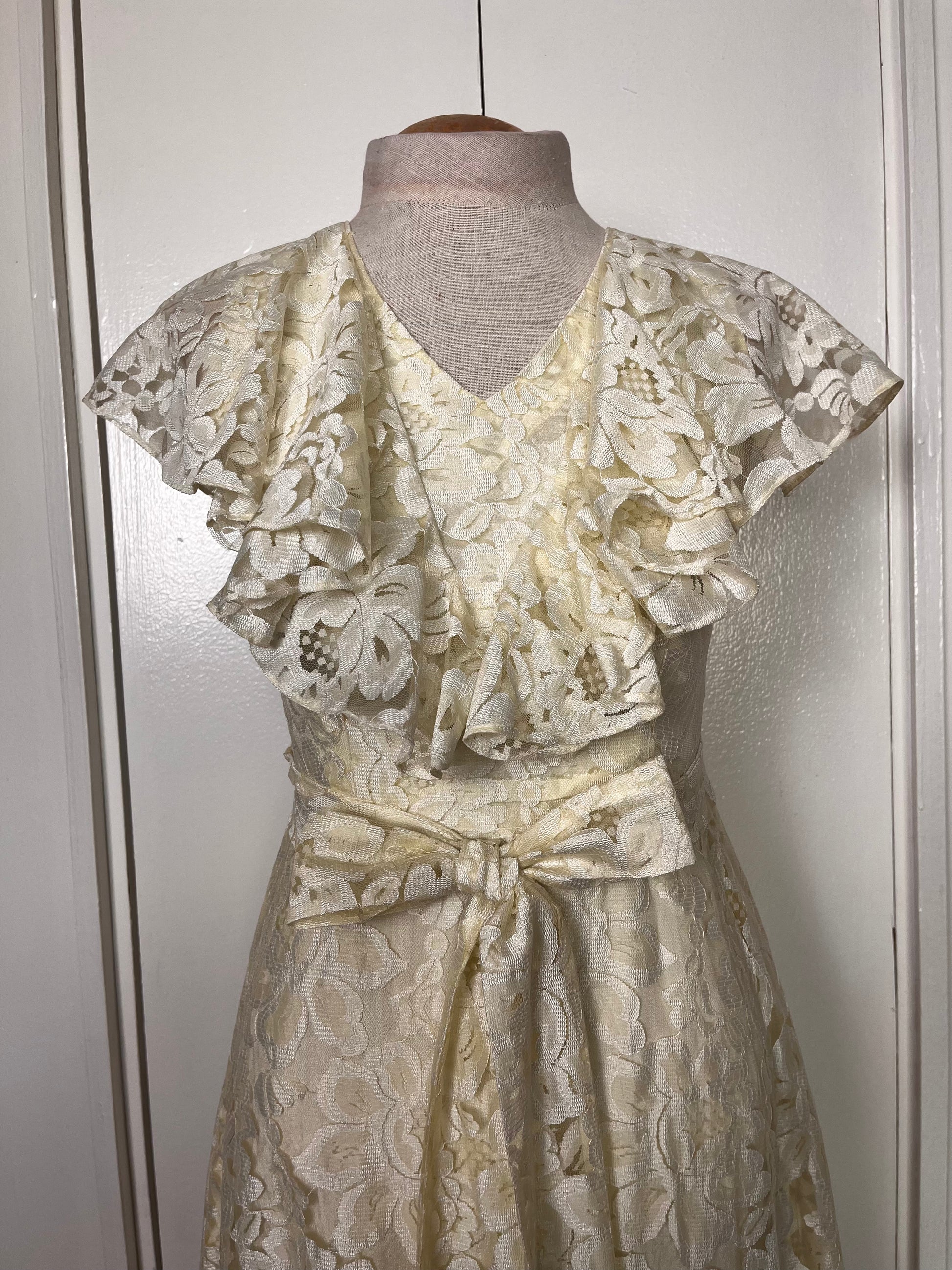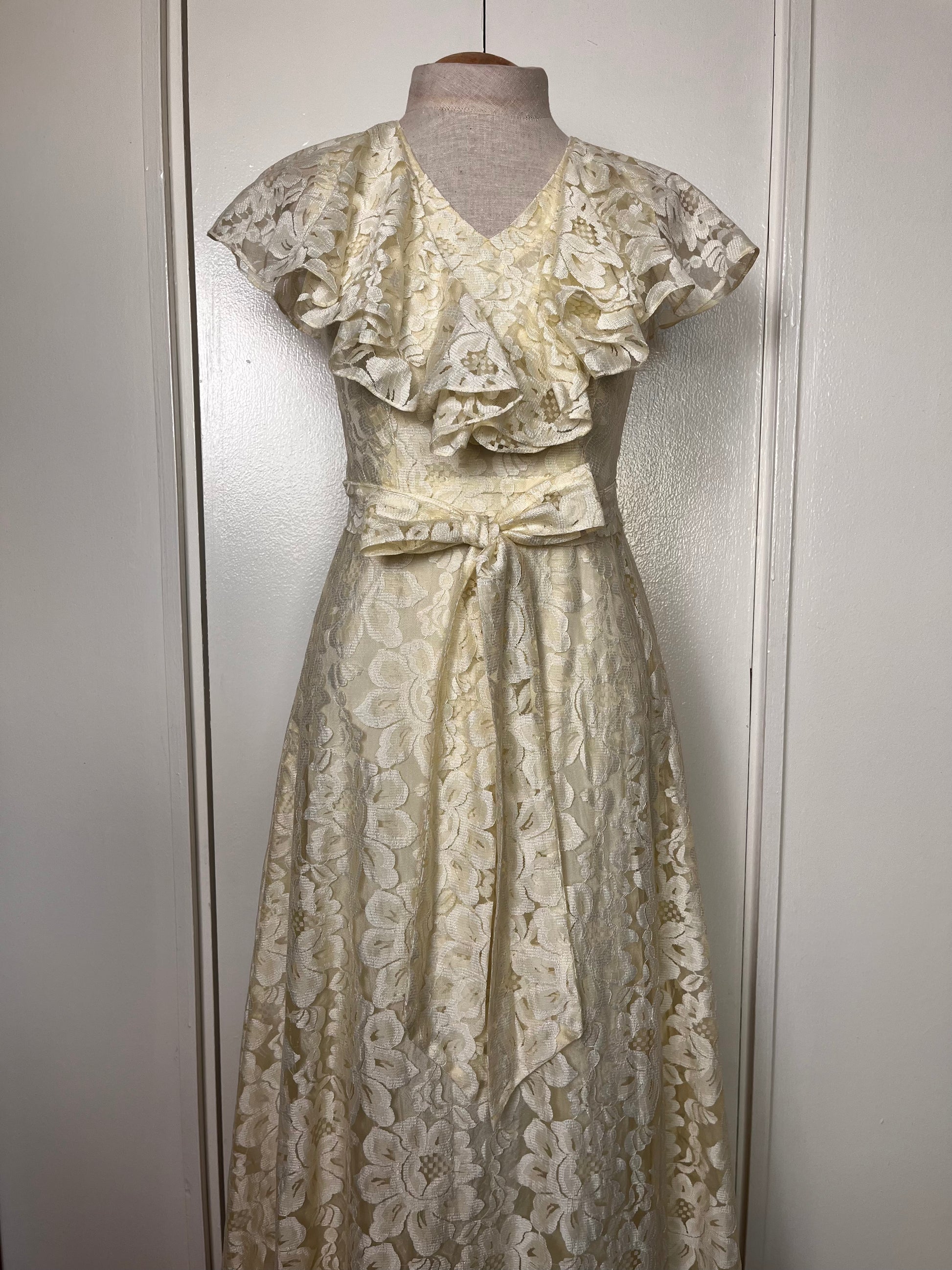 Vintage 1970's Buttercream Lace Hawaiian-Prairie Maxi Dress