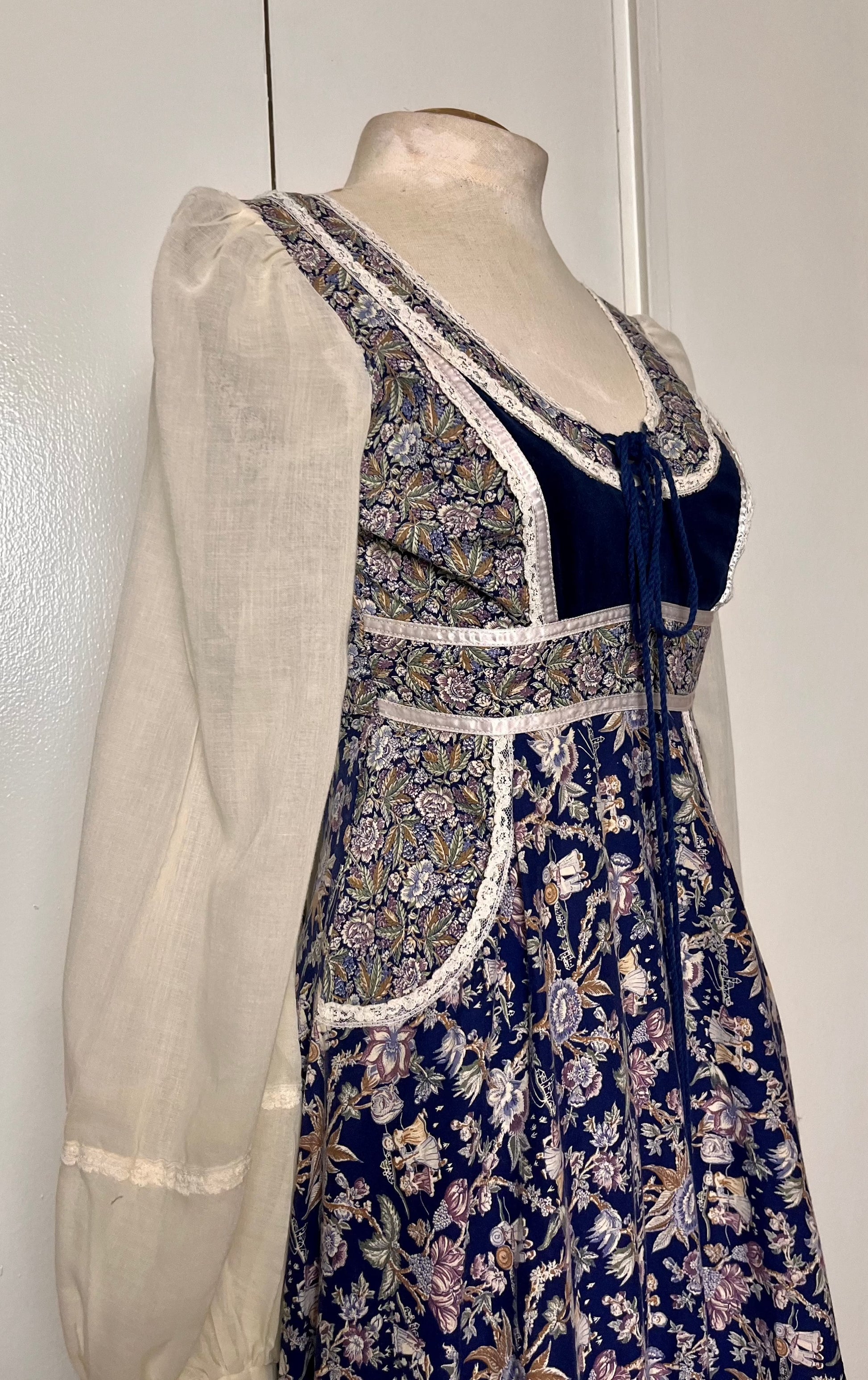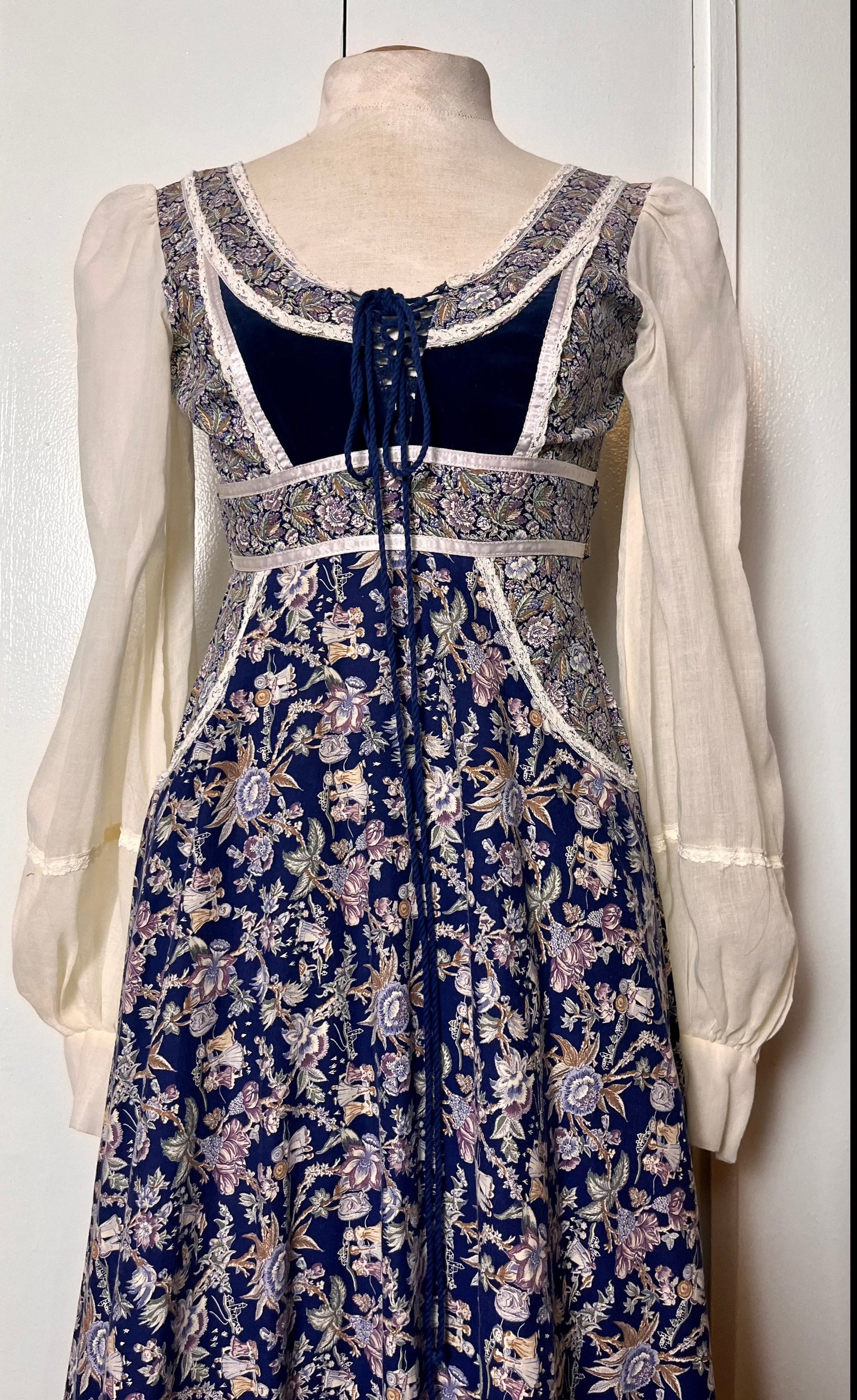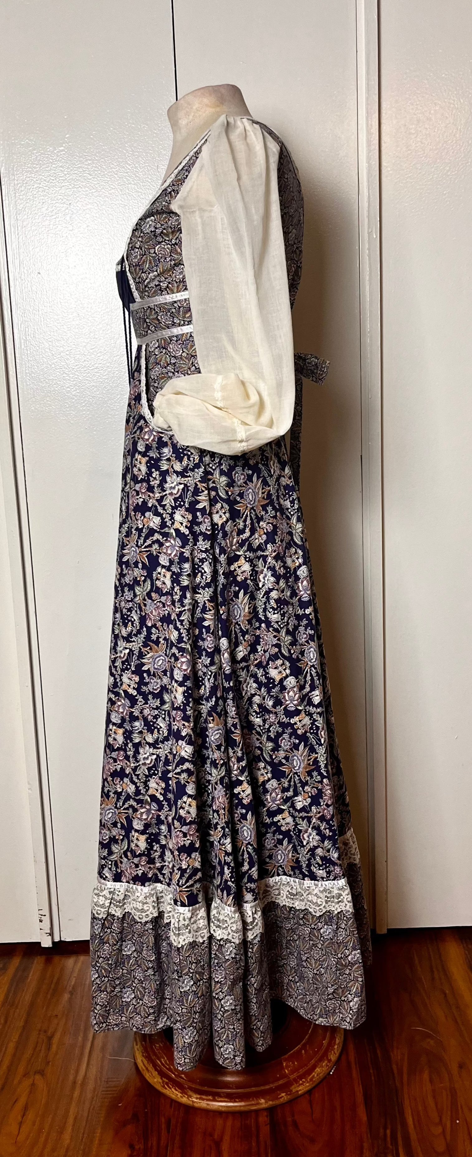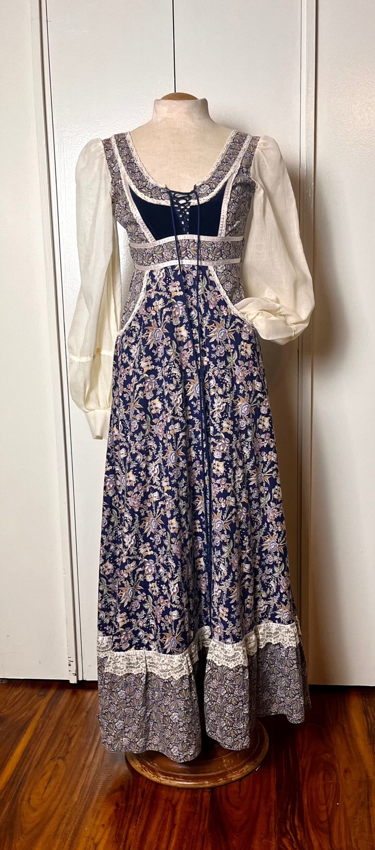 Vintage 1970's "Gunne Sax by Jessica McClintock" Blue (Child Print) Maxi Dress