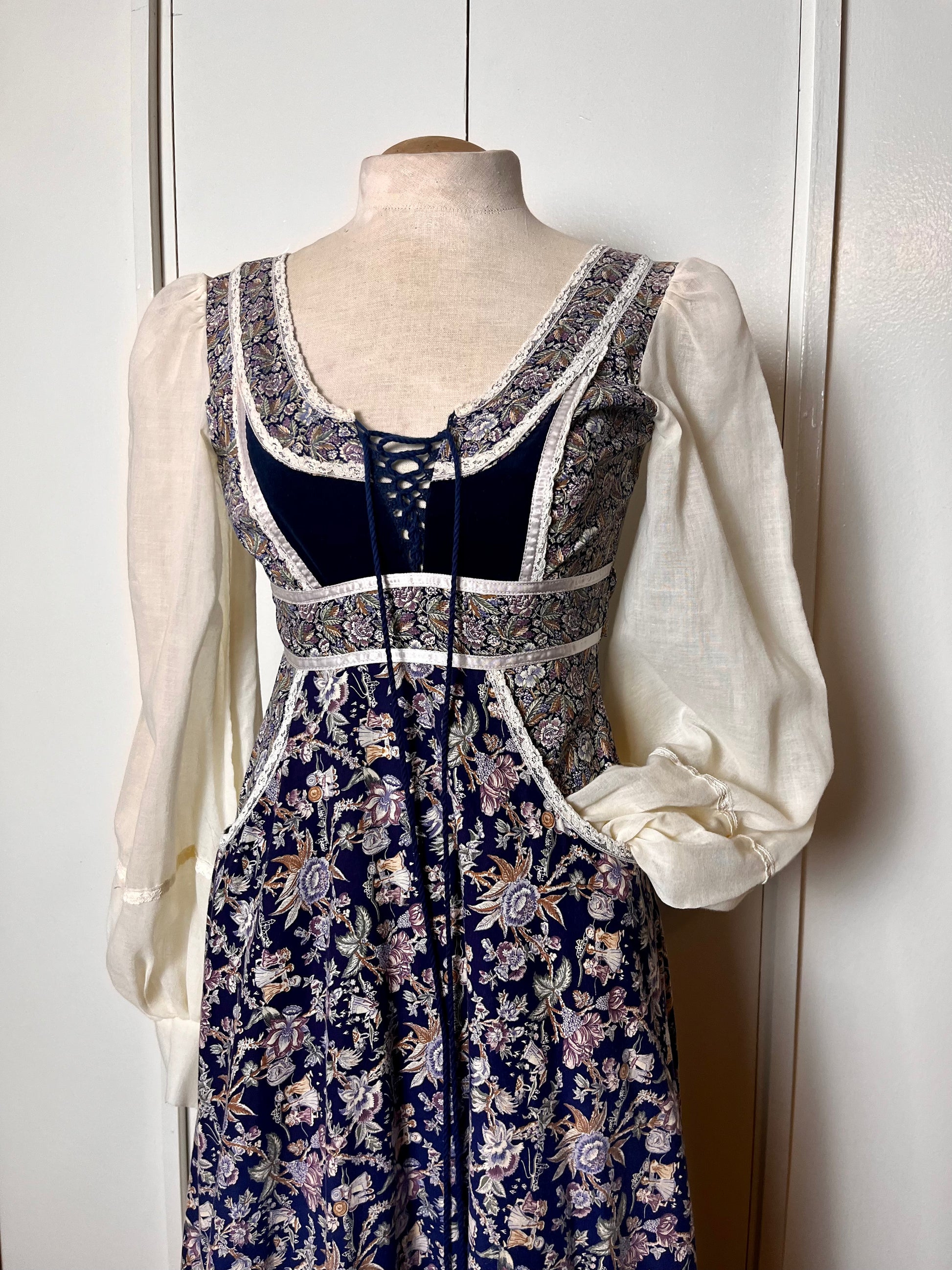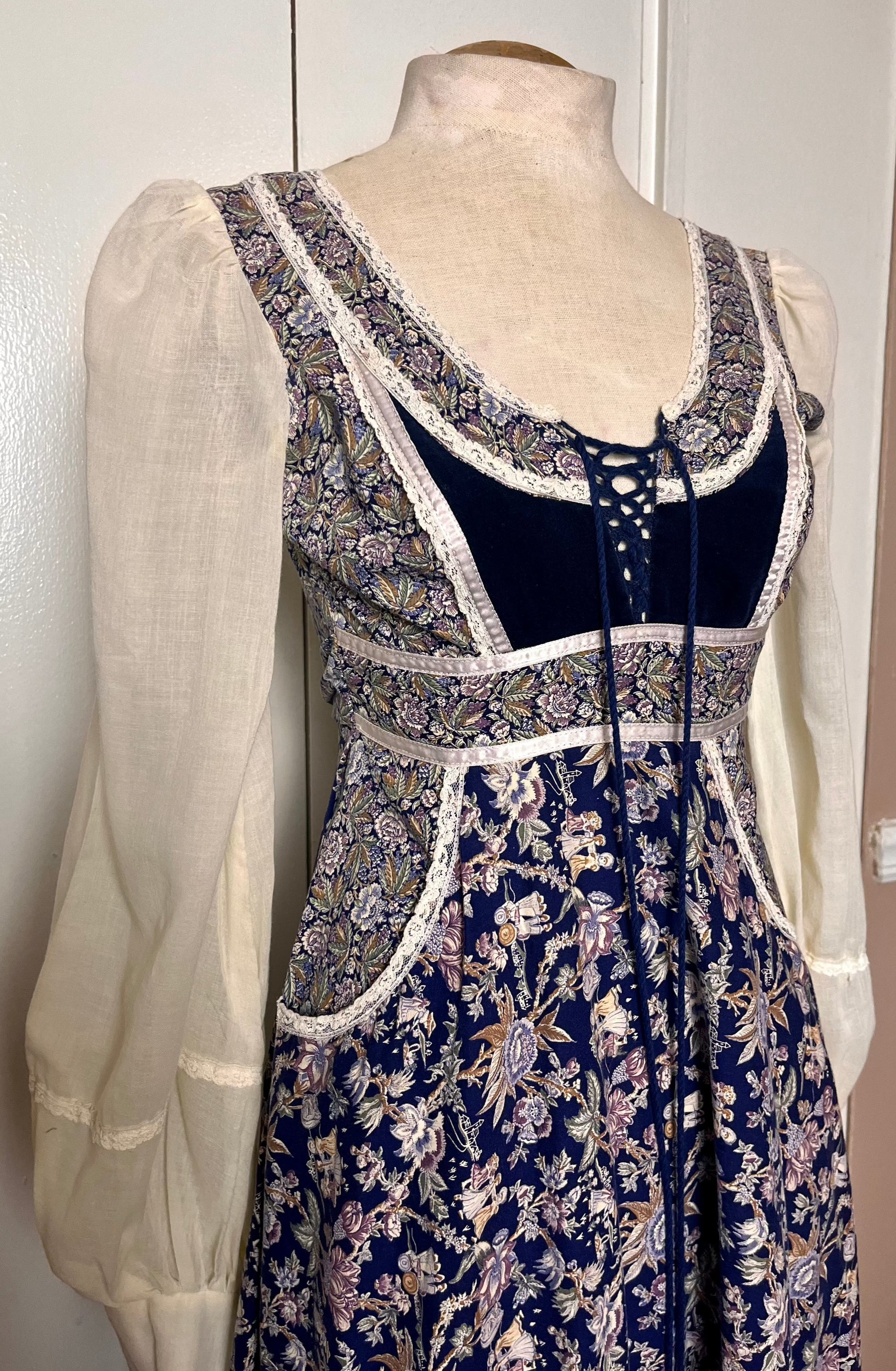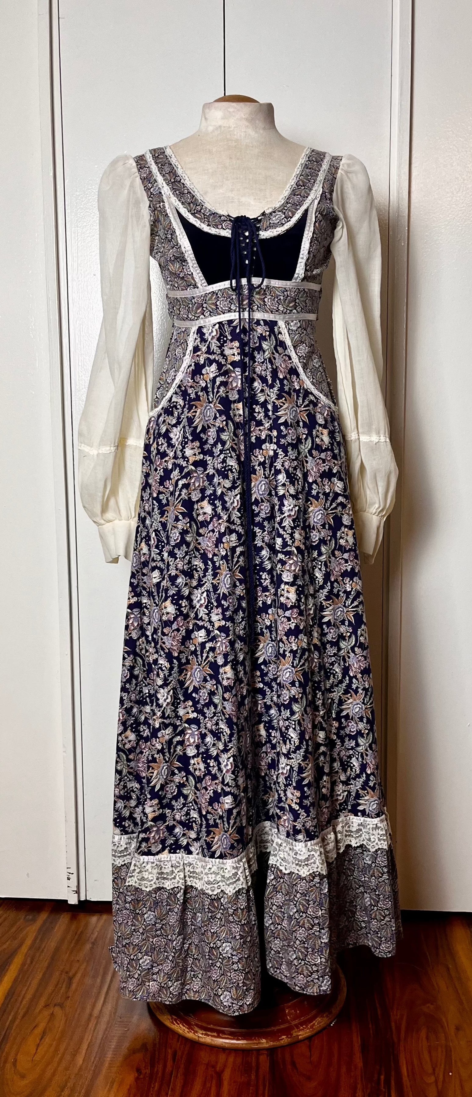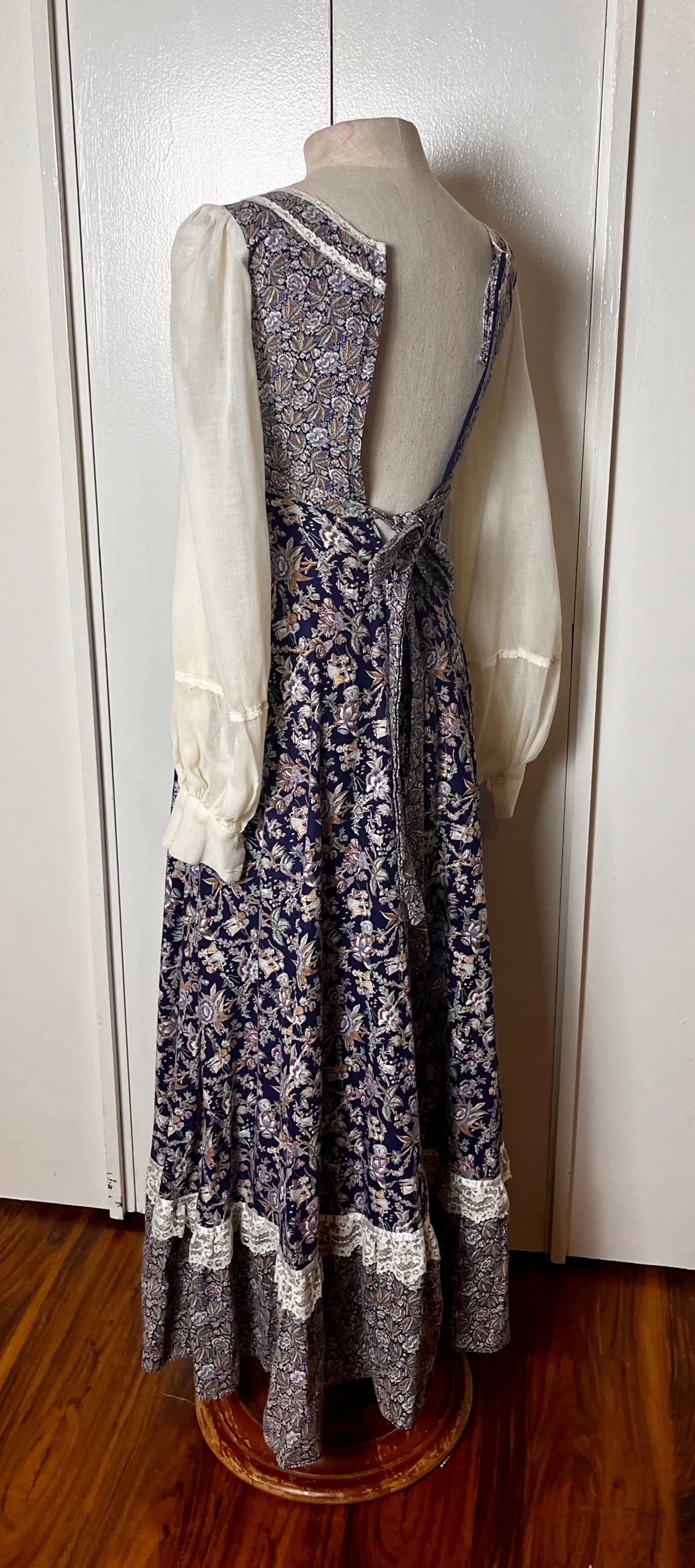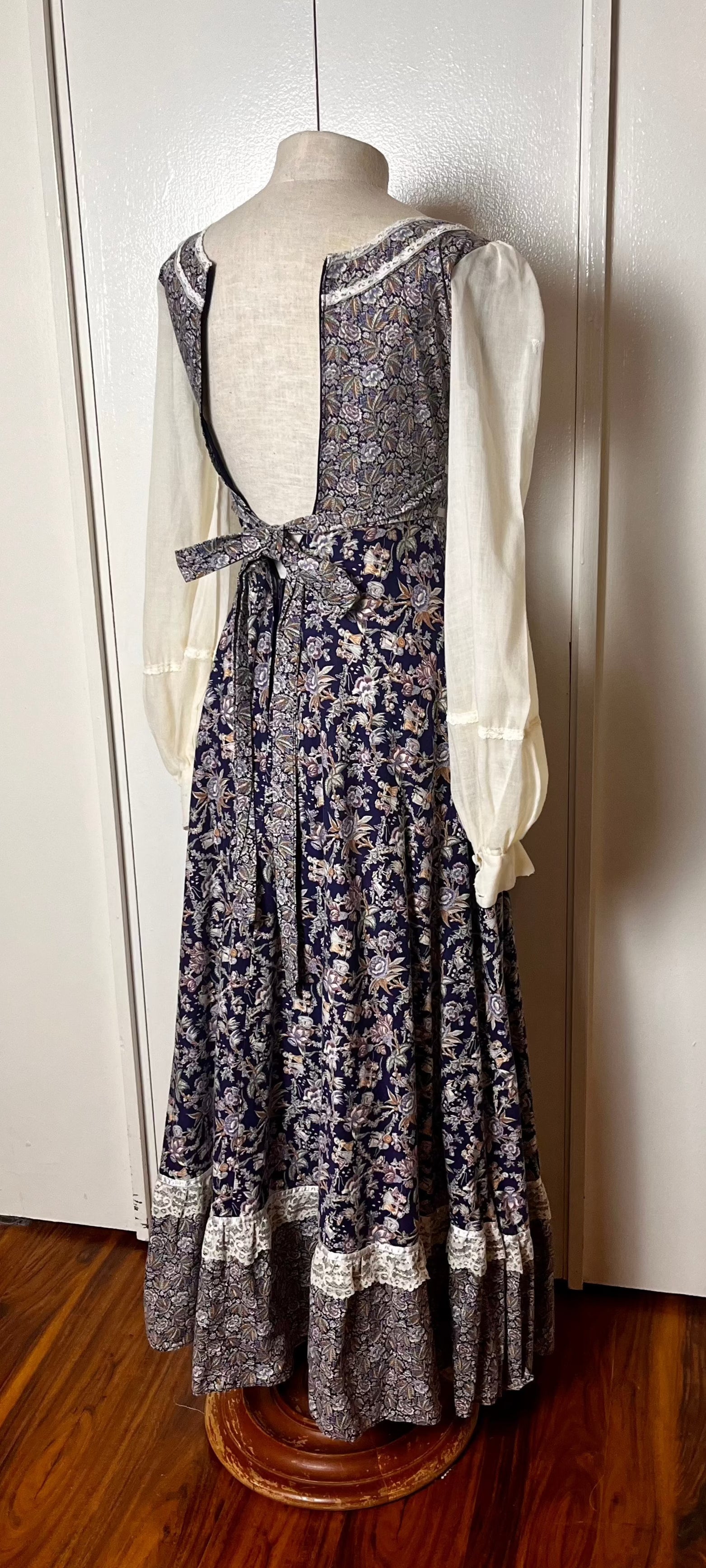 Vintage 1970's "Gunne Sax by Jessica McClintock" Blue (Child Print) Maxi Dress