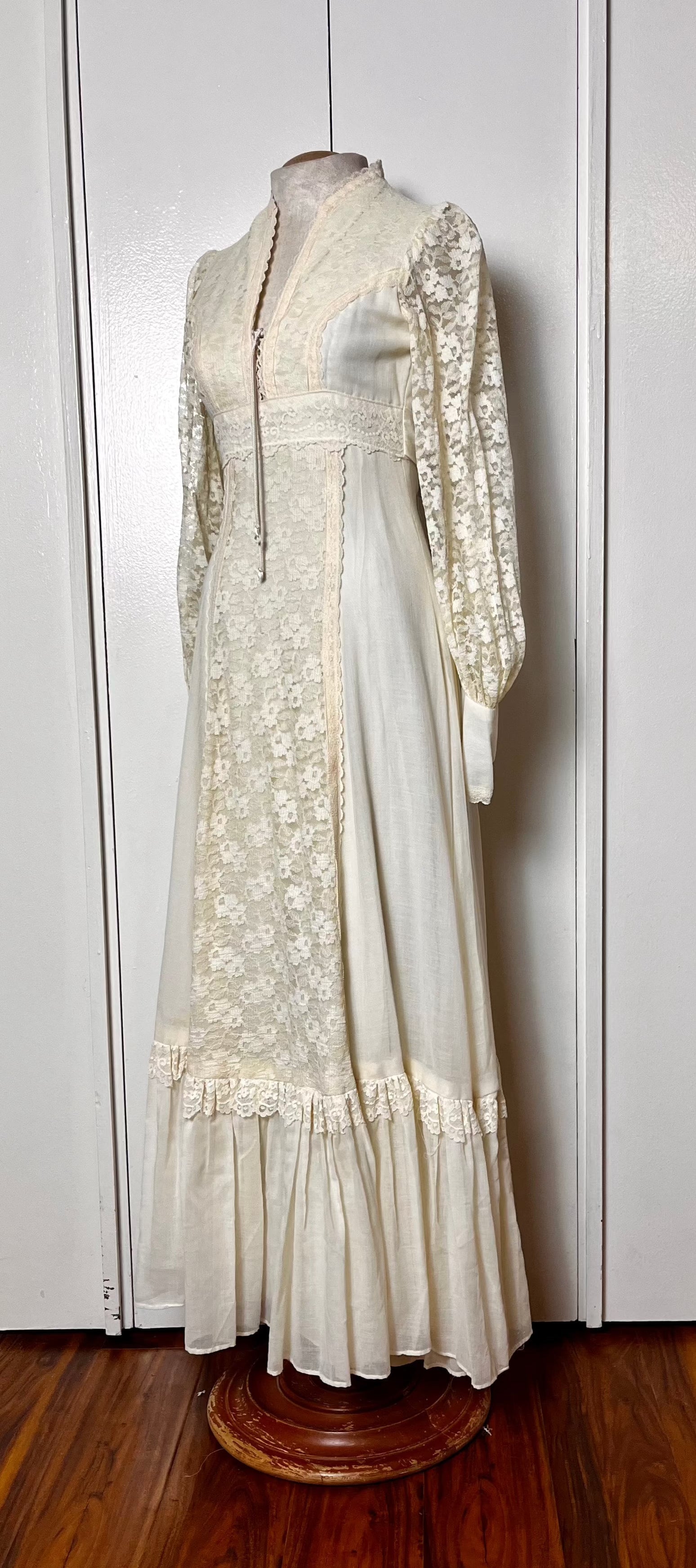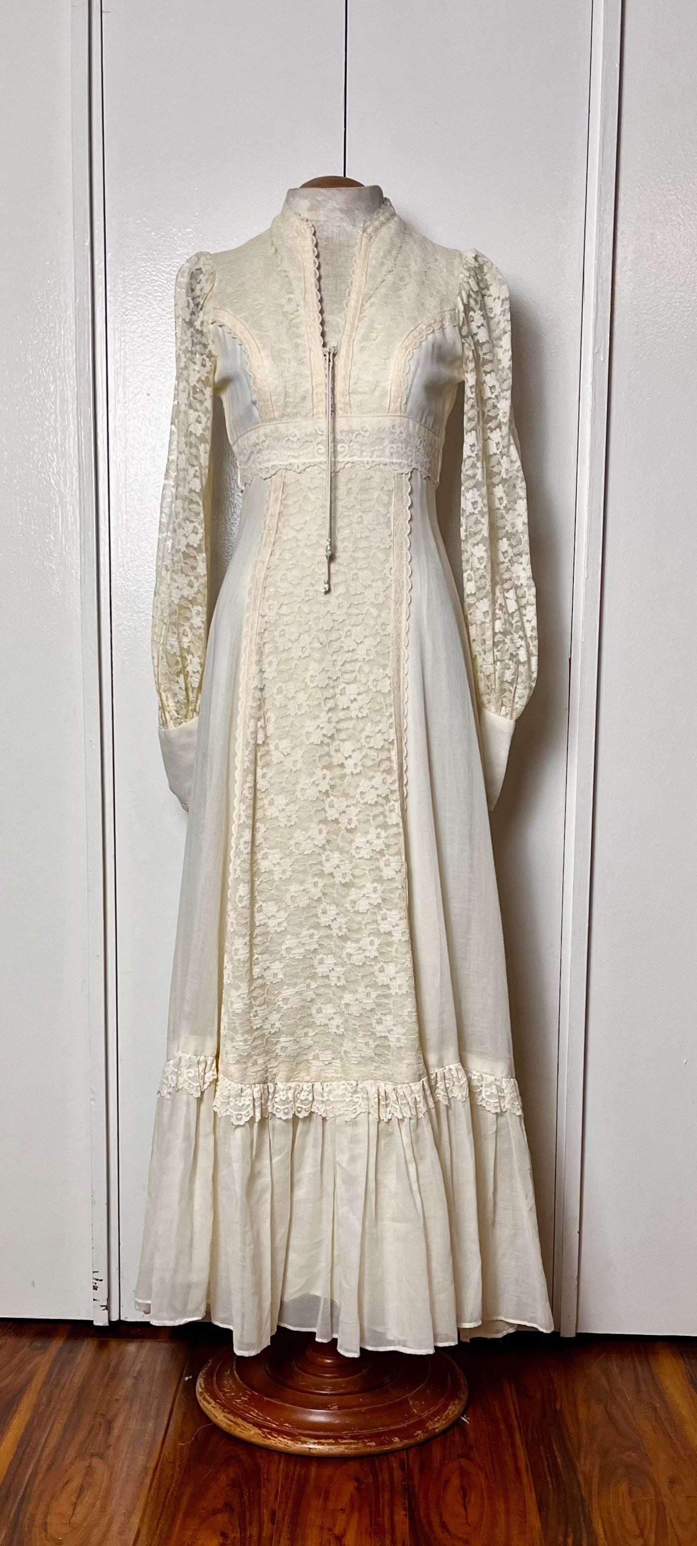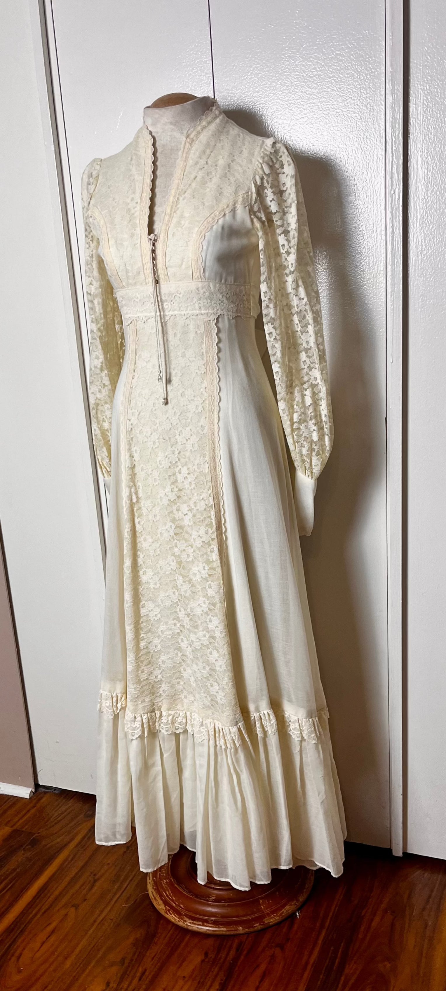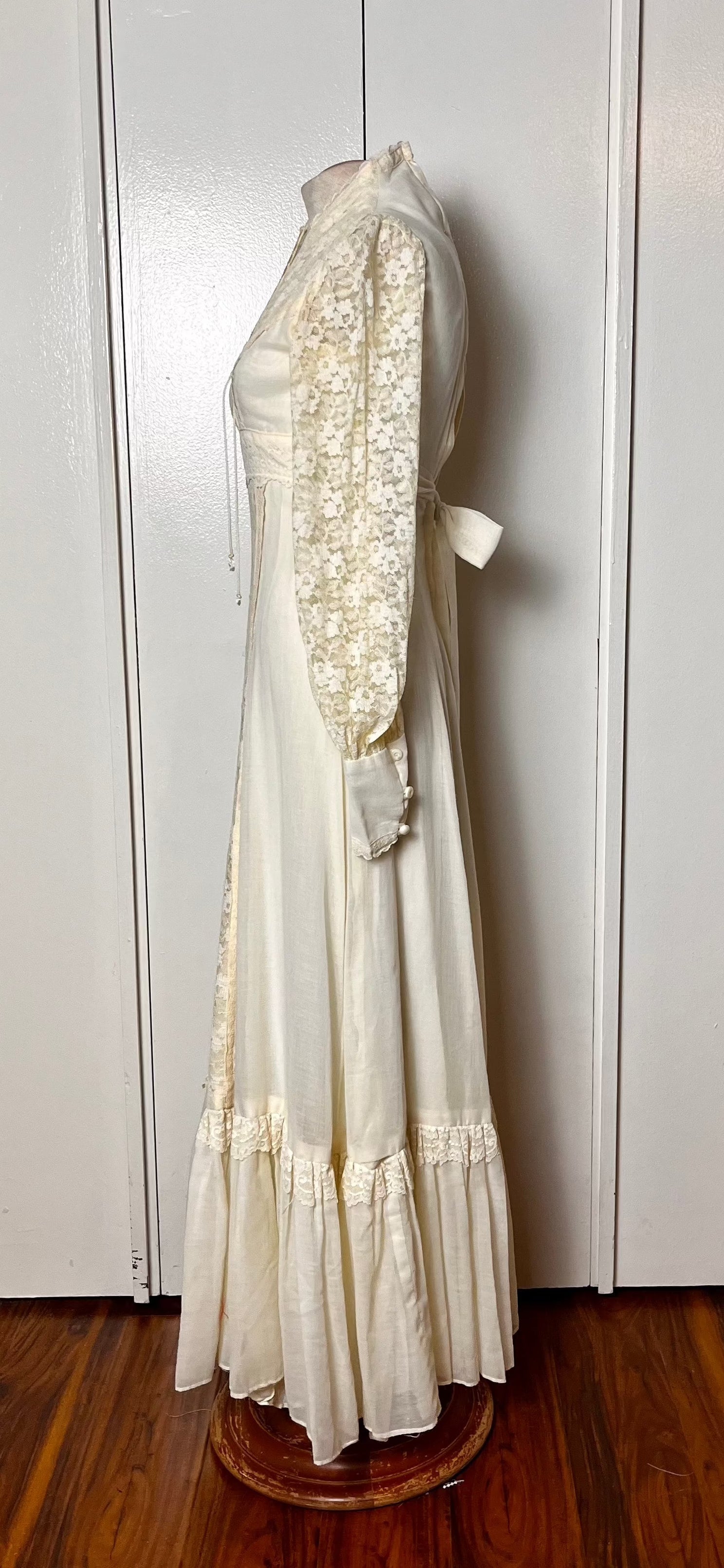 Vintage 1970's "Gunne Sax by Jessica McClintock" Ivory Long Sleeve Maxi Dress