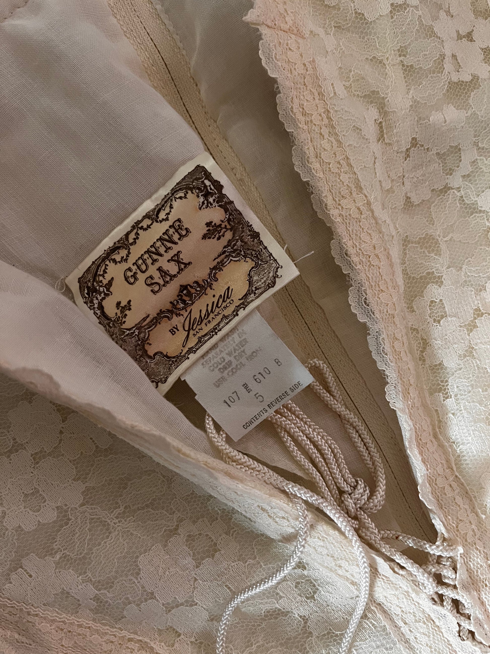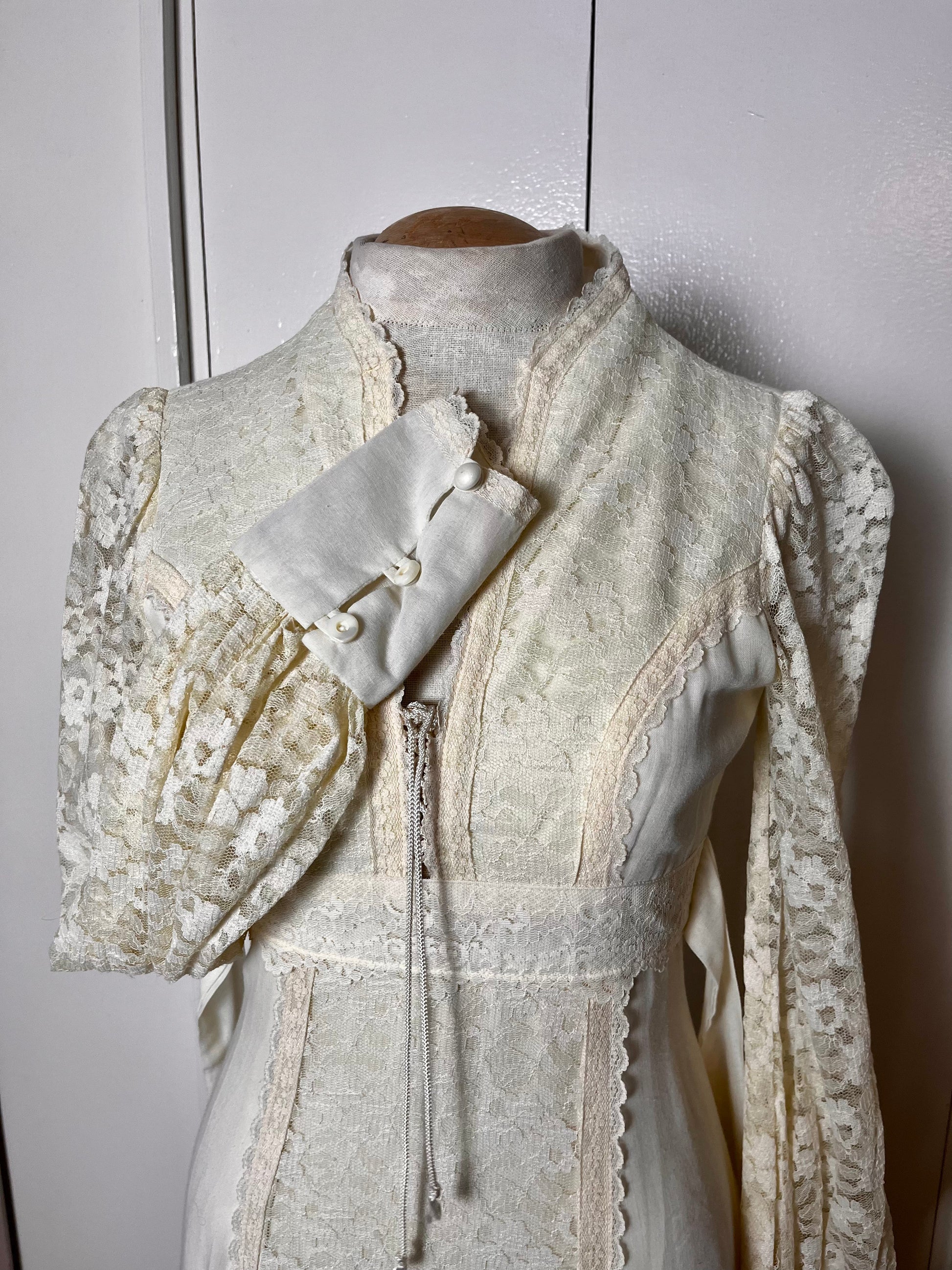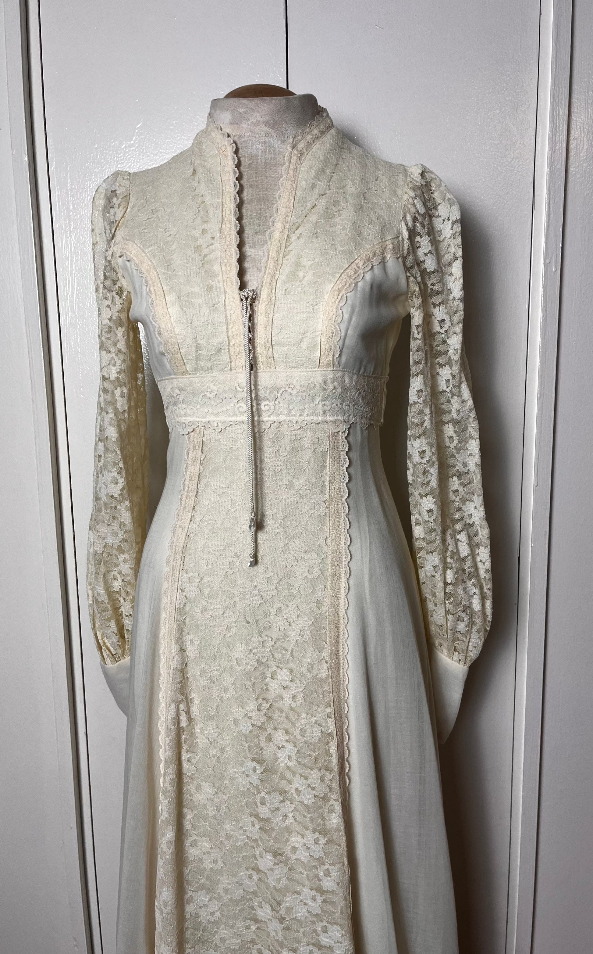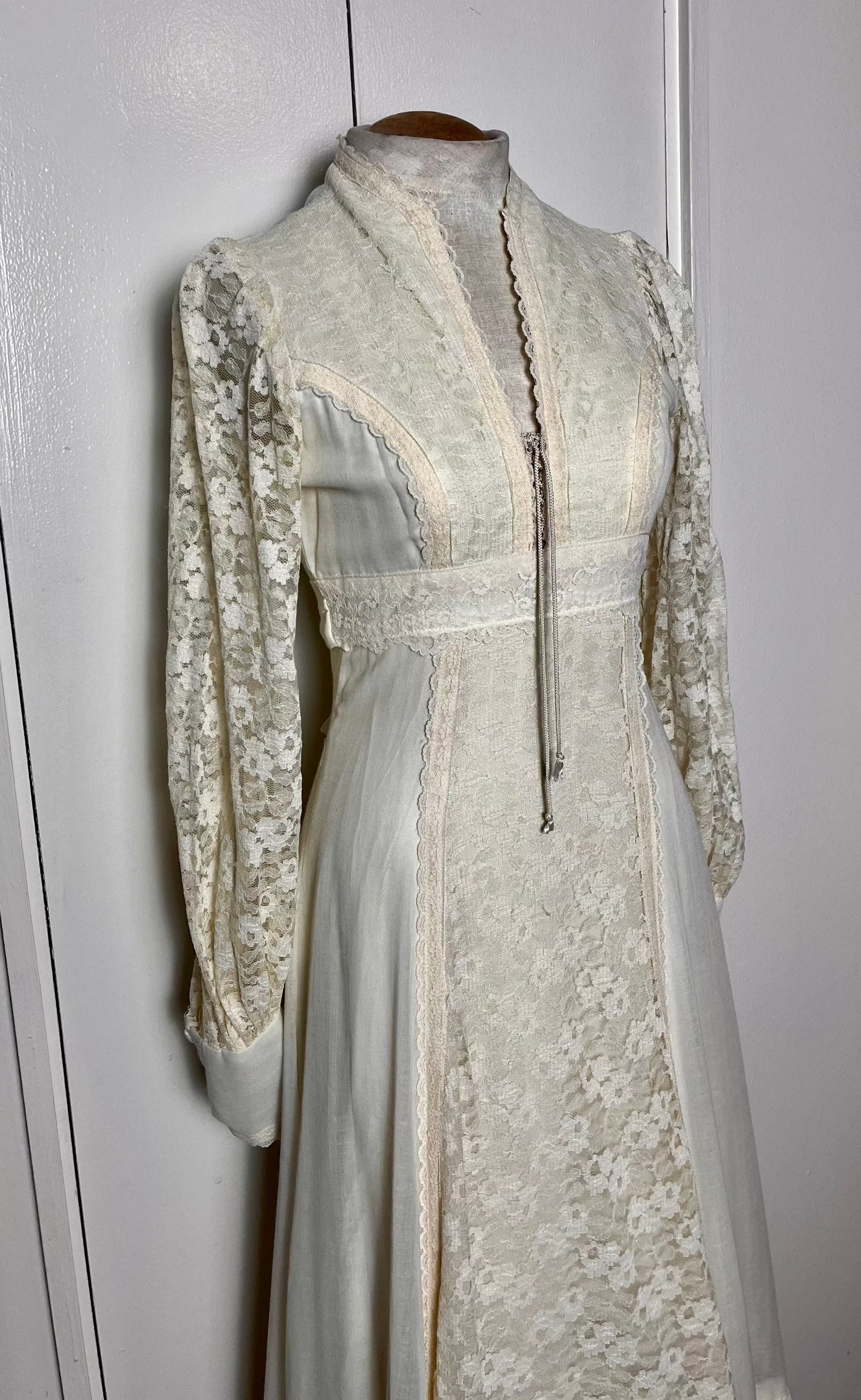 Vintage 1970's "Gunne Sax by Jessica McClintock" Ivory Long Sleeve Maxi Dress