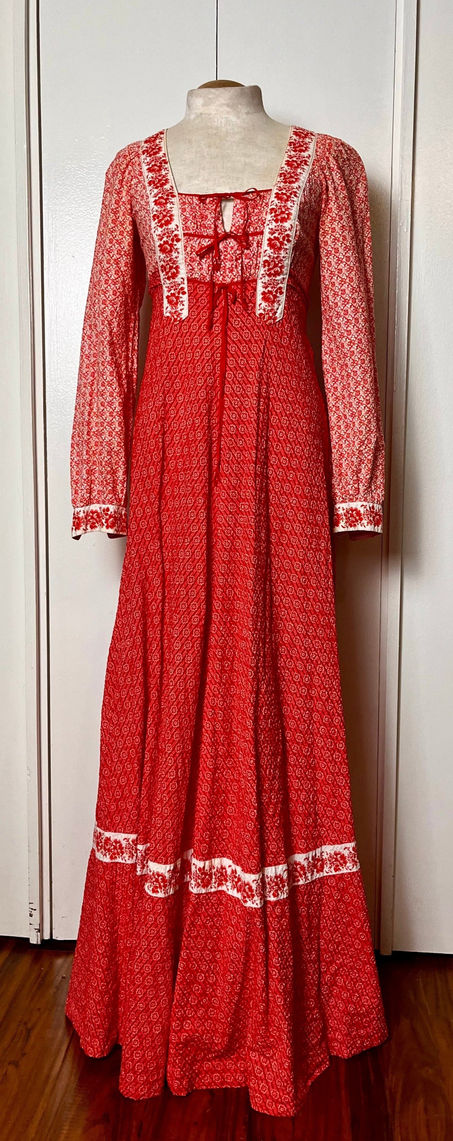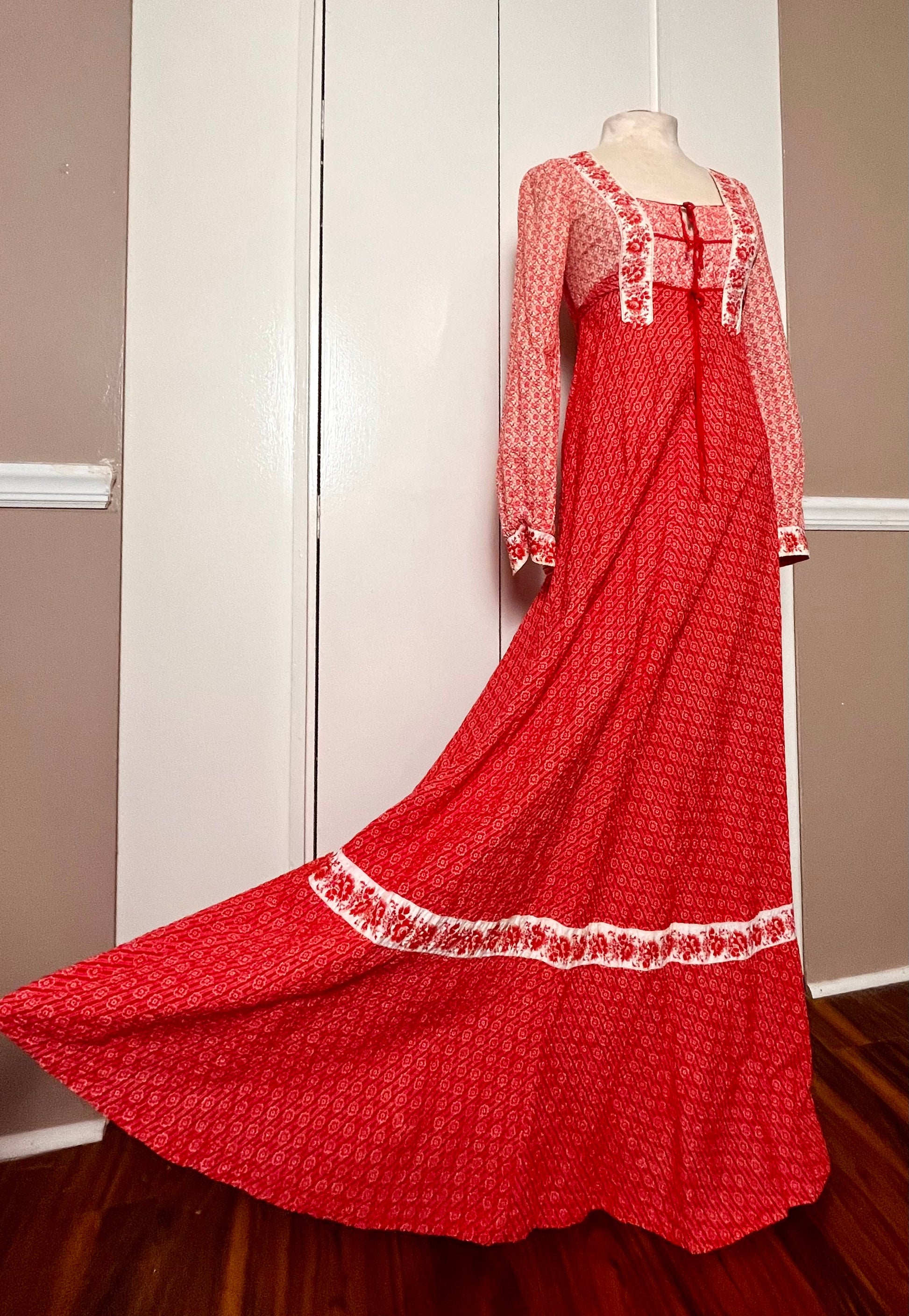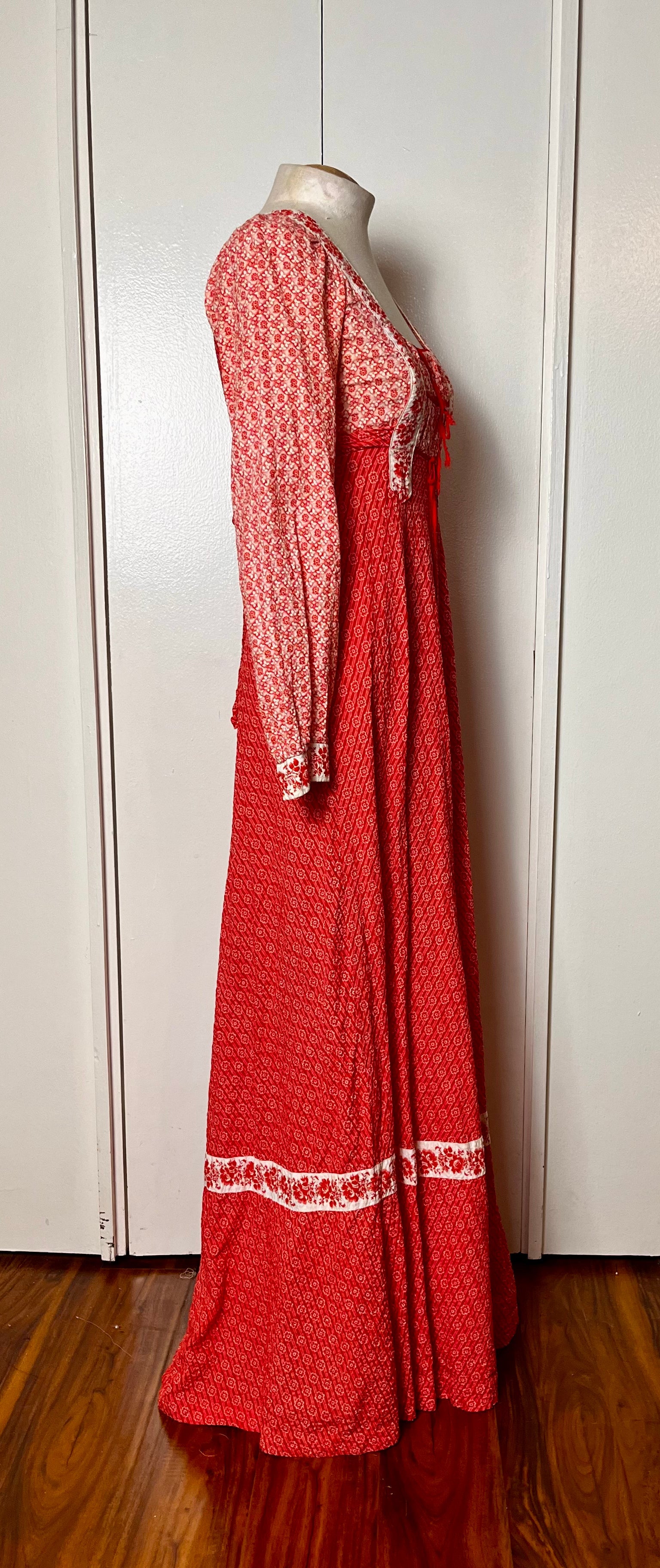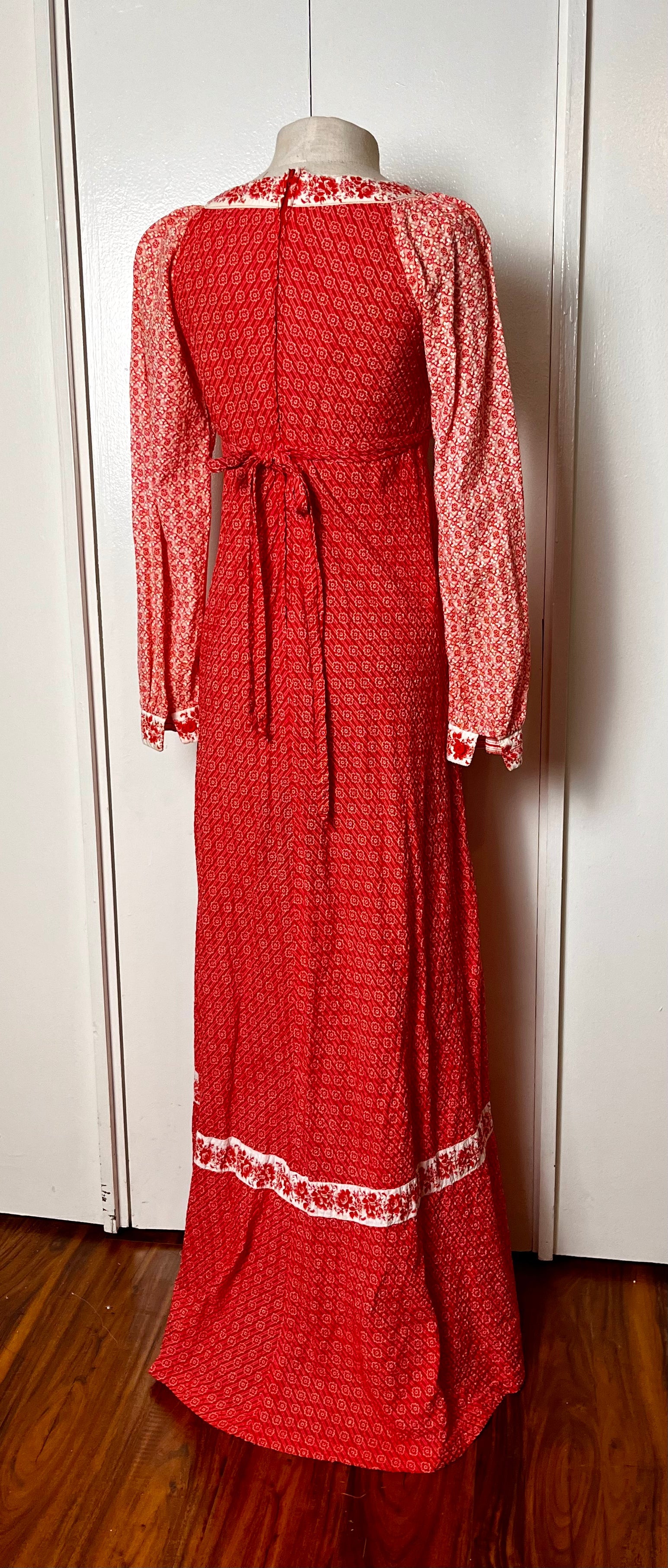 Vintage 1970's "Jody T of California" Red Maxi Dress