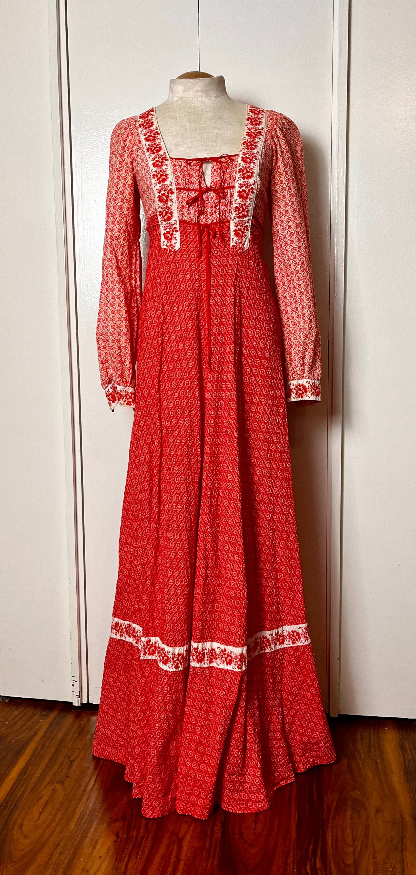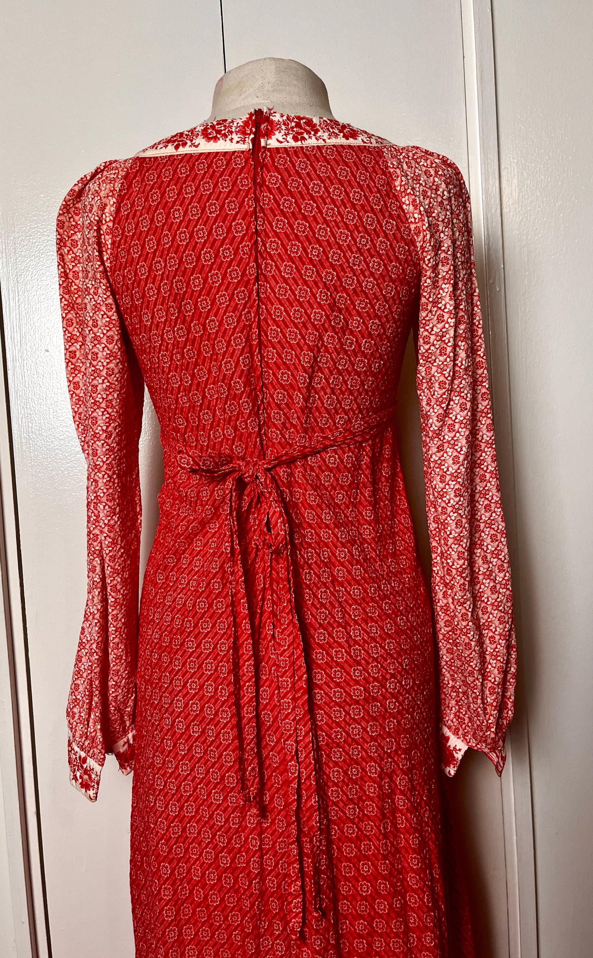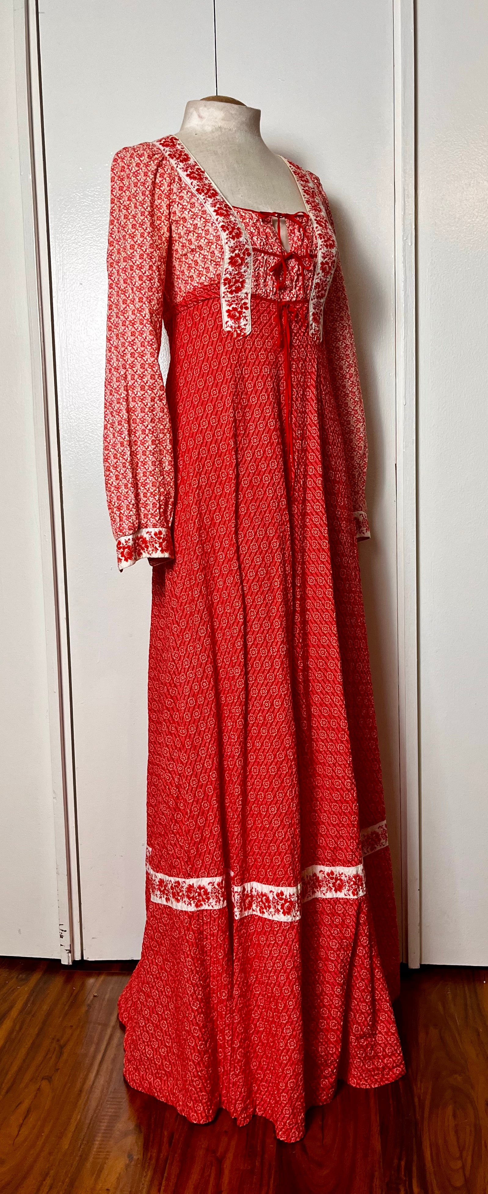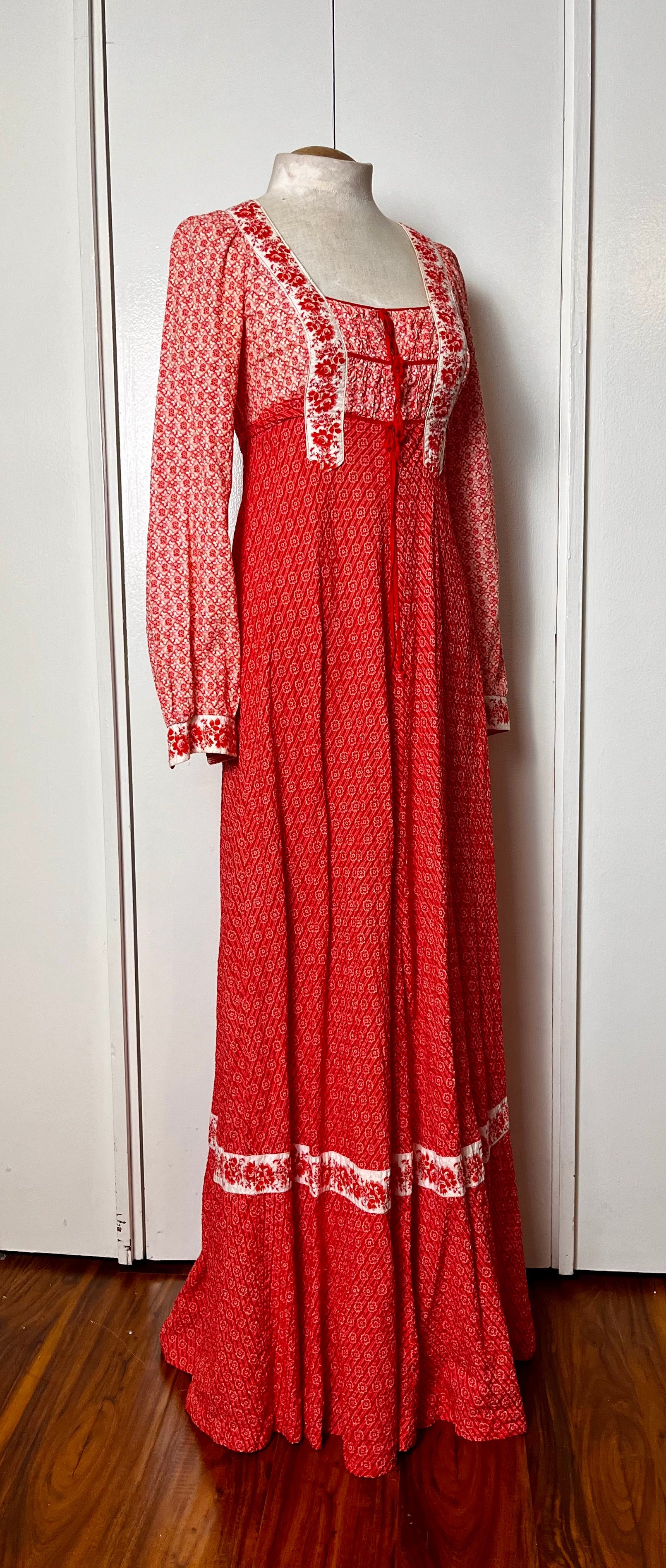 Vintage 1970's "Jody T of California" Red Maxi Dress