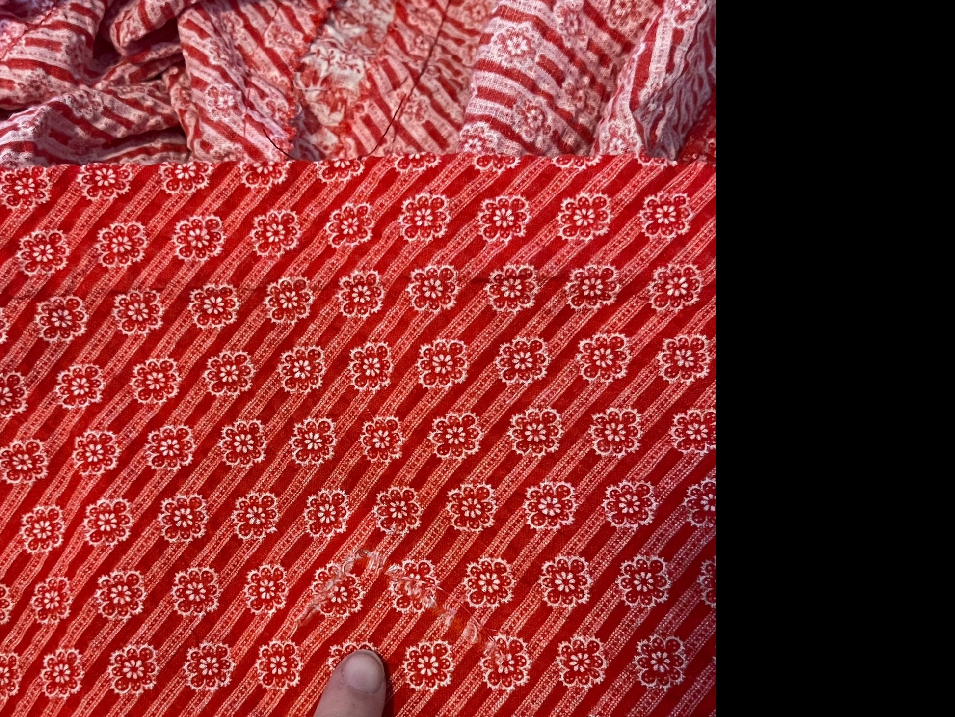Good condition. There are two areas of the skirt that were torn and have been patched and reinforced with interfacing, please see last four photos for reference to view the outer/inner sides of the aforementioned areas.