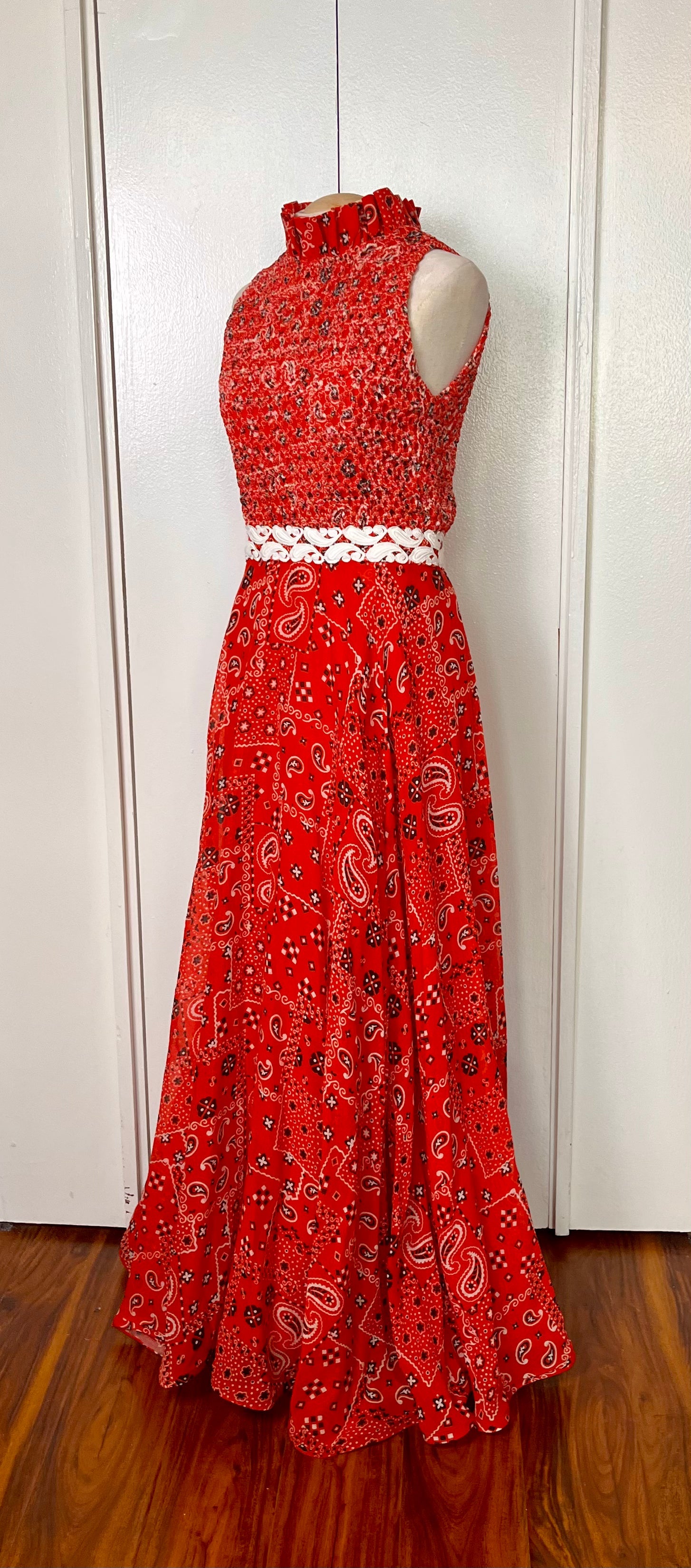 Vintage 1970's "Nancy's" Bandana Print Sleeveless Maxi Dress