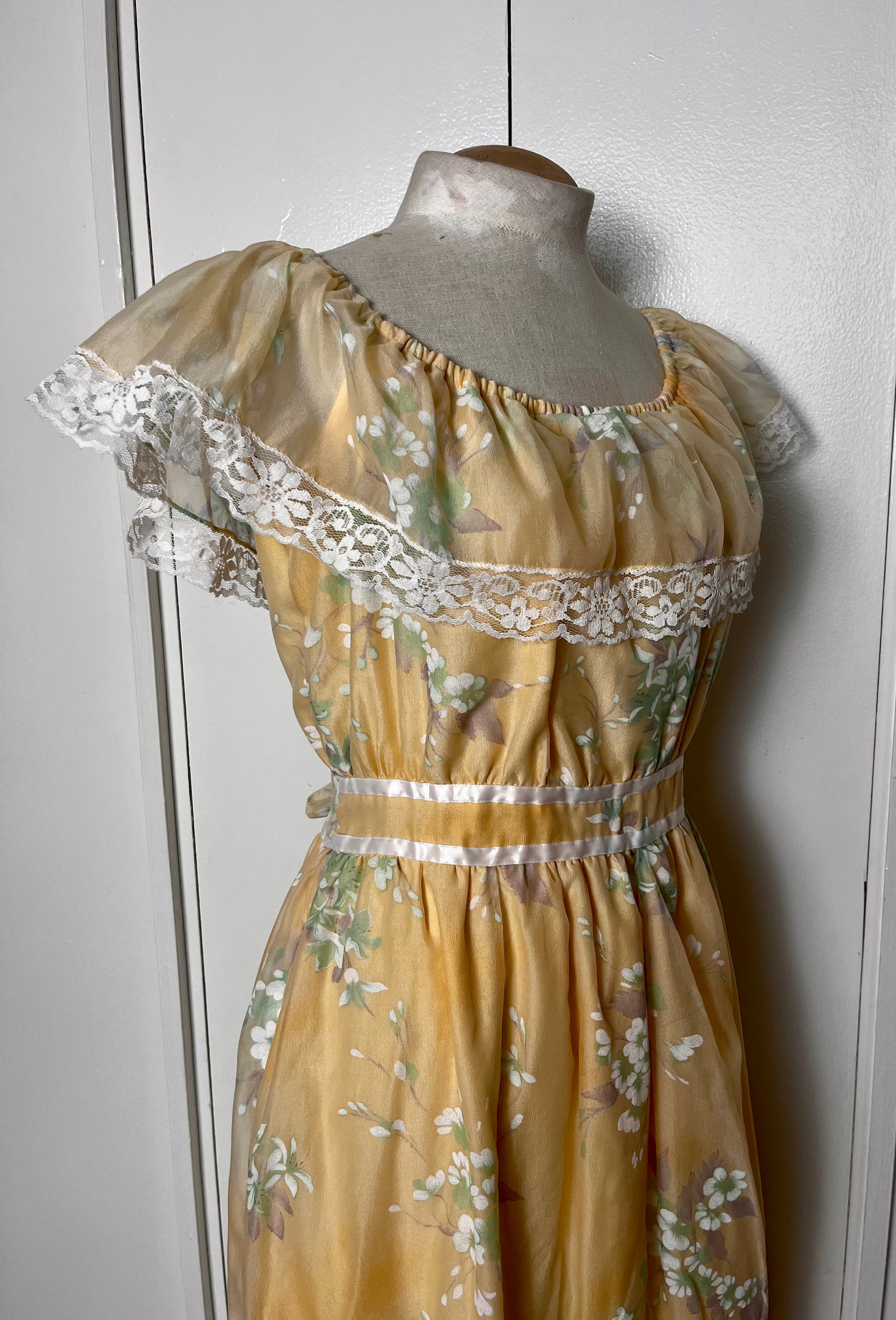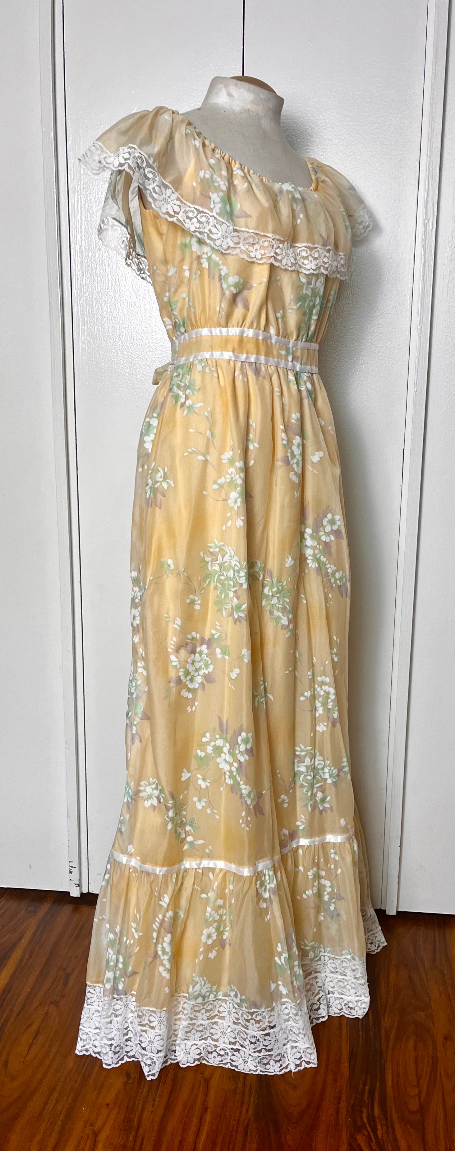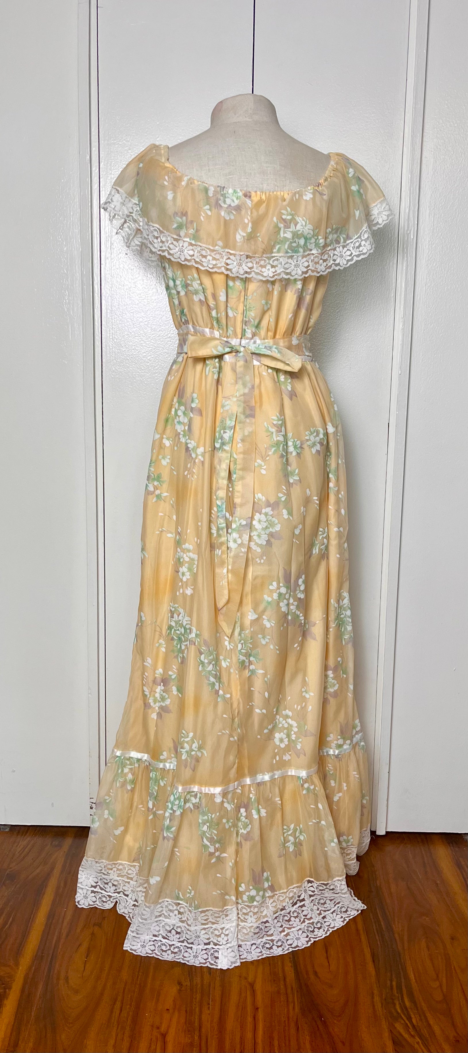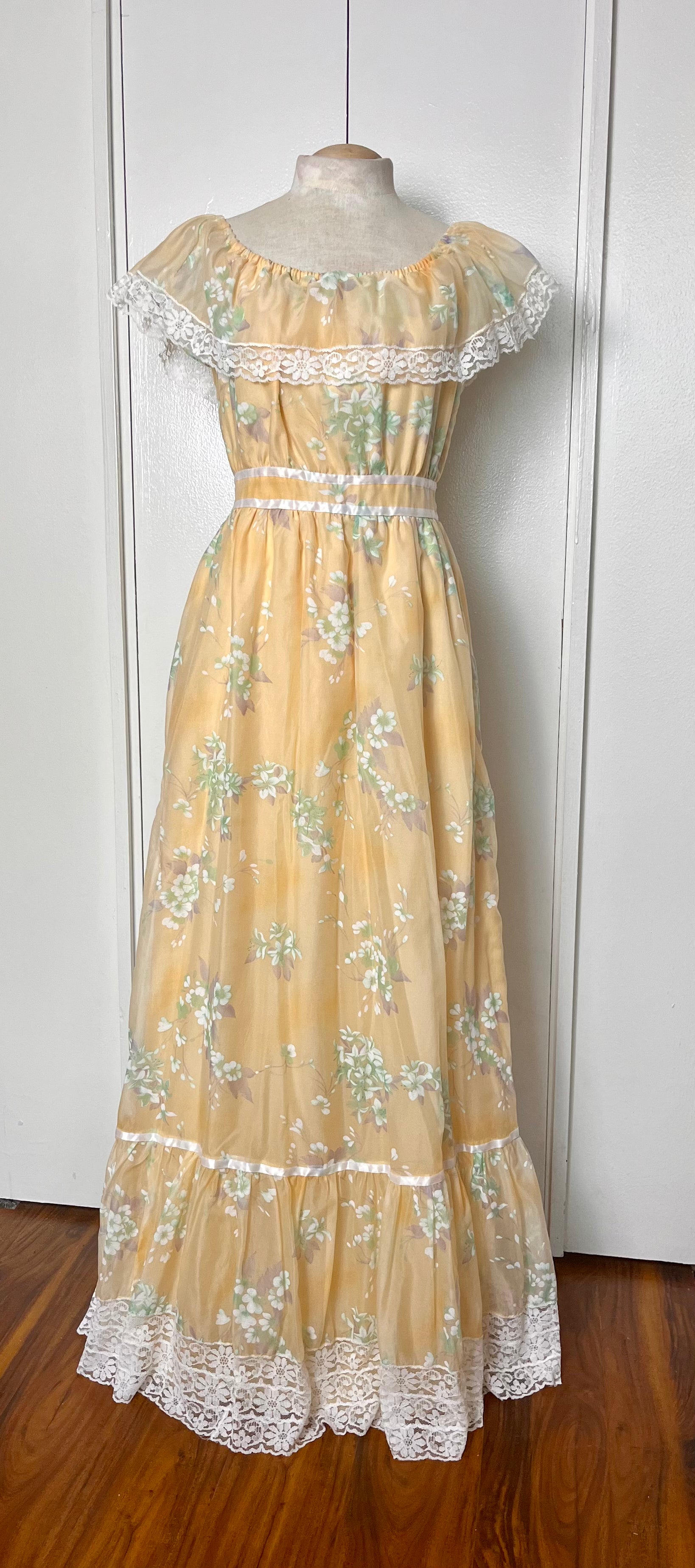 Vintage 1970's Off-the-Shoulder Marigold Gown