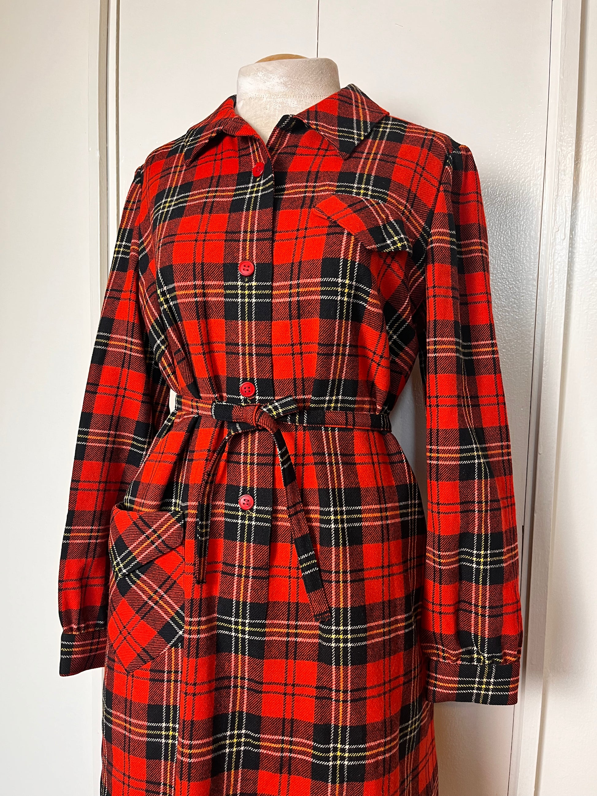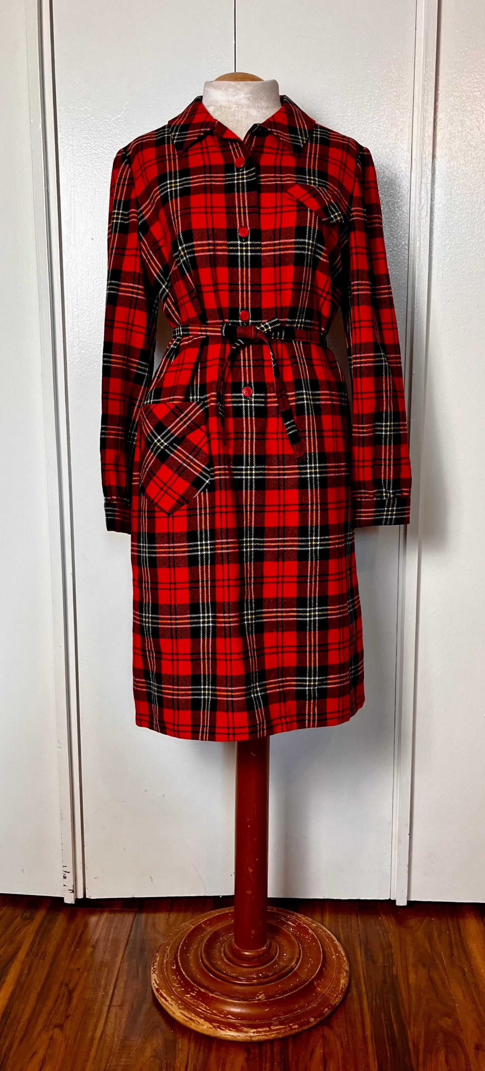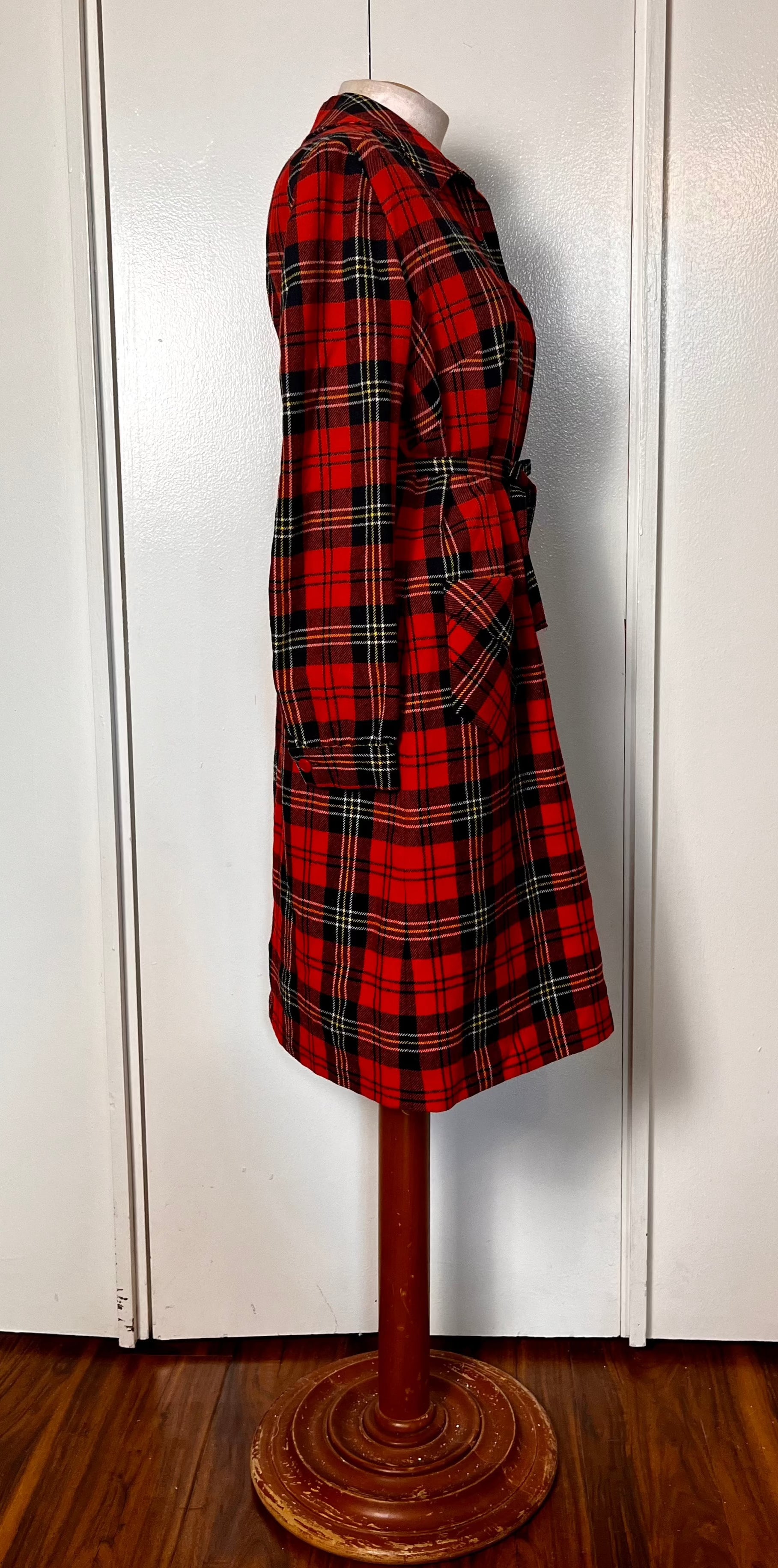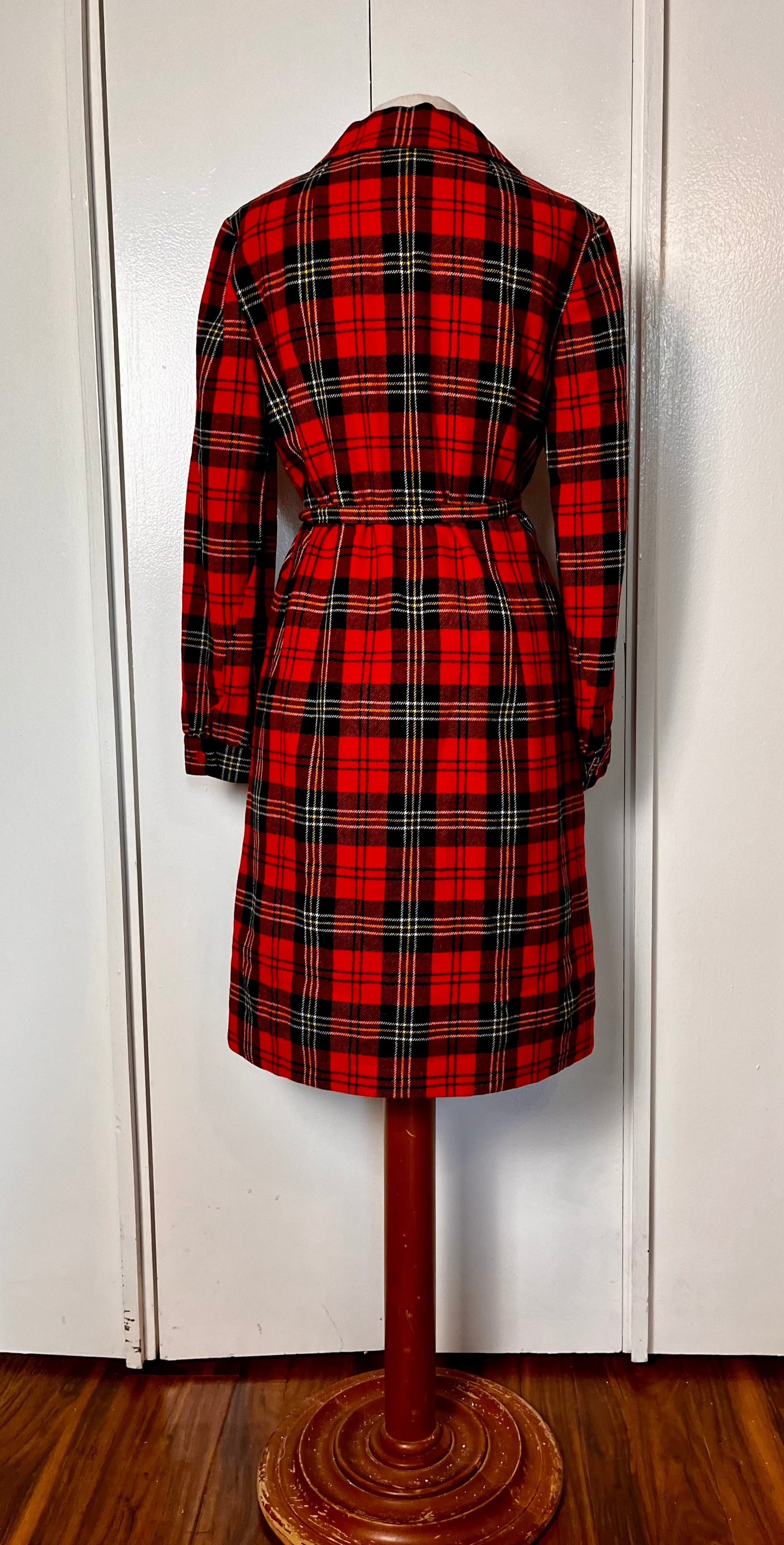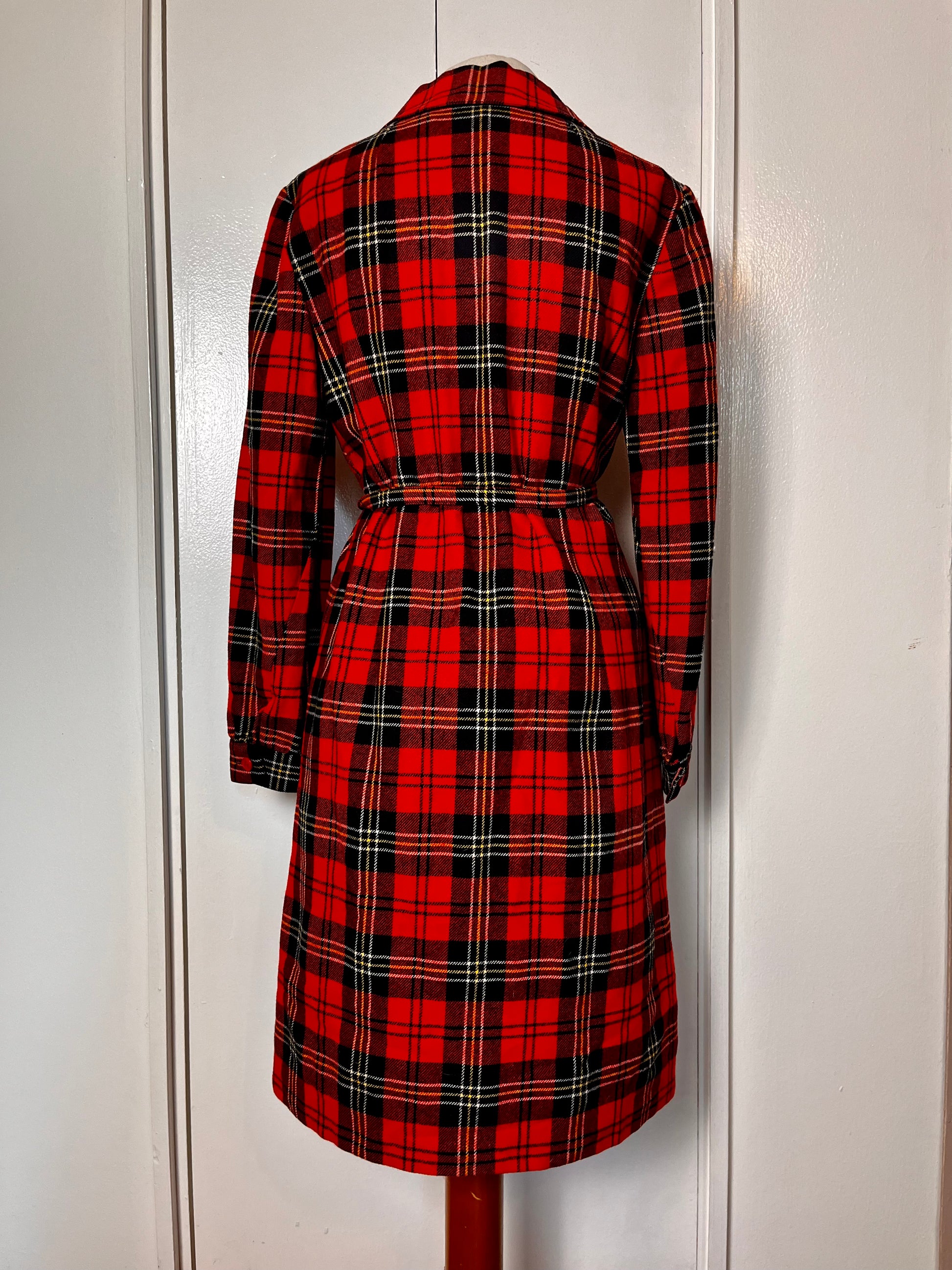 Vintage 1970's "Pendleton" Red Plaid Wool Coat Dress with Belt