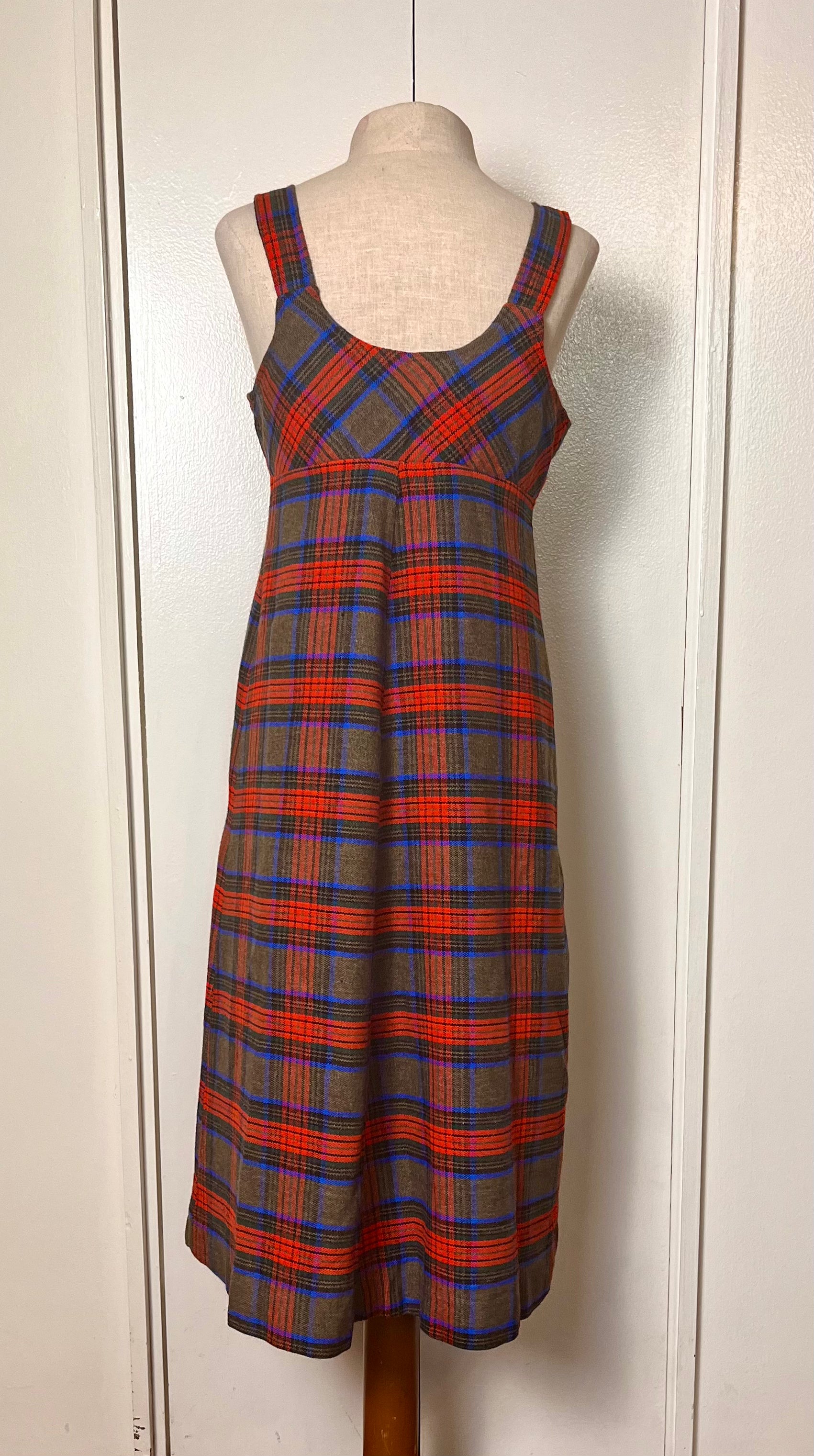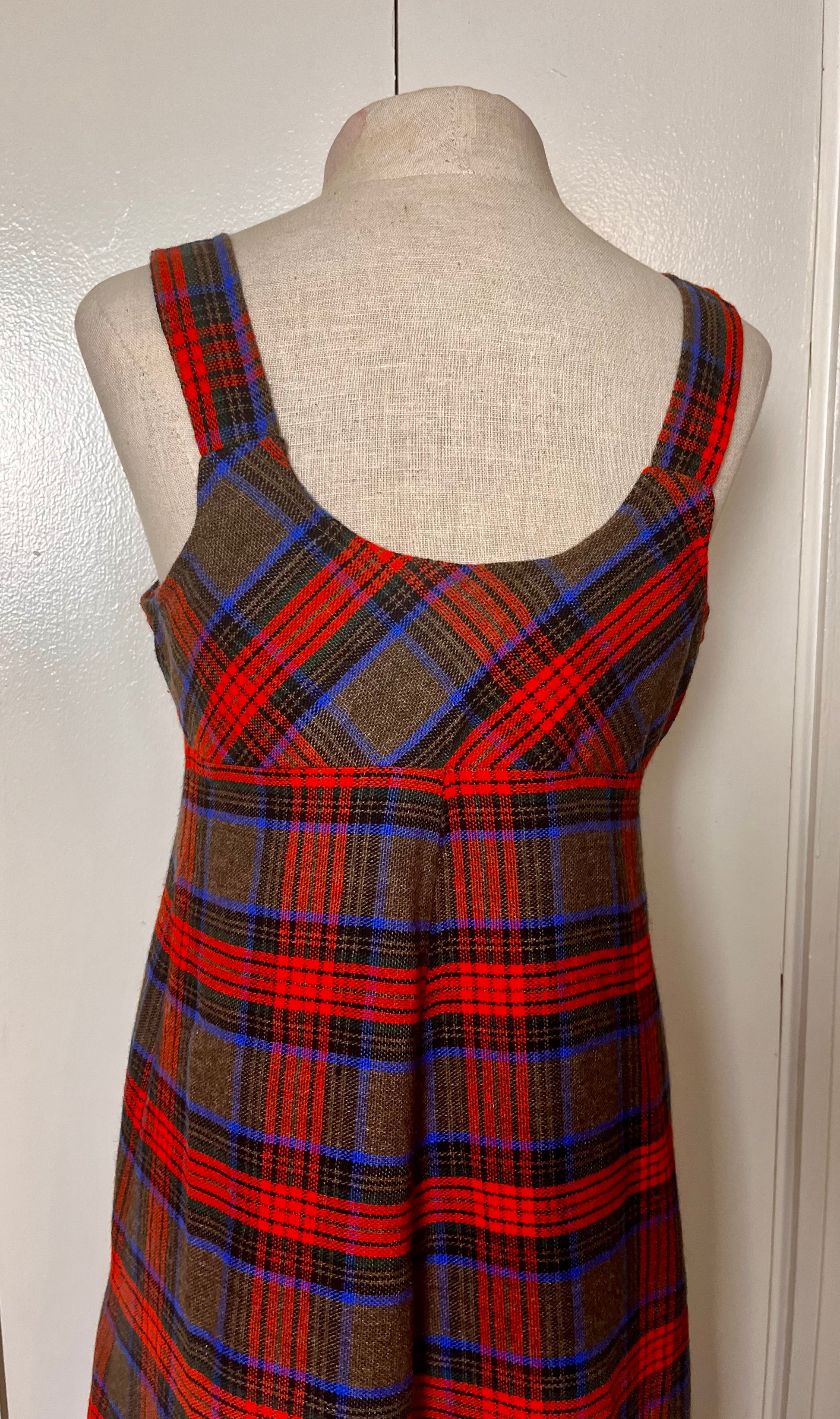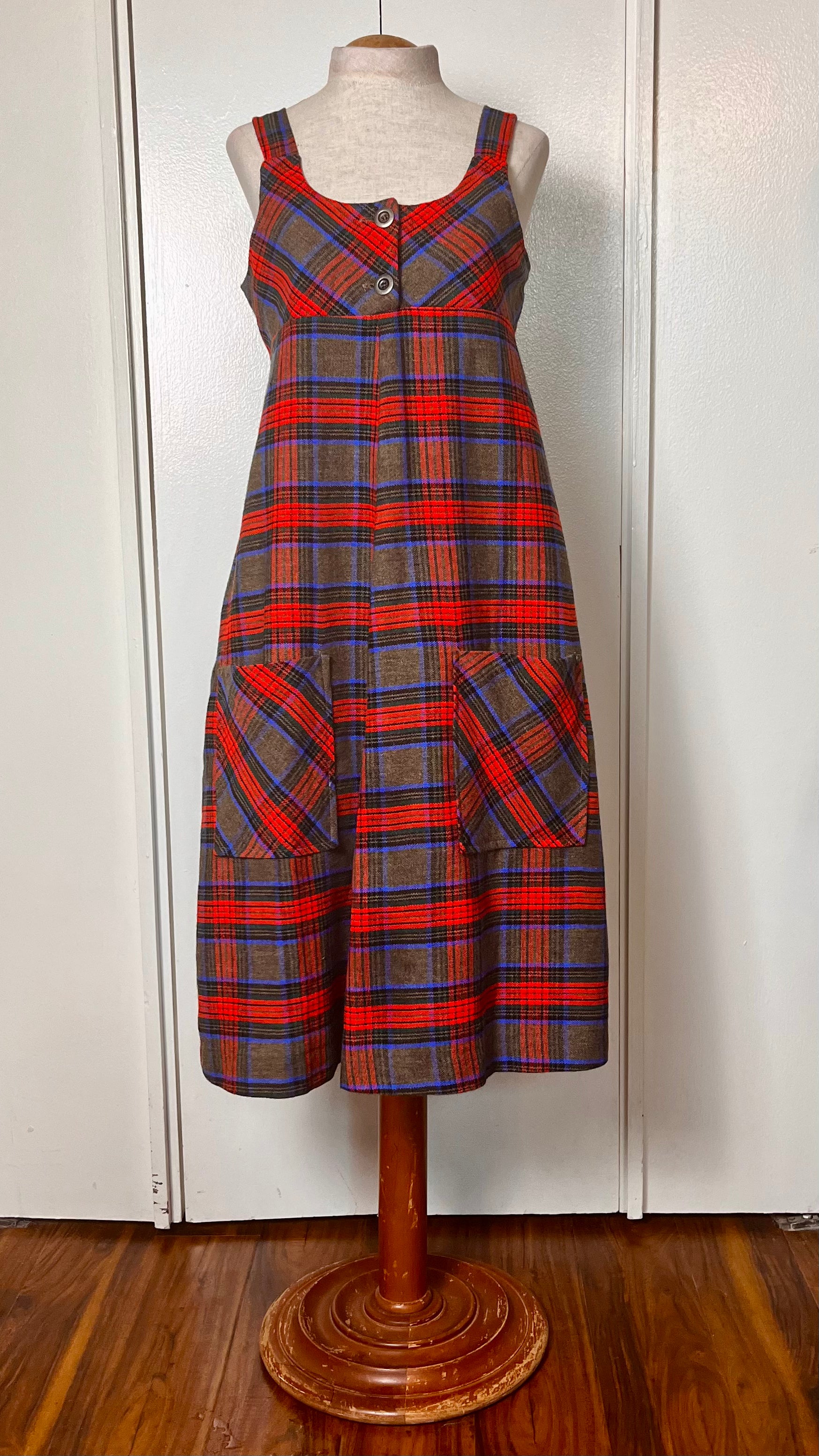 Vintage 1970's Plaid Button-Front Empire Waist Baby-Doll Wool Midi Tent Shift Dress
