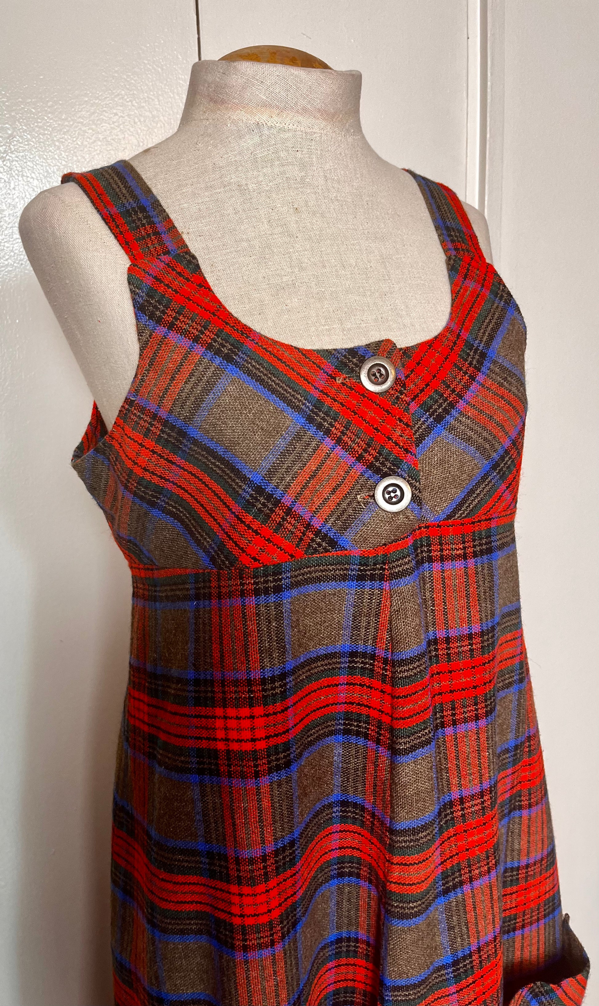 Vintage 1970's Plaid Button-Front Empire Waist Shift Dress