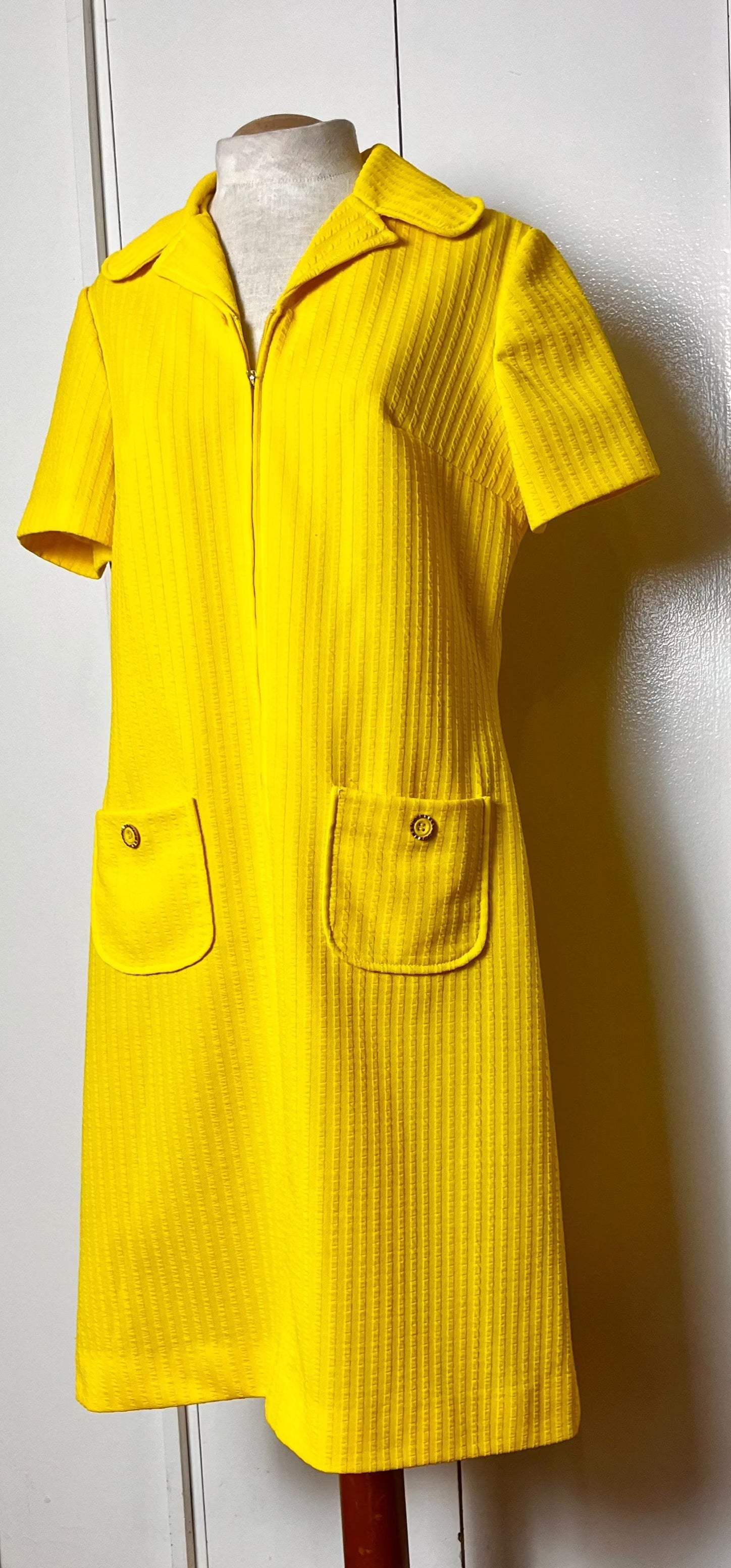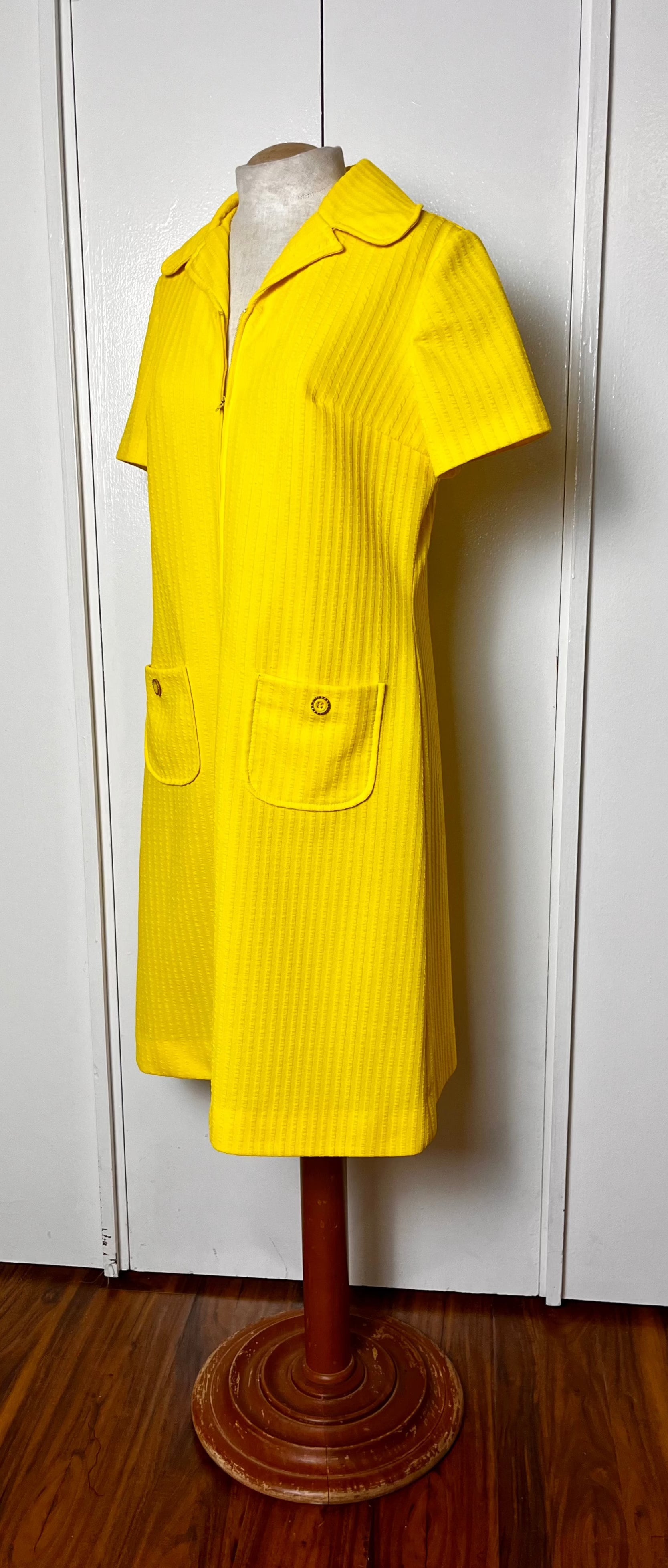 Vintage 1970's "Route One - Coast to Coast" Yellow Shift Dress