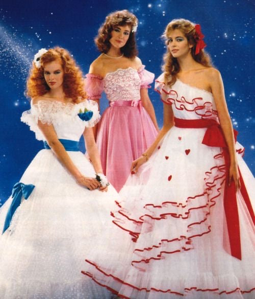 Good vintage condition. No major flaws to note. Brand tag is no longer present; please refer to the last photo showing this Alfred Angelo design (red version) as seen in the March 1984 issue of Seventeen Magazine. Material composition is 100% synthetic.