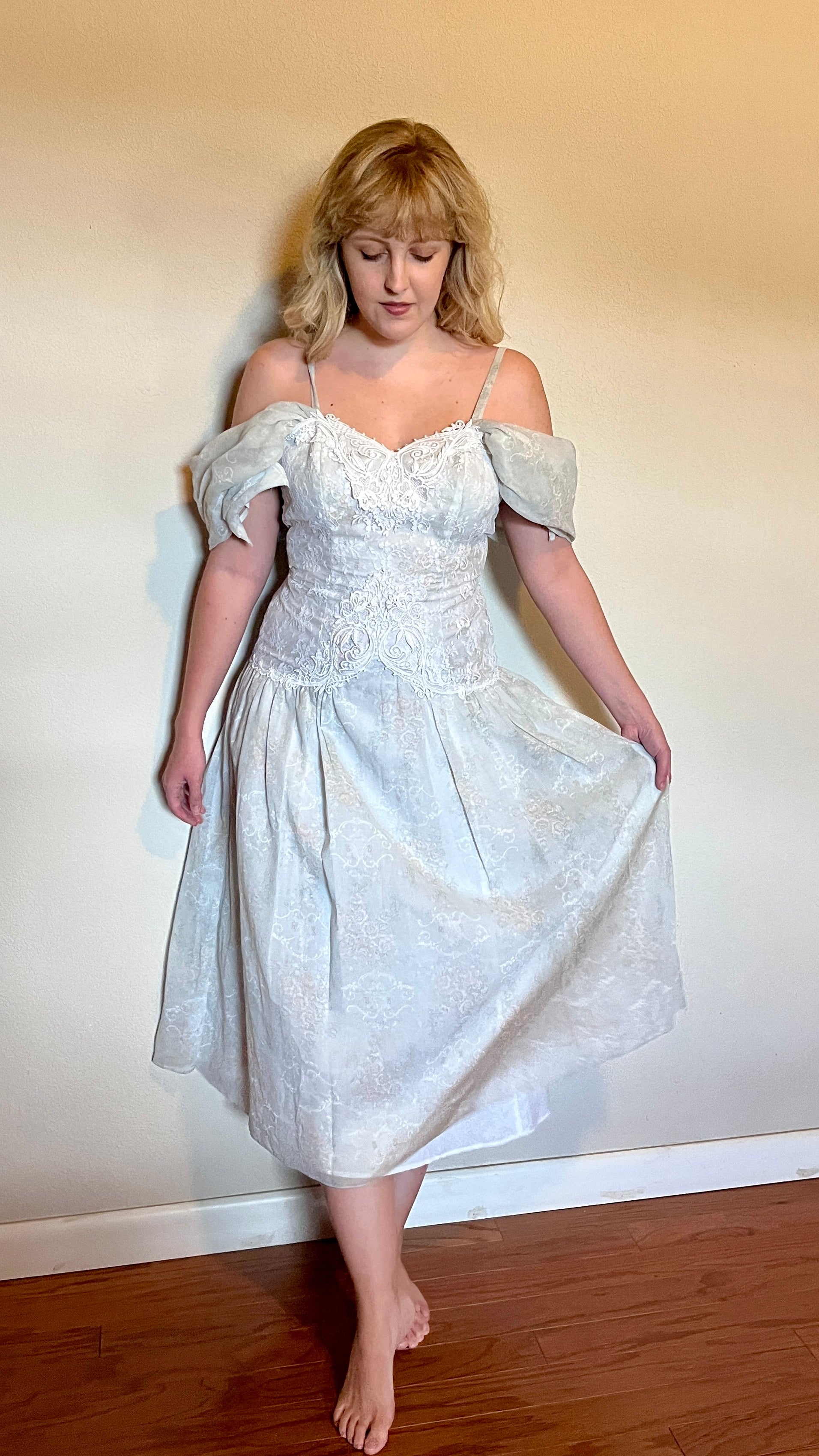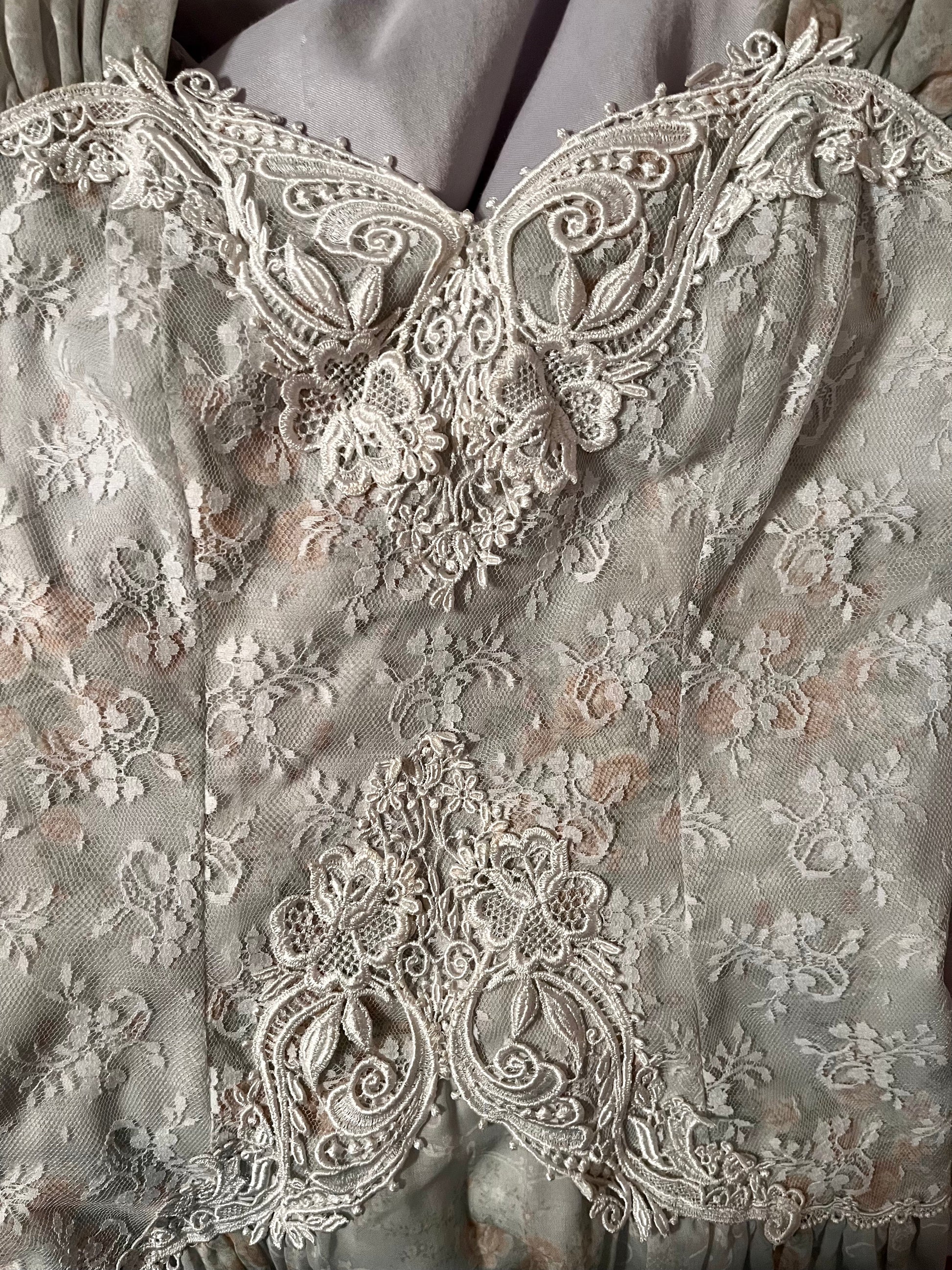 Vintage 1980’s Scott McClintock Lace Seafoam Blue-Green Tea Length Dress