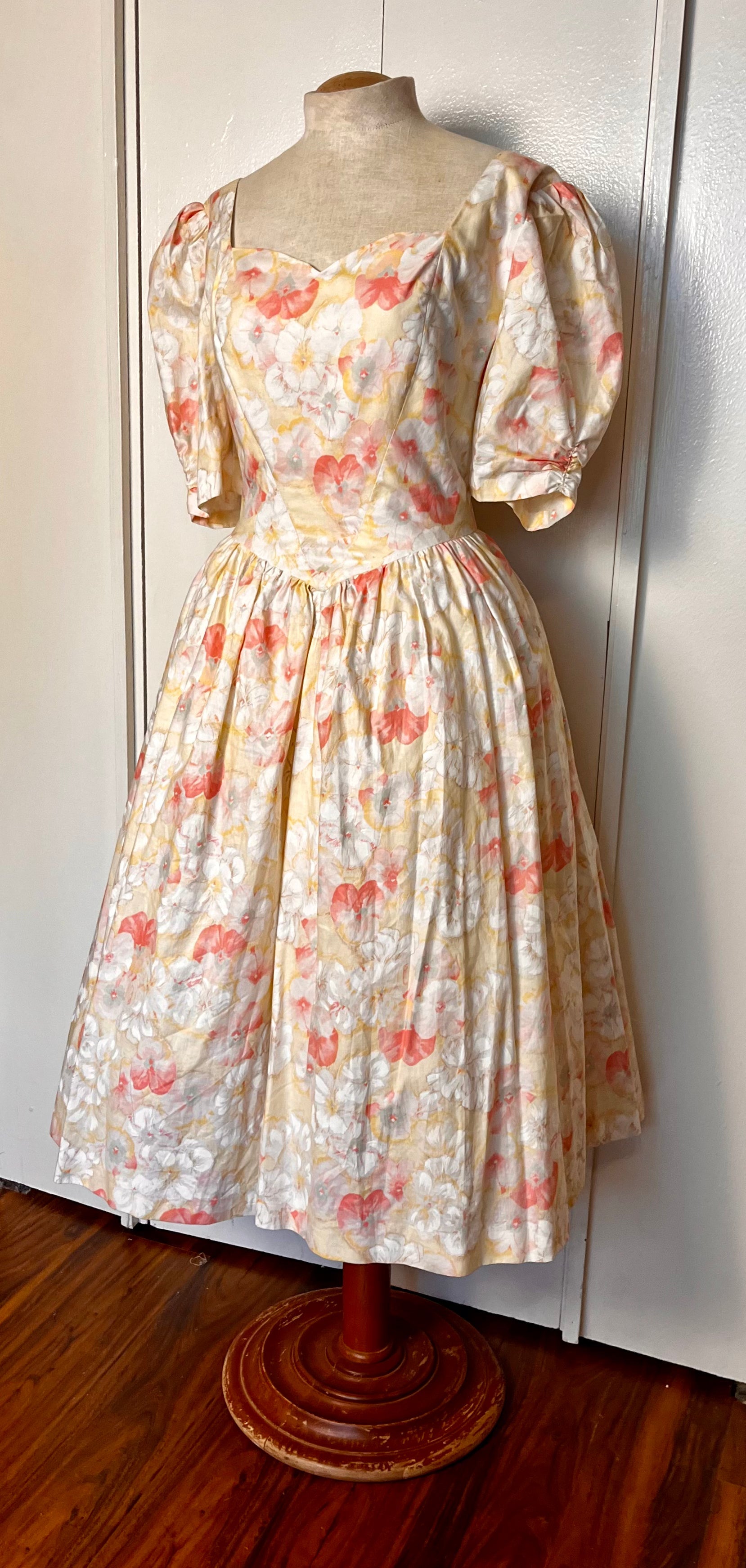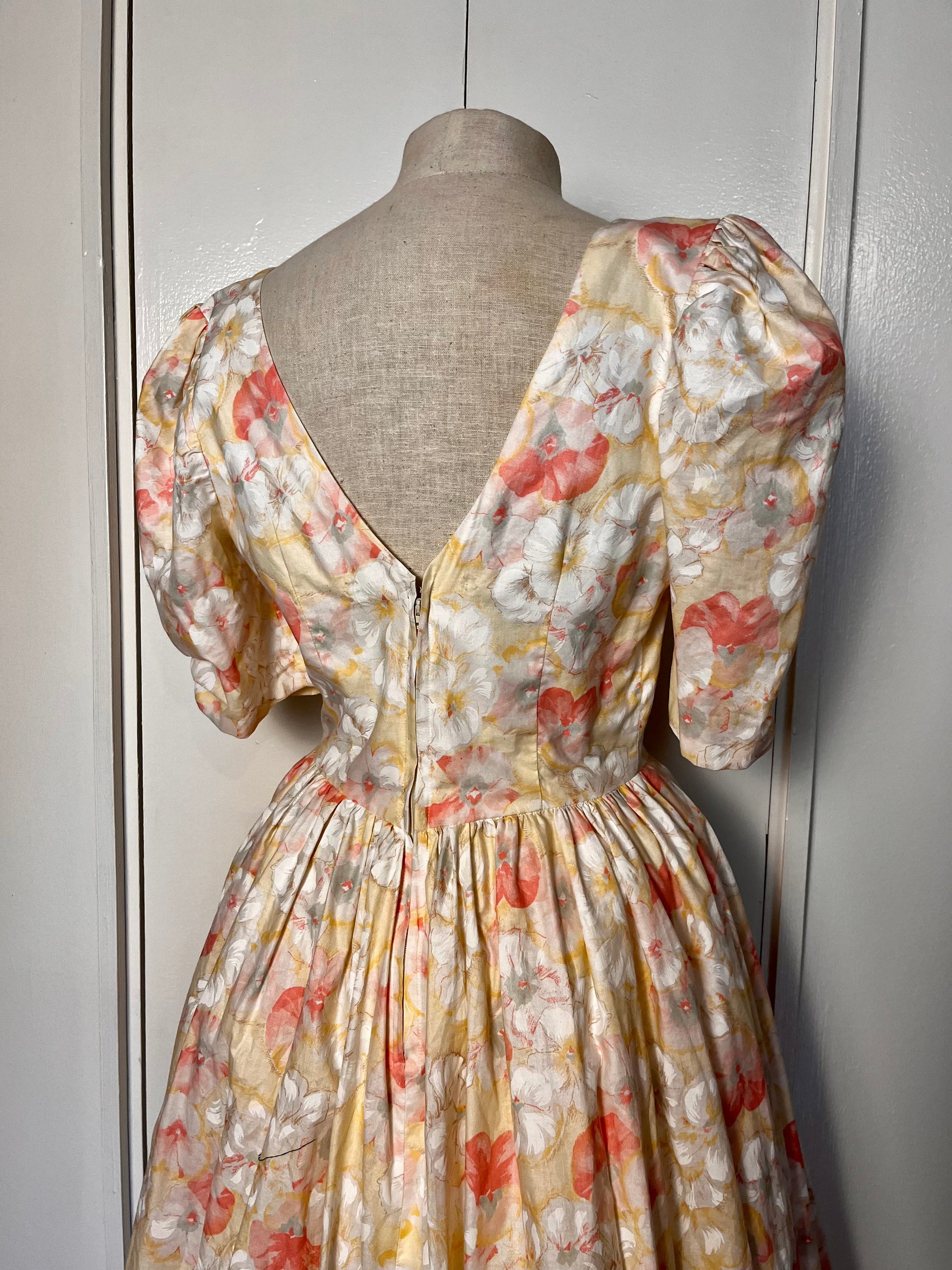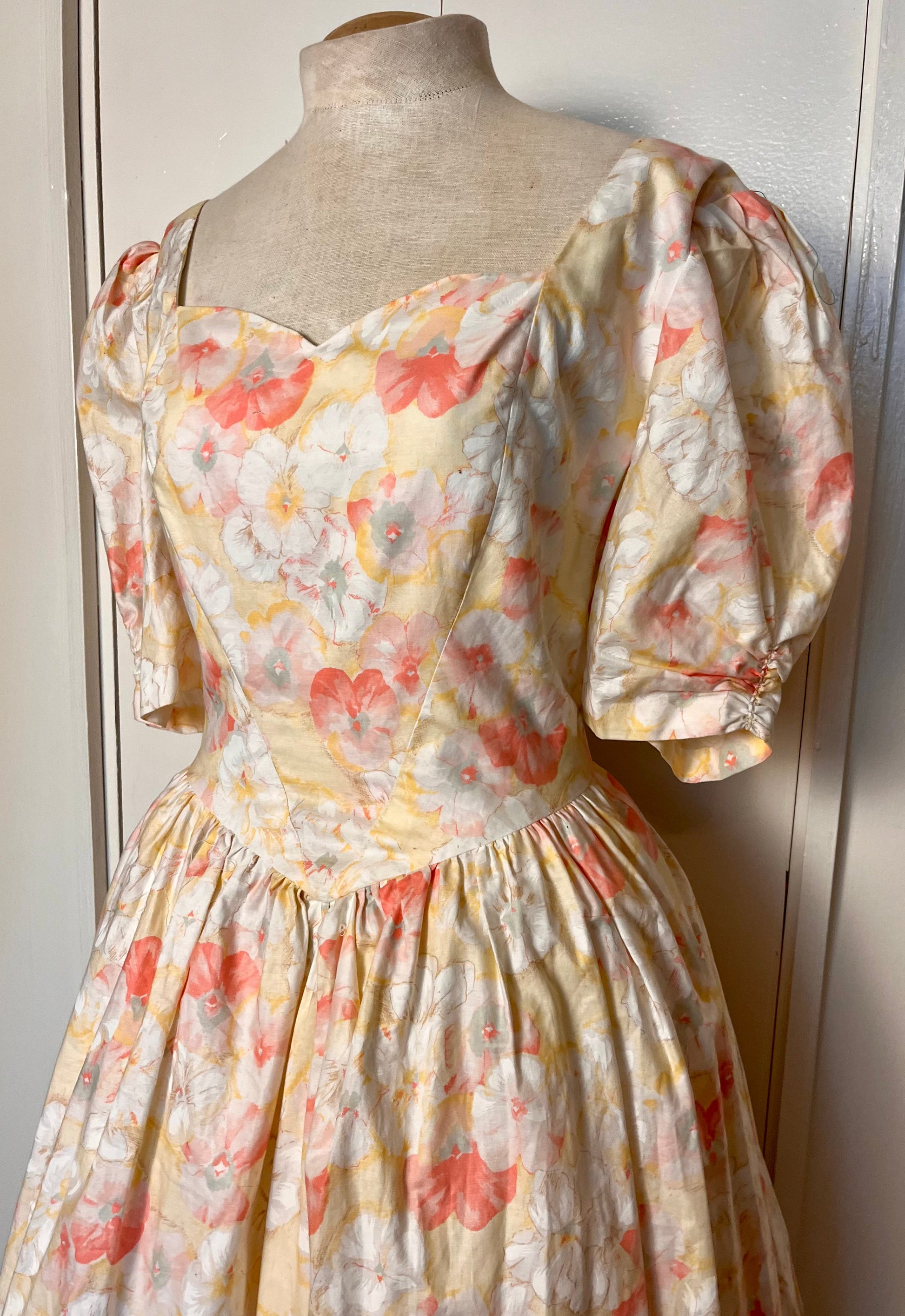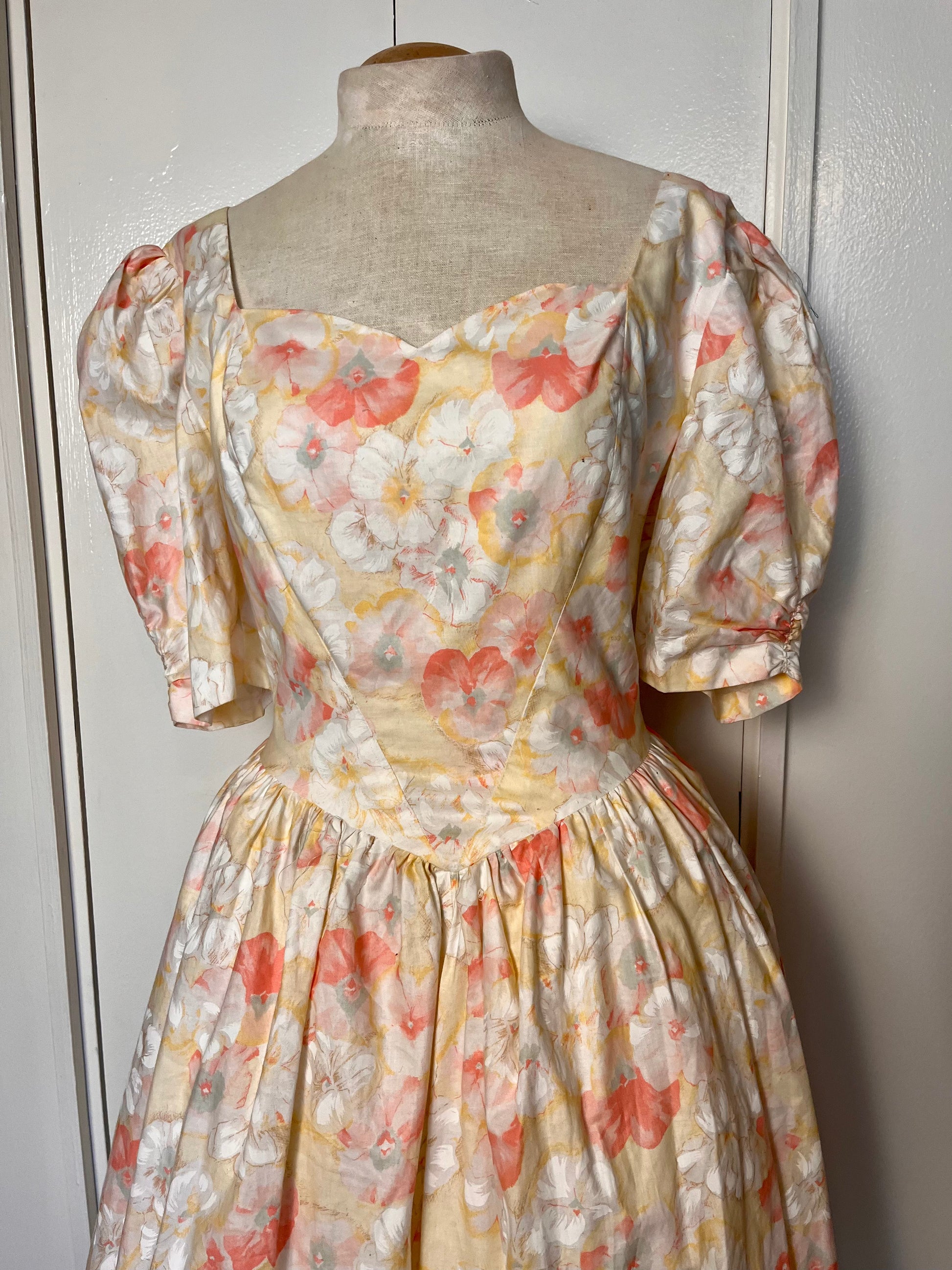 Vintage 1980's "Home-Sewn" Yellow Floral Dress (in the style of Laura Ashley)