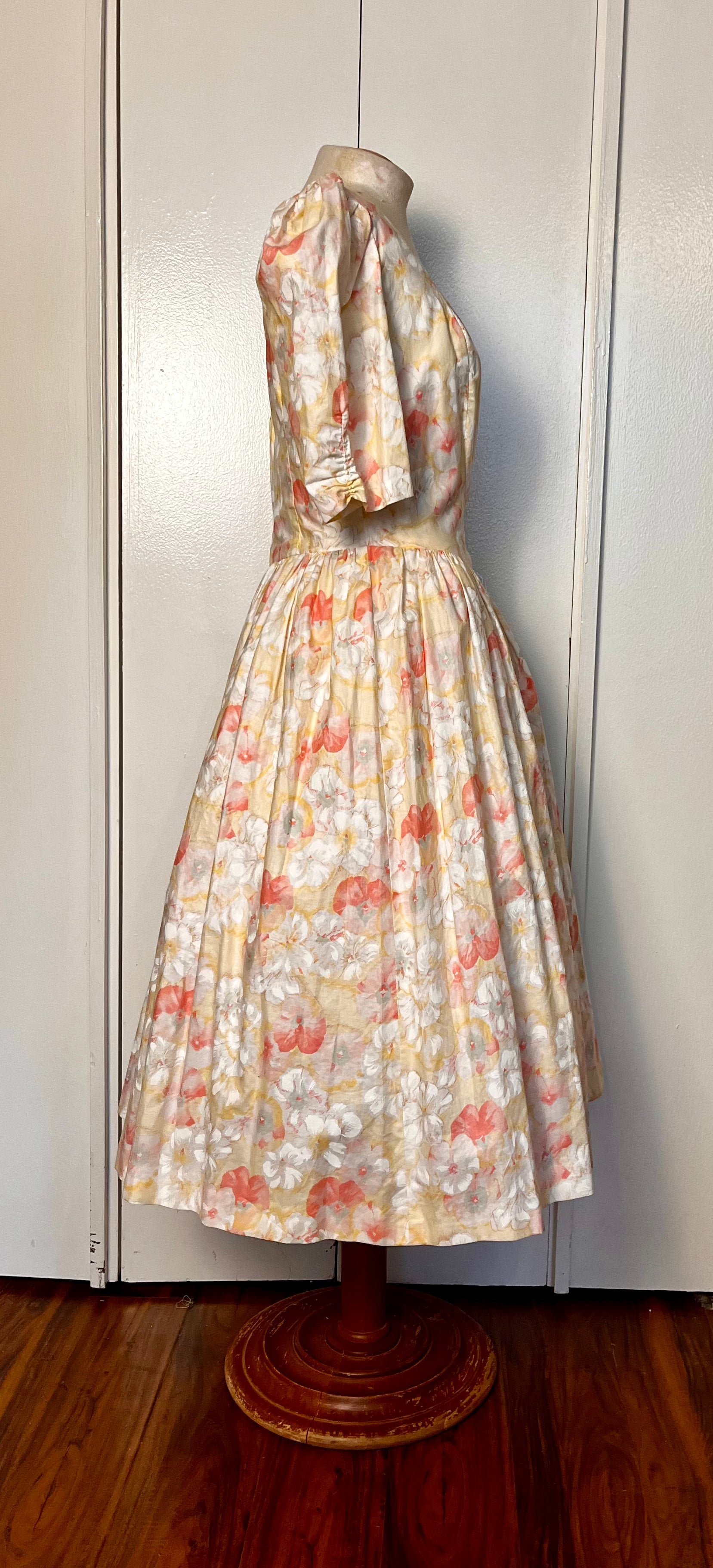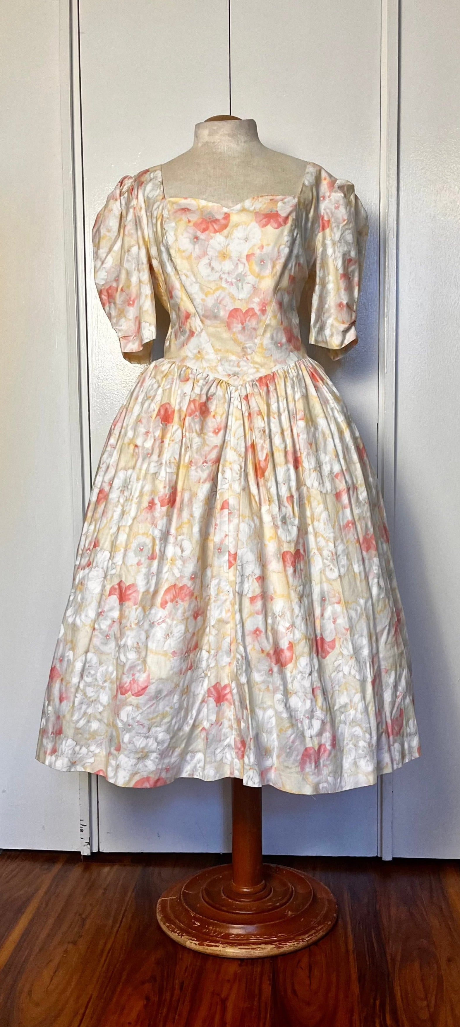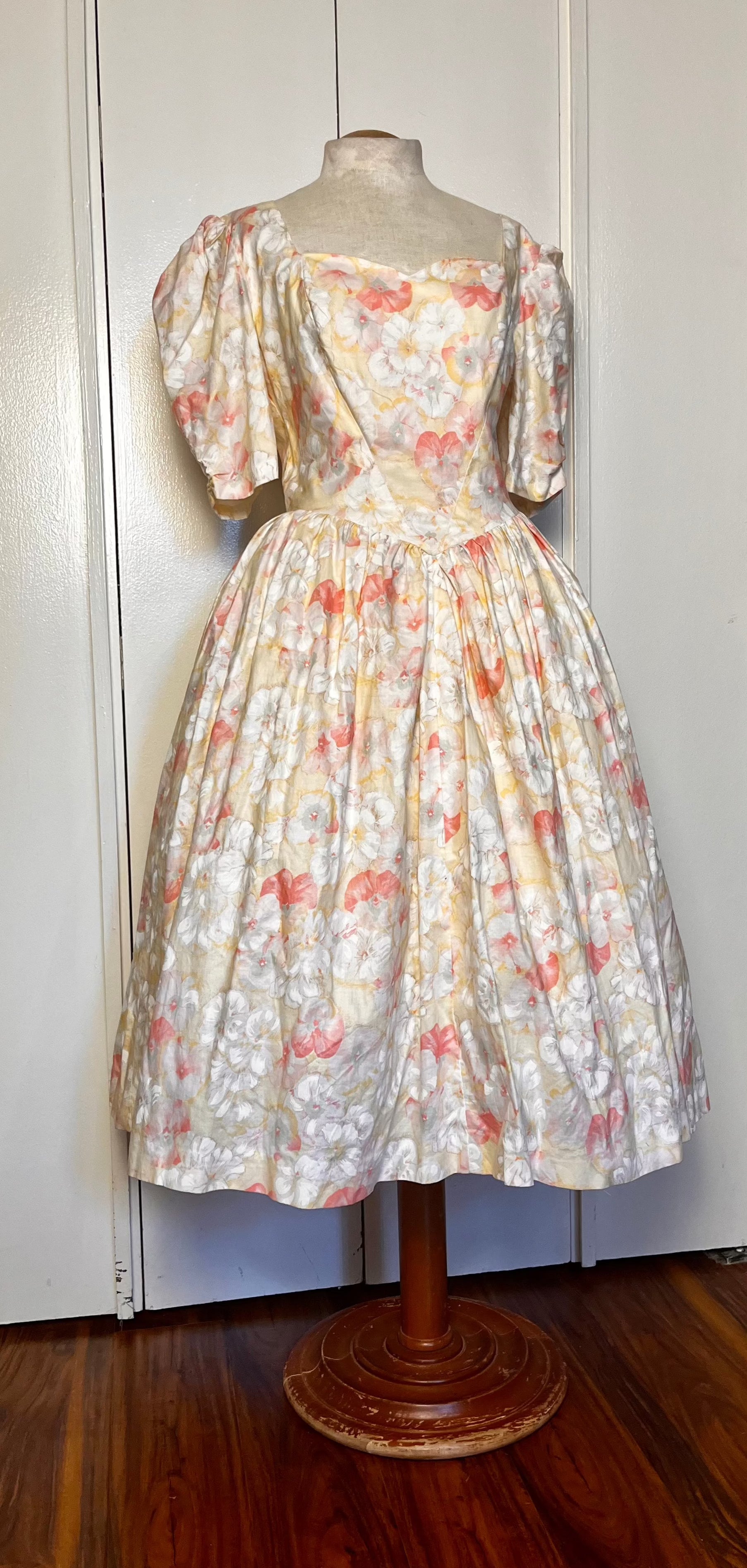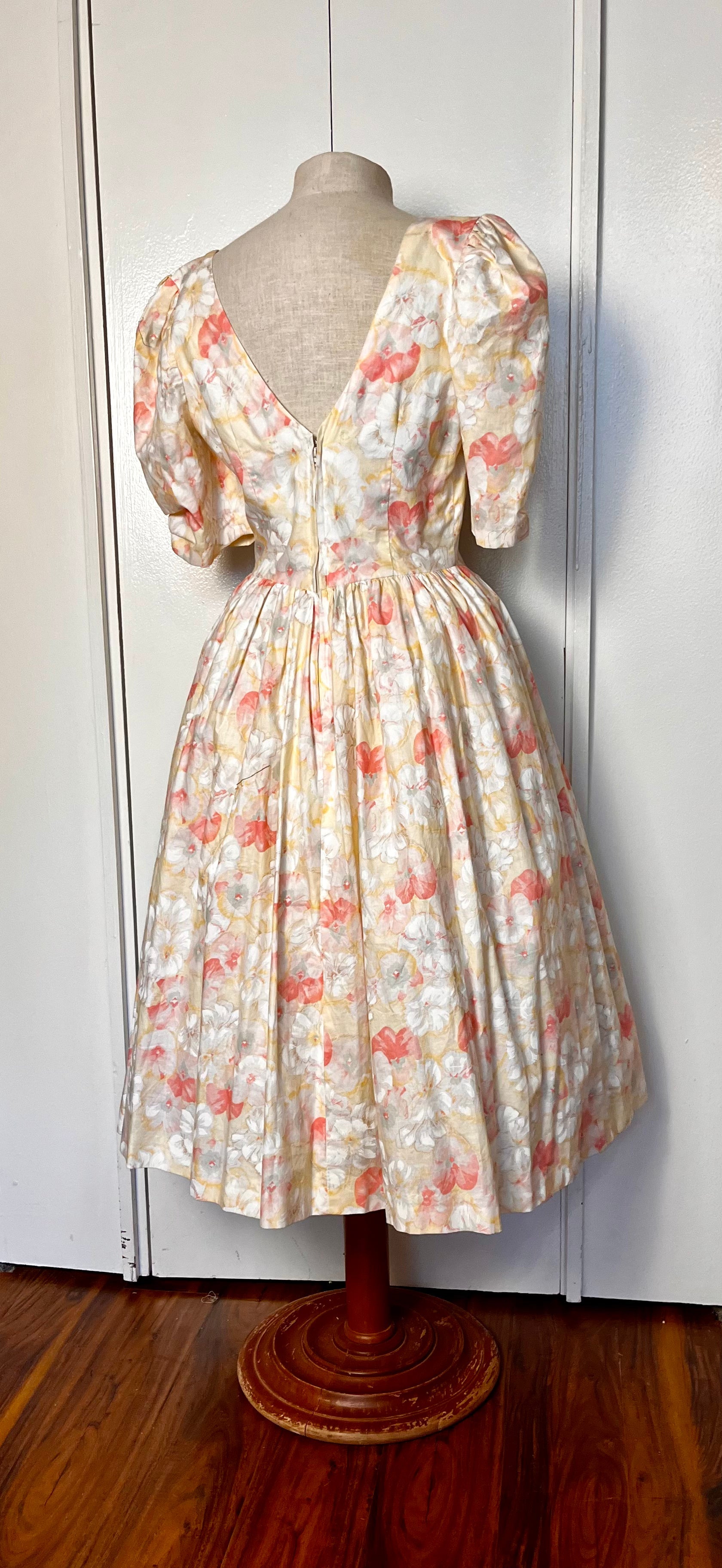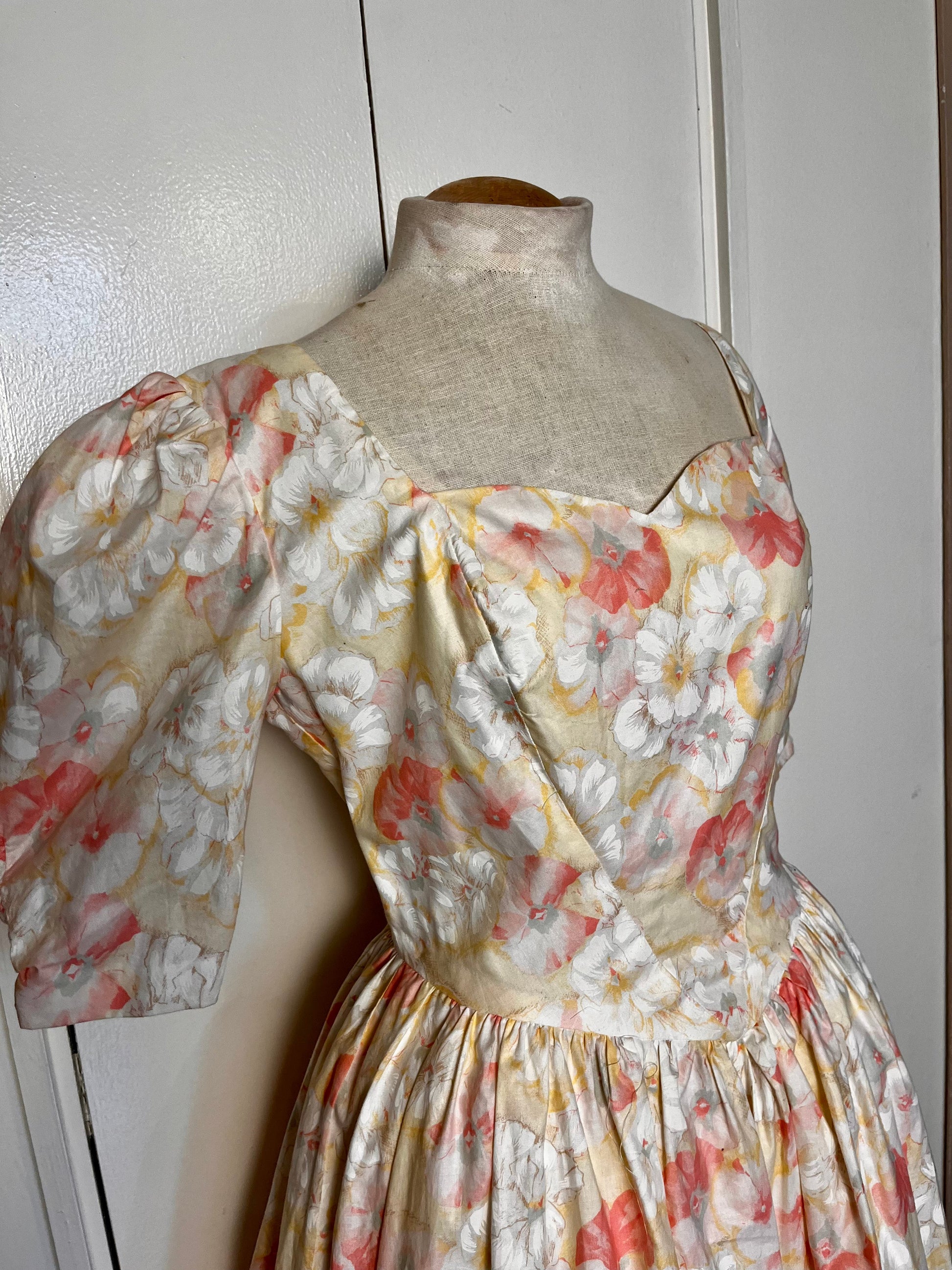 Vintage 1980's "Home-Sewn" Yellow Floral Dress (in the style of Laura Ashley)