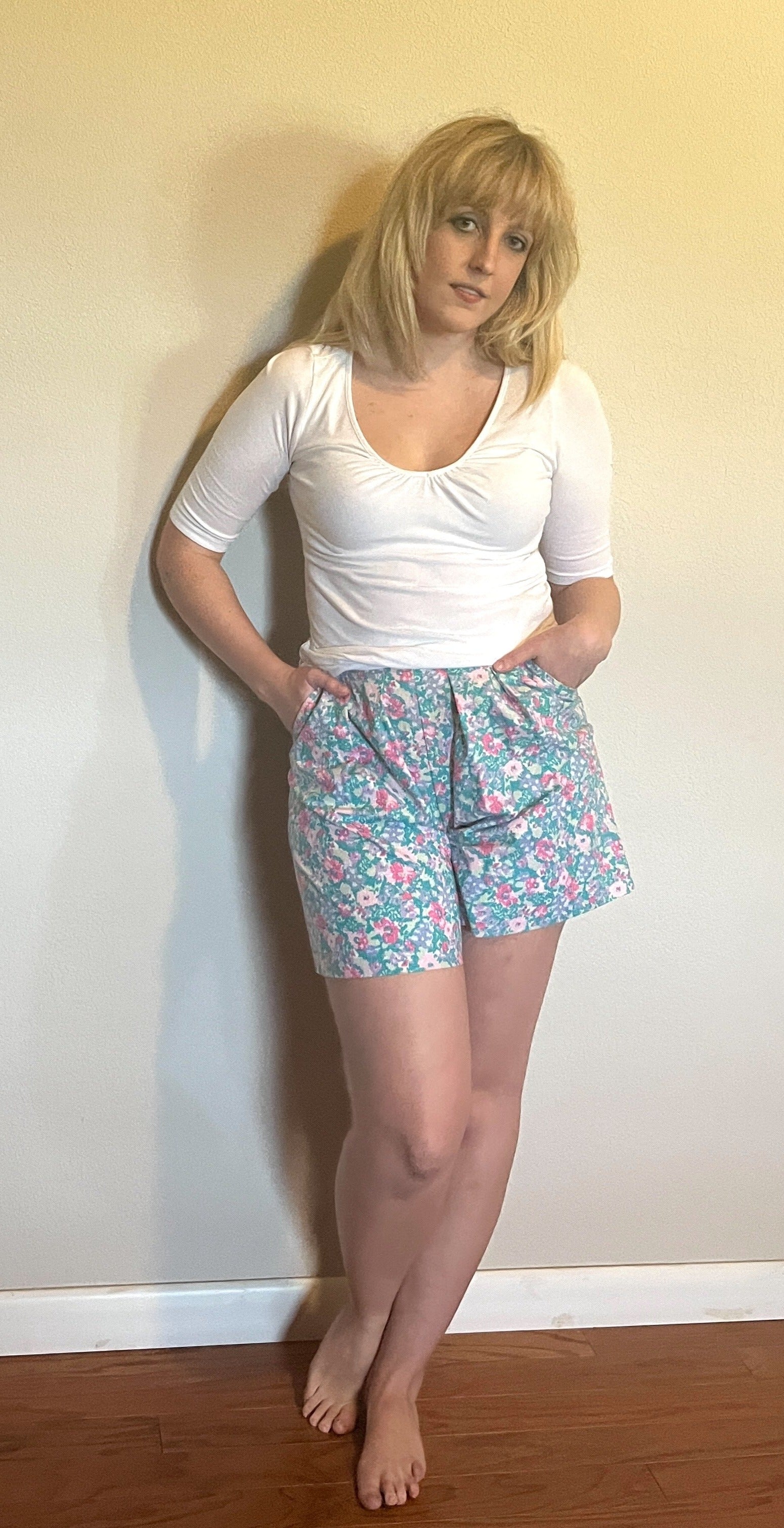 Vintage 1980's "Laura Ashley" Turquoise & Pink Floral Shorts