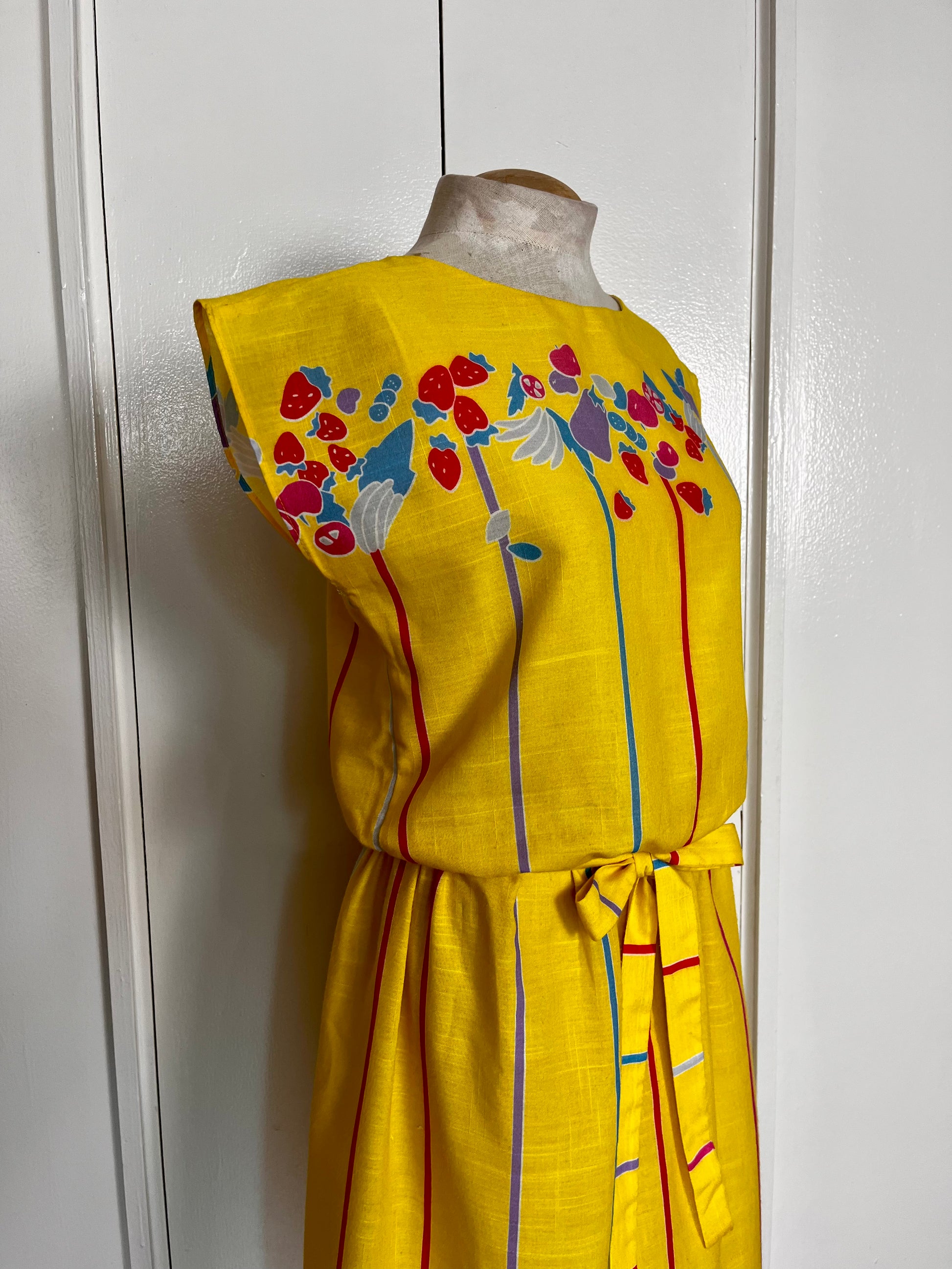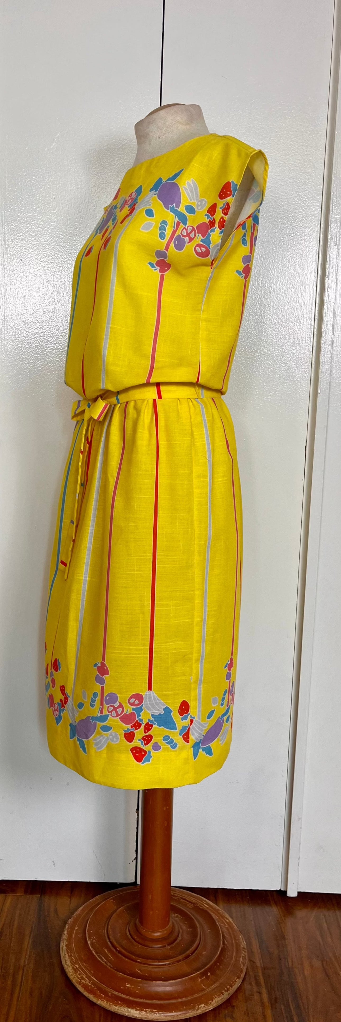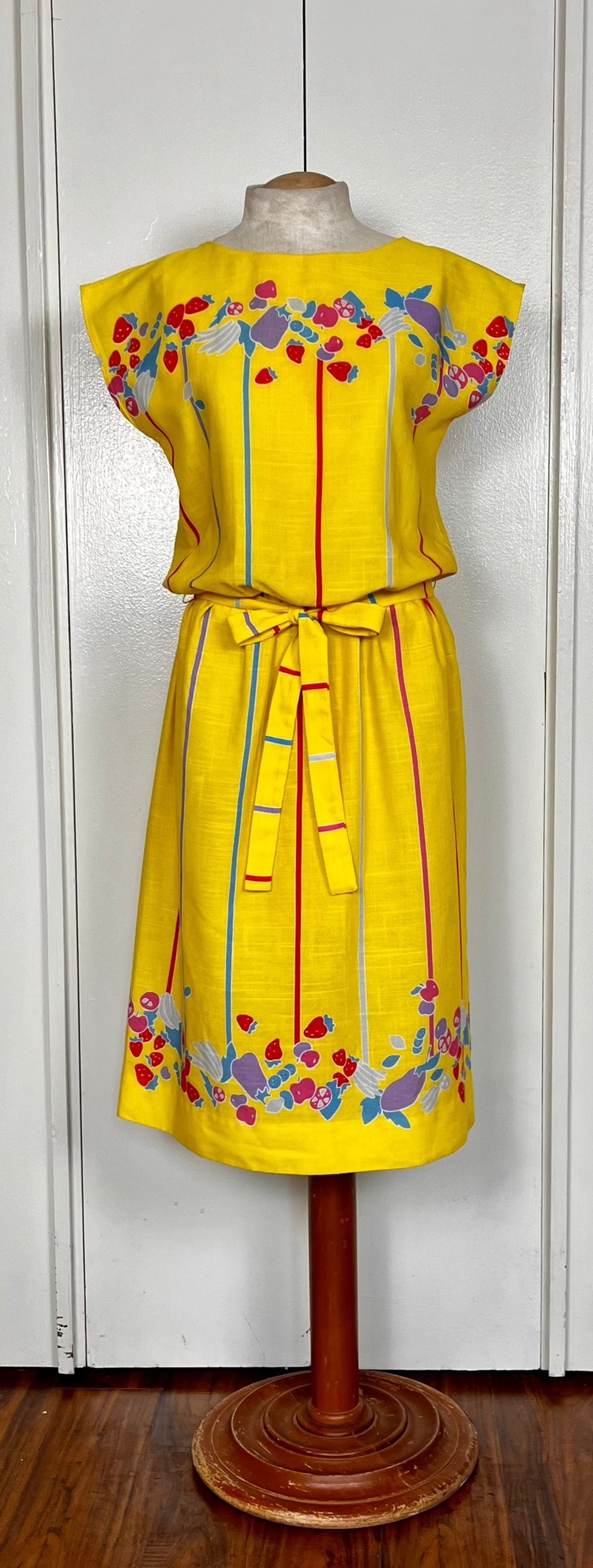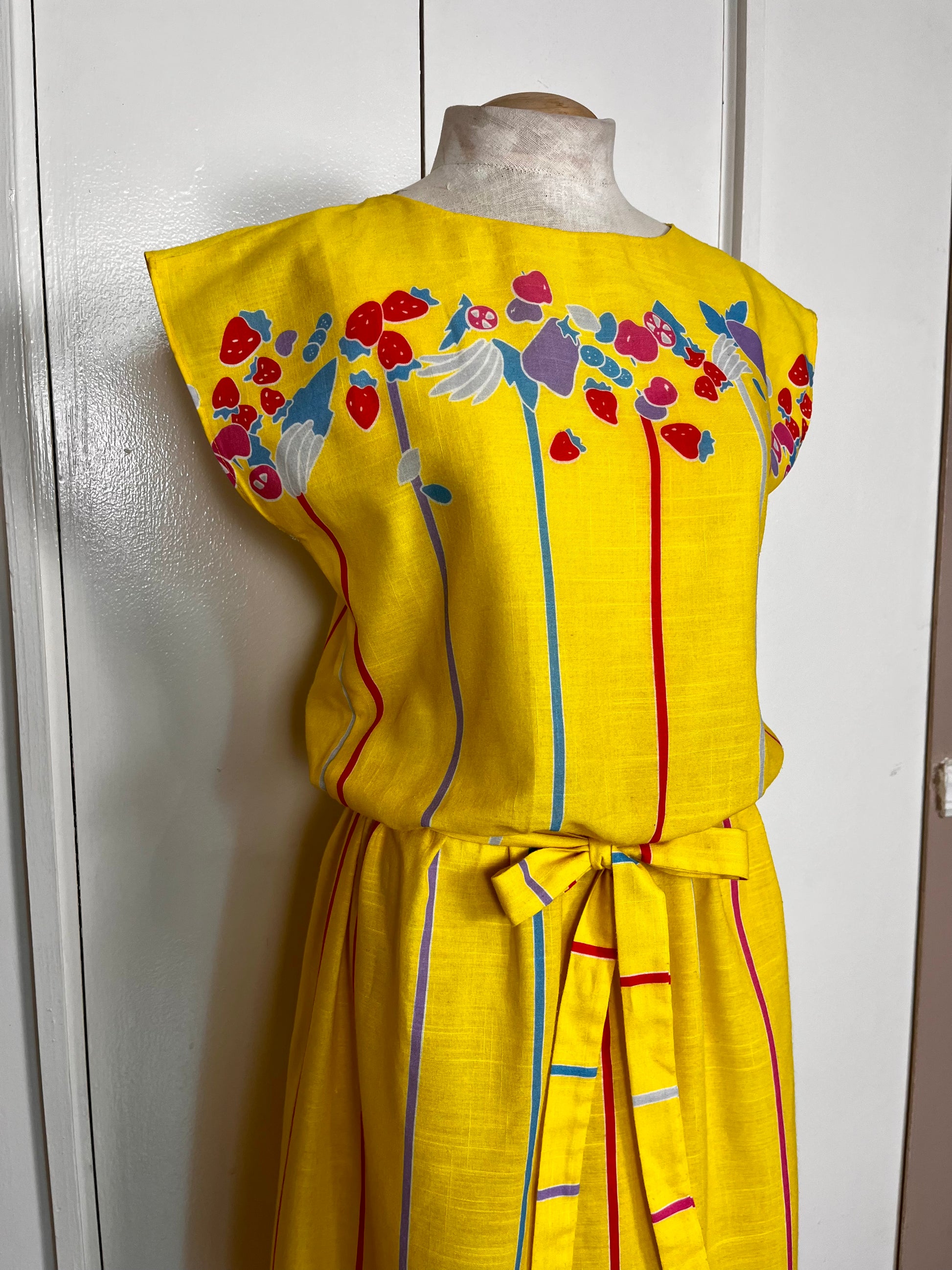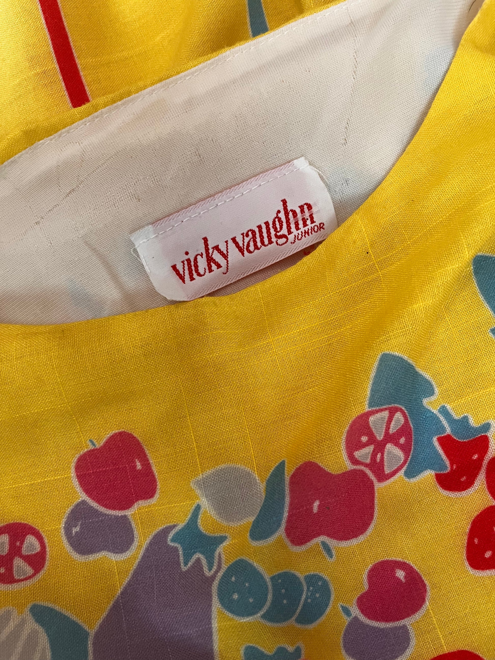 Vintage 1980's "Vicky Vaughn" Yellow Fruit-Print Dress