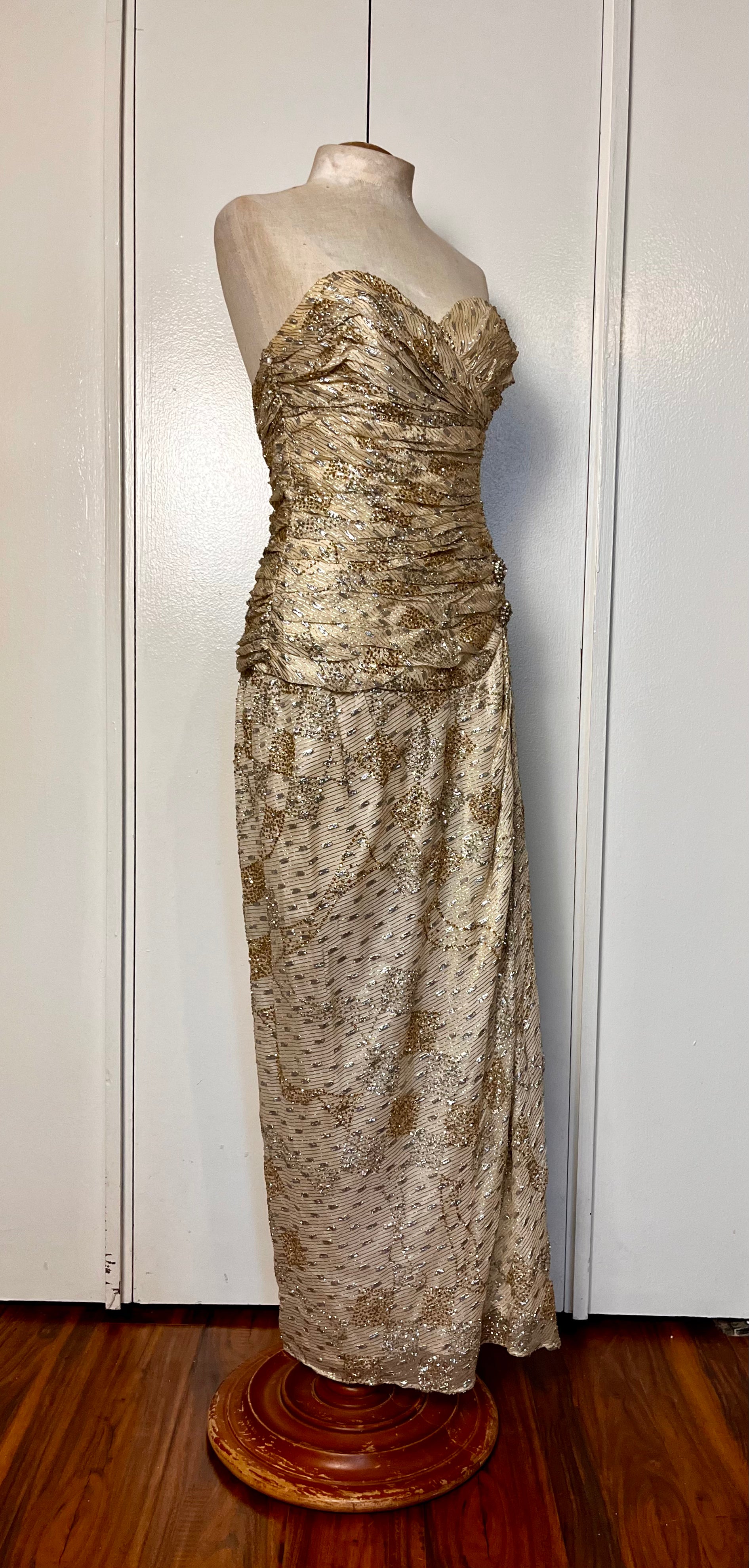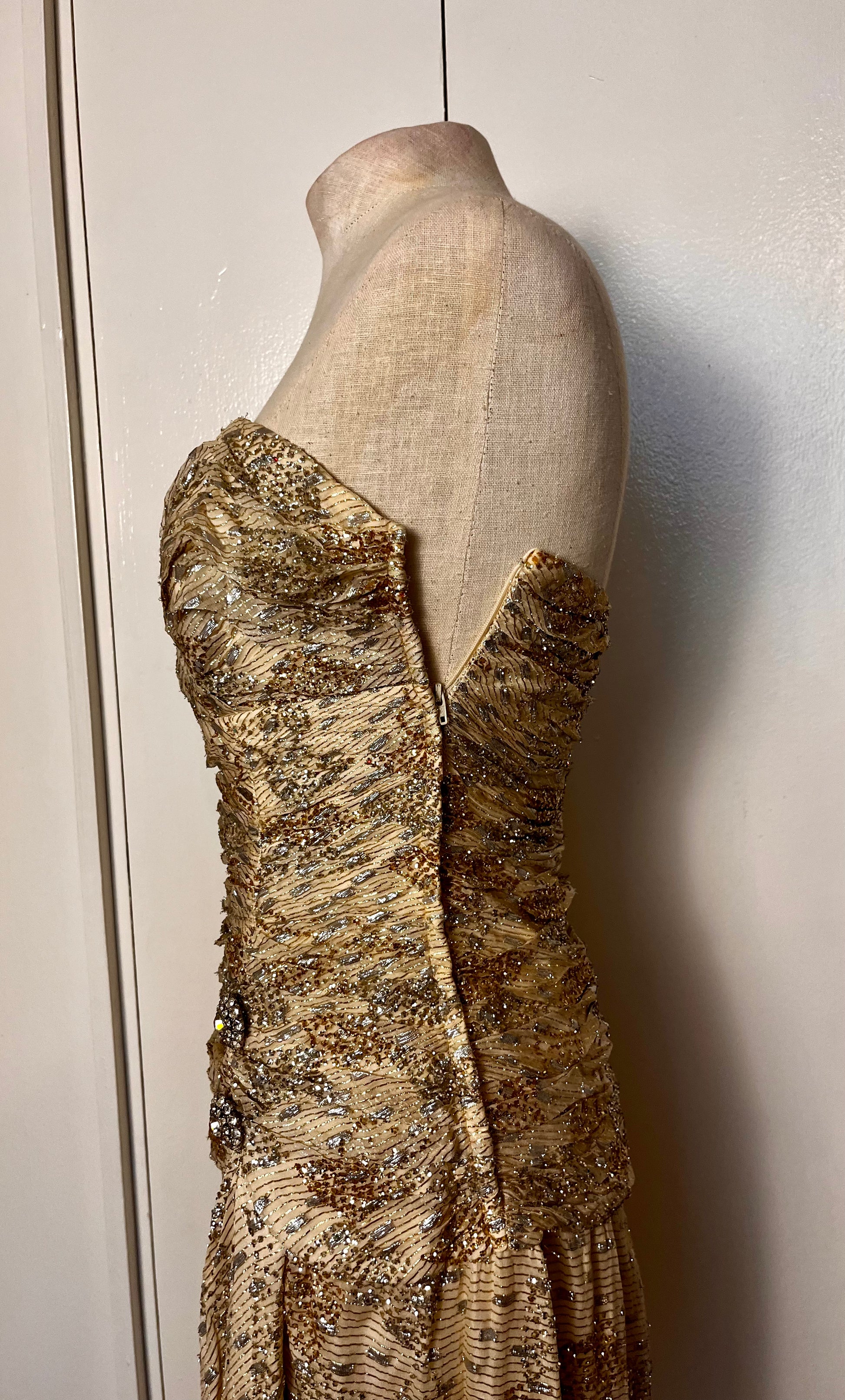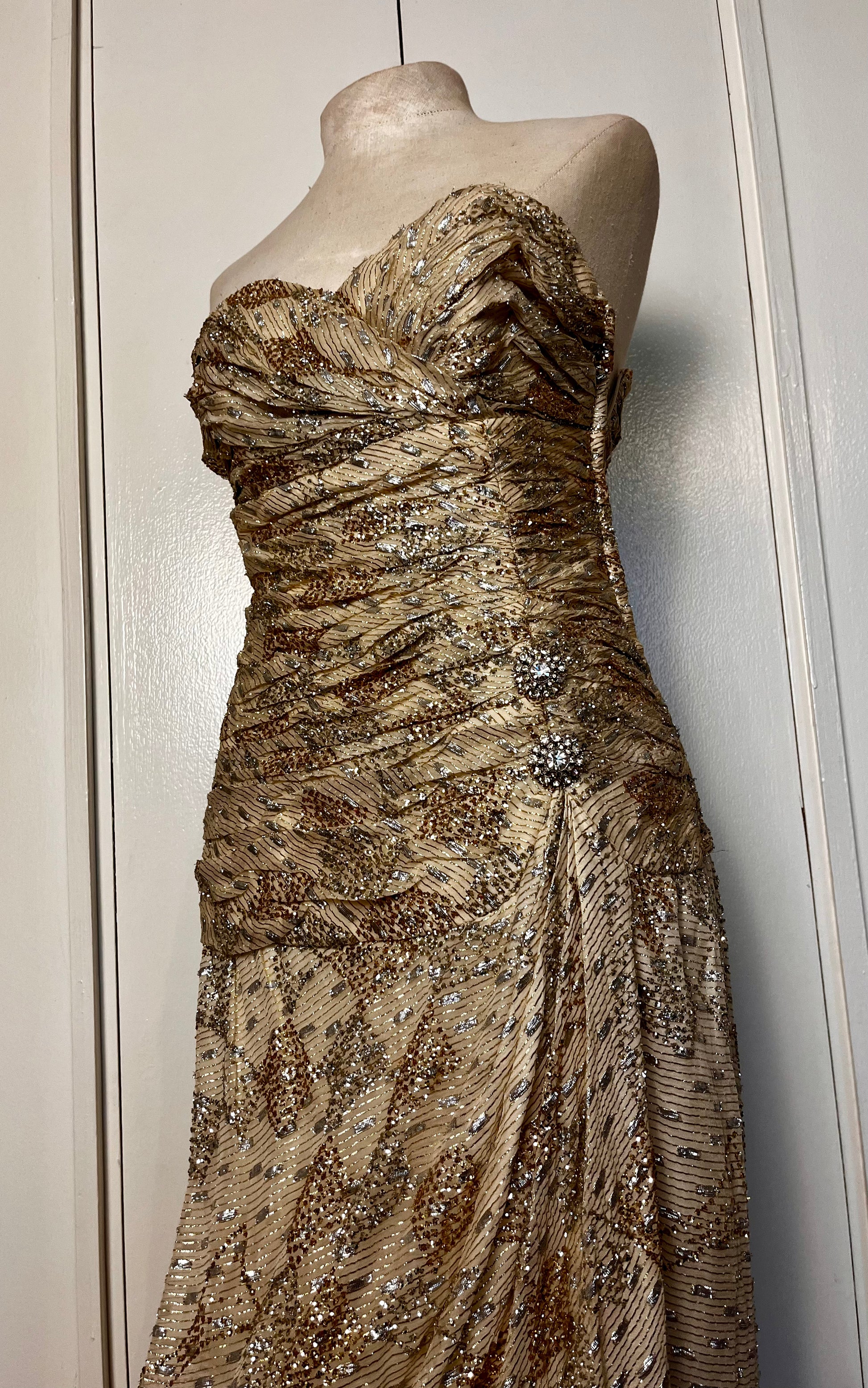 Vintage 1990's "Martyn's" Gold Glitter Evening Gown