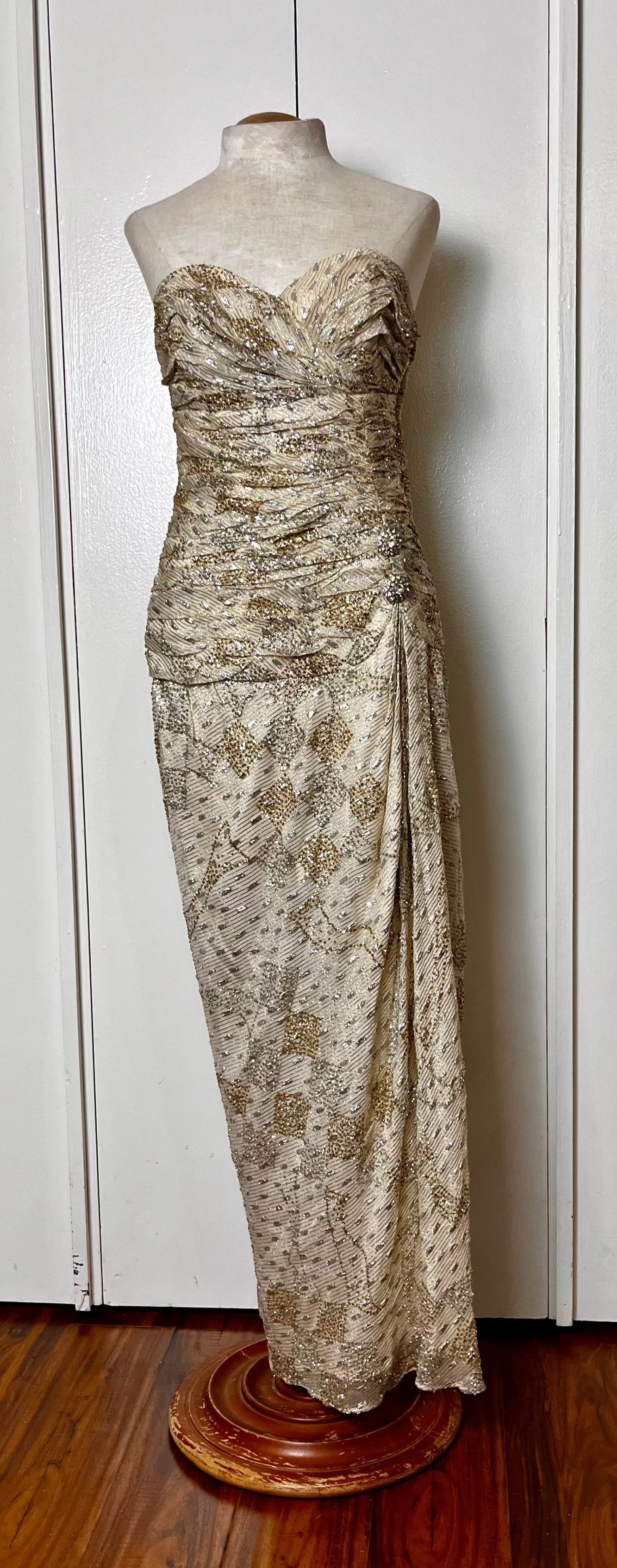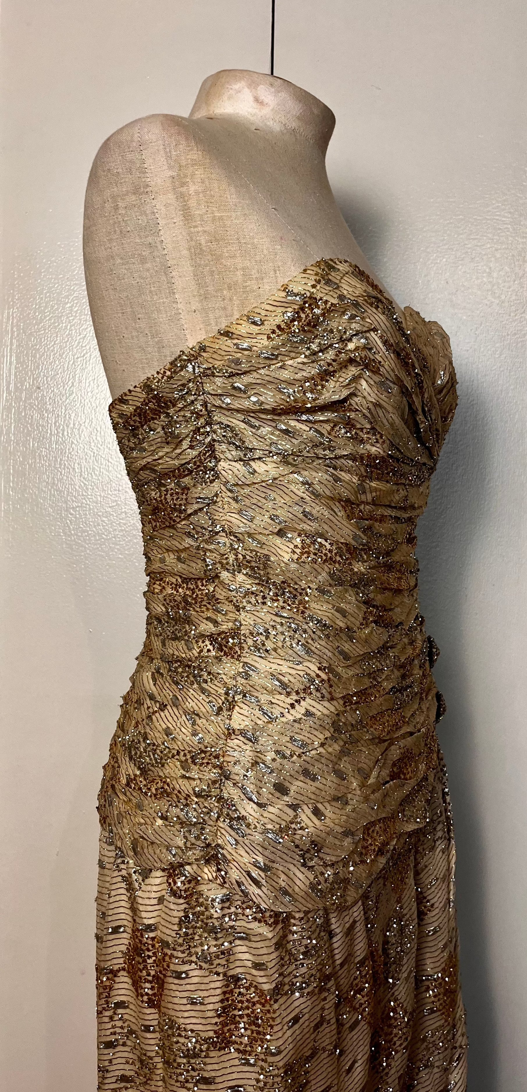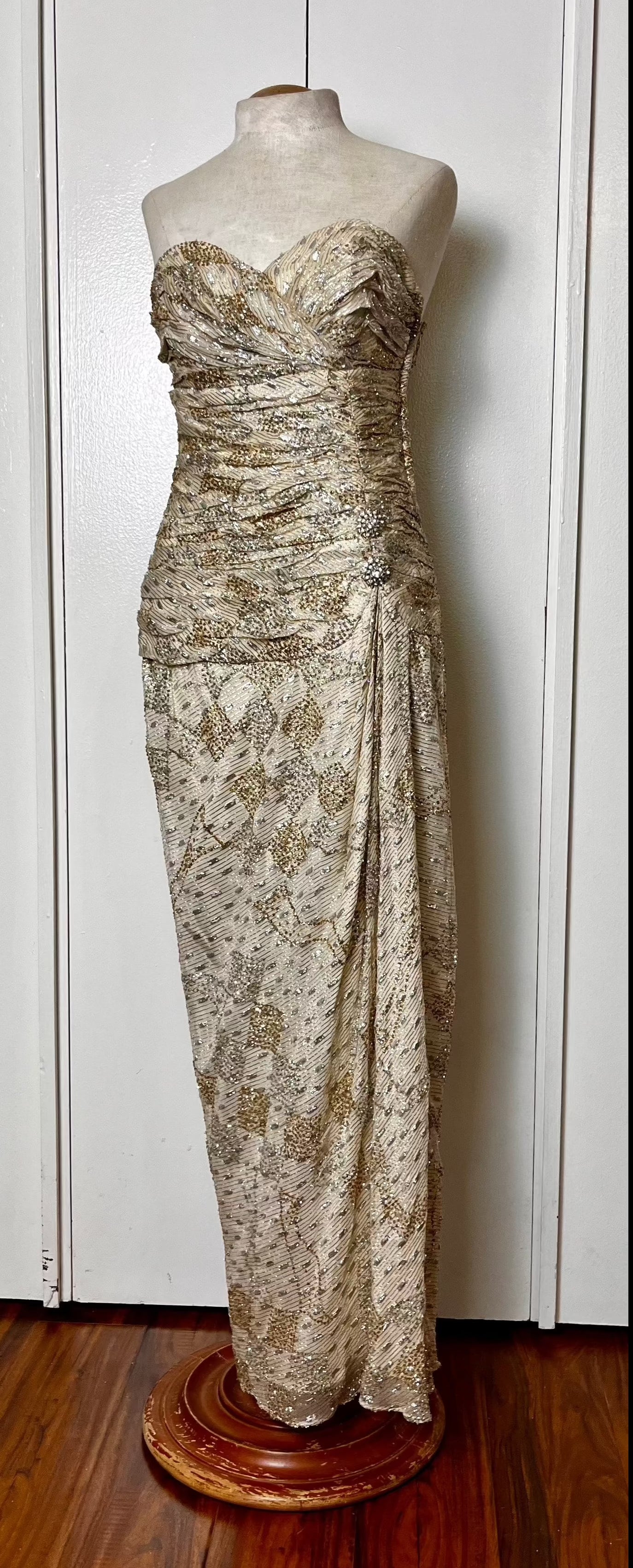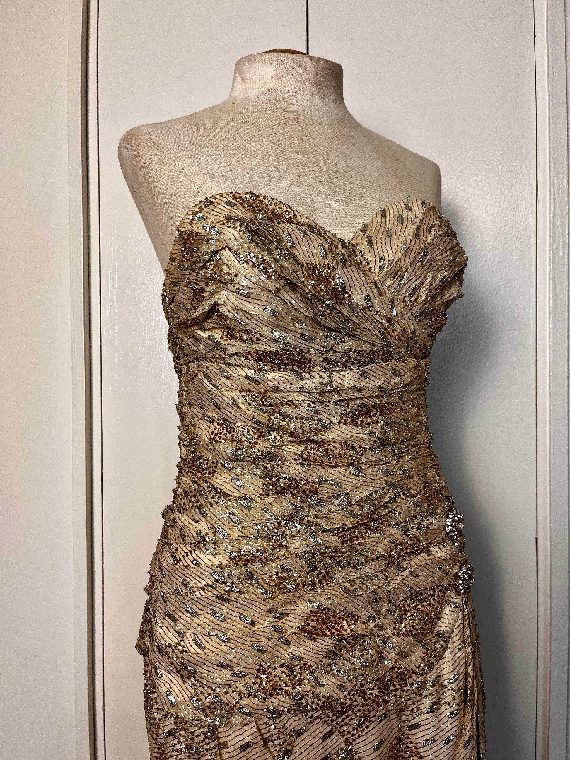 Vintage 1990's "Martyn's" Gold Glitter Evening Gown