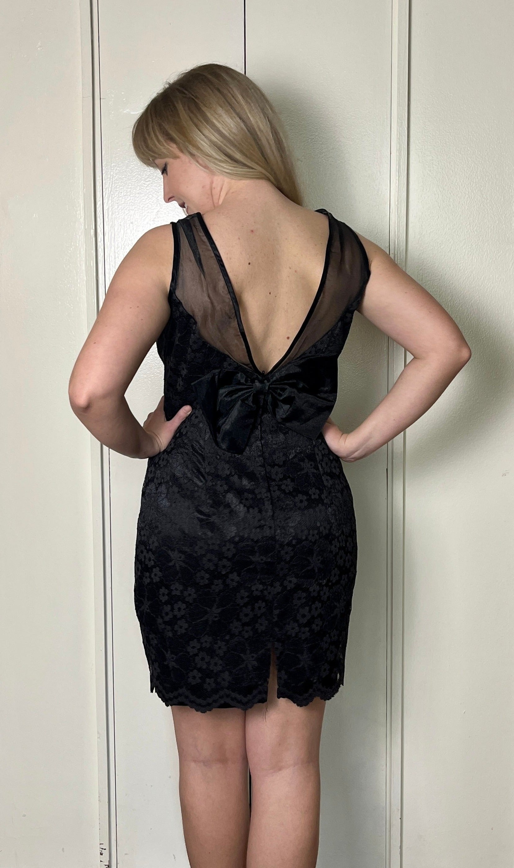 Vintage 1990's "Gunne Sax by Jessica McClintock" Black Lace Sequin Mini Dress