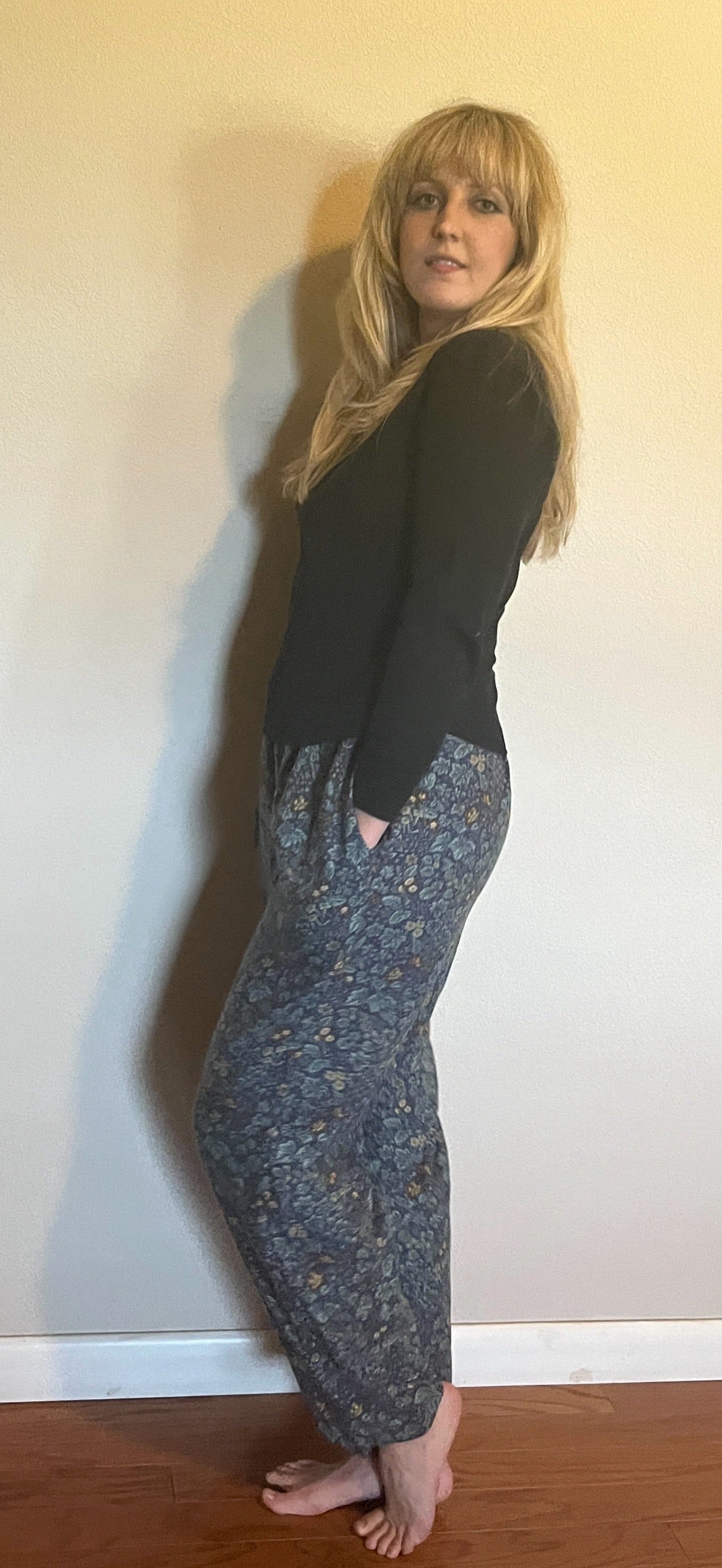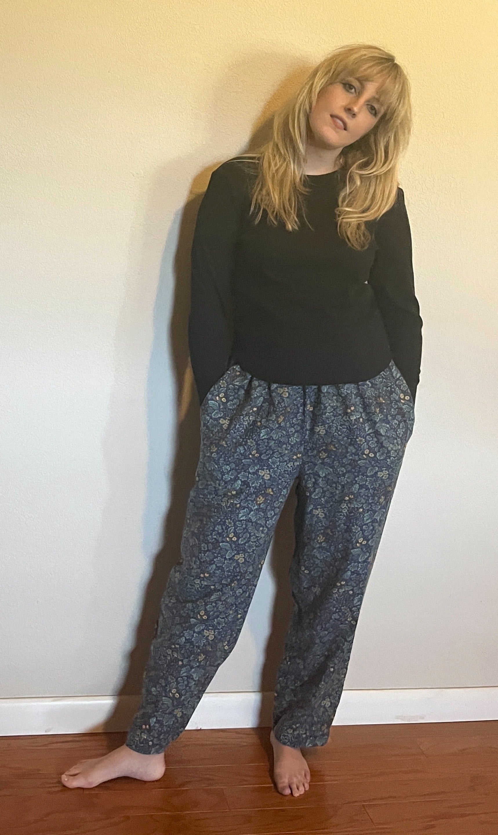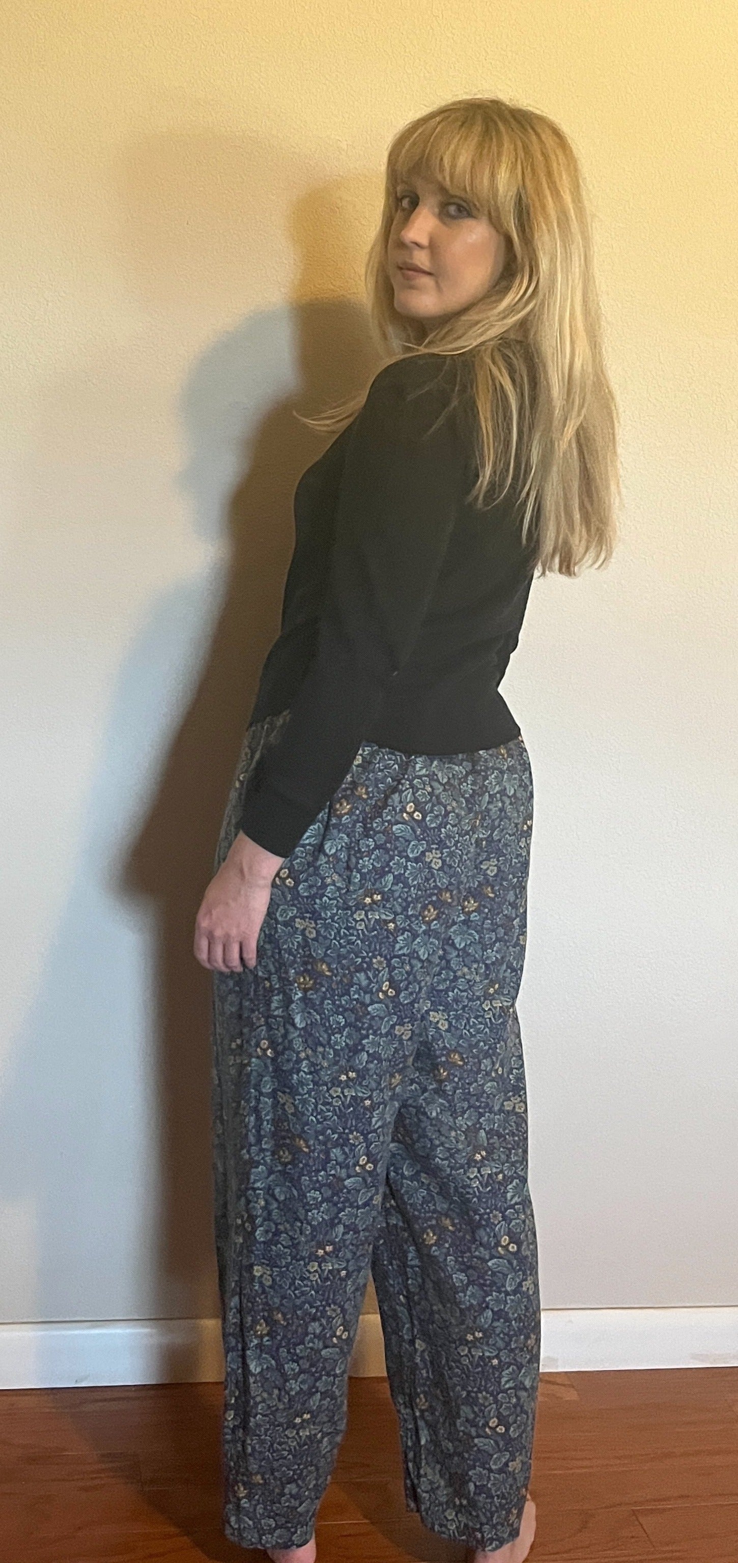 Vintage 1990's "Laura Ashley" Deep Blue & Teal Micro-Floral Pants