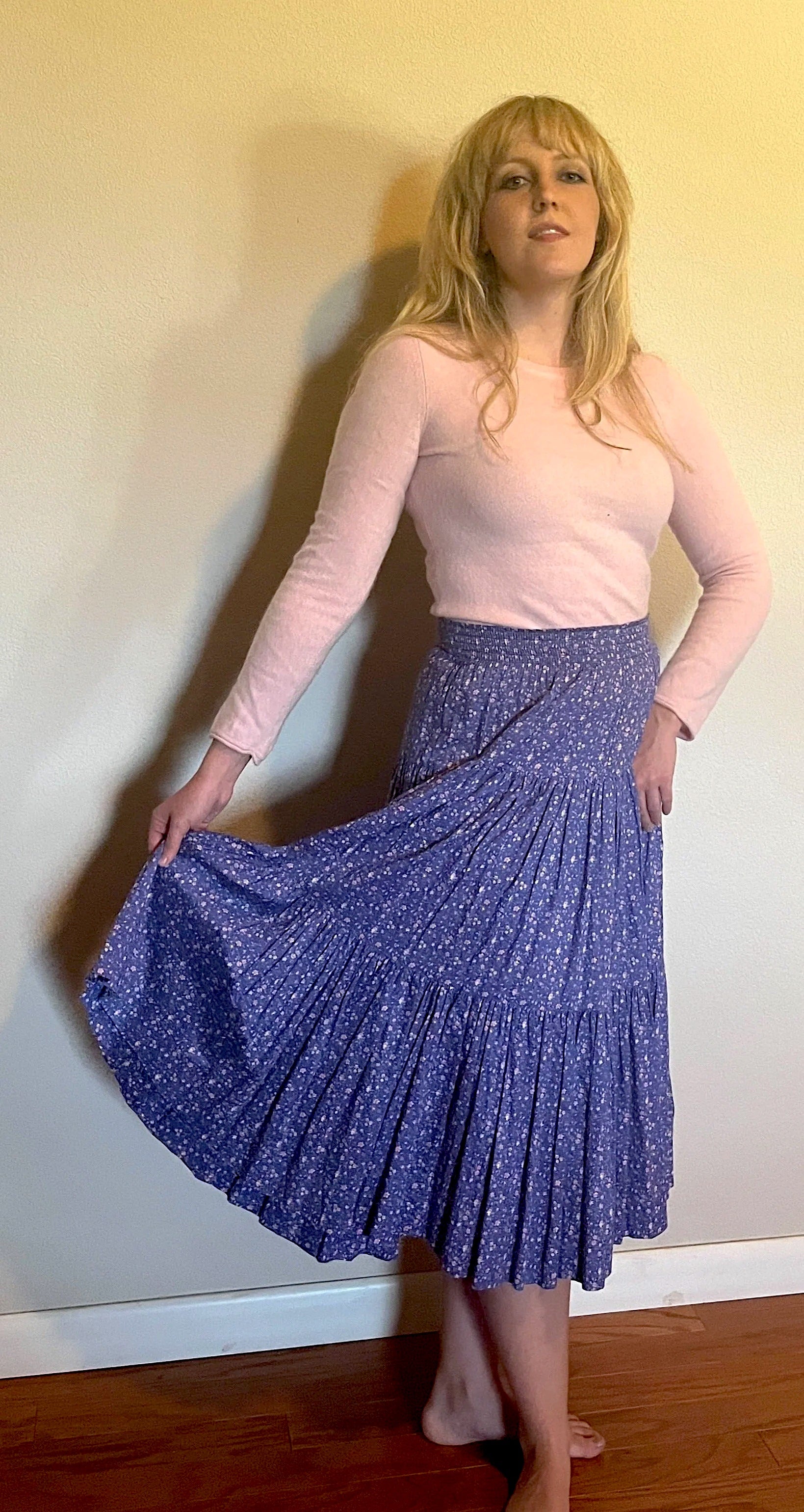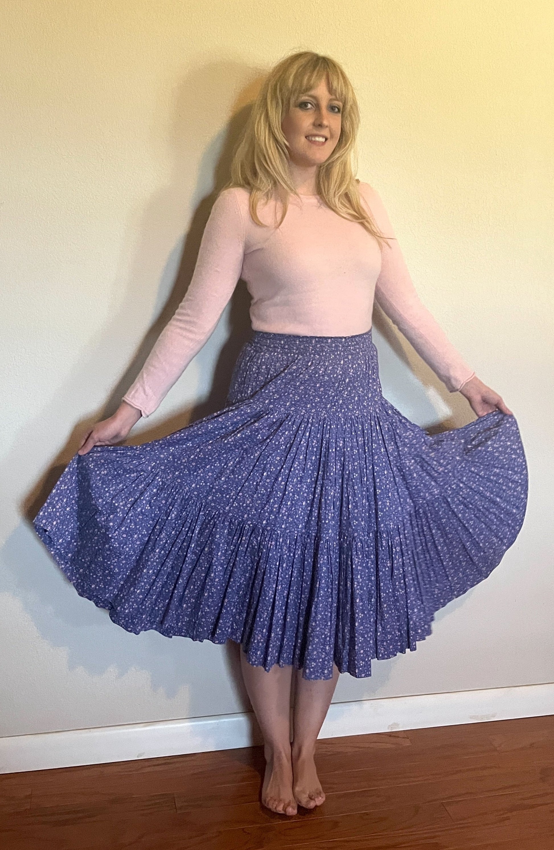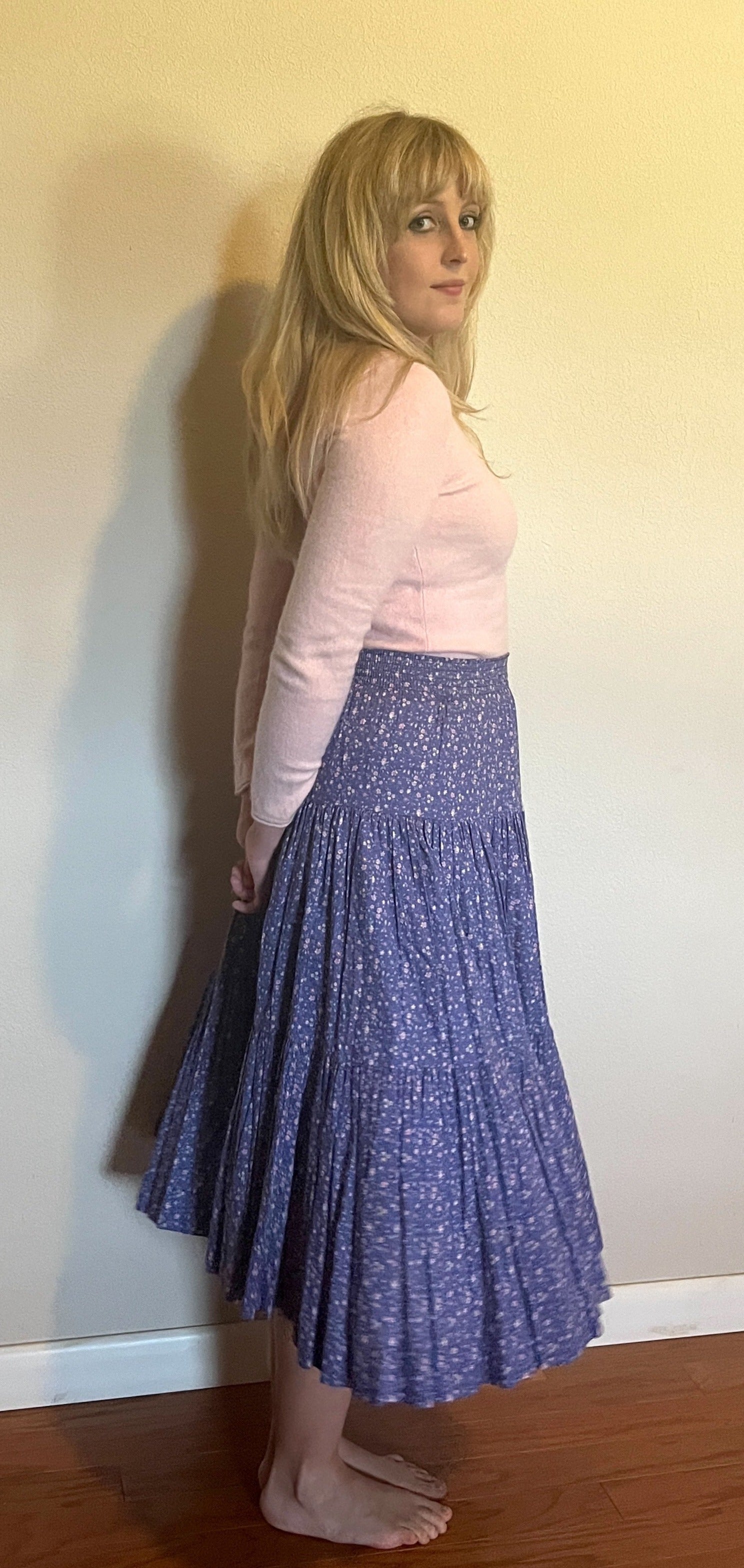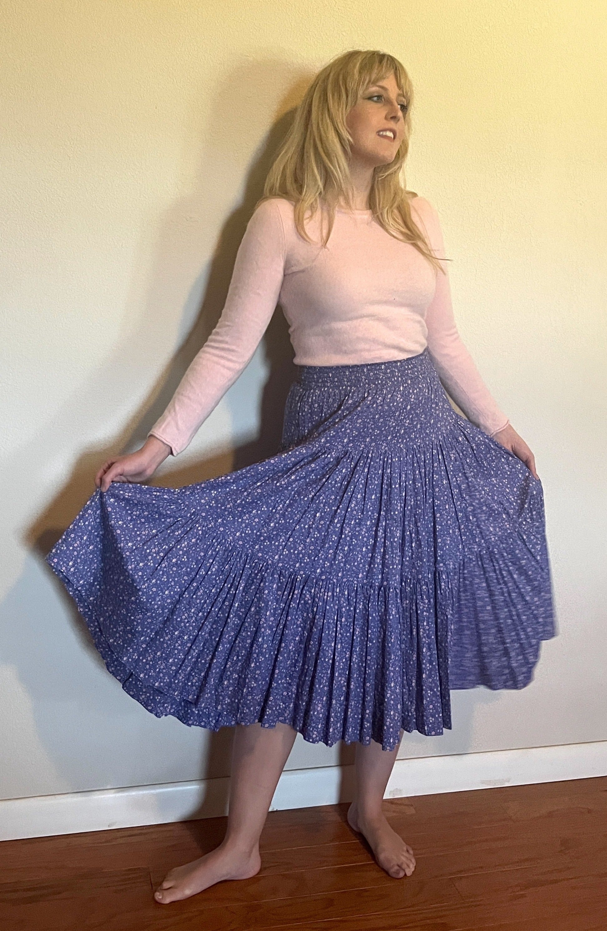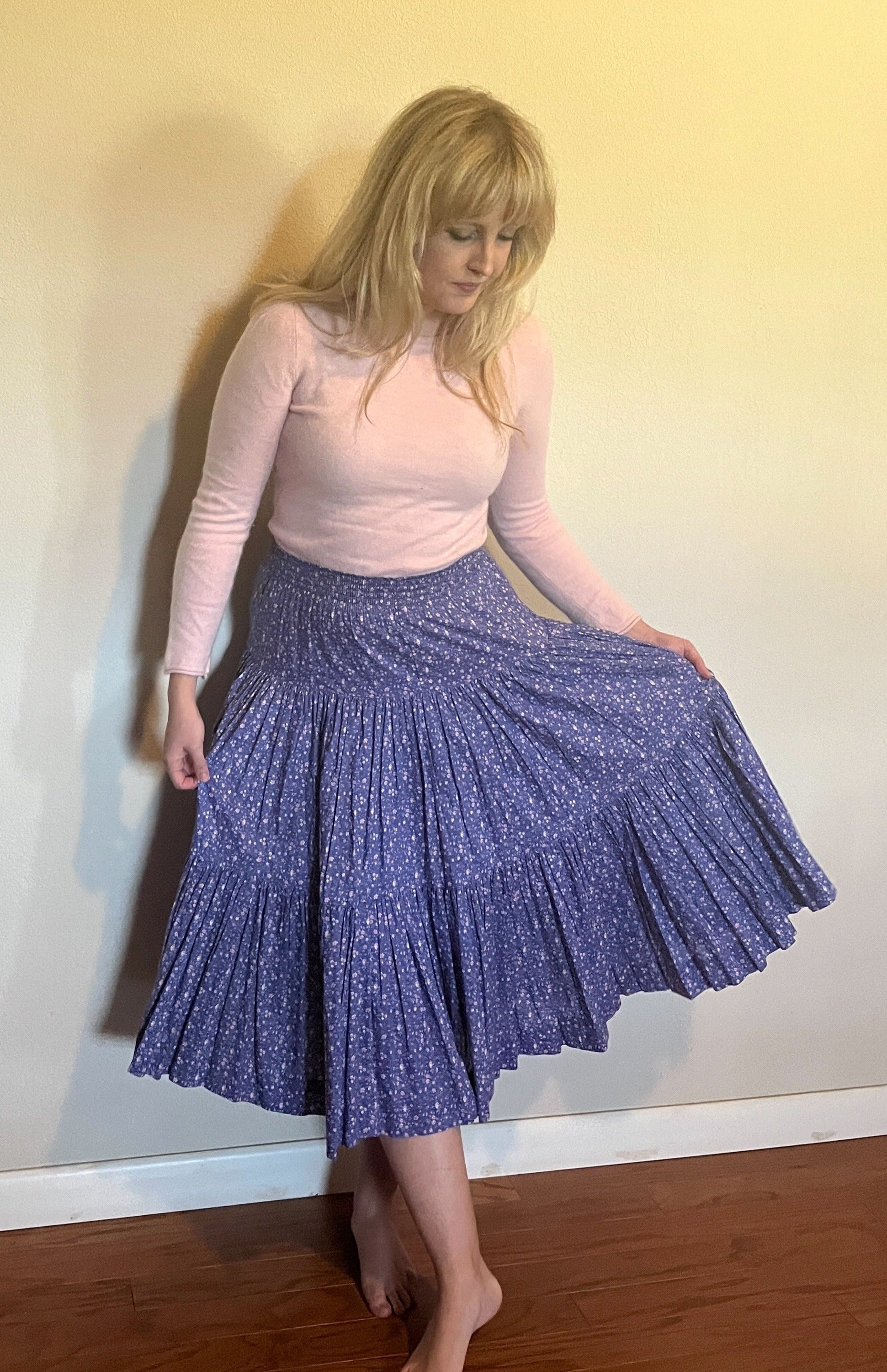 Vintage 1990's "Laura Ashley" Purple Micro-Floral Tiered Skirt