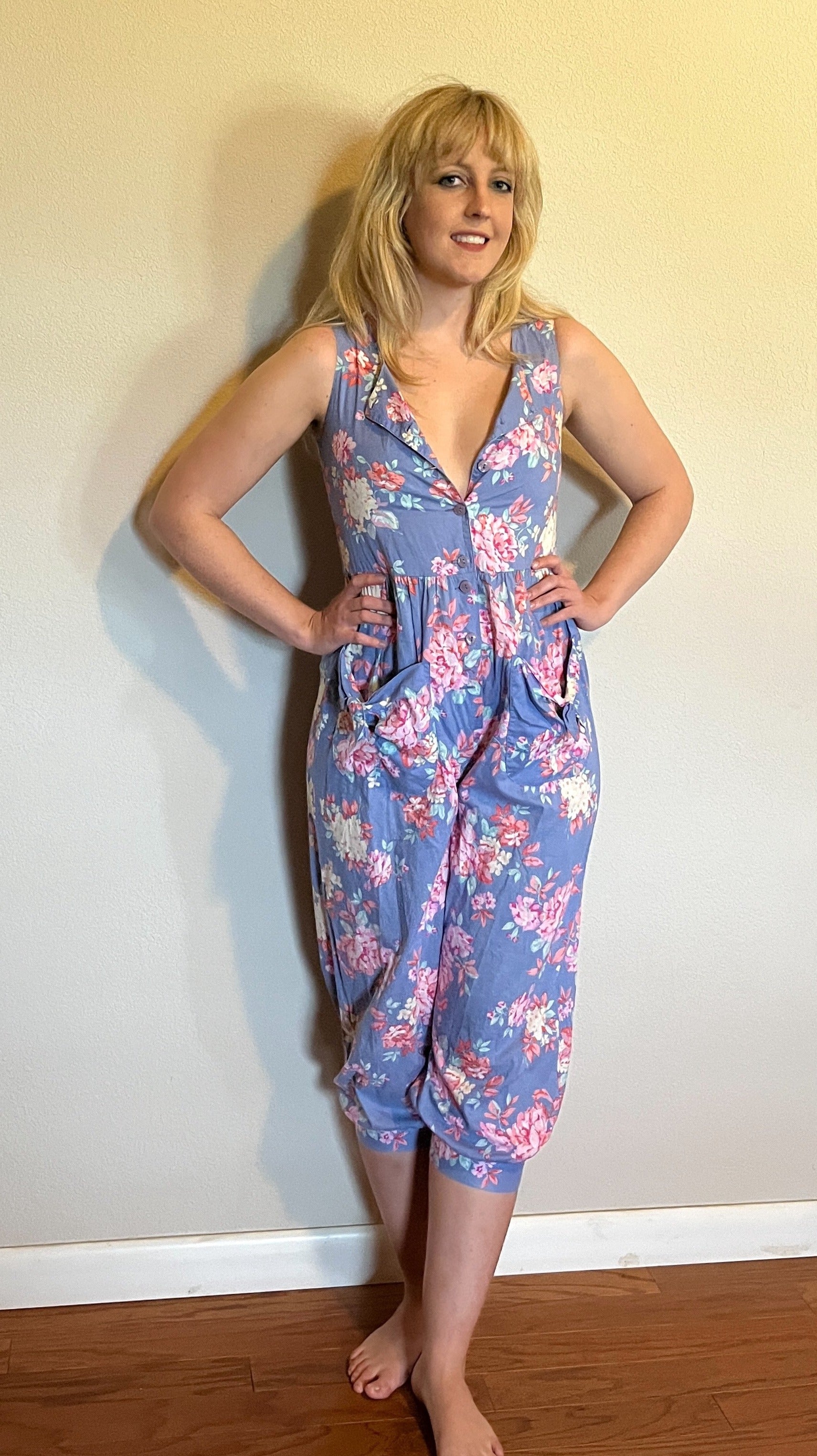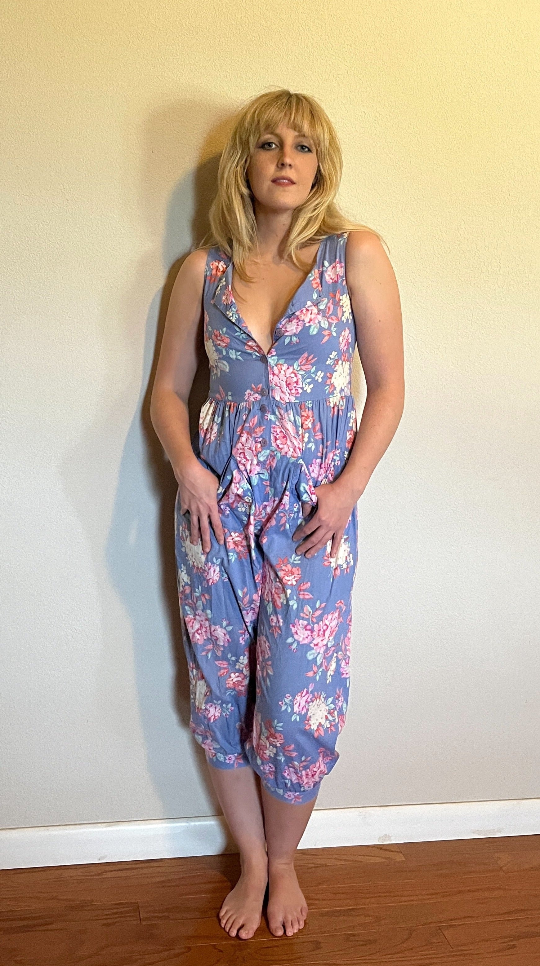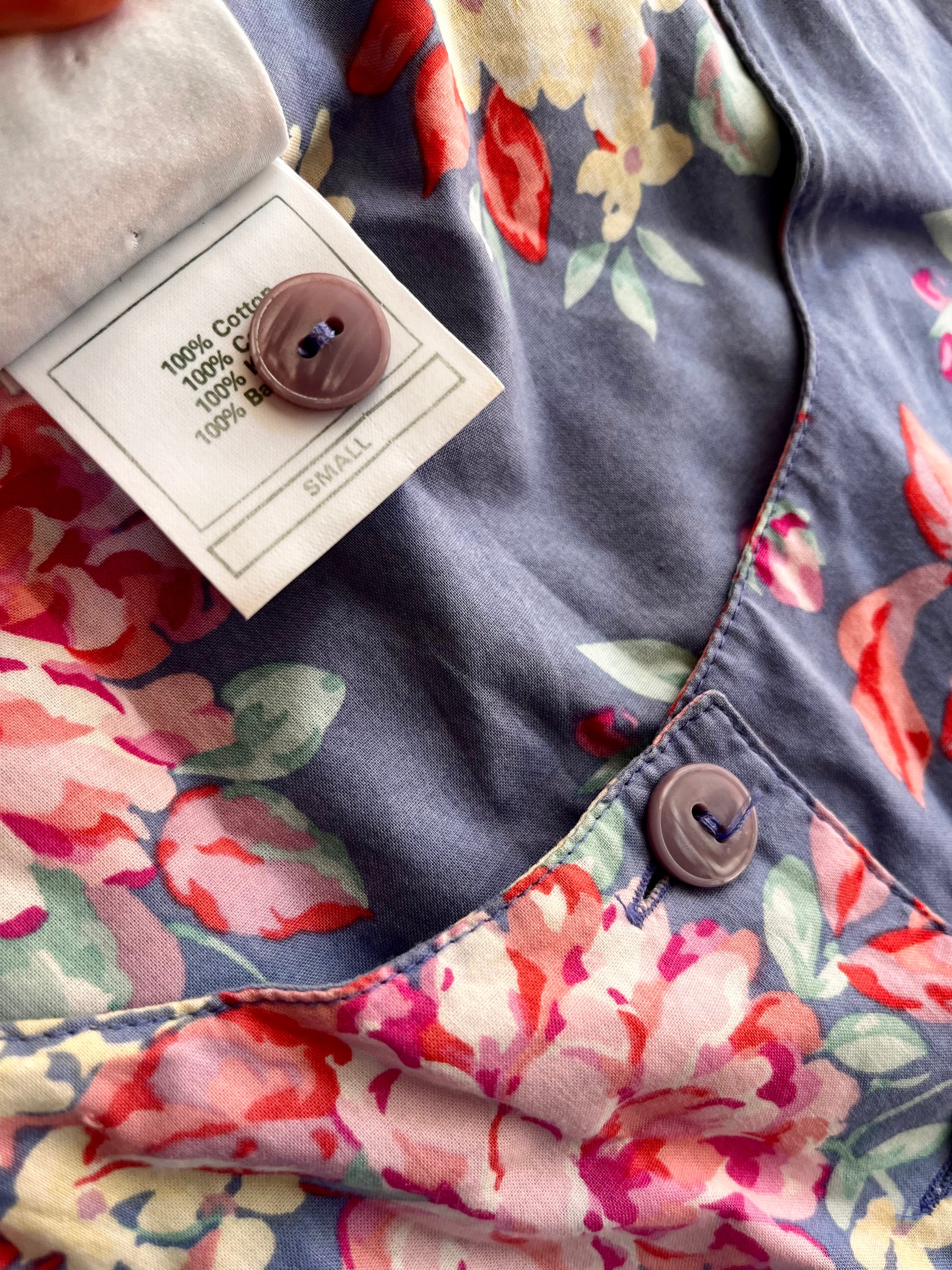 Vintage 1990's "Laura Ashley" Purple & Pink Carnations Floral Button-Front Romper