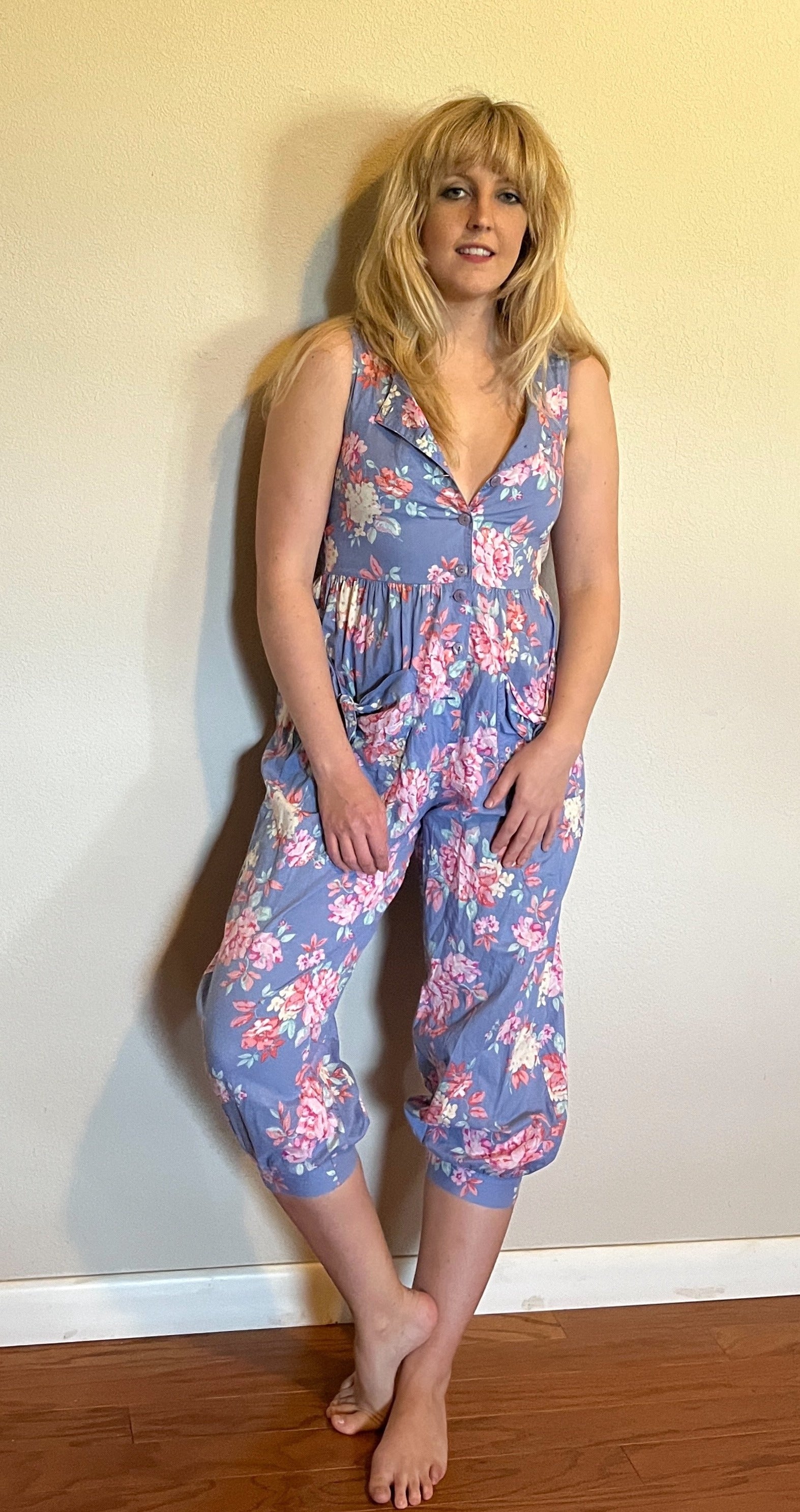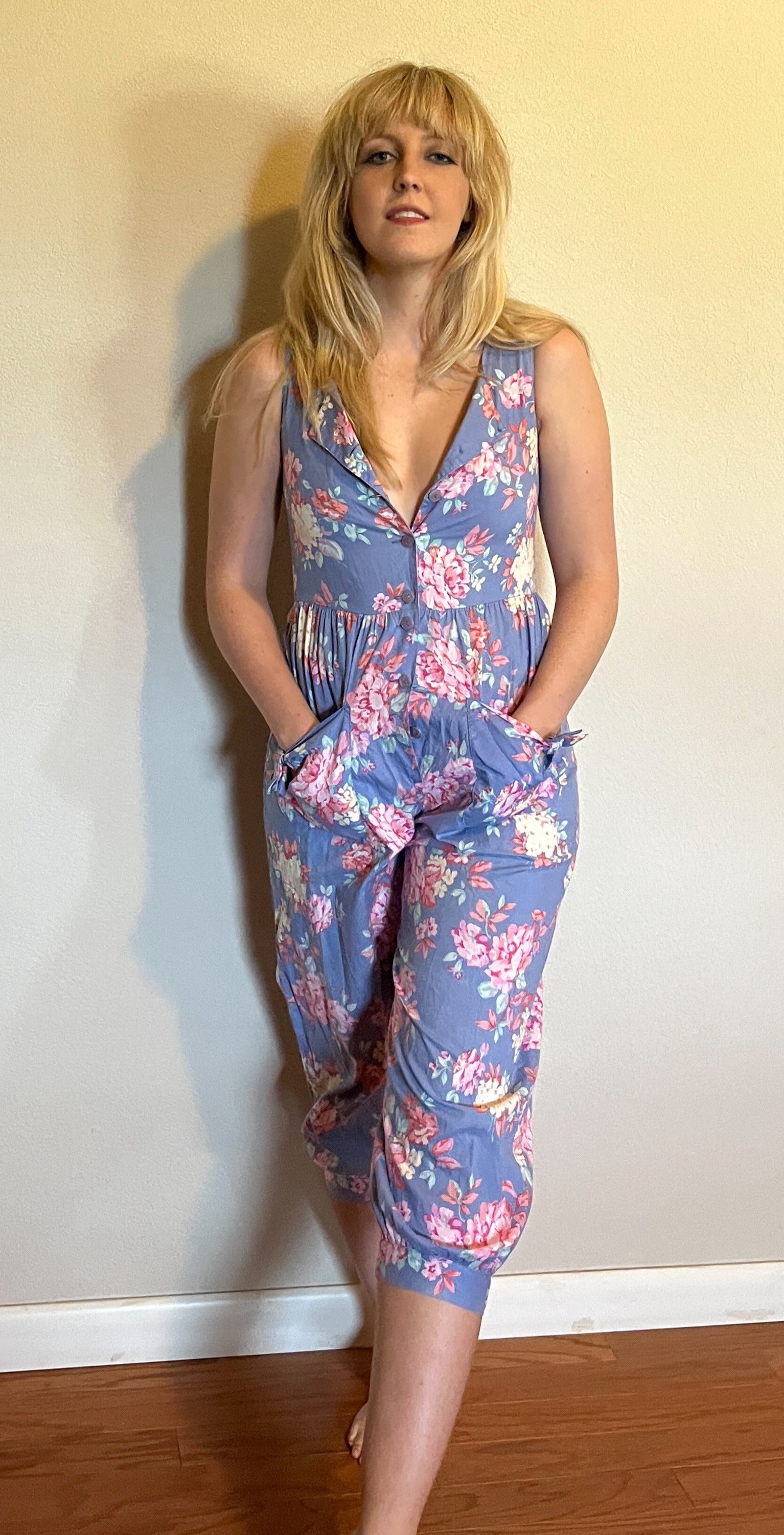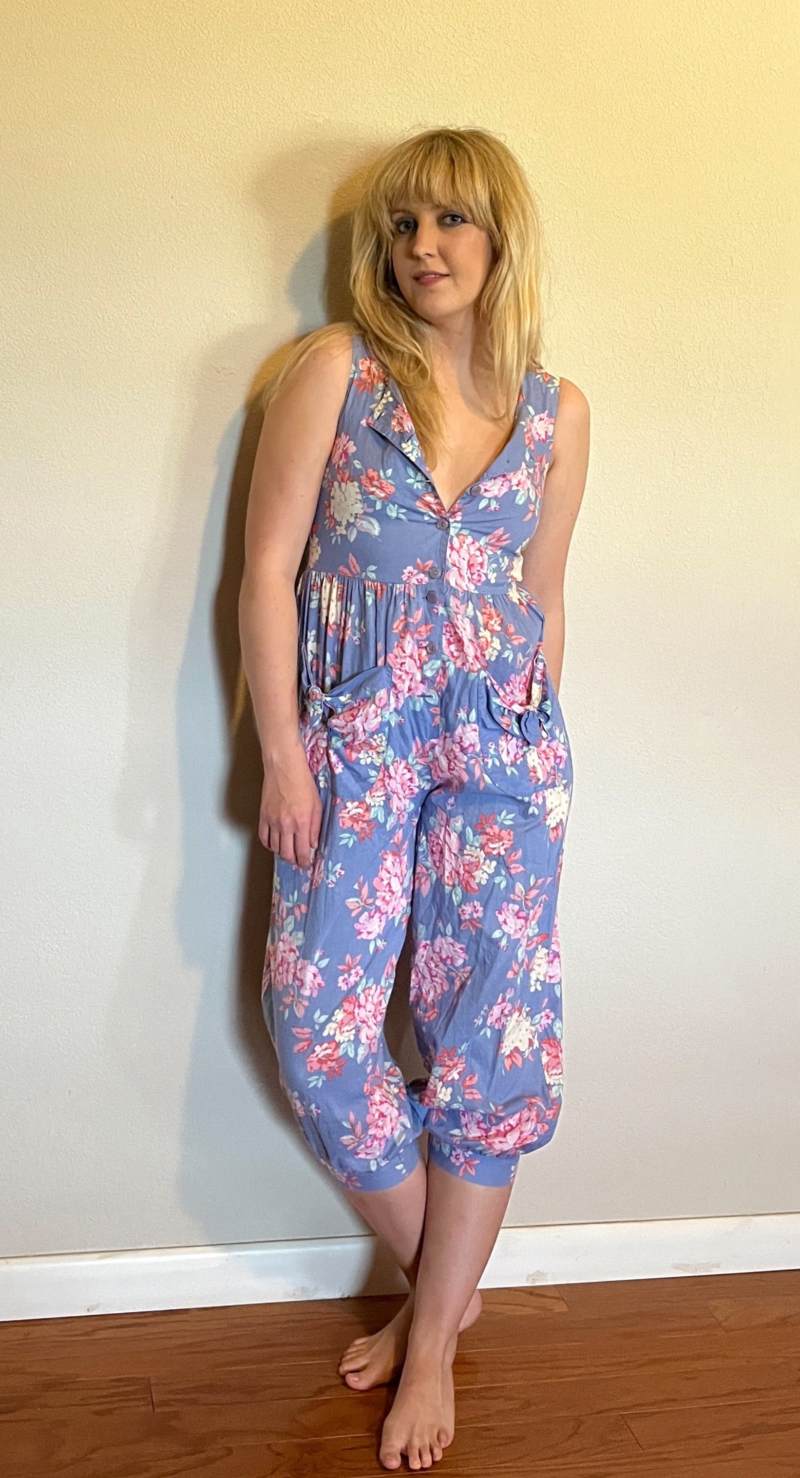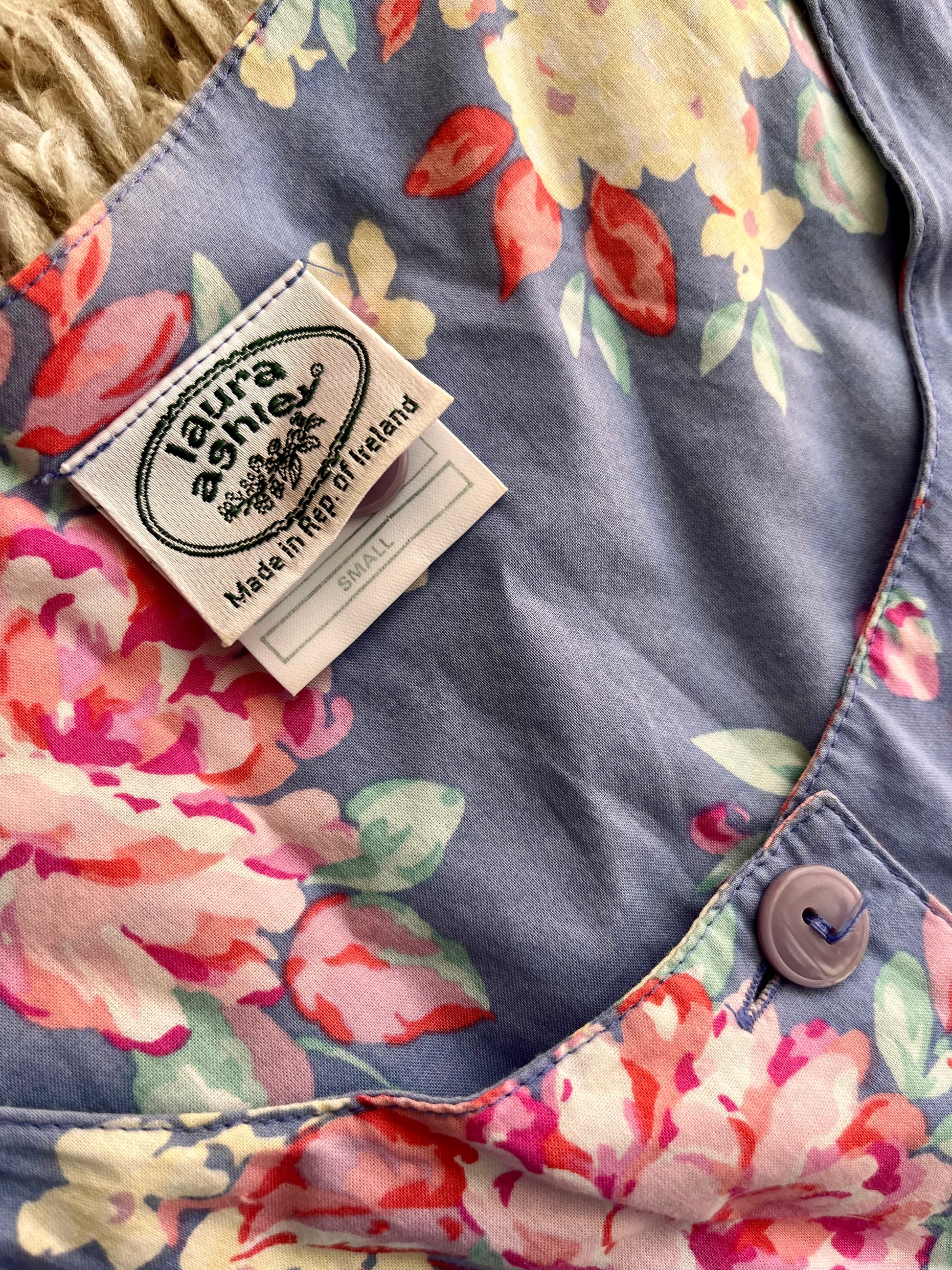 Vintage 1990's "Laura Ashley" Purple & Pink Carnations Floral Button-Front Romper