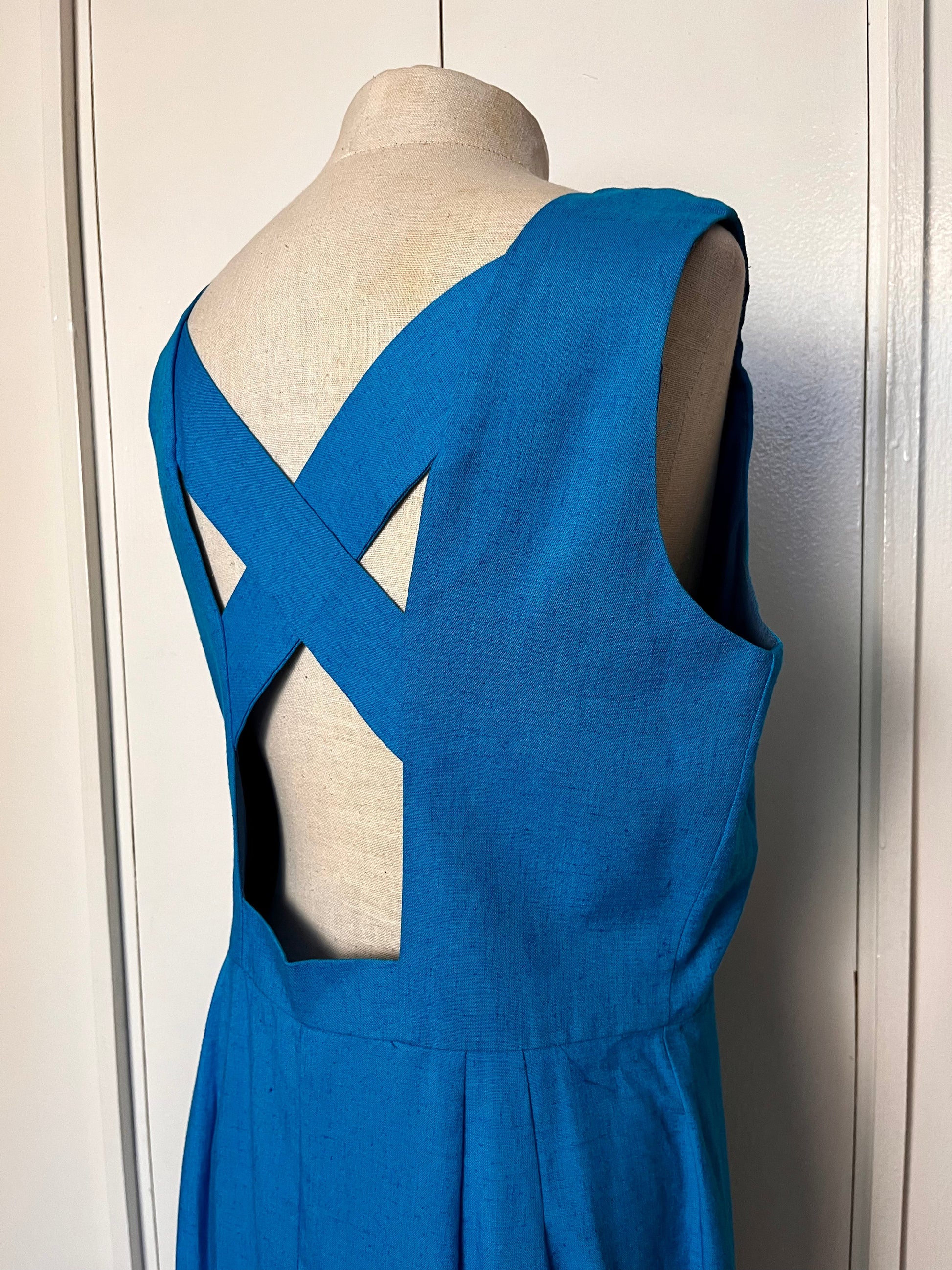 Vintage 1990's "Positive Attitude" Blue Sheath Cut-out Dress