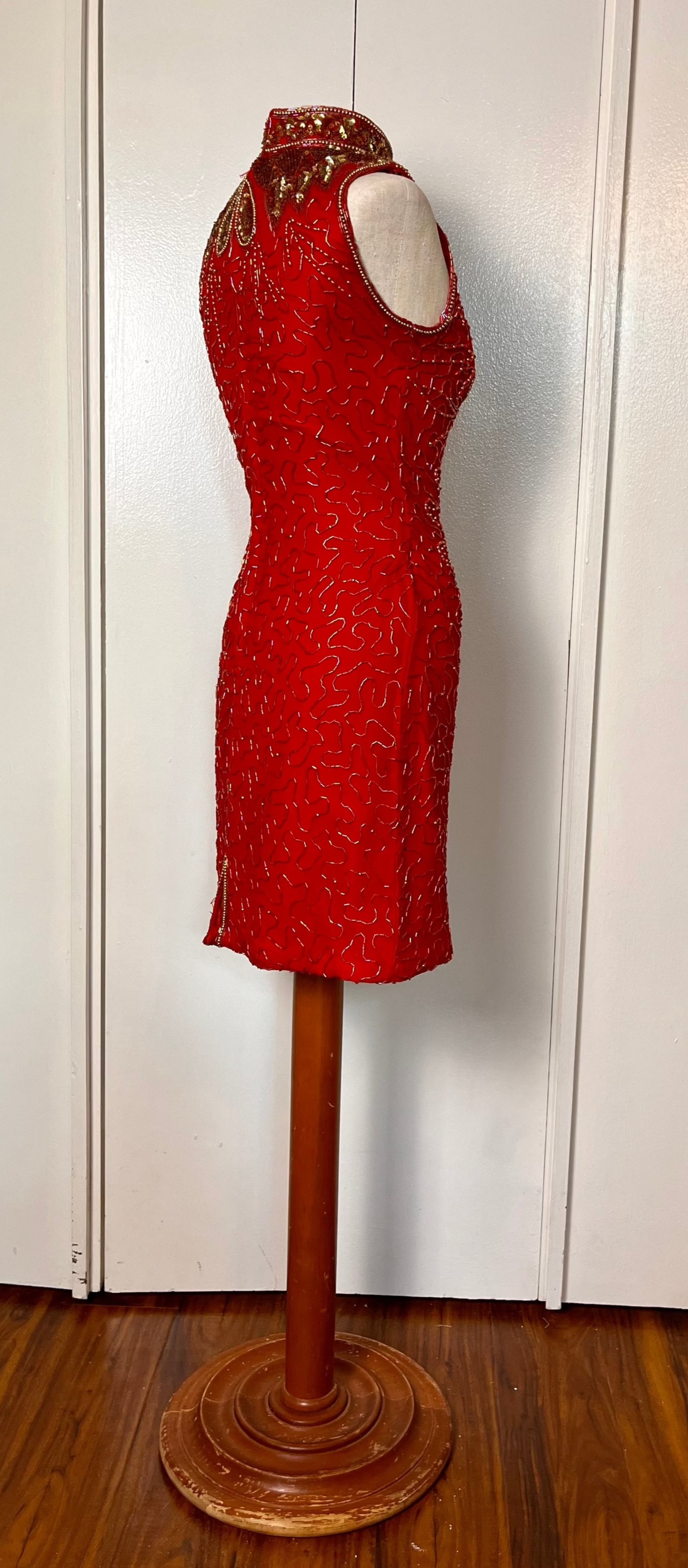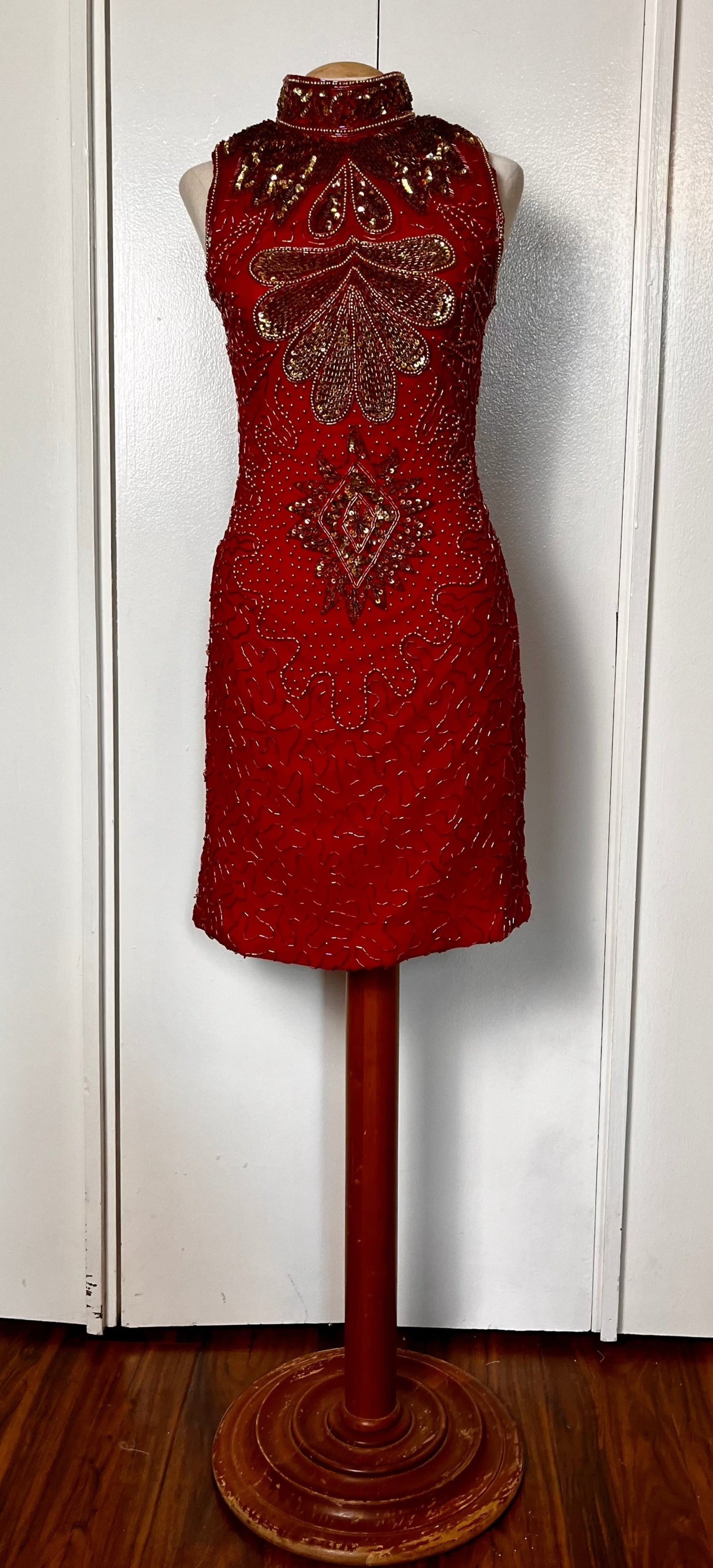 Vintage 1990's Red & Gold Sequin High Neck Mini Dress