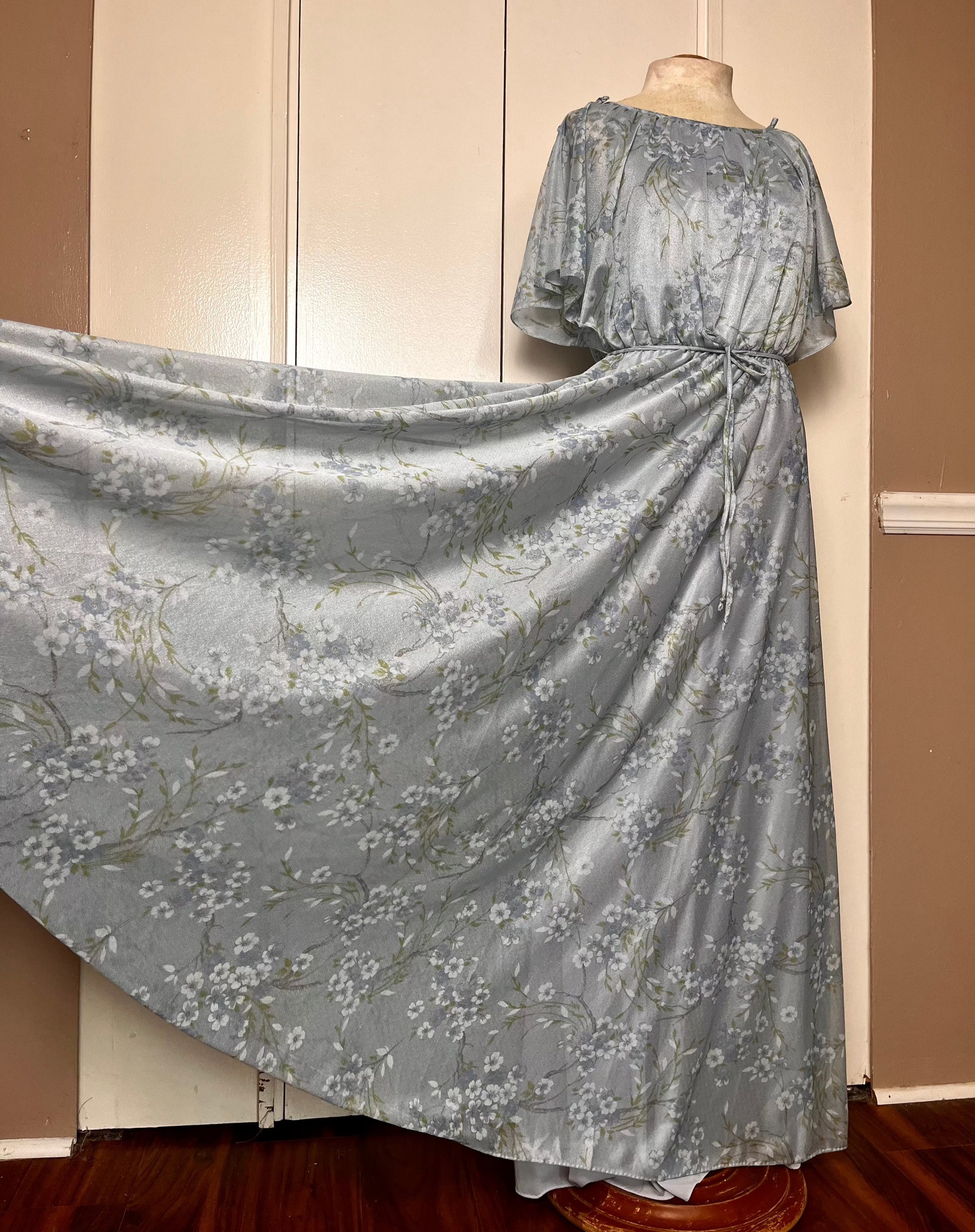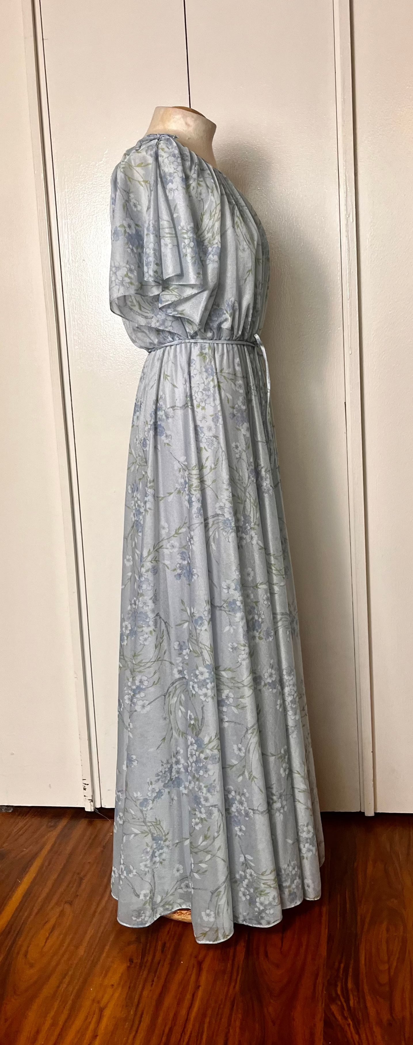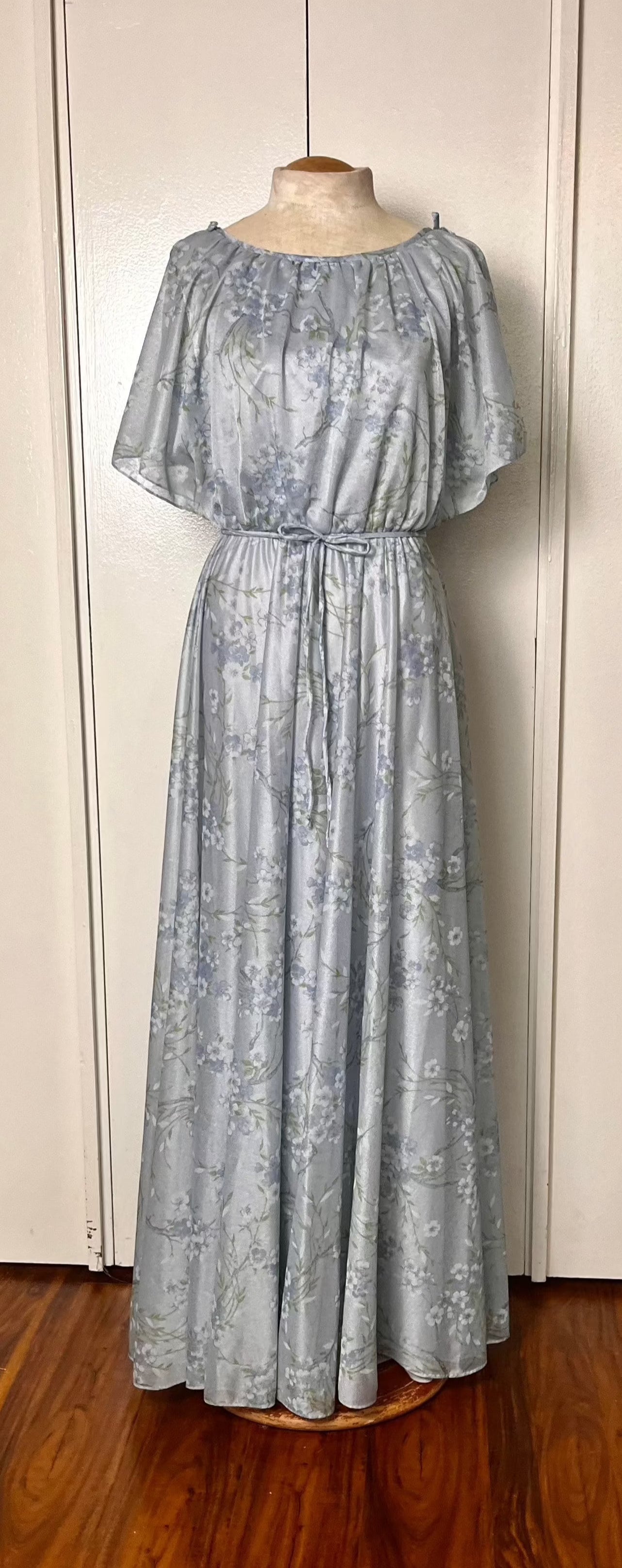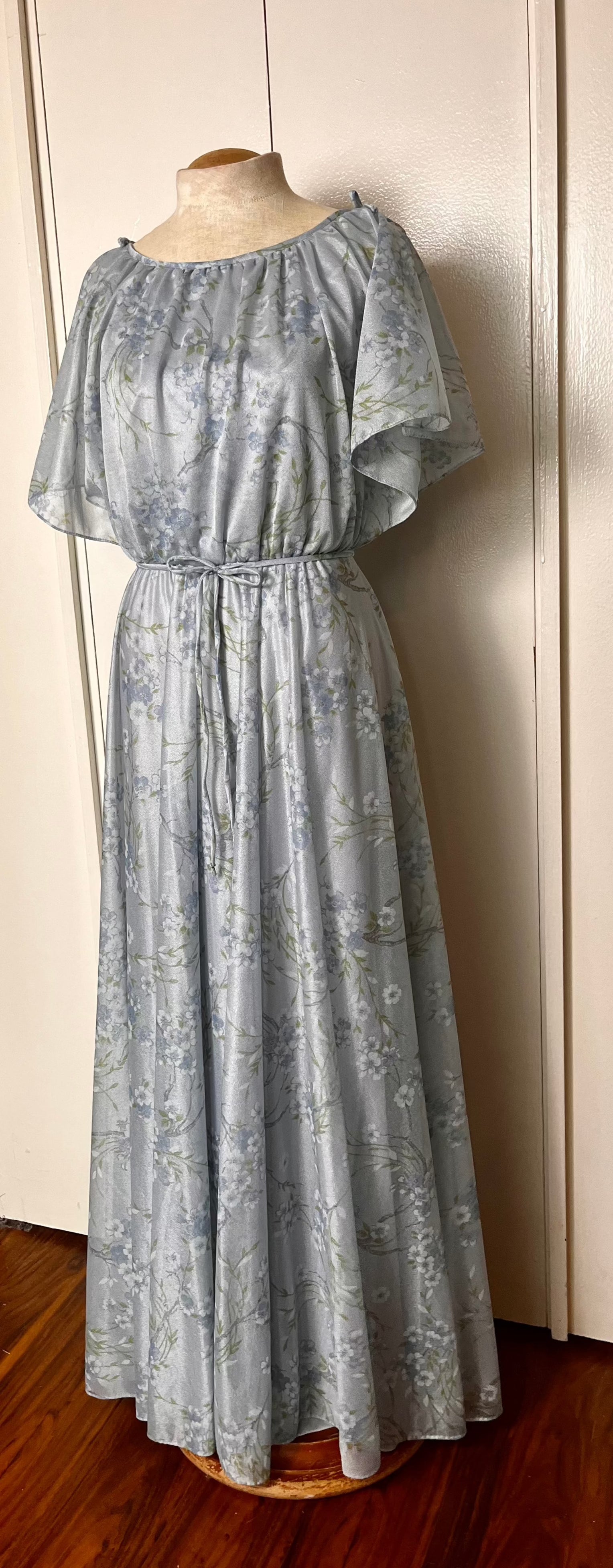 Vintage 1970's "Home-Sewn" Blue Floral Maxi Dress