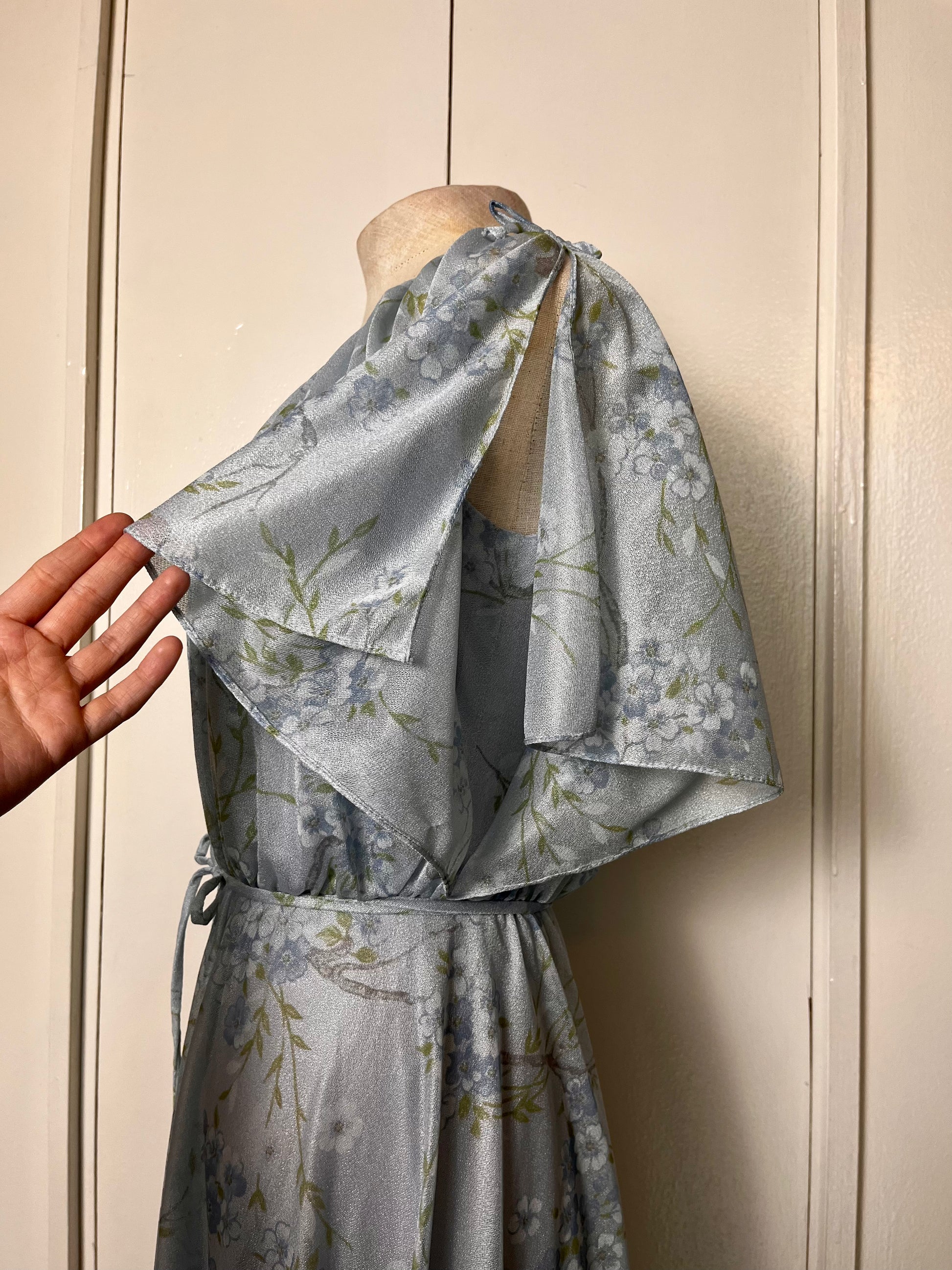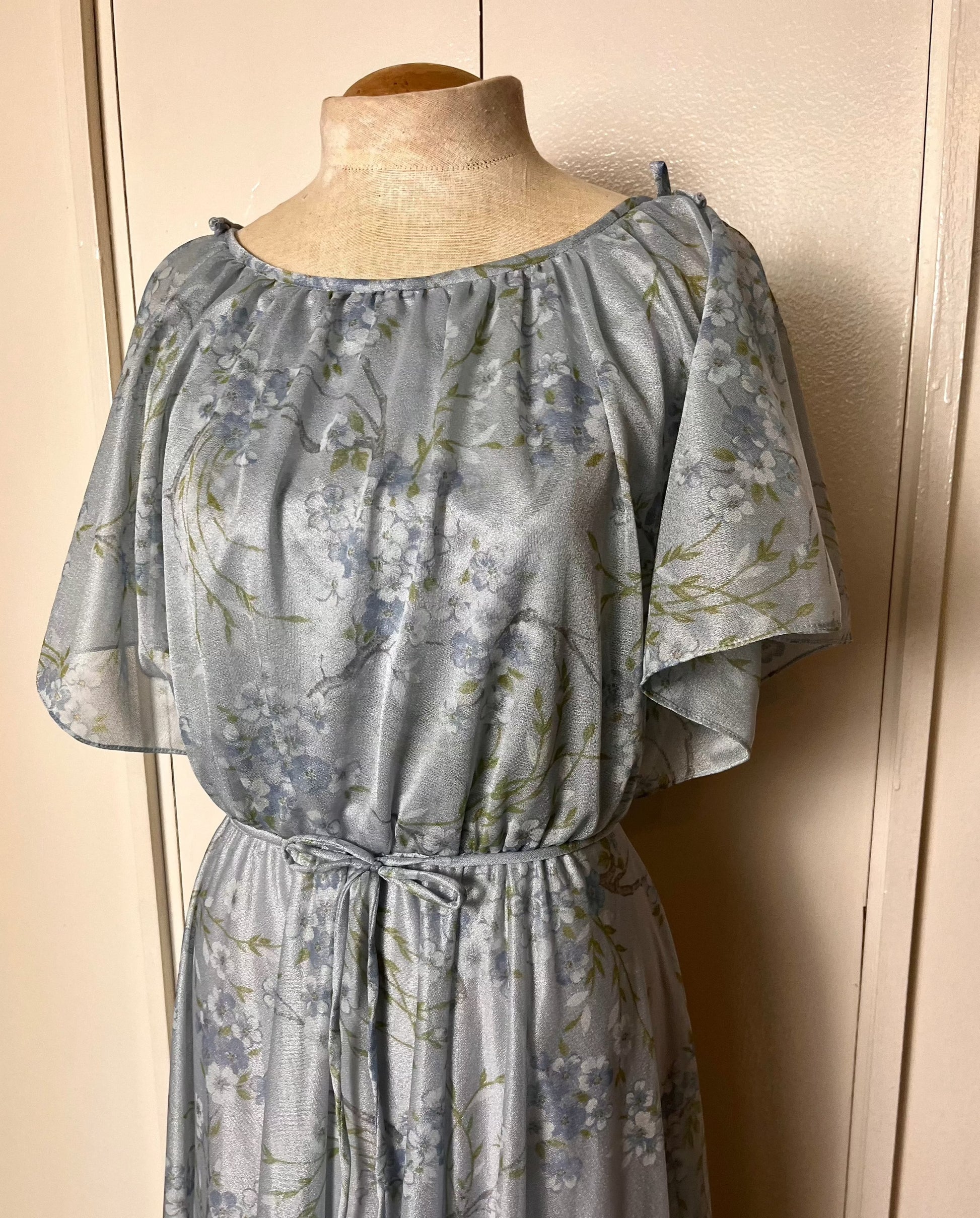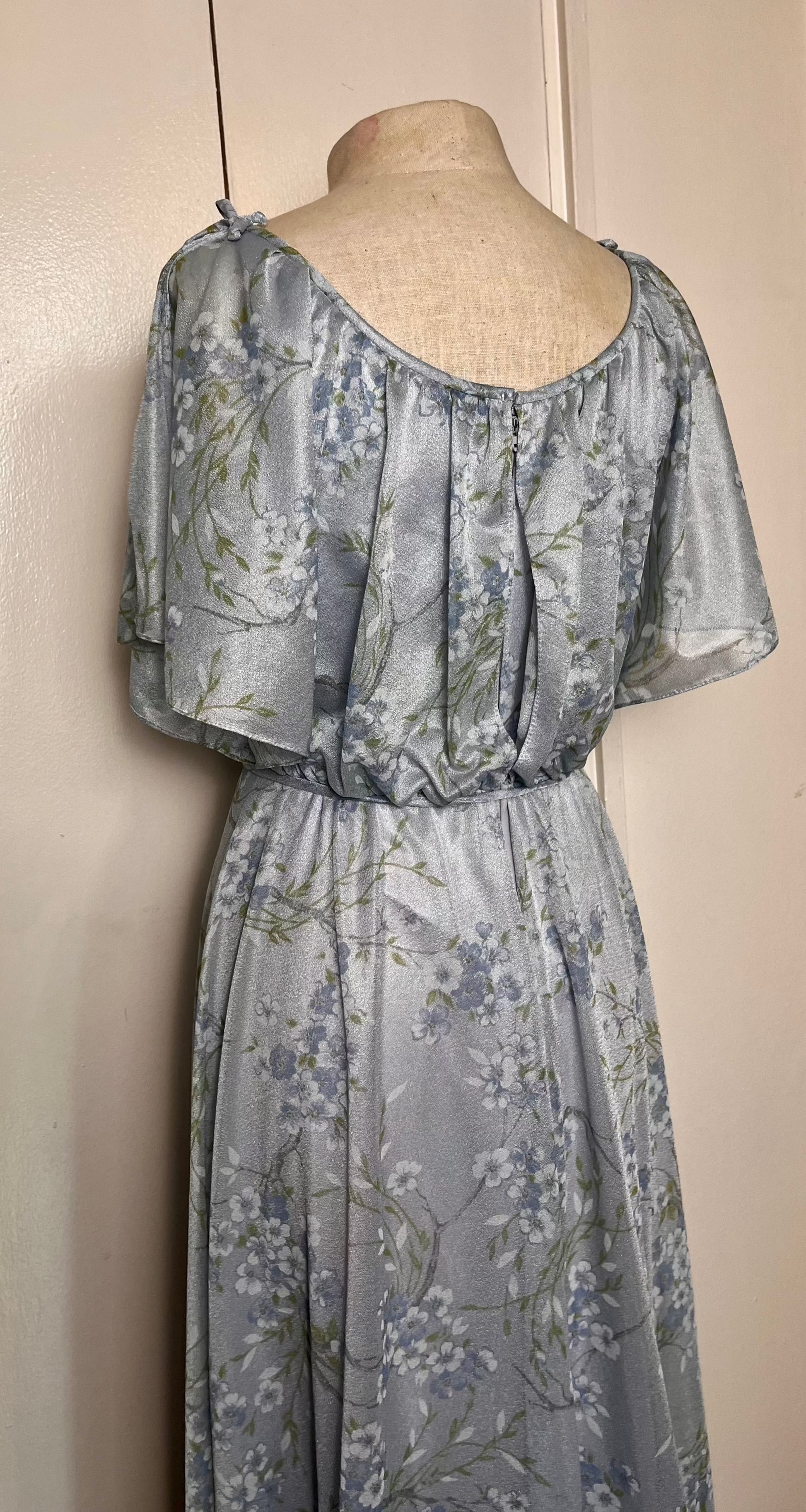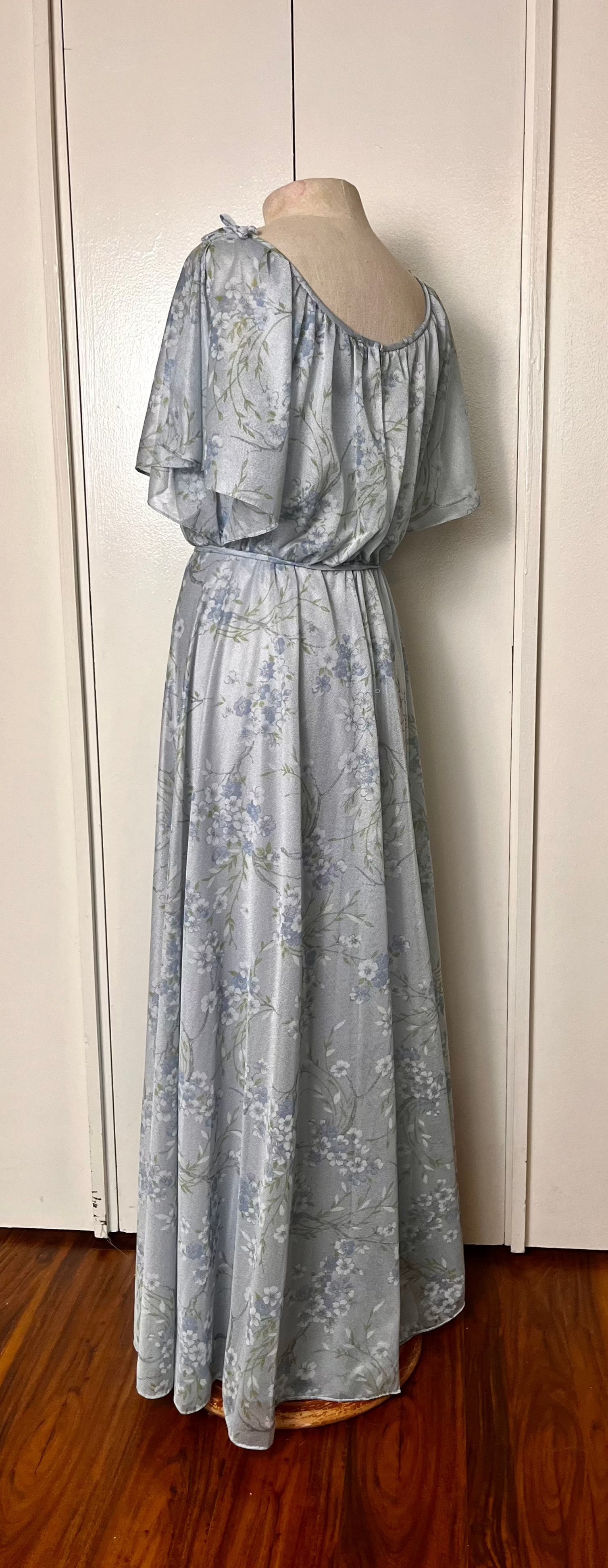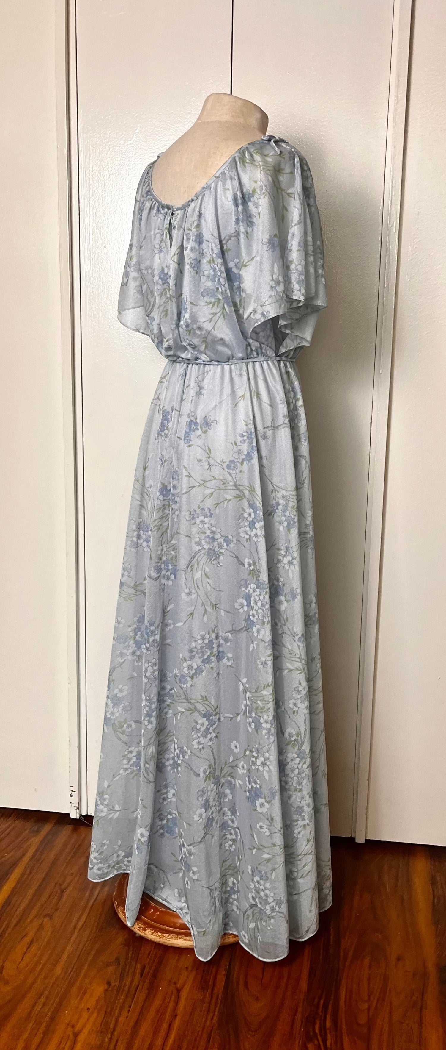 Vintage 1970's "Home-Sewn" Blue Floral Maxi Dress