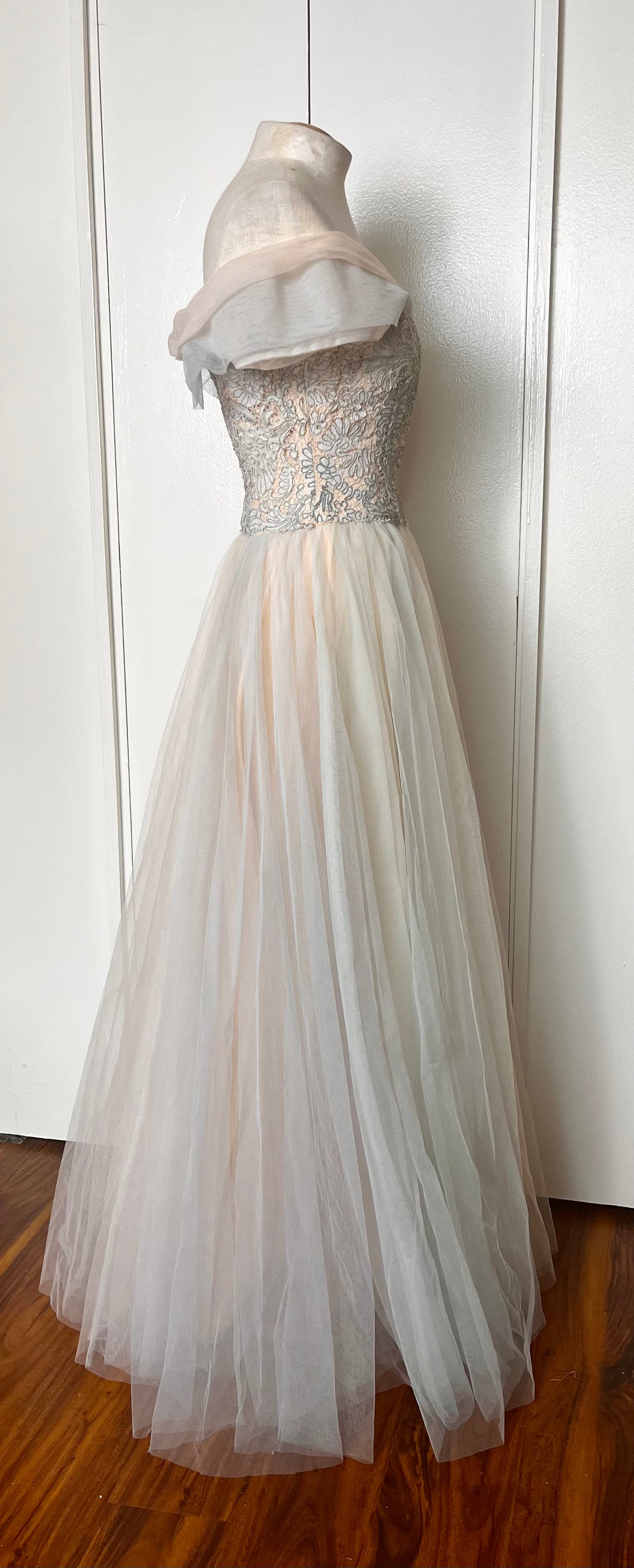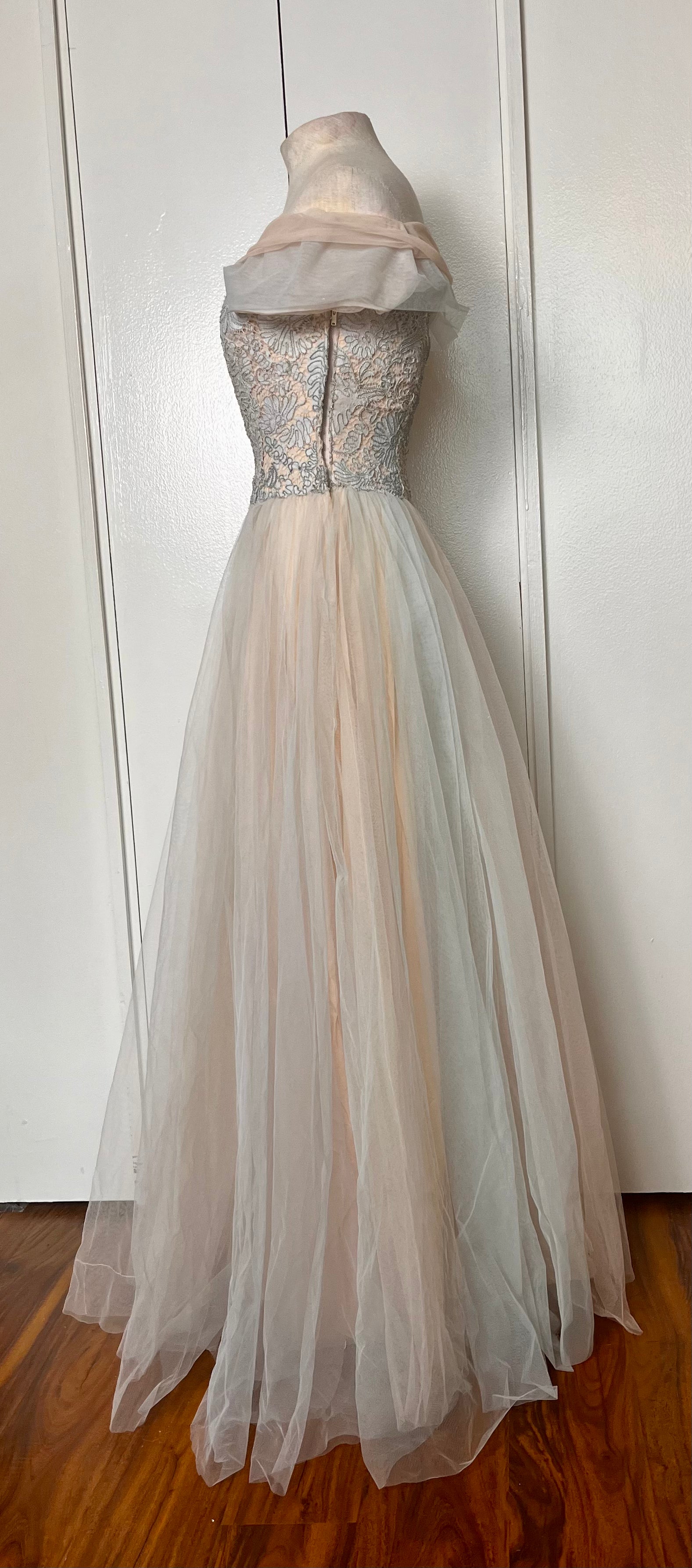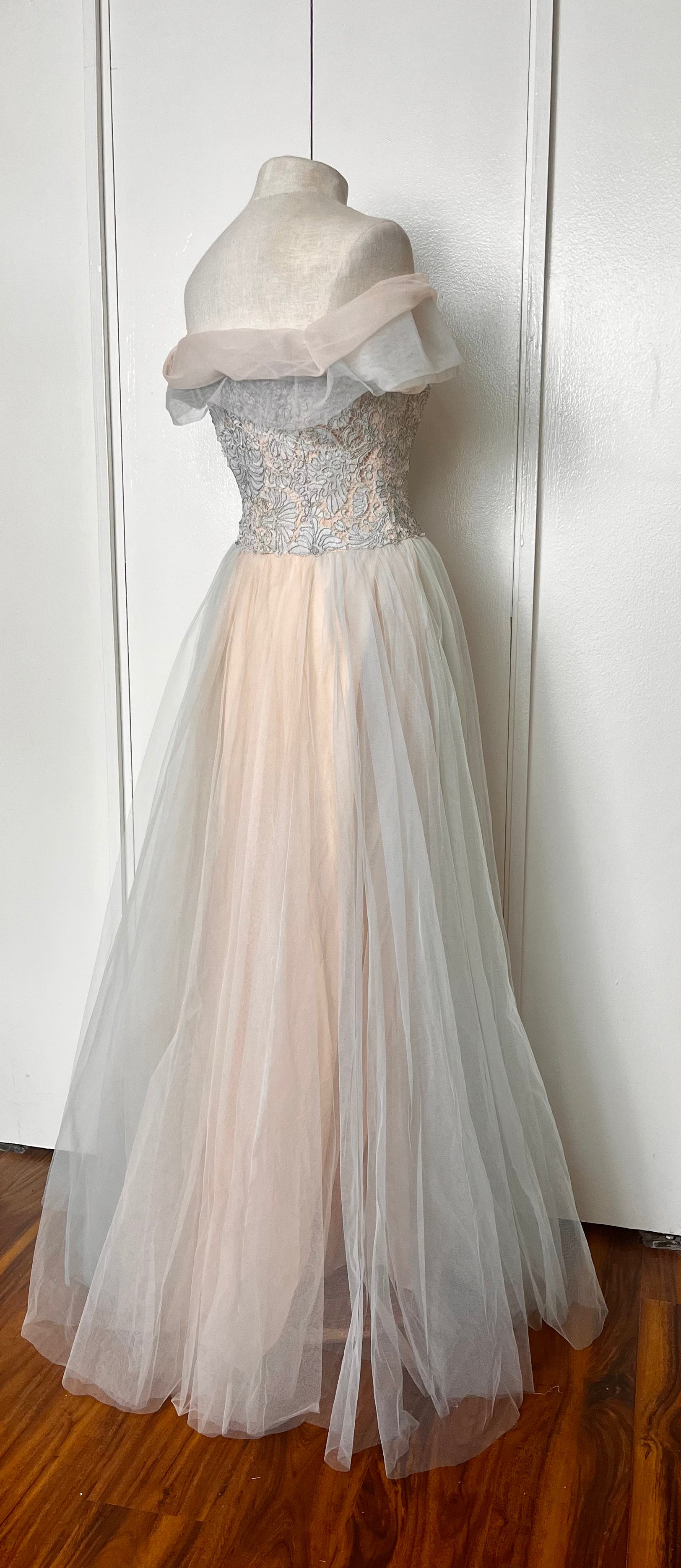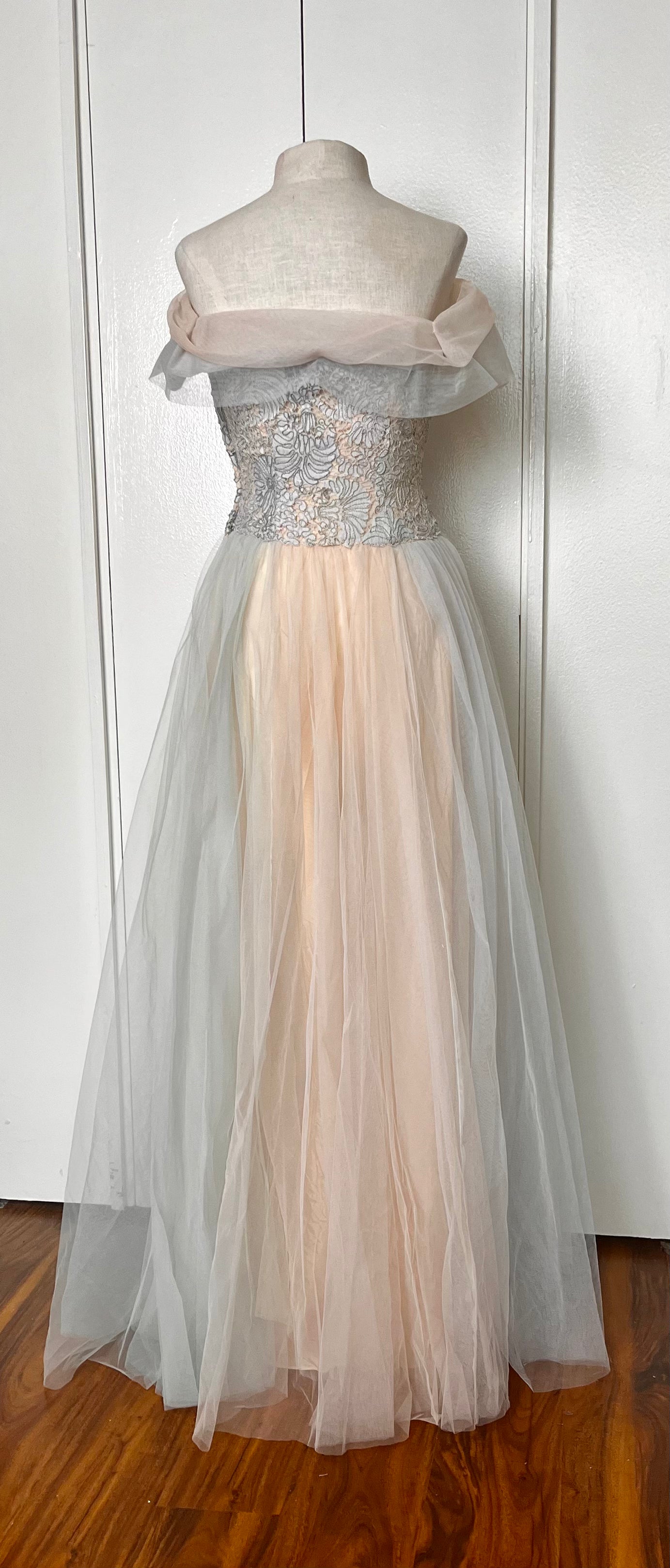 Vintage 1950's "Anne Verdi of New York" Blush Pink & Blue Tulle Gown