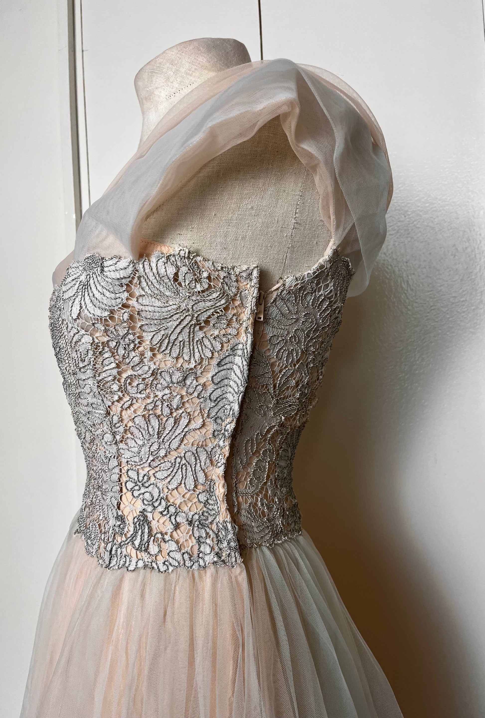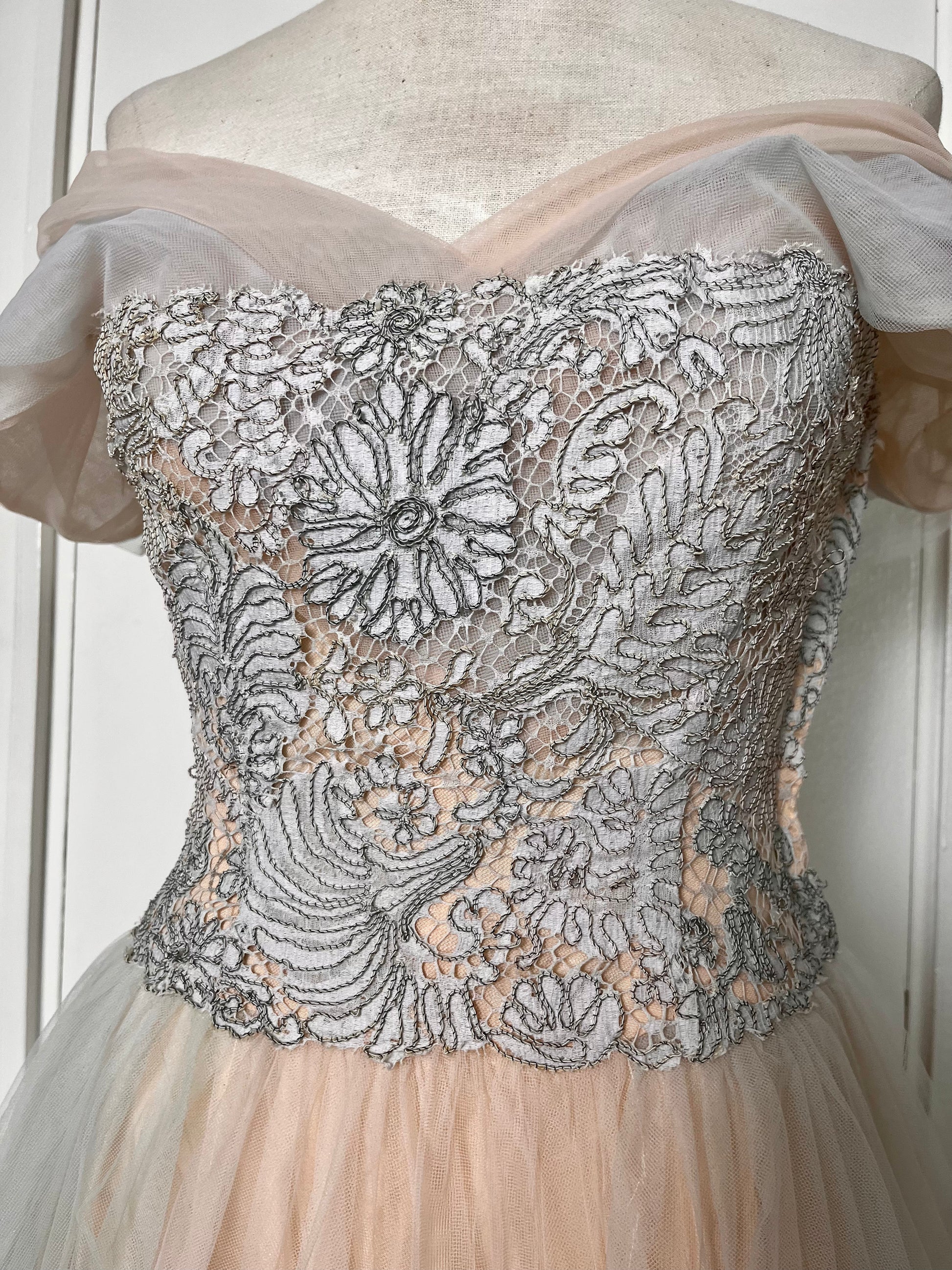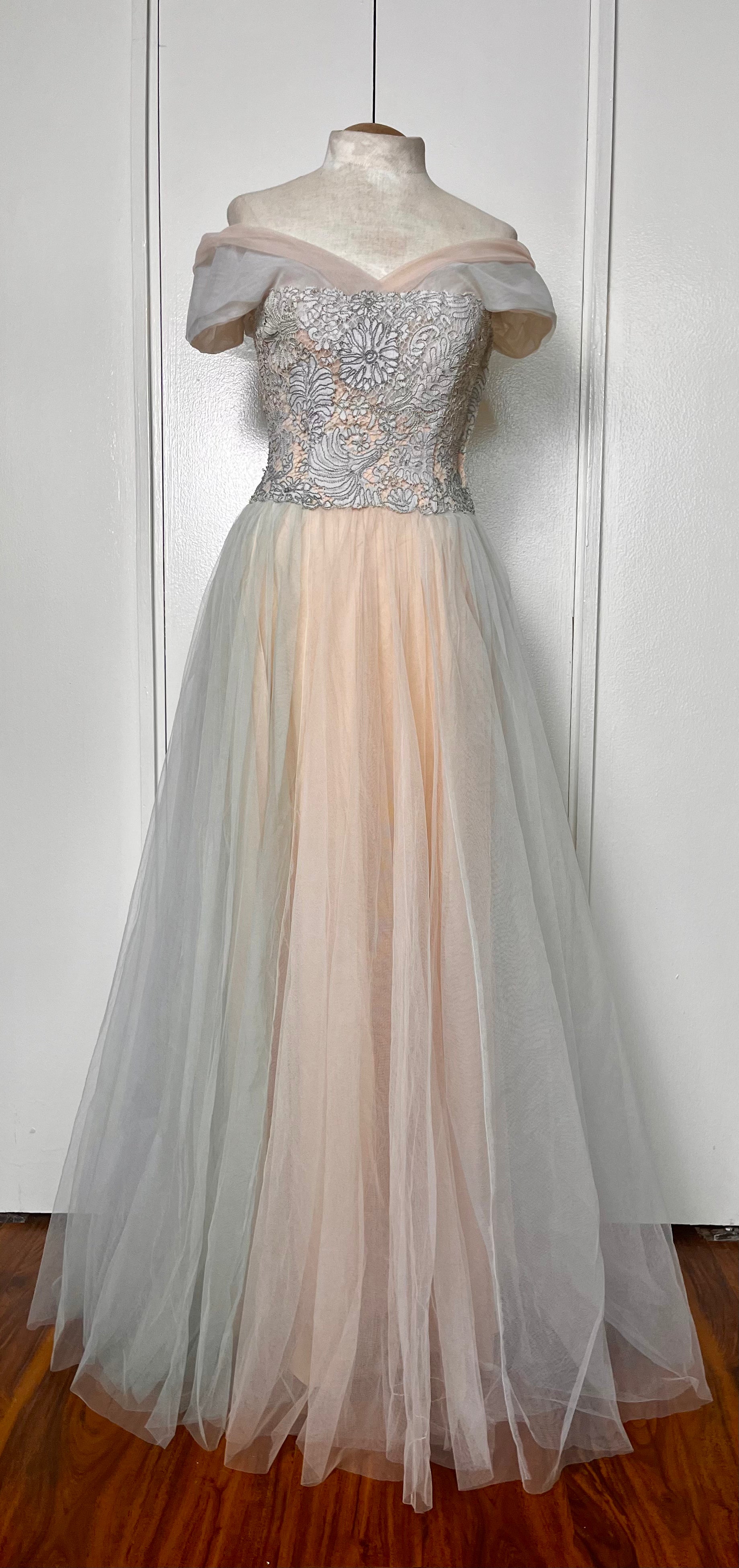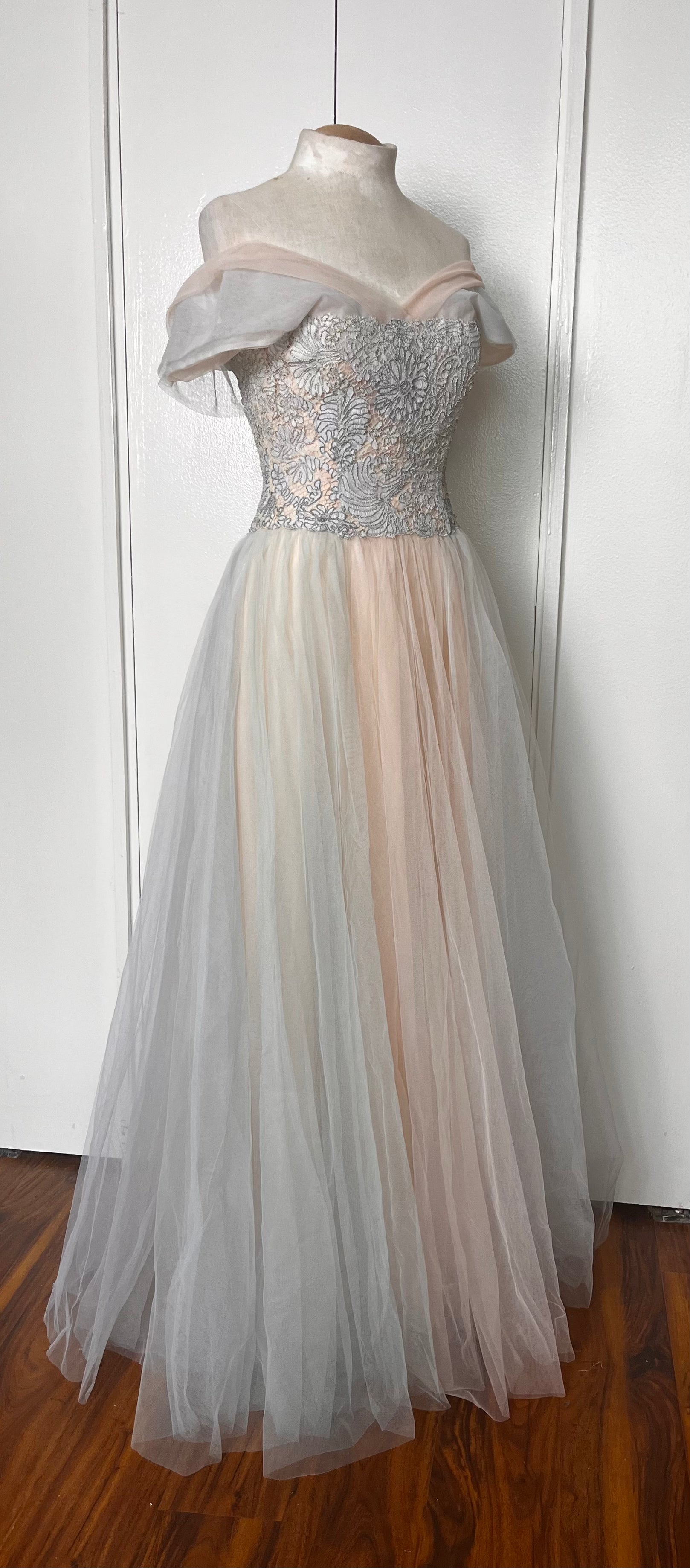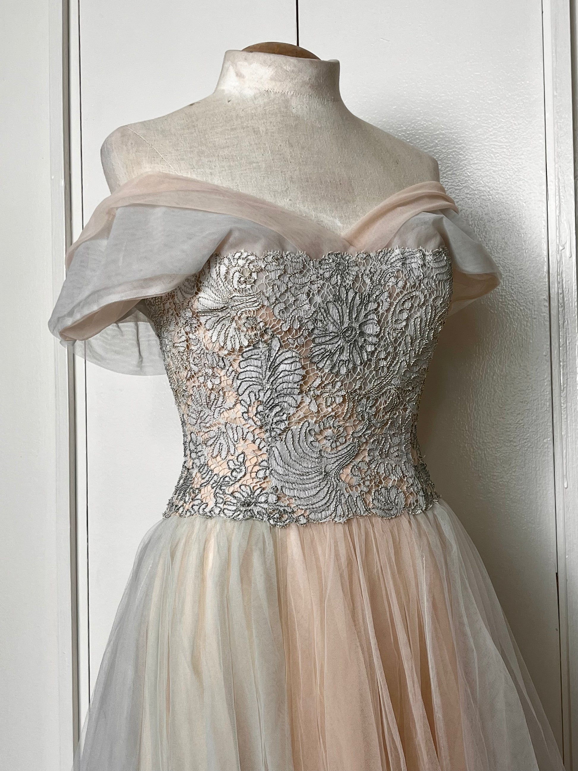 Vintage 1950's "Anne Verdi of New York" Blush Pink & Blue Tulle Gown