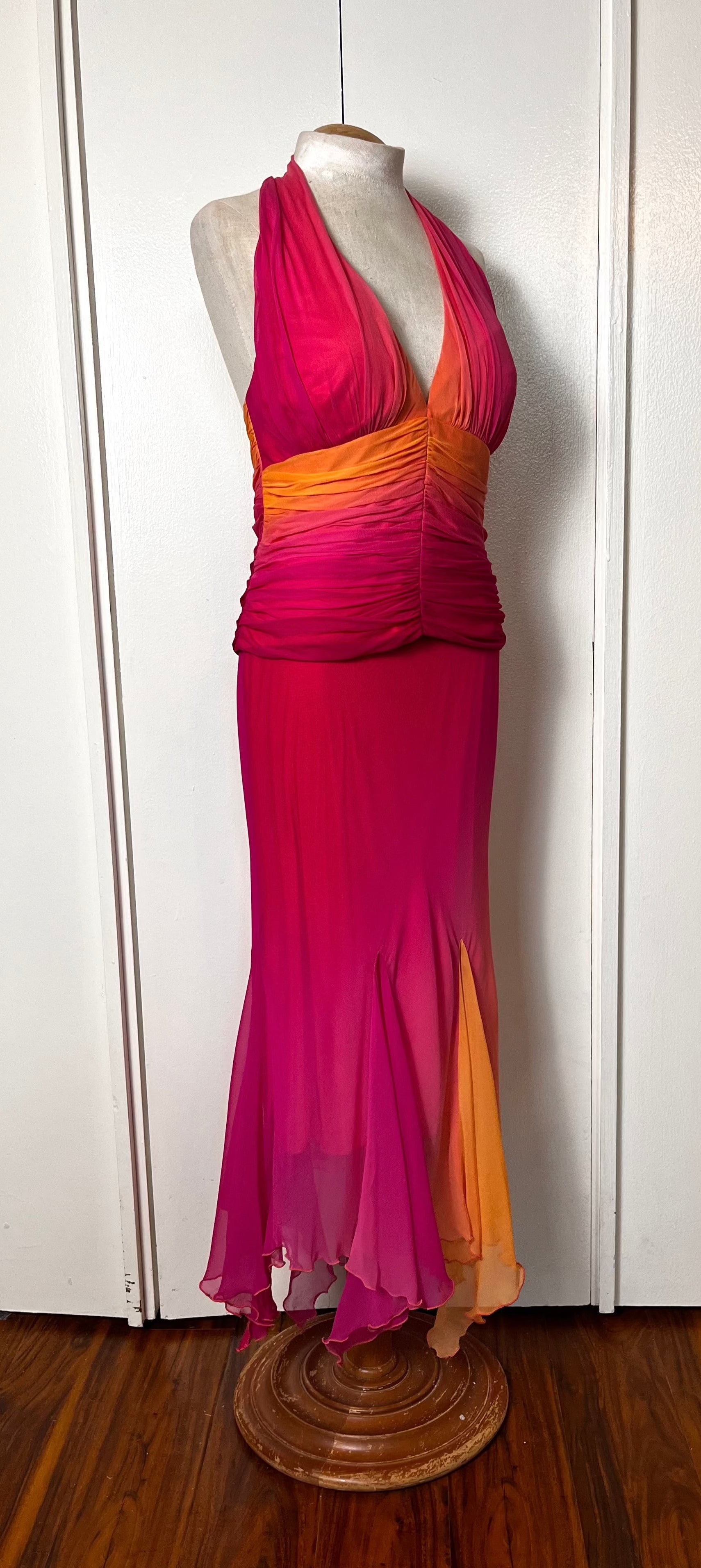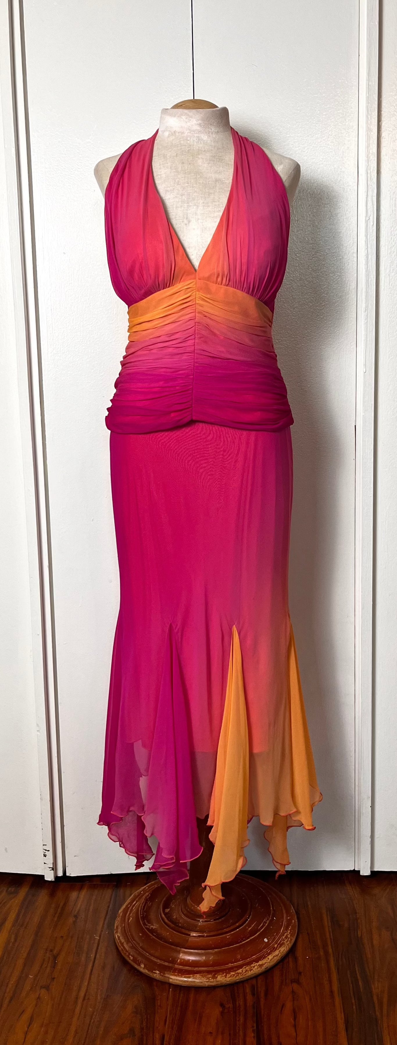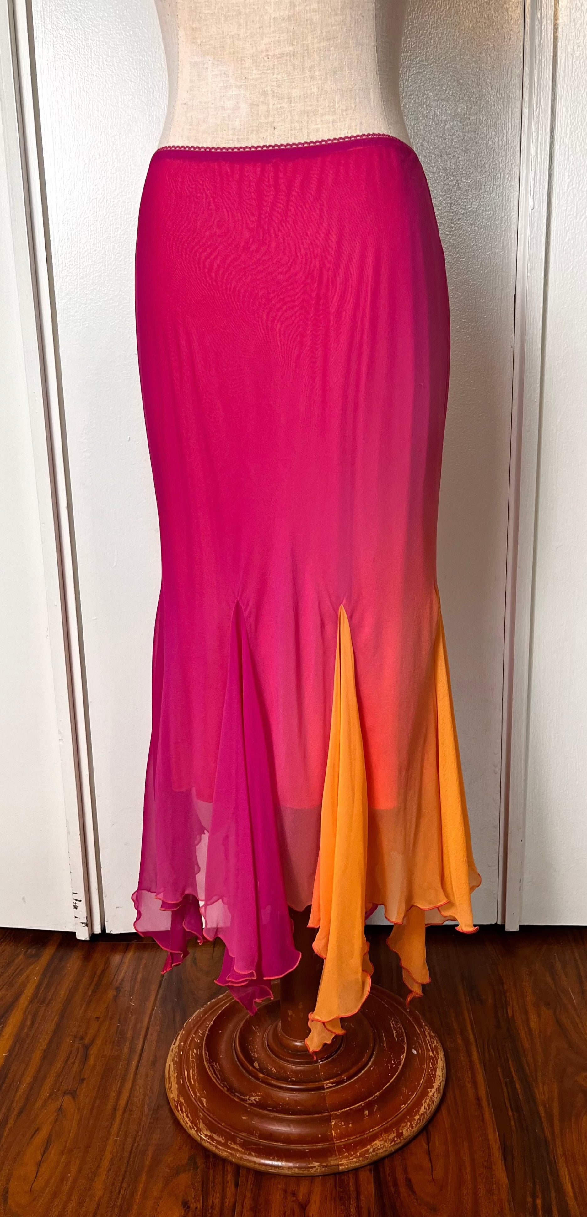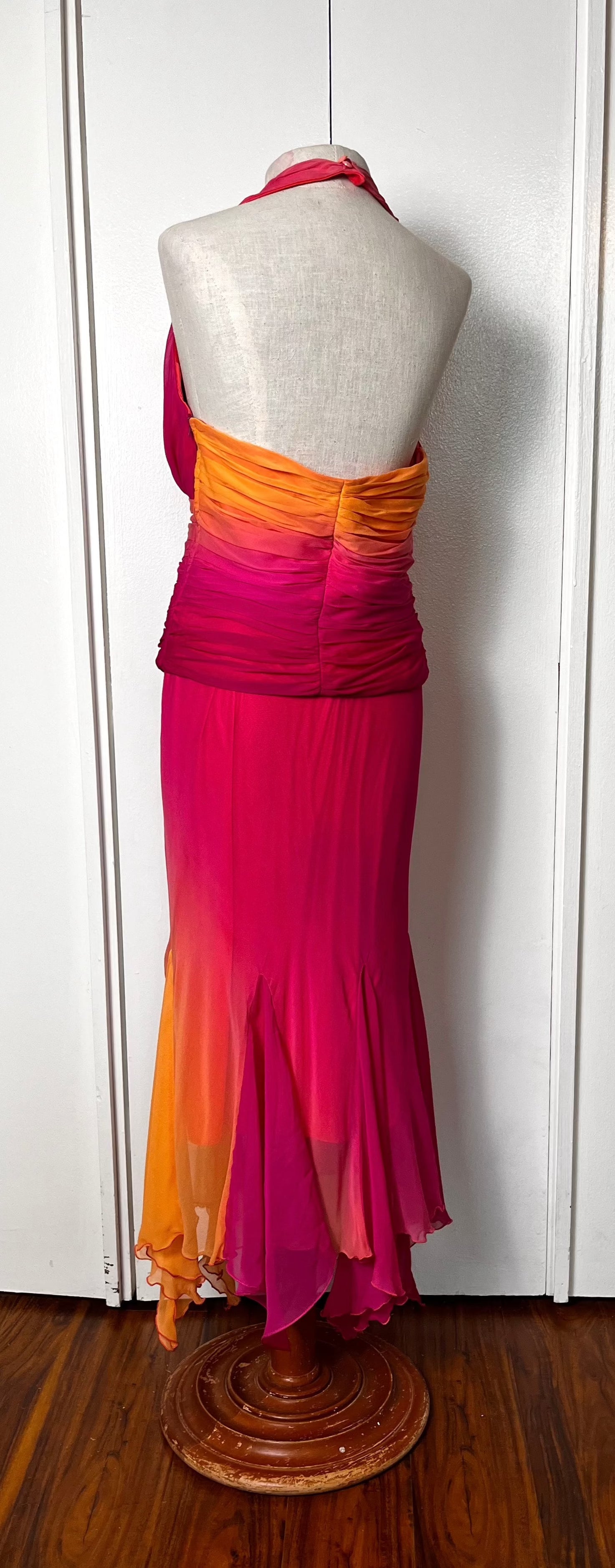 Vintage Y2K "Cache" Pink & Orange Ombre/Gradient Two-Piece Top & Skirt Set