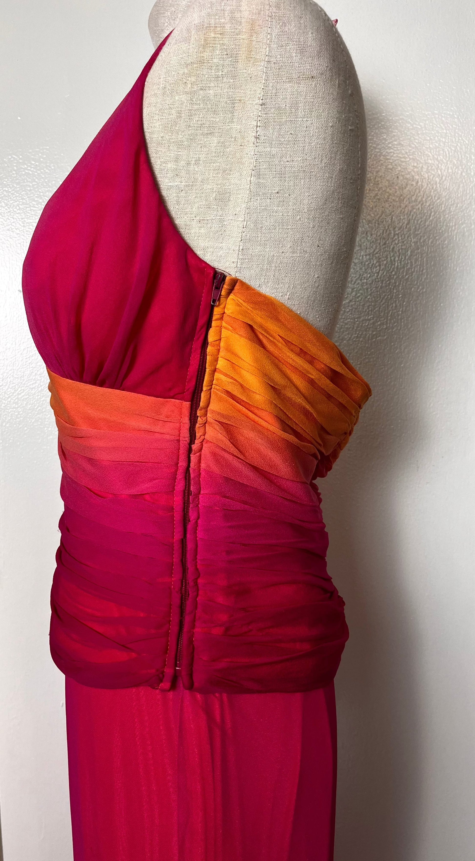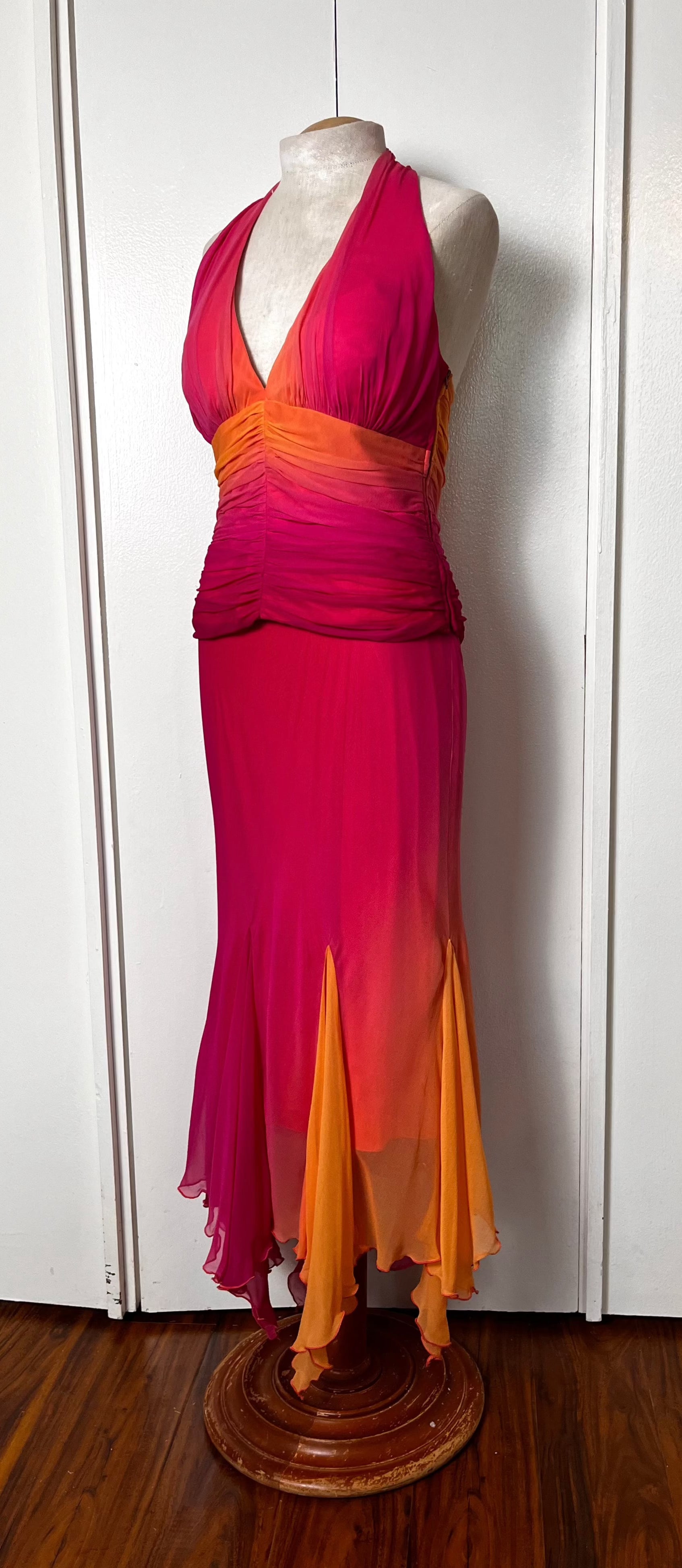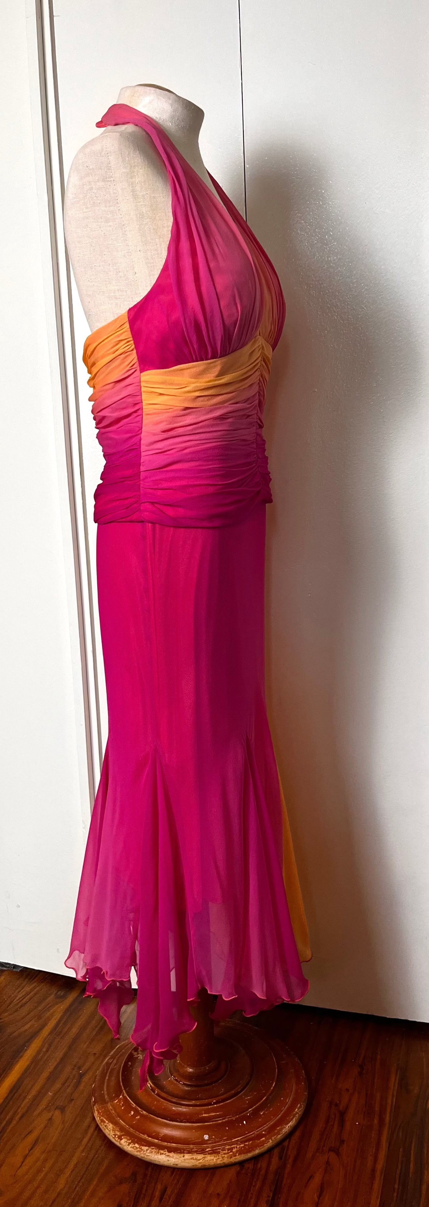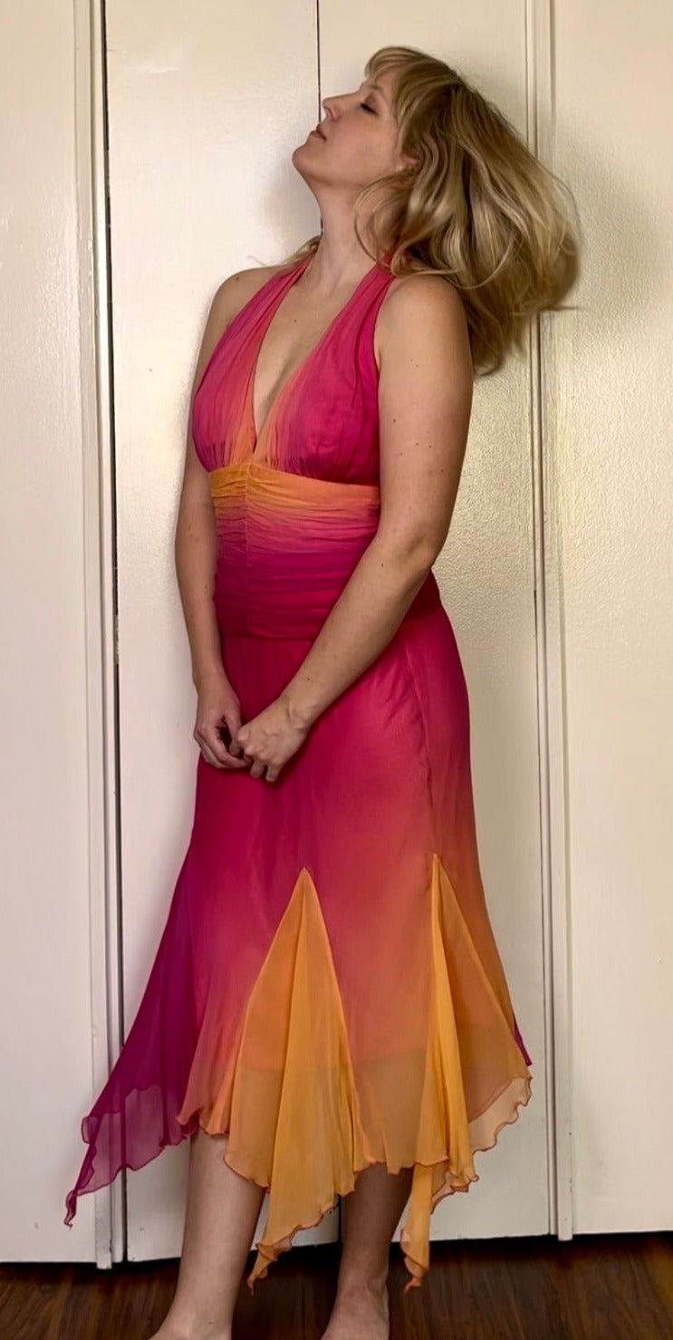 Vintage Y2K "Cache" Pink & Orange Ombre/Gradient Two-Piece Top & Skirt Set