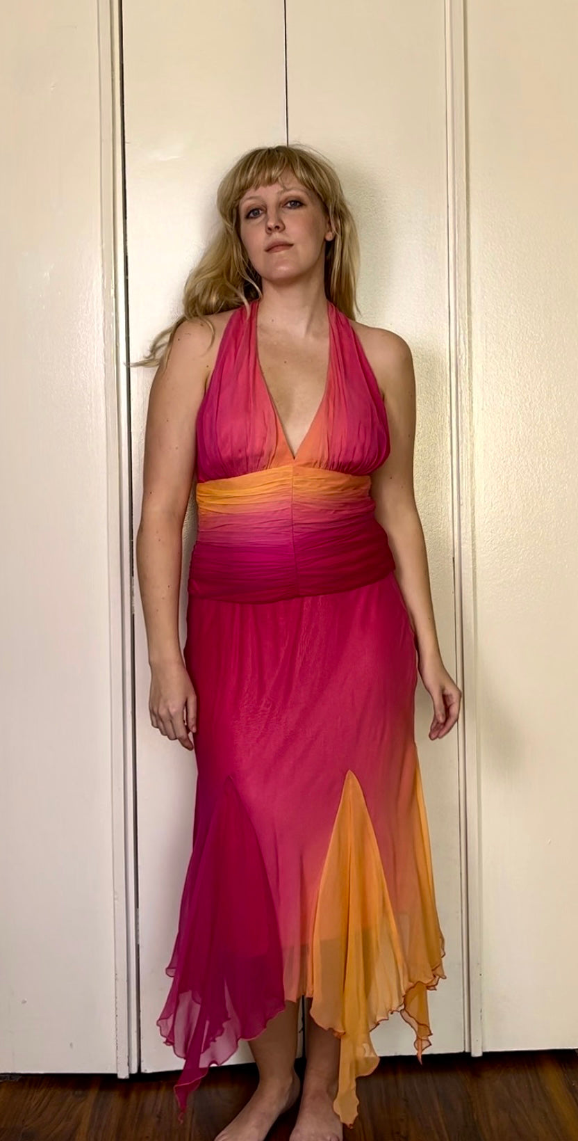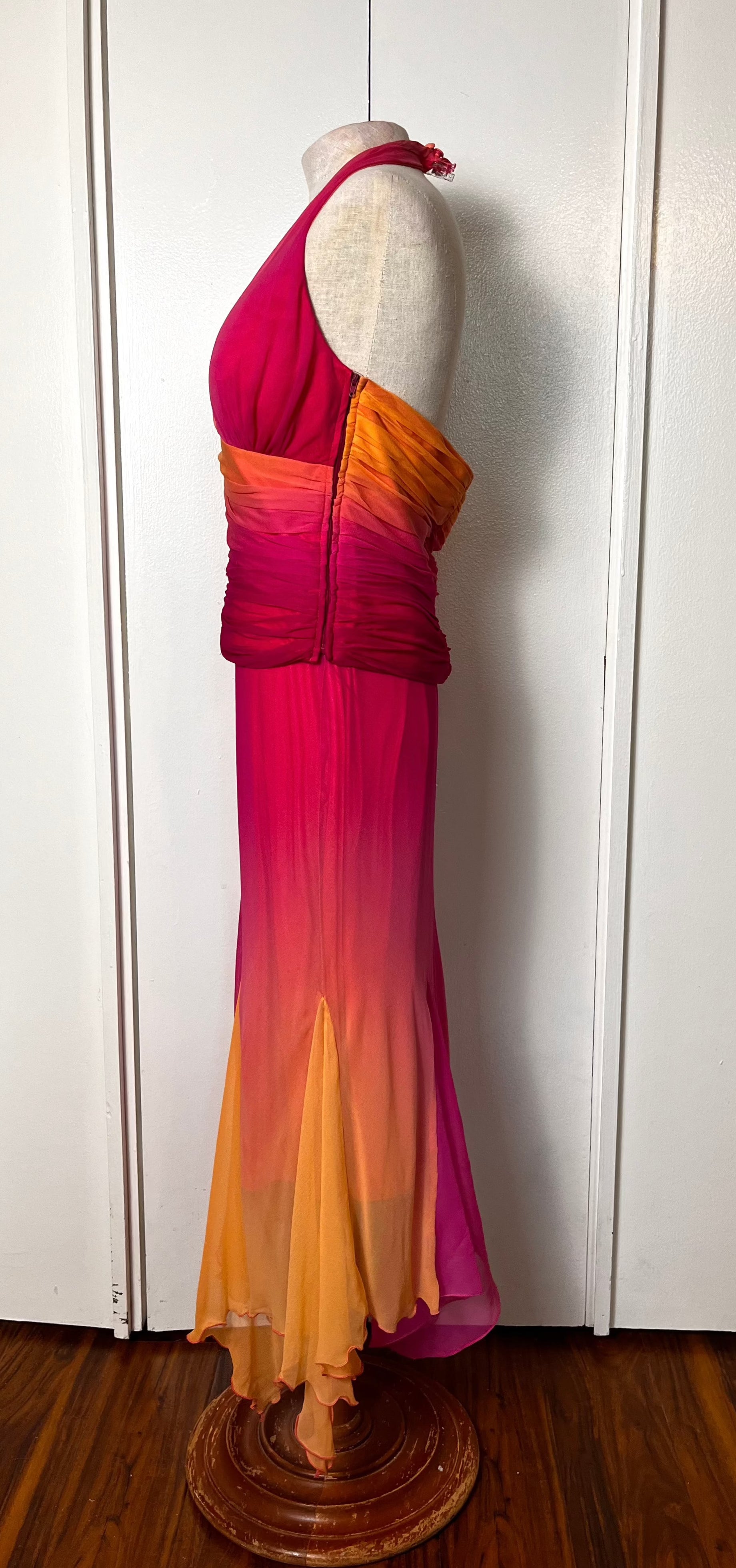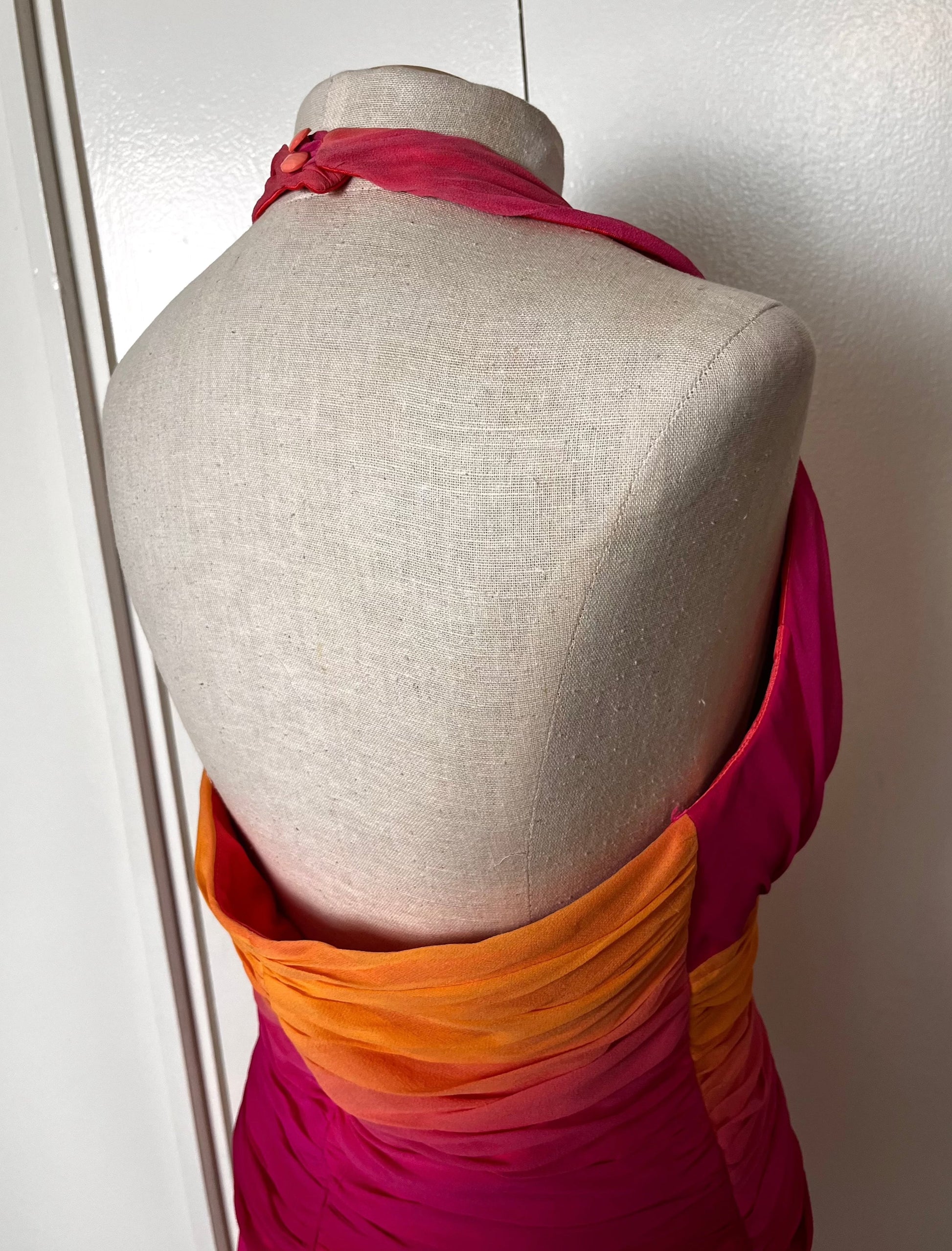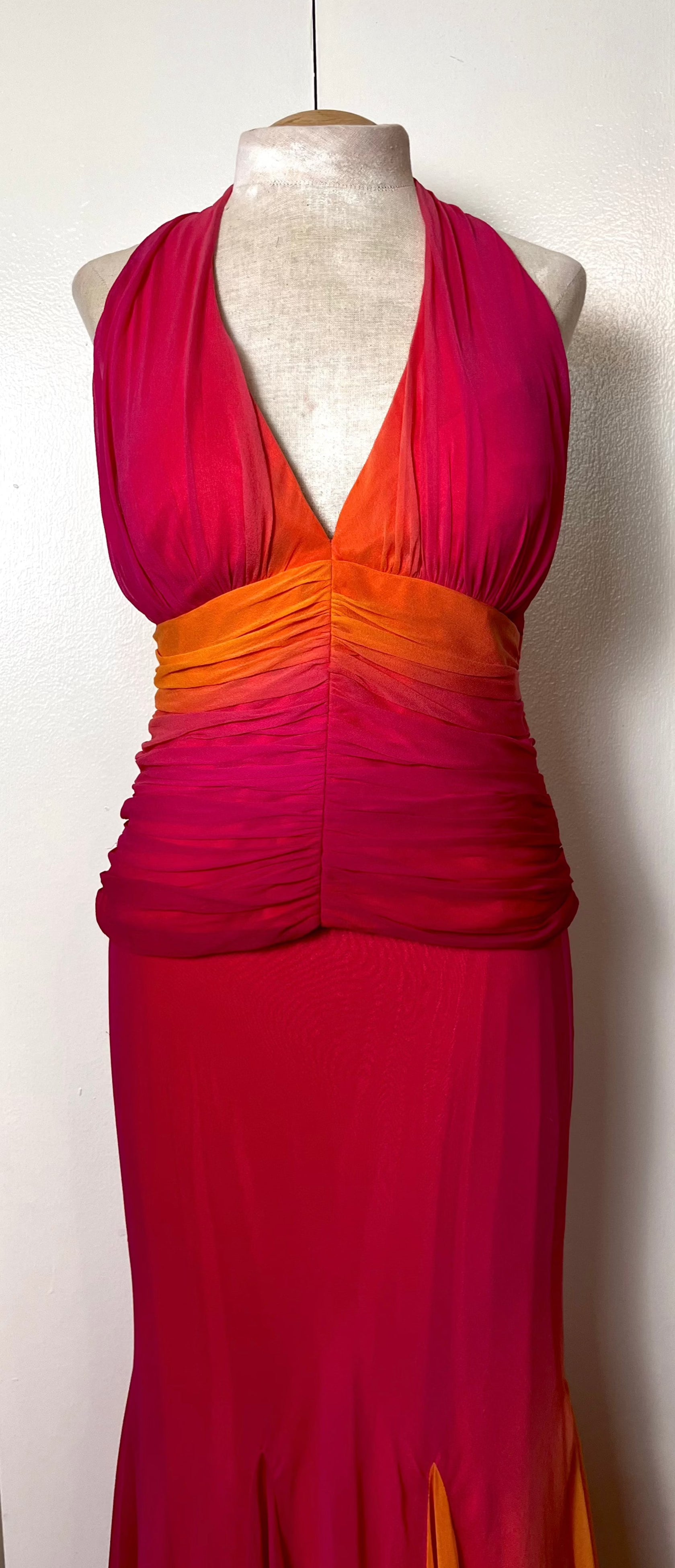 Vintage Y2K "Cache" Pink & Orange Ombre/Gradient Two-Piece Top & Skirt Set